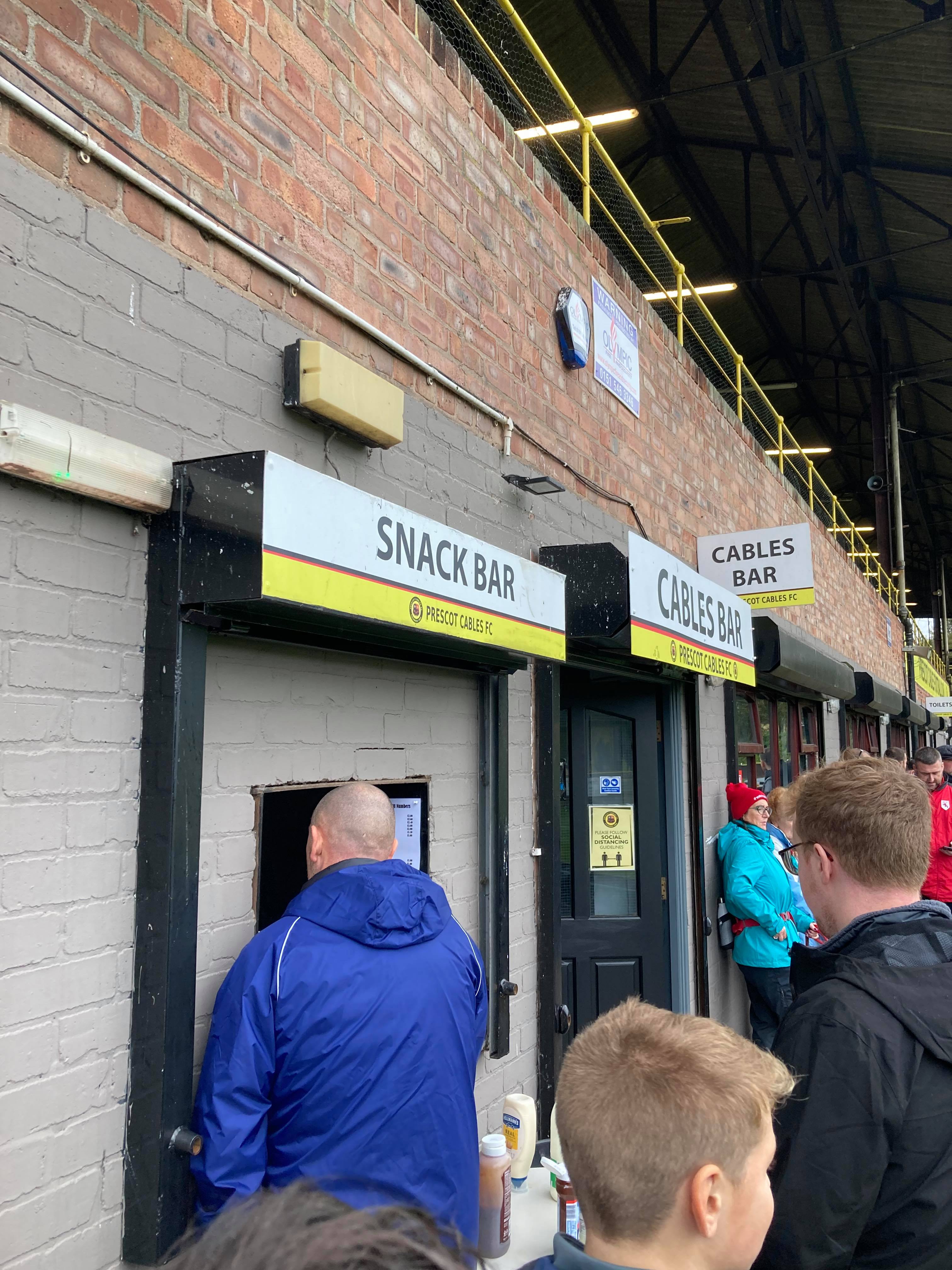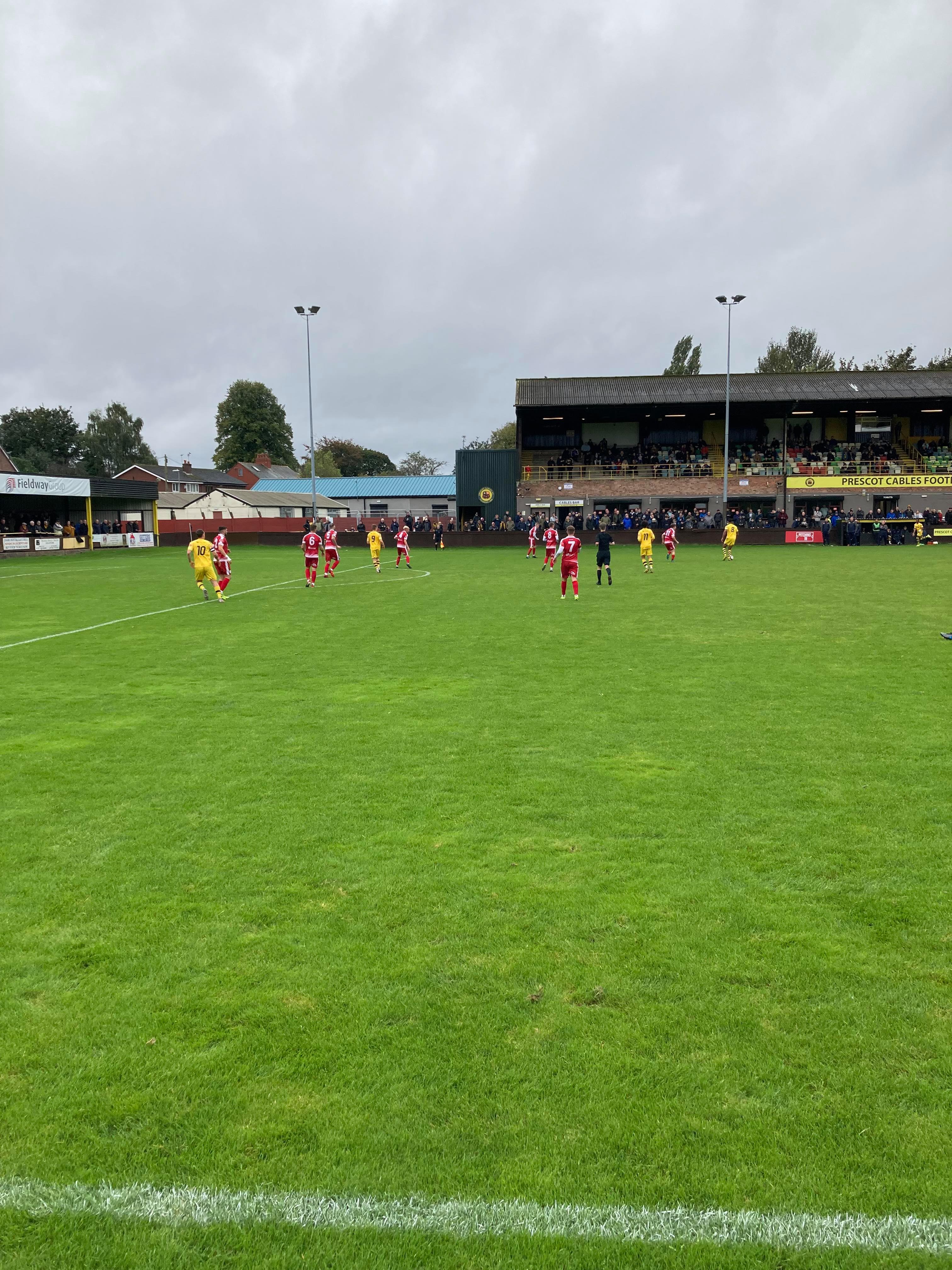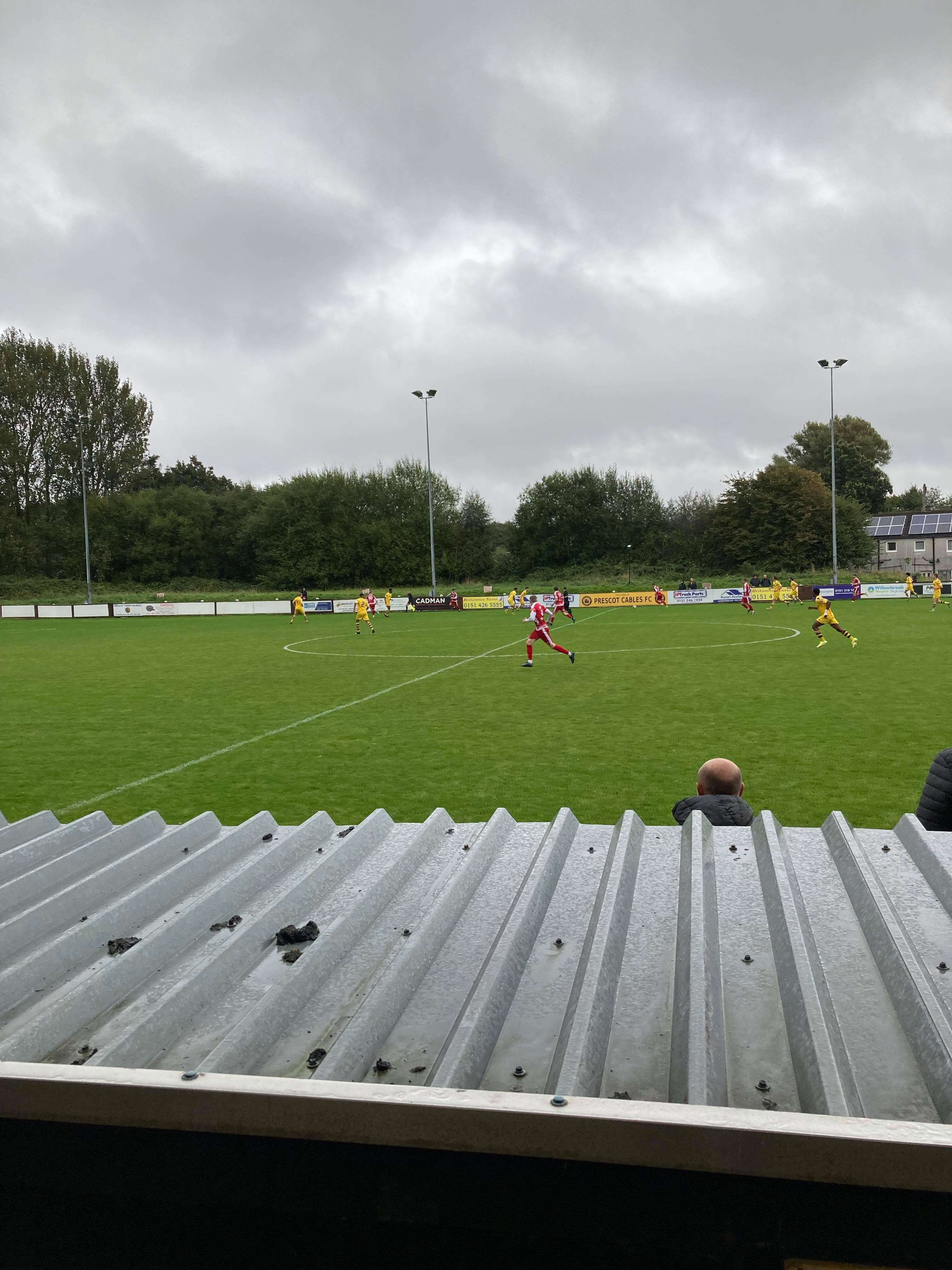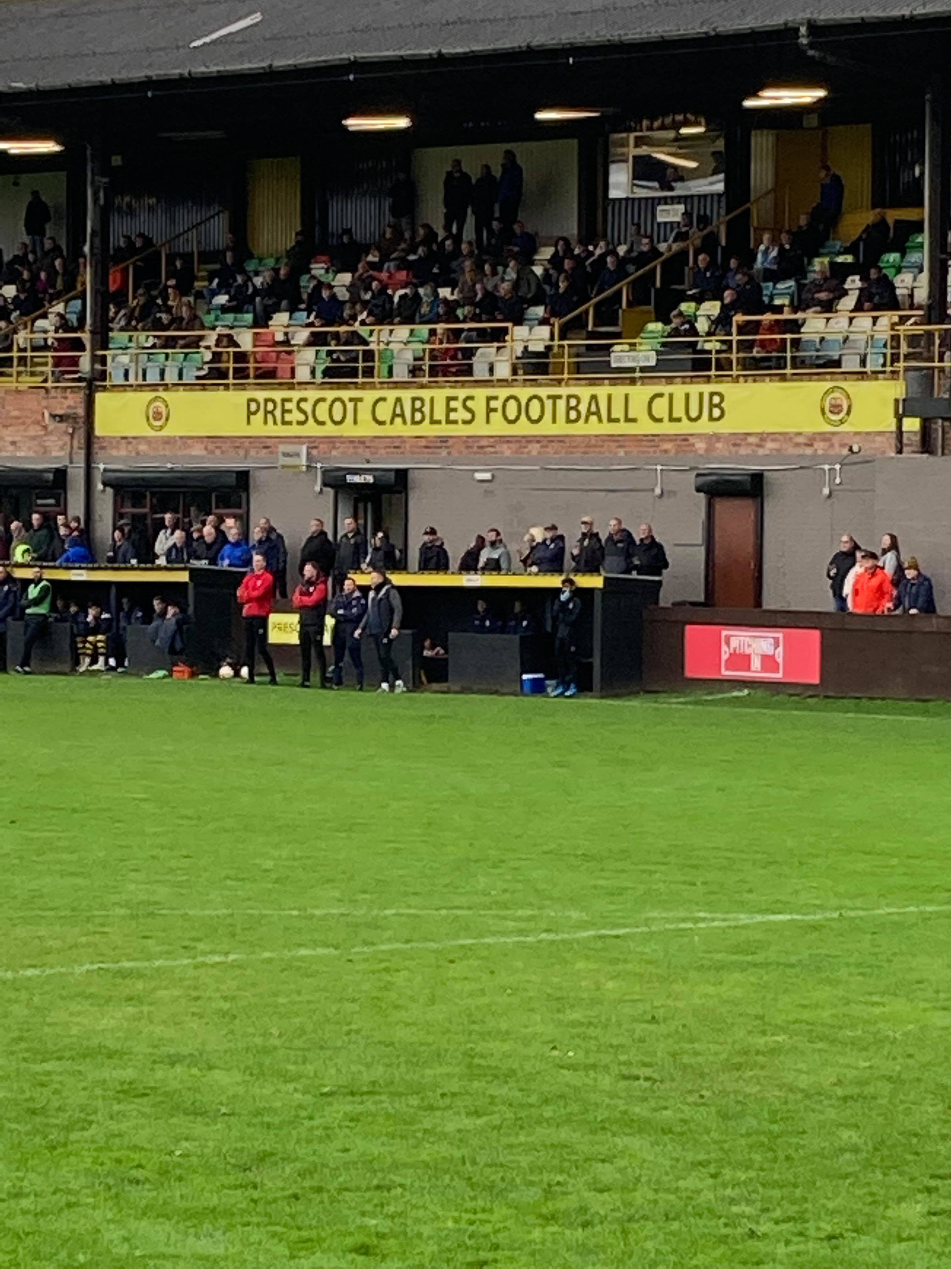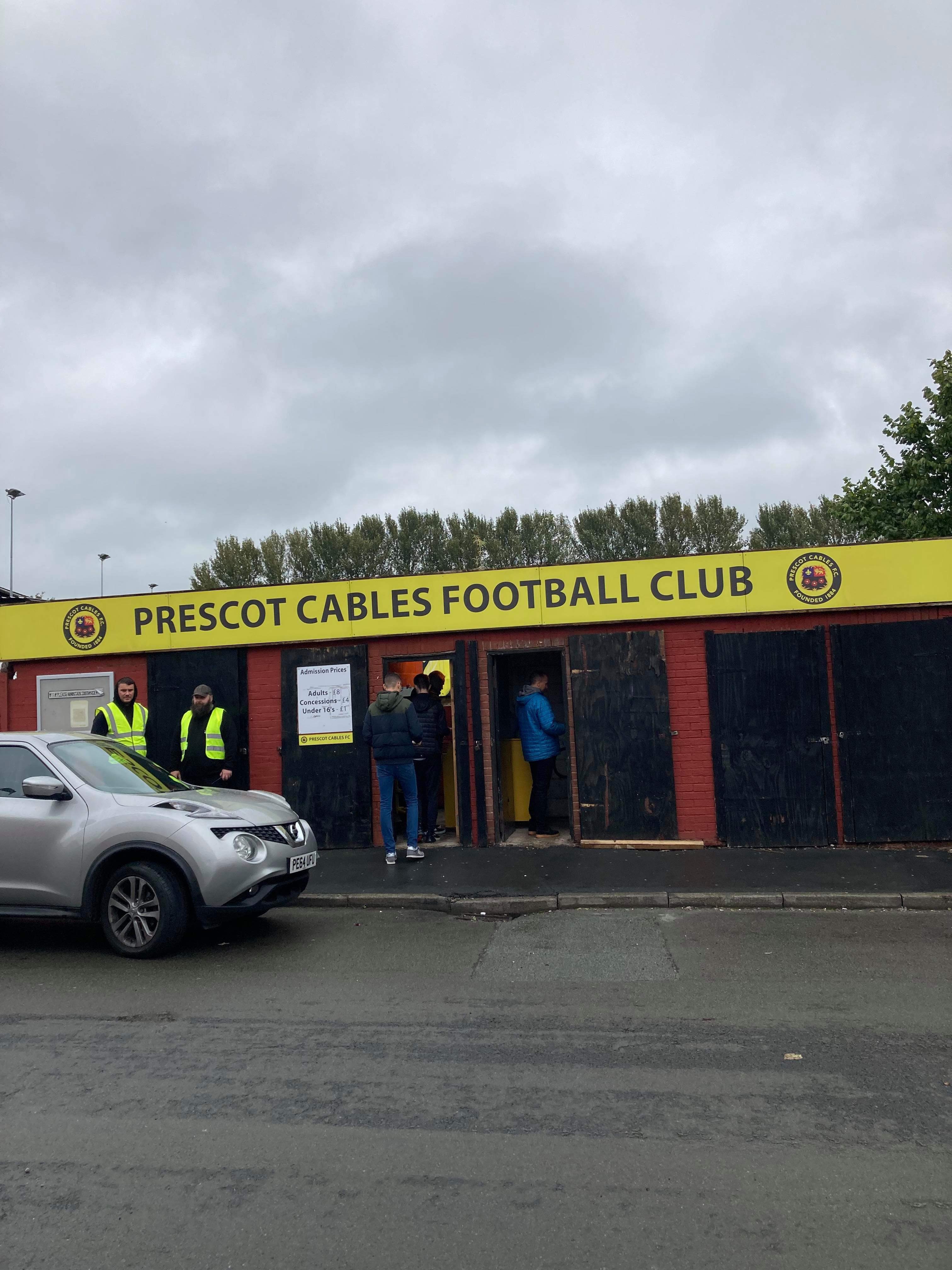 Thanks to Manchester United vs Everton, our trip to Liverpool Lime Street will be taking a short delay but will also see us arrive an hour later than planned… Oh well, still plenty of time to kill! Off to the train we go for Prescot! Here we are and off to the ground we go! £8 to watch this North Western tie! Be good!!