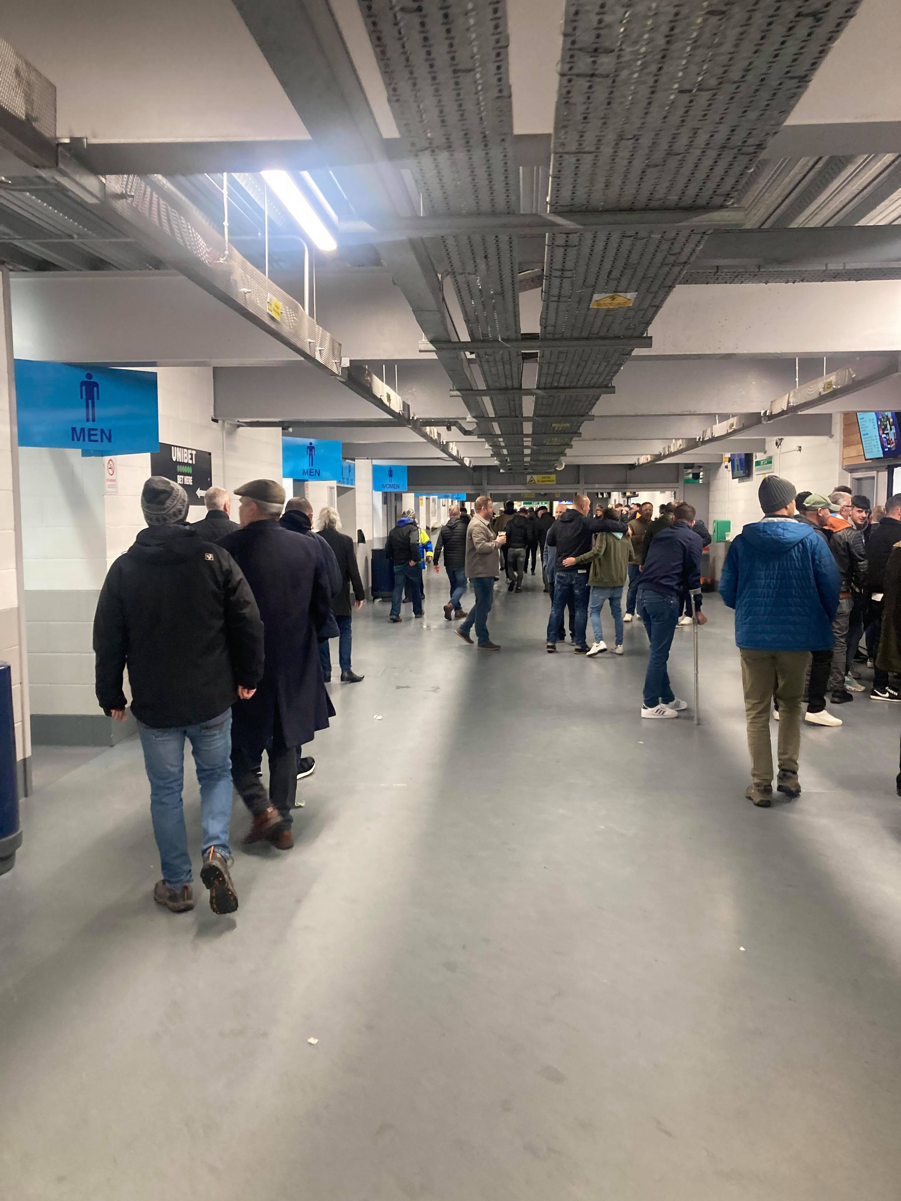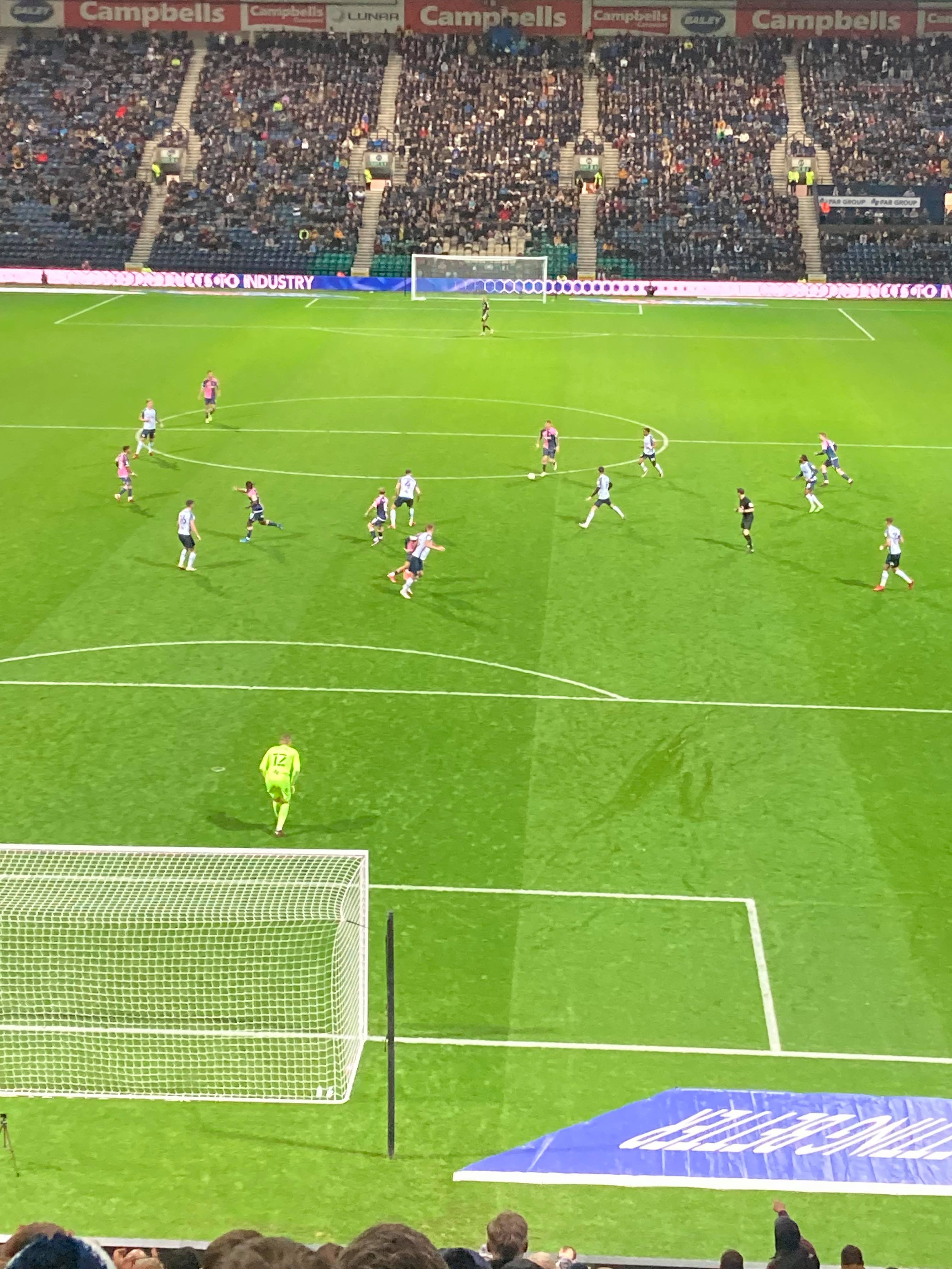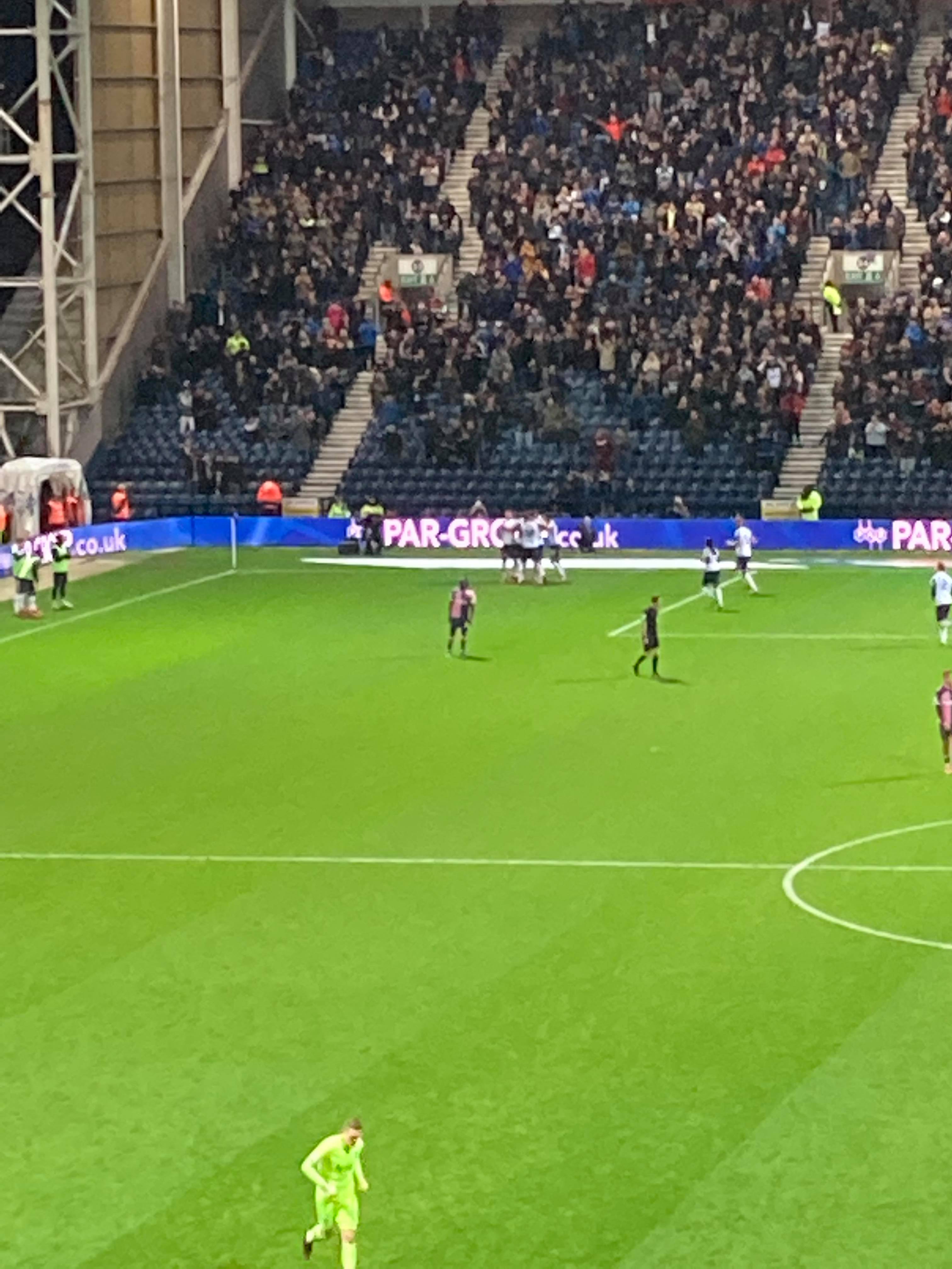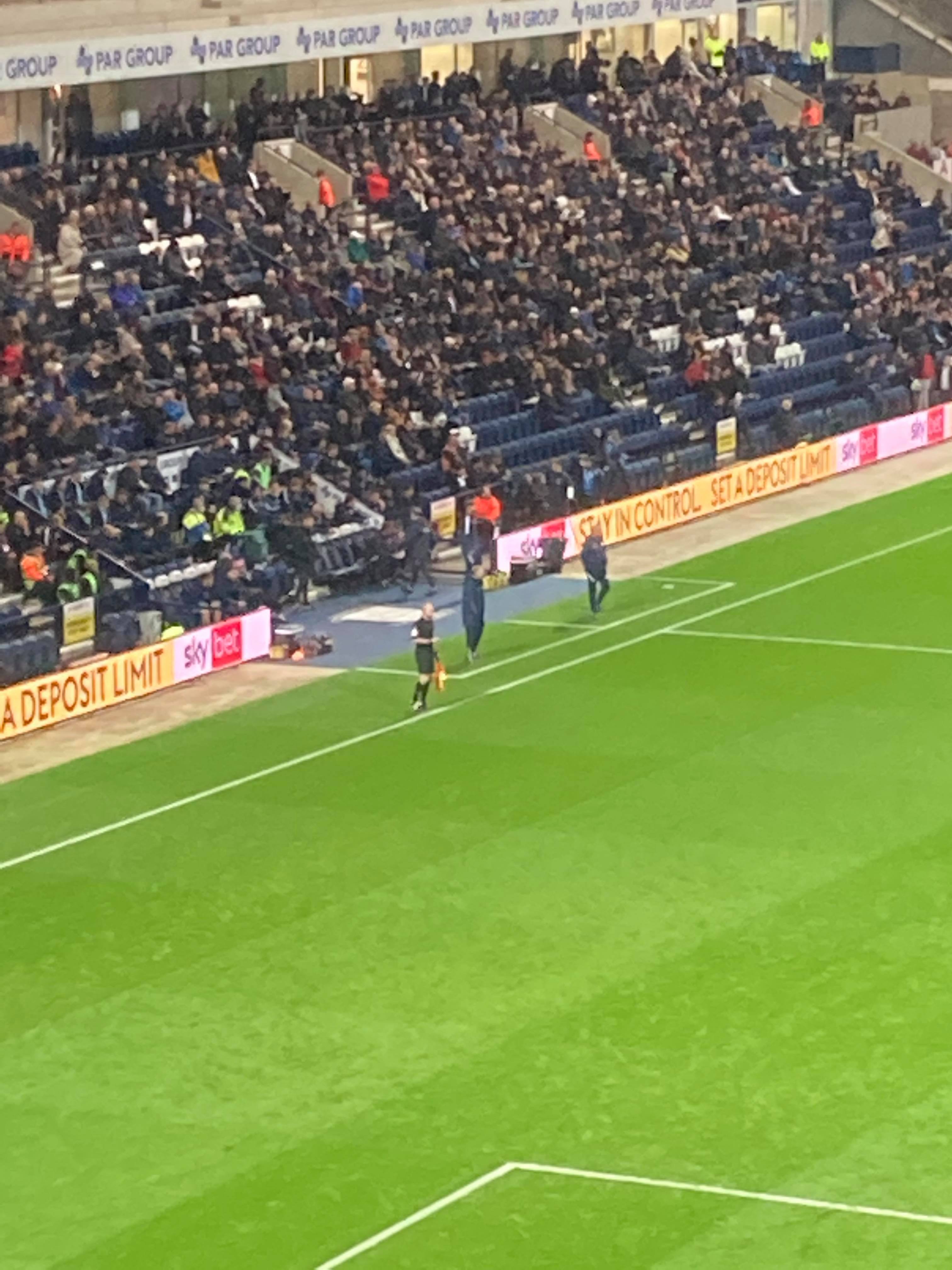 “Da da da! Football in a library!” The Preston fans have yet to make a noise so far… But then again I won’t be able to hear them as the Coventry fans have been relentless so far! “Go for it! Go for it! City!” The game has slowed down now, Coventry have had a lot of possession this half but Preston have looked threatening coming forward.