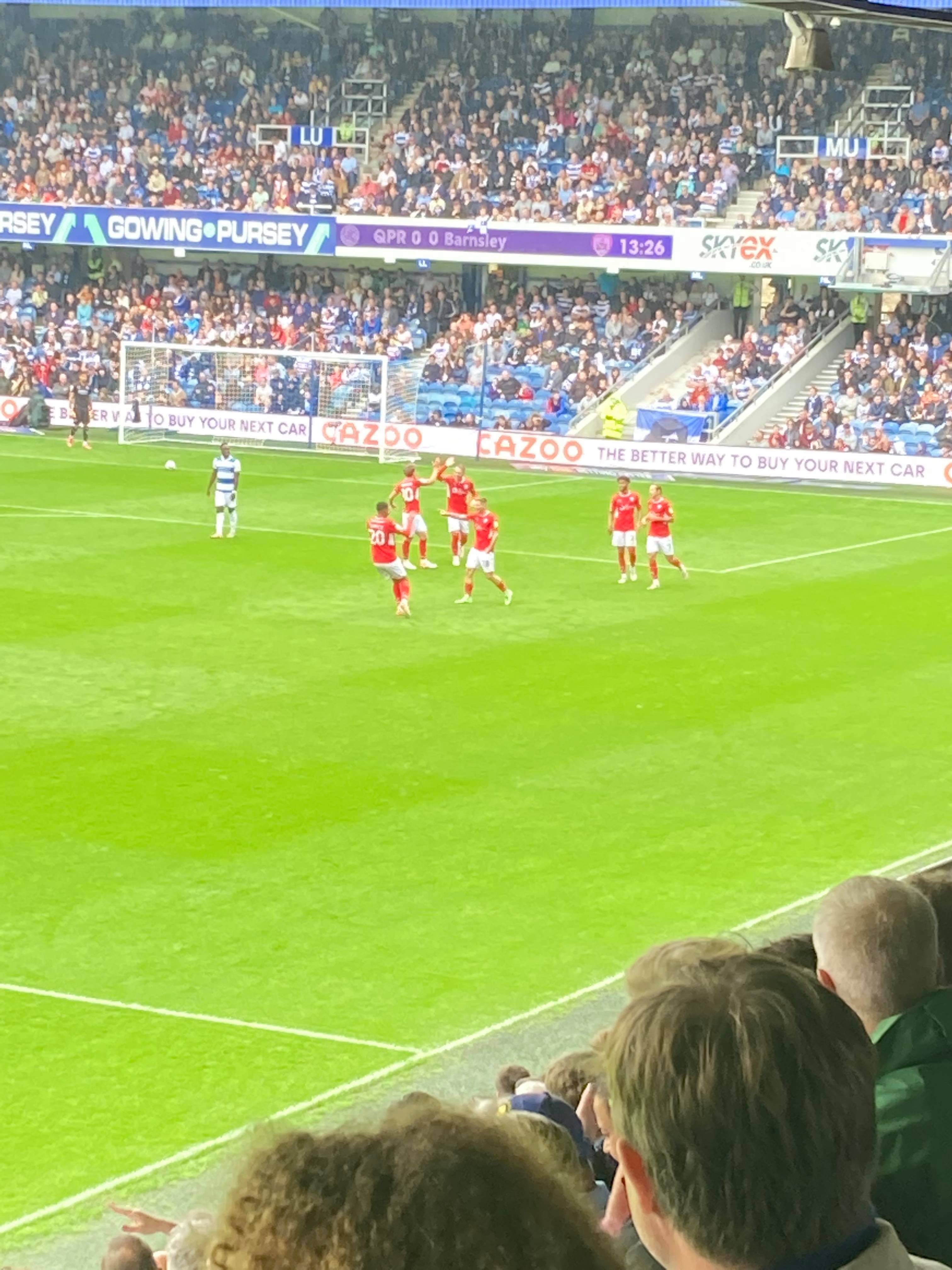 “We are QPR! Say we are QPR!” 14 minutes now and Barnsley play a chipped through ball down the left flank to Dominik Frieser, he runs onto it and gets into the box and he shoots… He scores!!! 0-1!! Barnsley lead here!