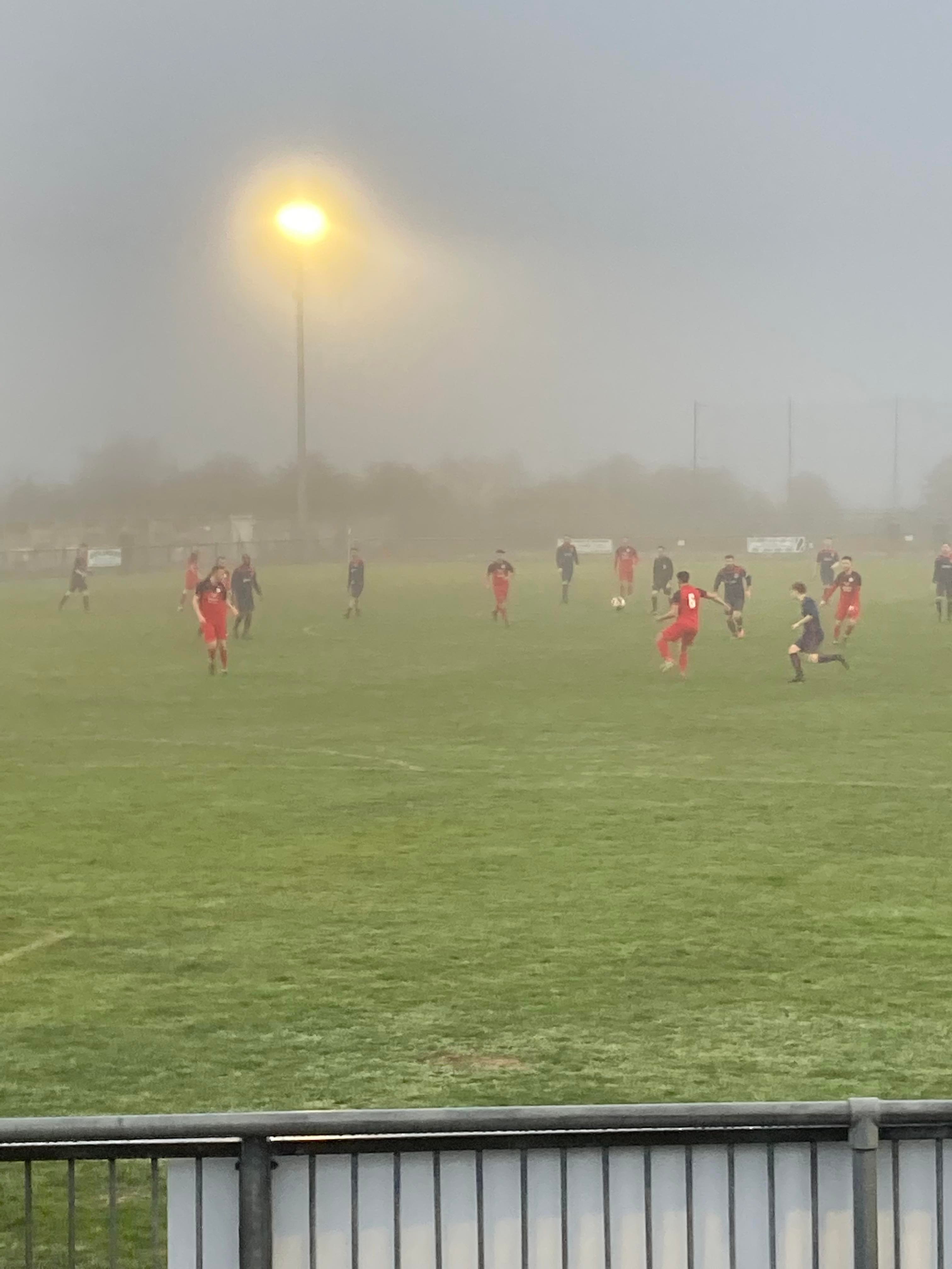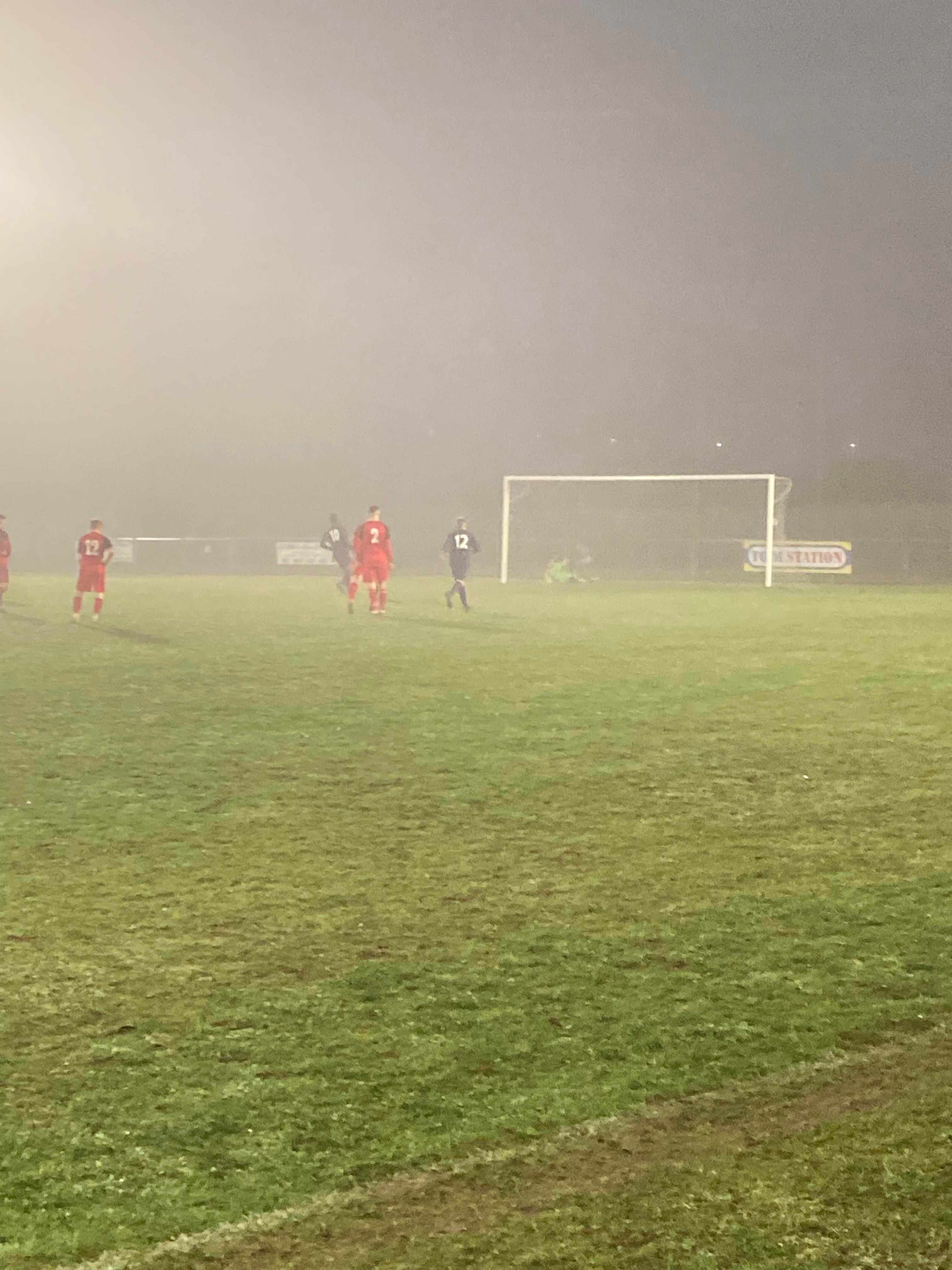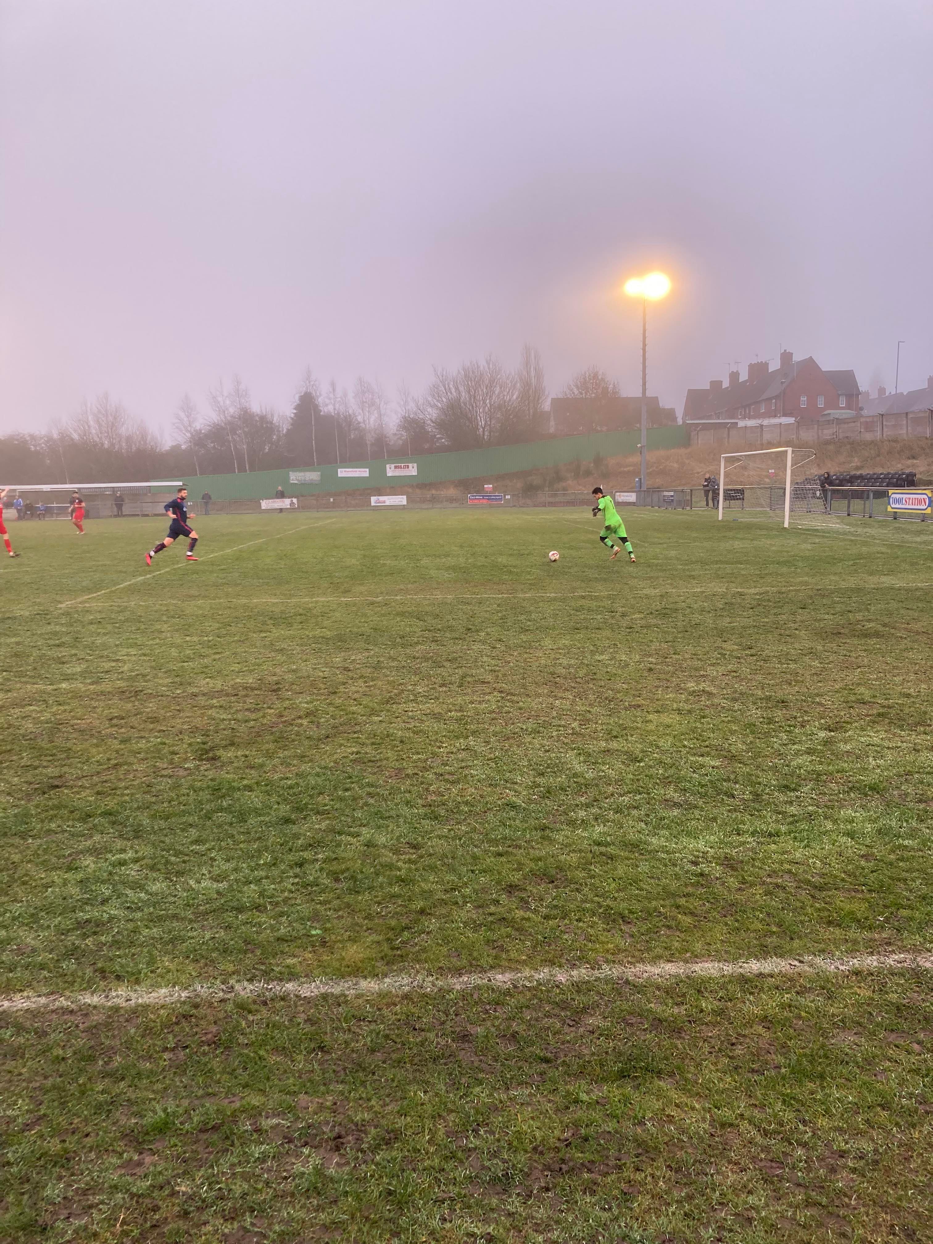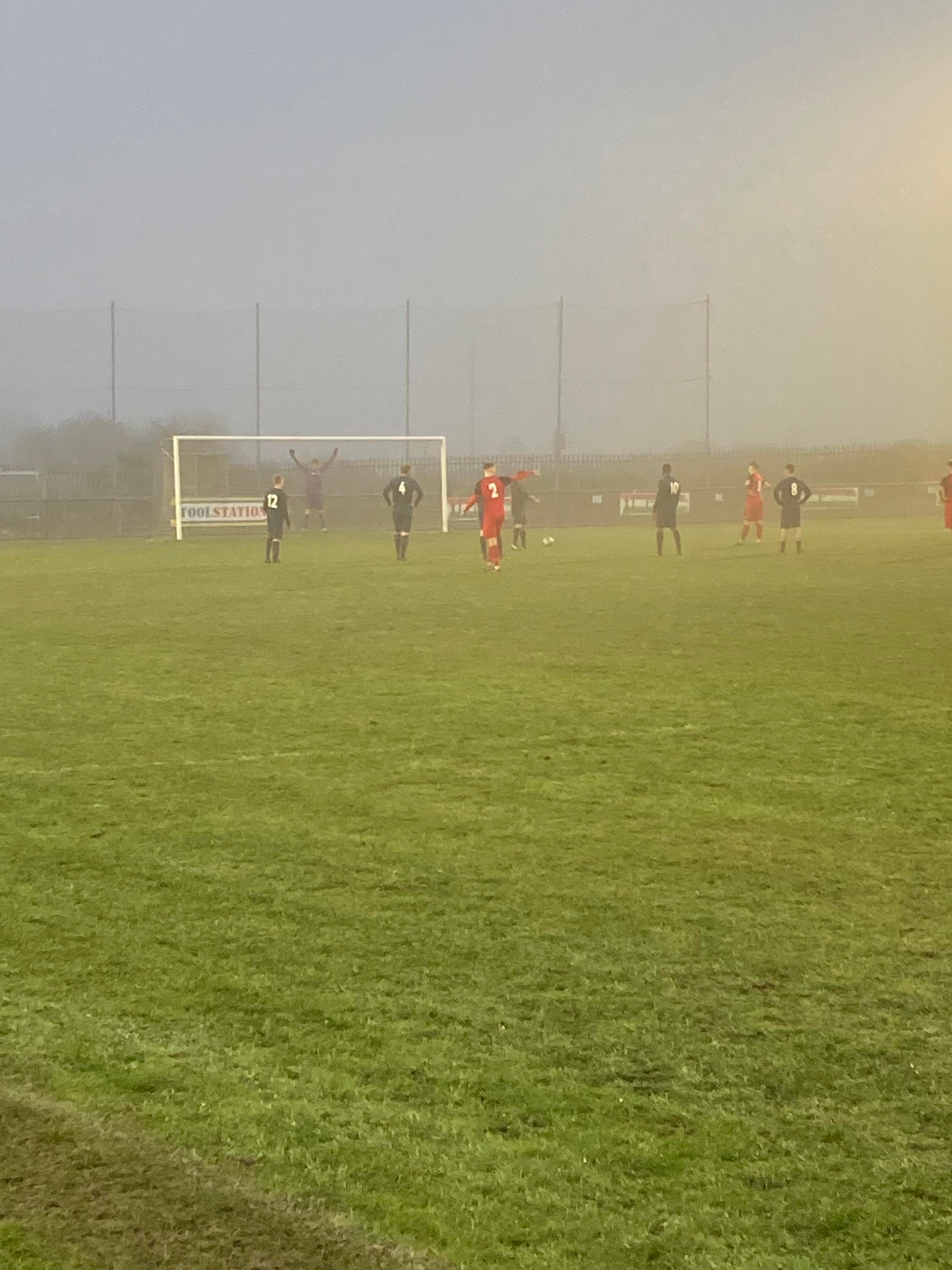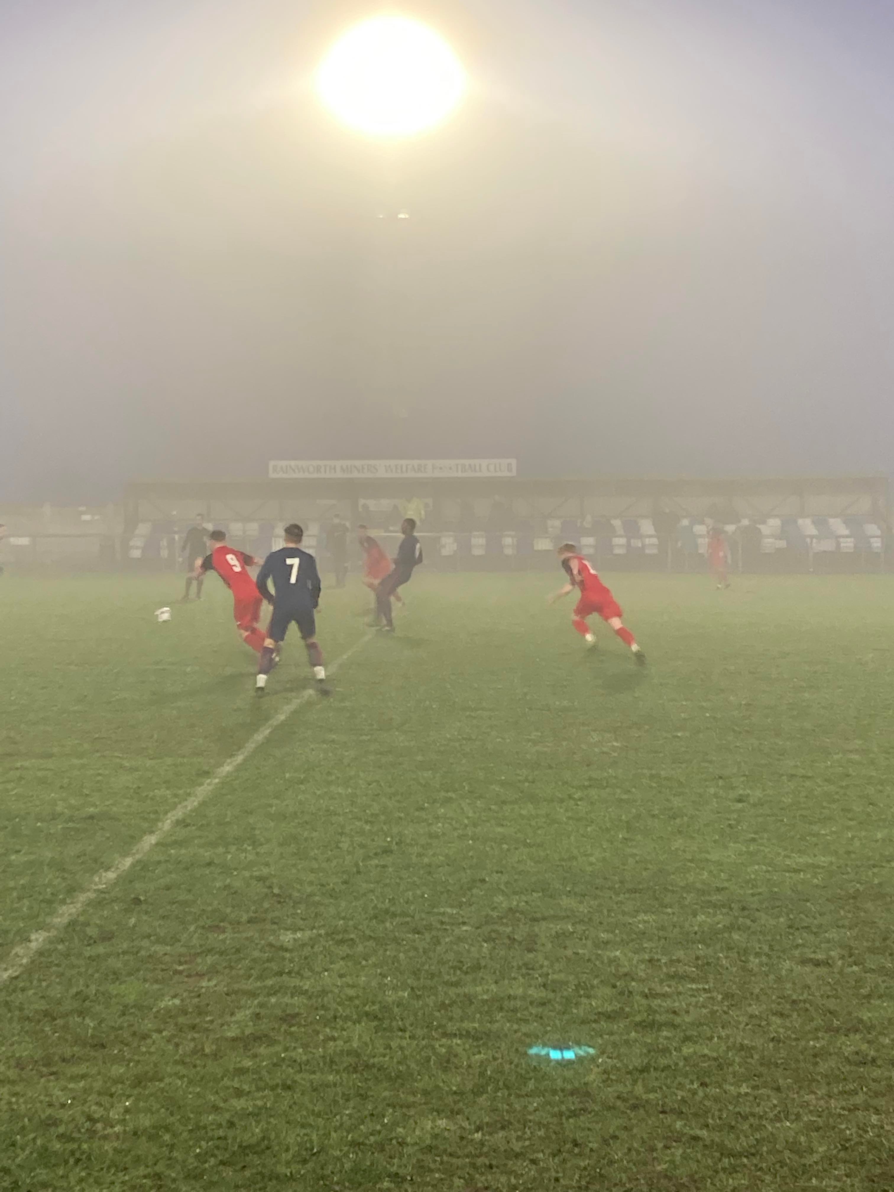 Second half, the fog is starting to show… Let’s hope it doesn’t get any worse! 50 minutes on the clock and Armthorpe win a free kick in the Rainworth half on the left side… The Rainworth manager is not happy!! He’s been shown a Yellow Card along with his assistant for their protests… Don’t think the assistant needed to be booked… The free kick is lumped into the box, it’s flicked on to Rhys Plater who gets a sight of goal, the shot!! Brilliant save by Warren Squires! Corner for Armthorpe, in it comes… Cleared by Rainworth.