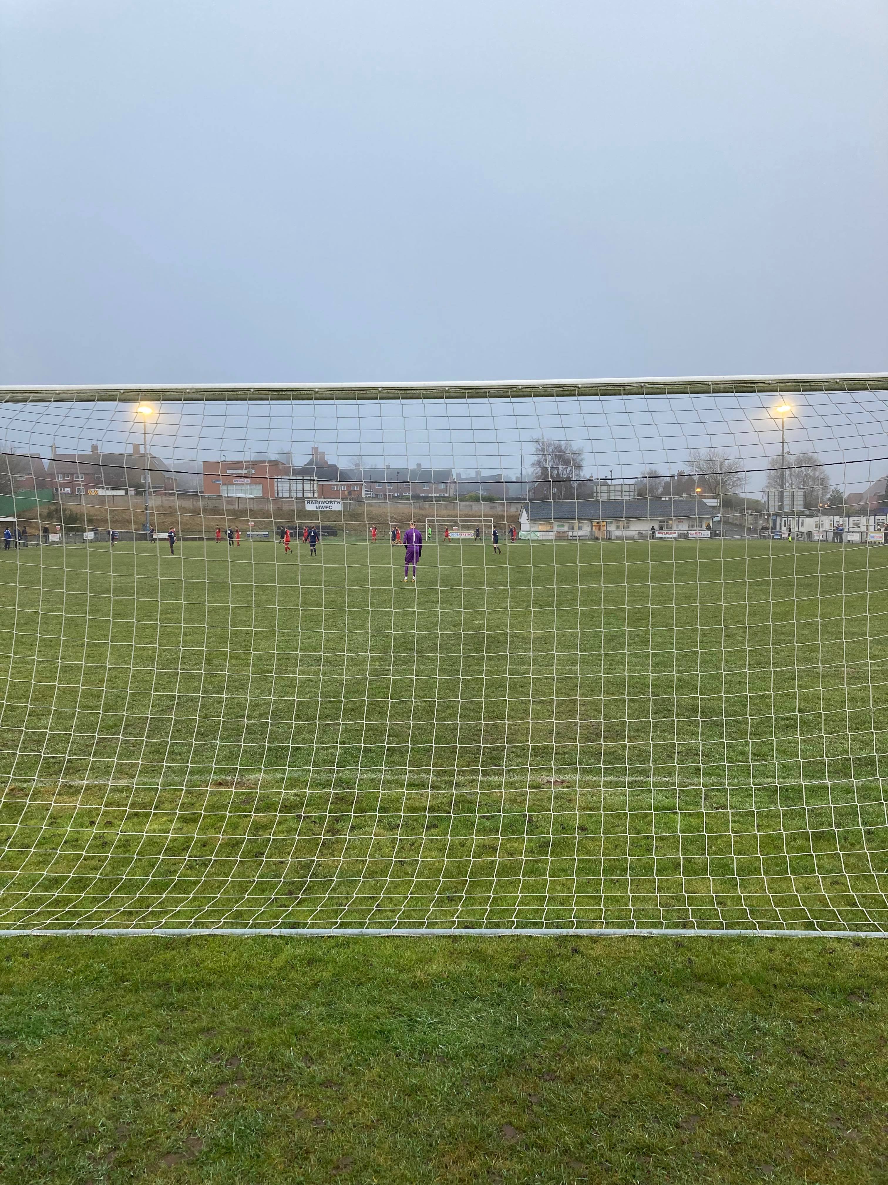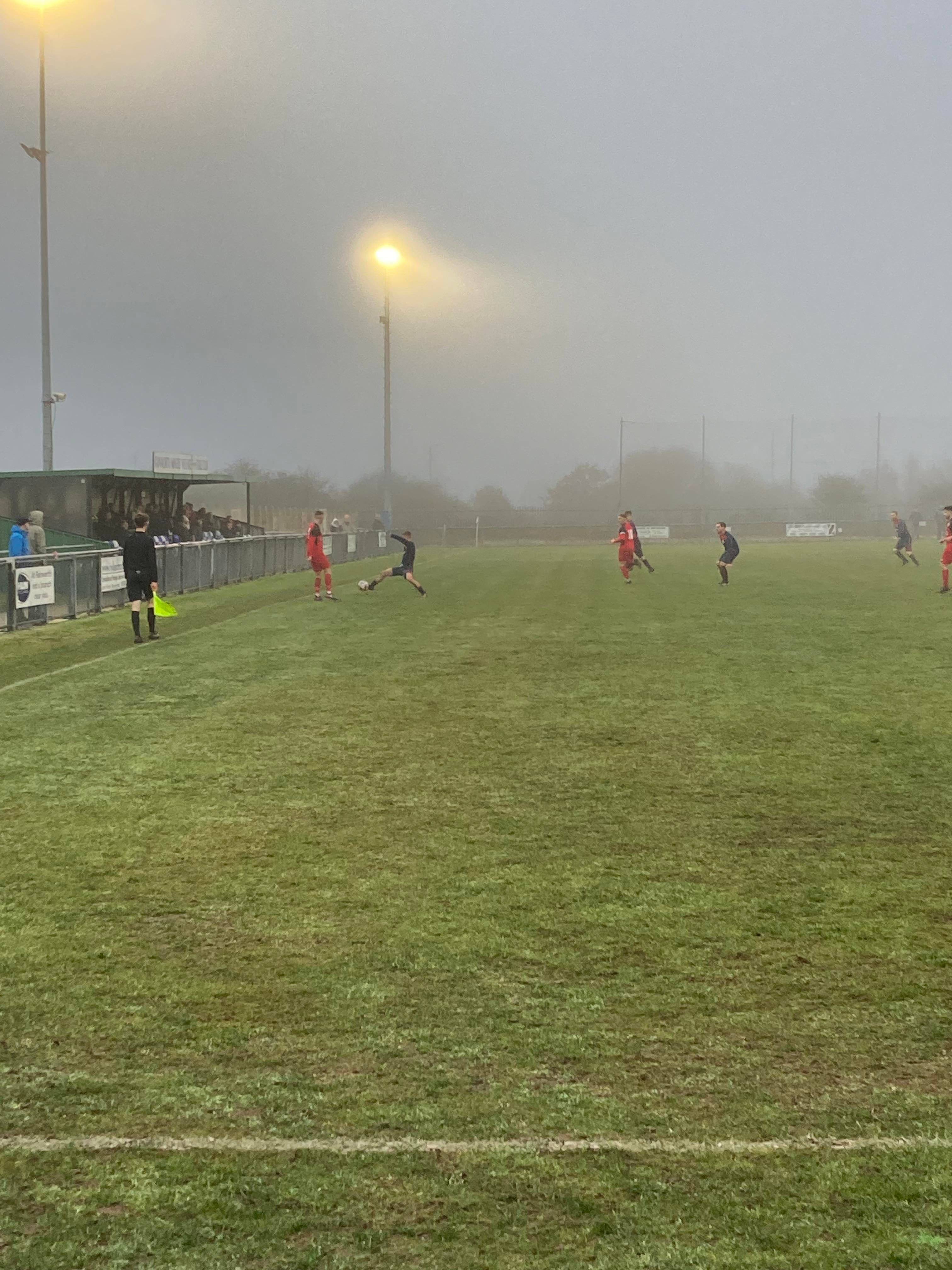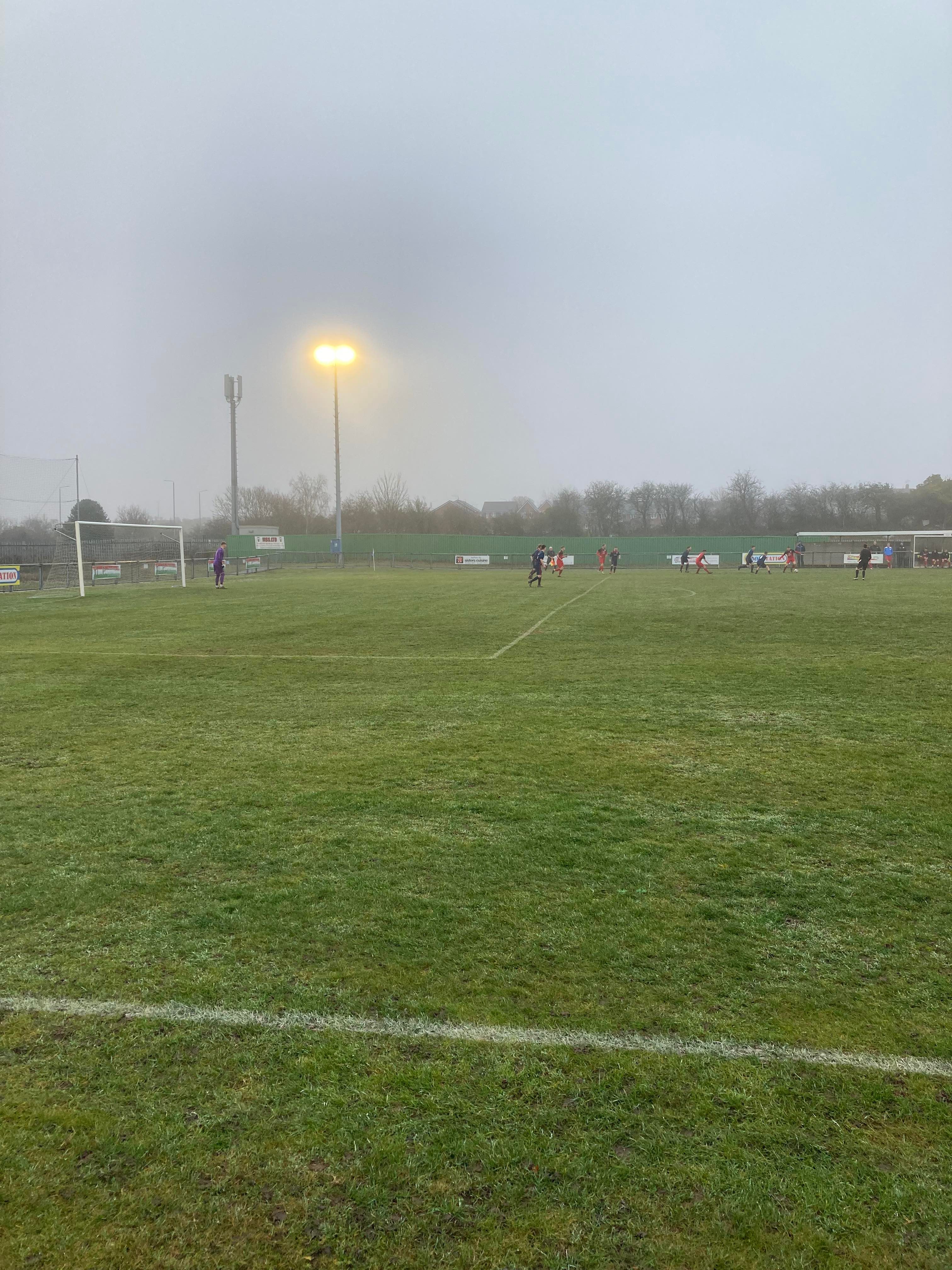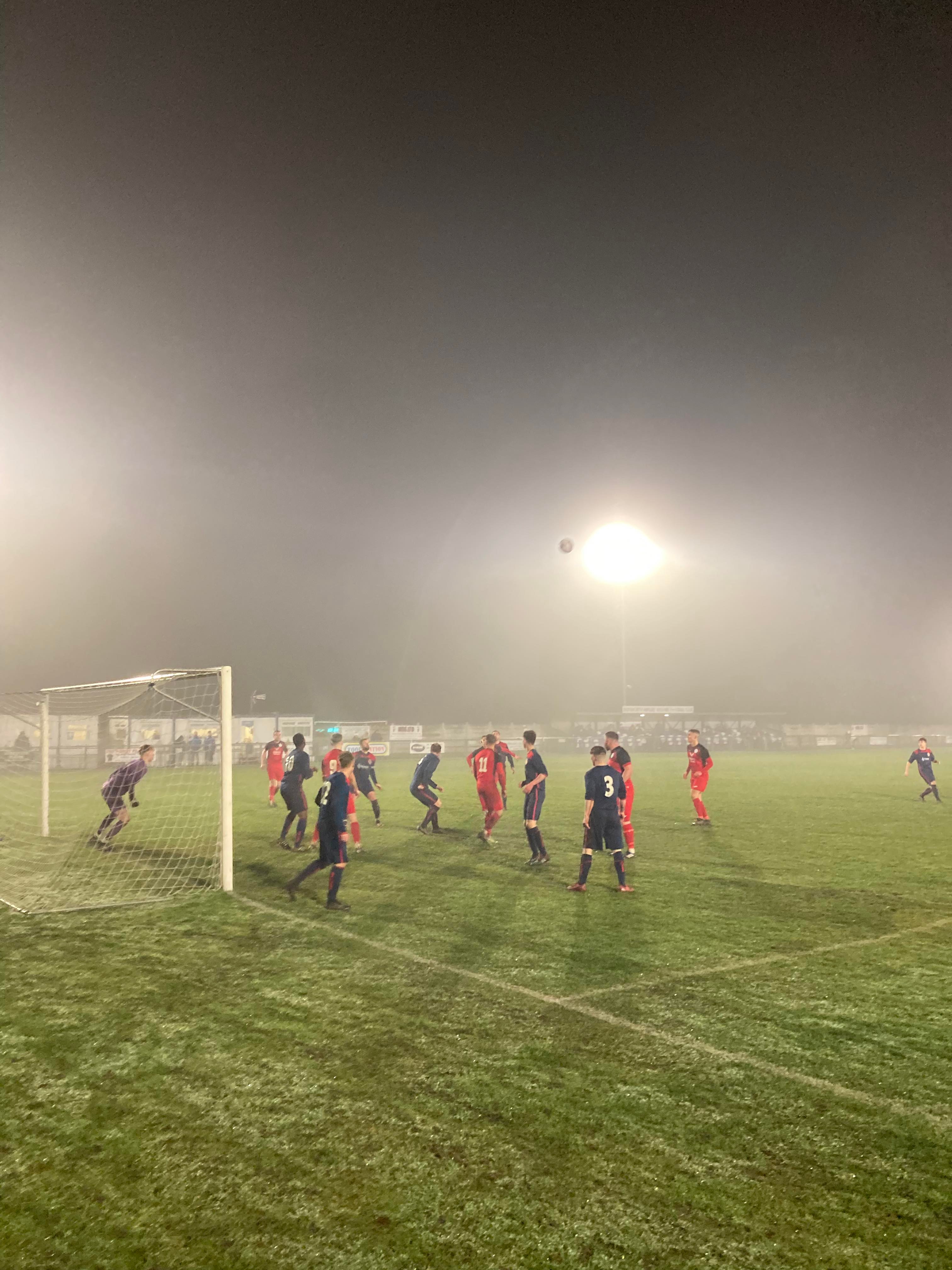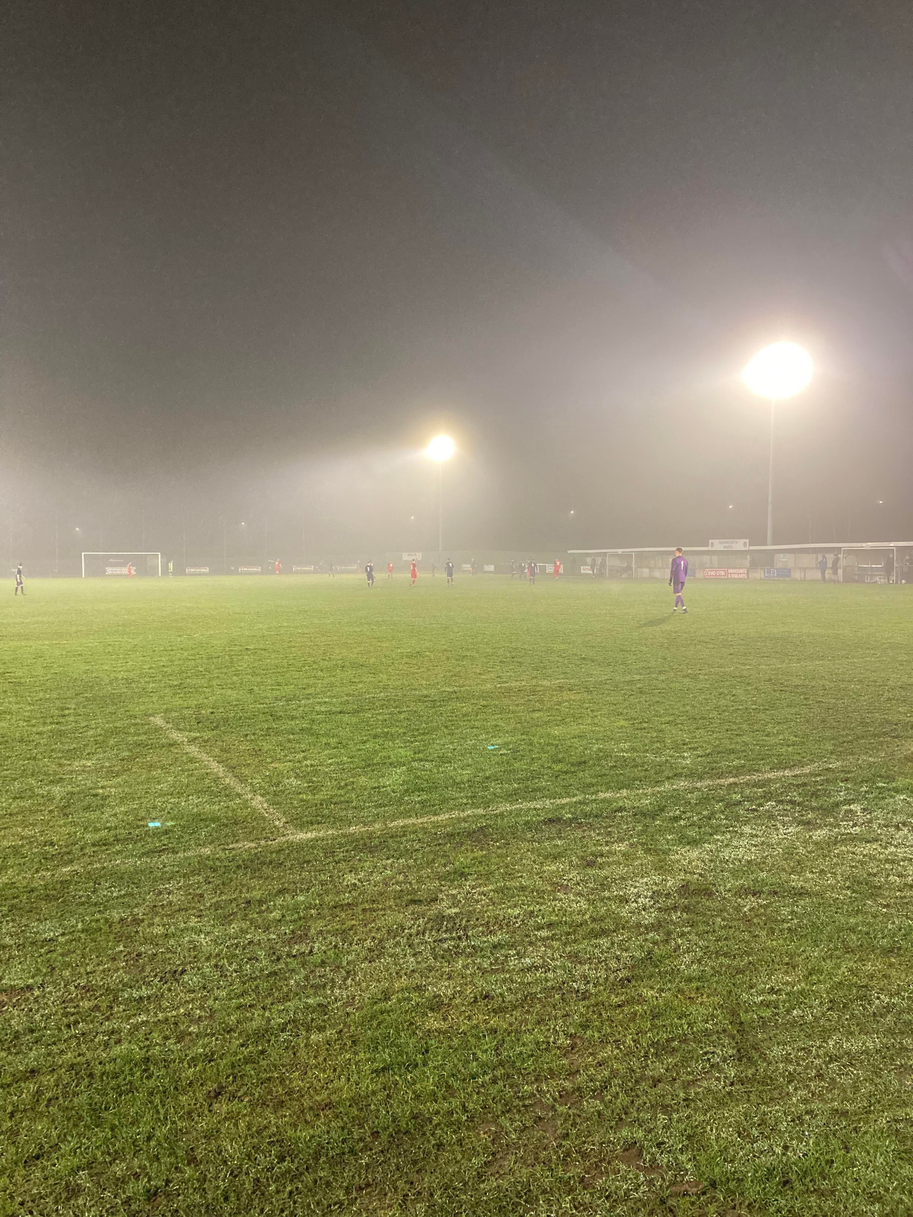 Second half, the fog is starting to show… Let’s hope it doesn’t get any worse! 50 minutes on the clock and Armthorpe win a free kick in the Rainworth half on the left side… The Rainworth manager is not happy!! He’s been shown a Yellow Card along with his assistant for their protests… Don’t think the assistant needed to be booked… The free kick is lumped into the box, it’s flicked on to Rhys Plater who gets a sight of goal, the shot!! Brilliant save by Warren Squires! Corner for Armthorpe, in it comes… Cleared by Rainworth.
