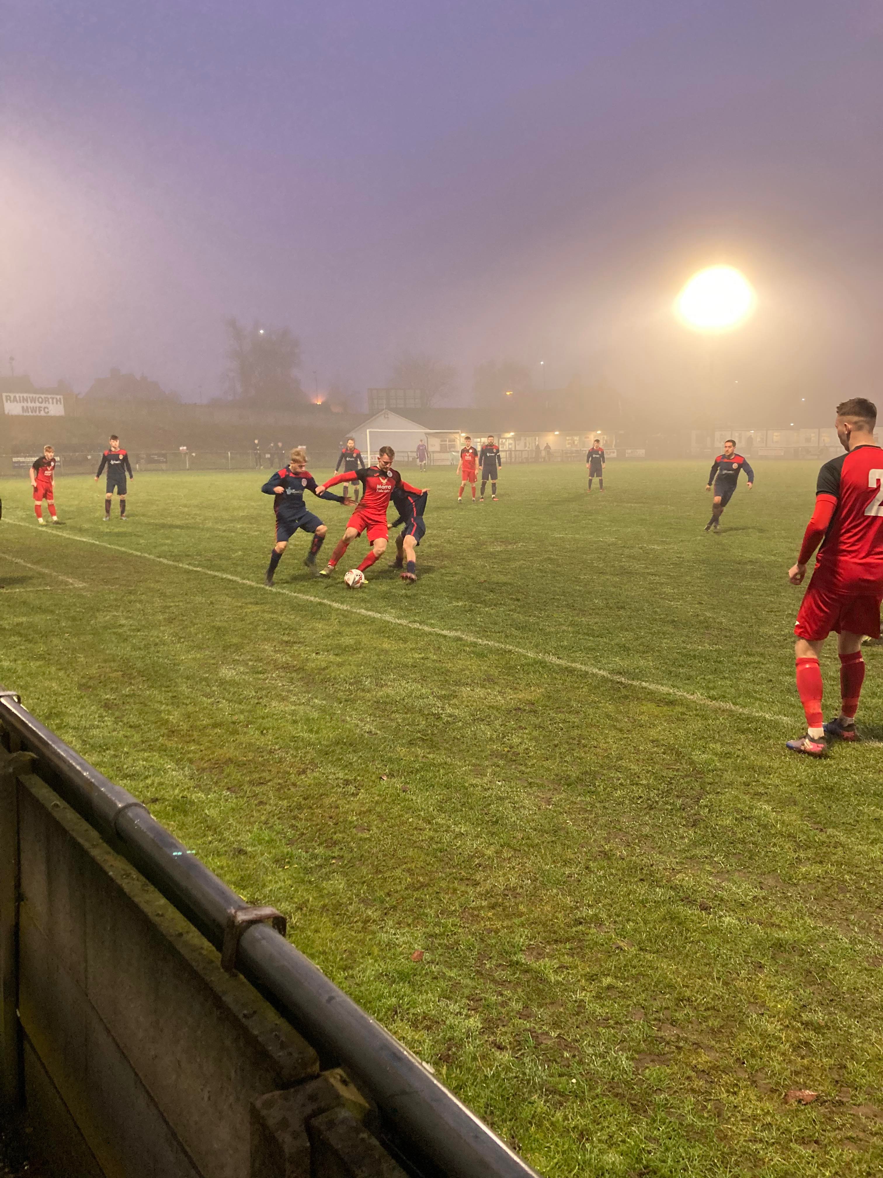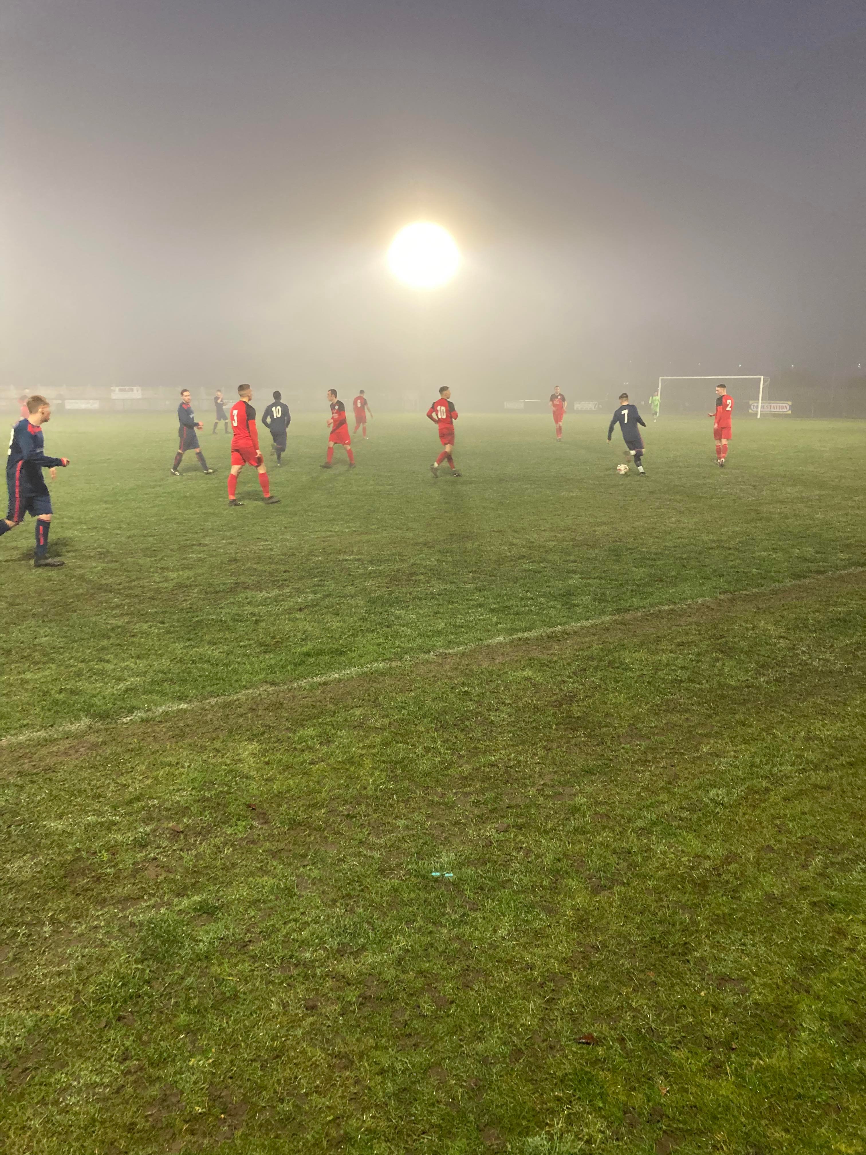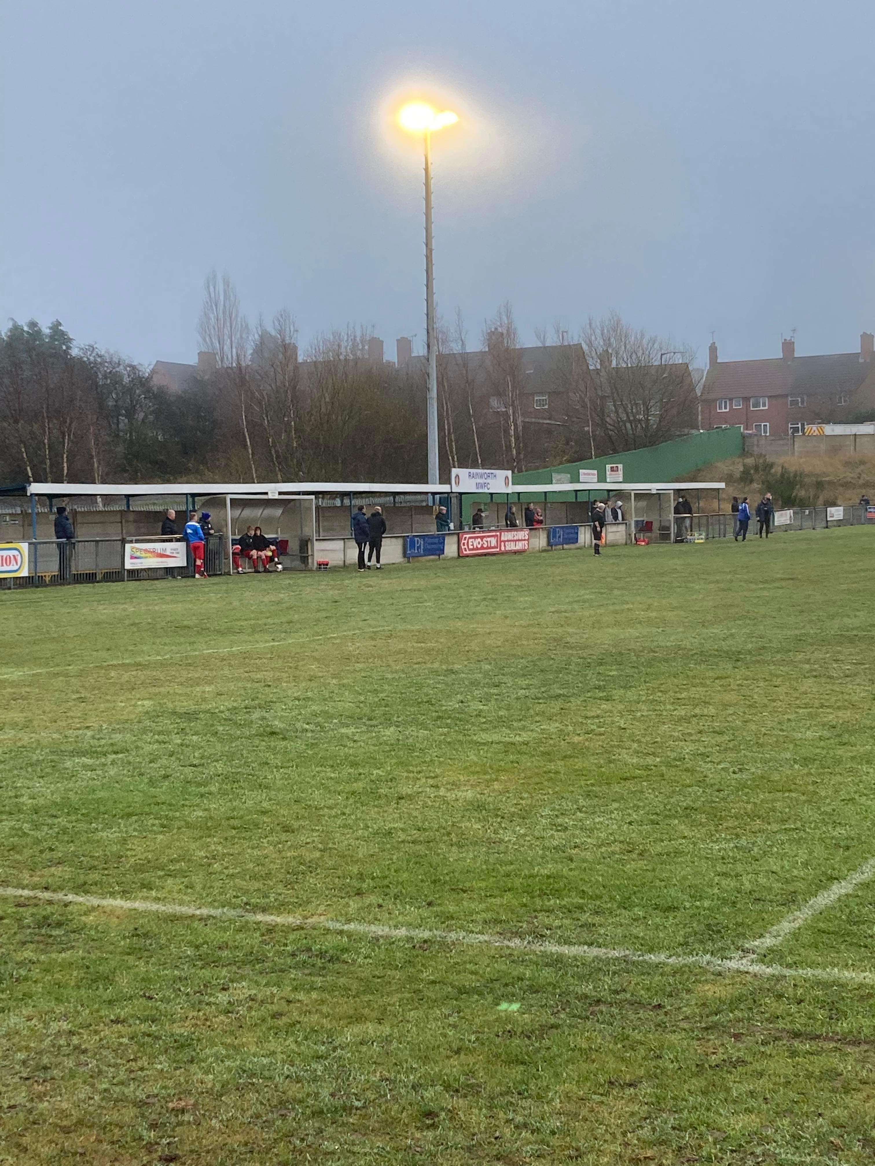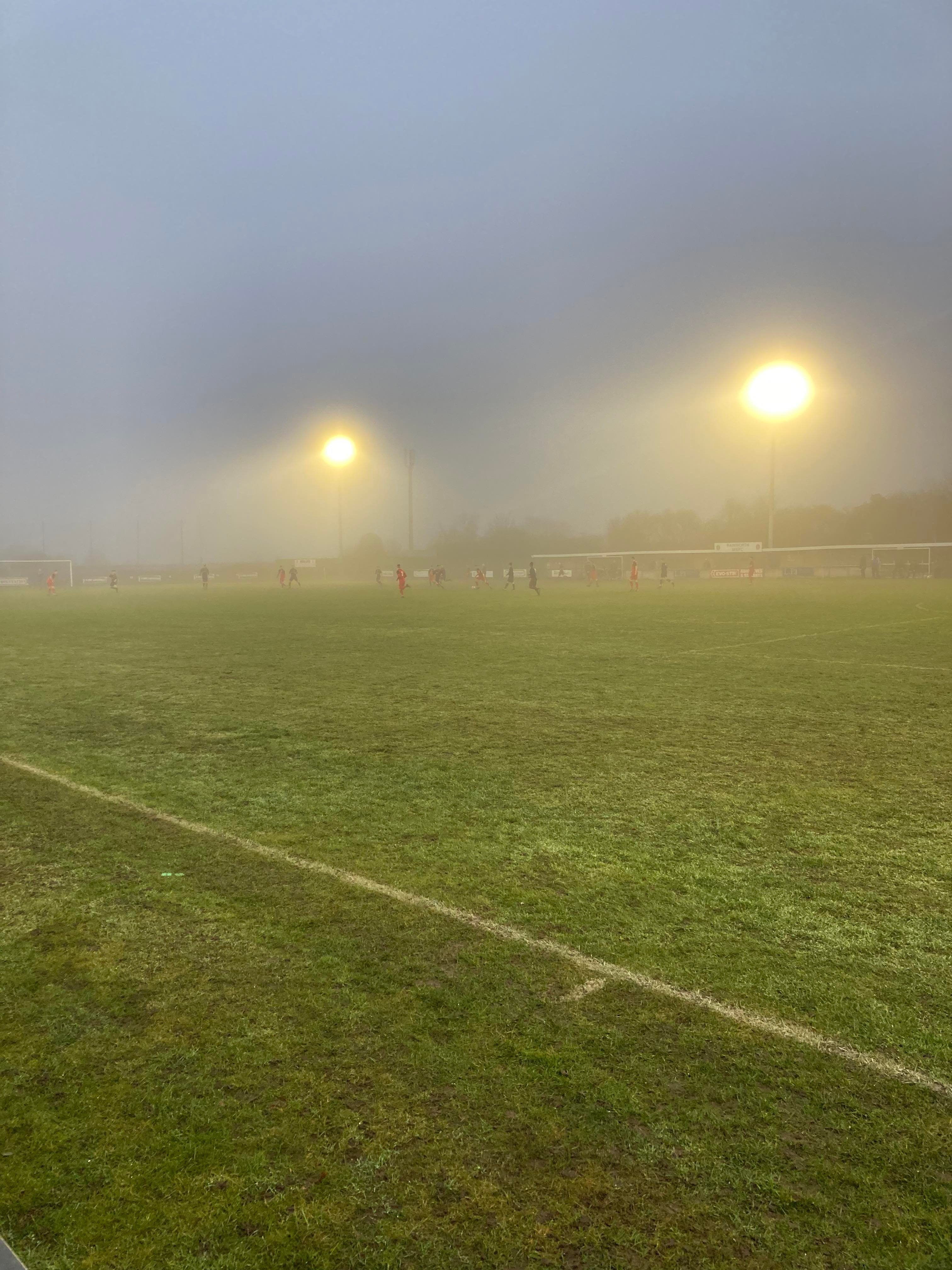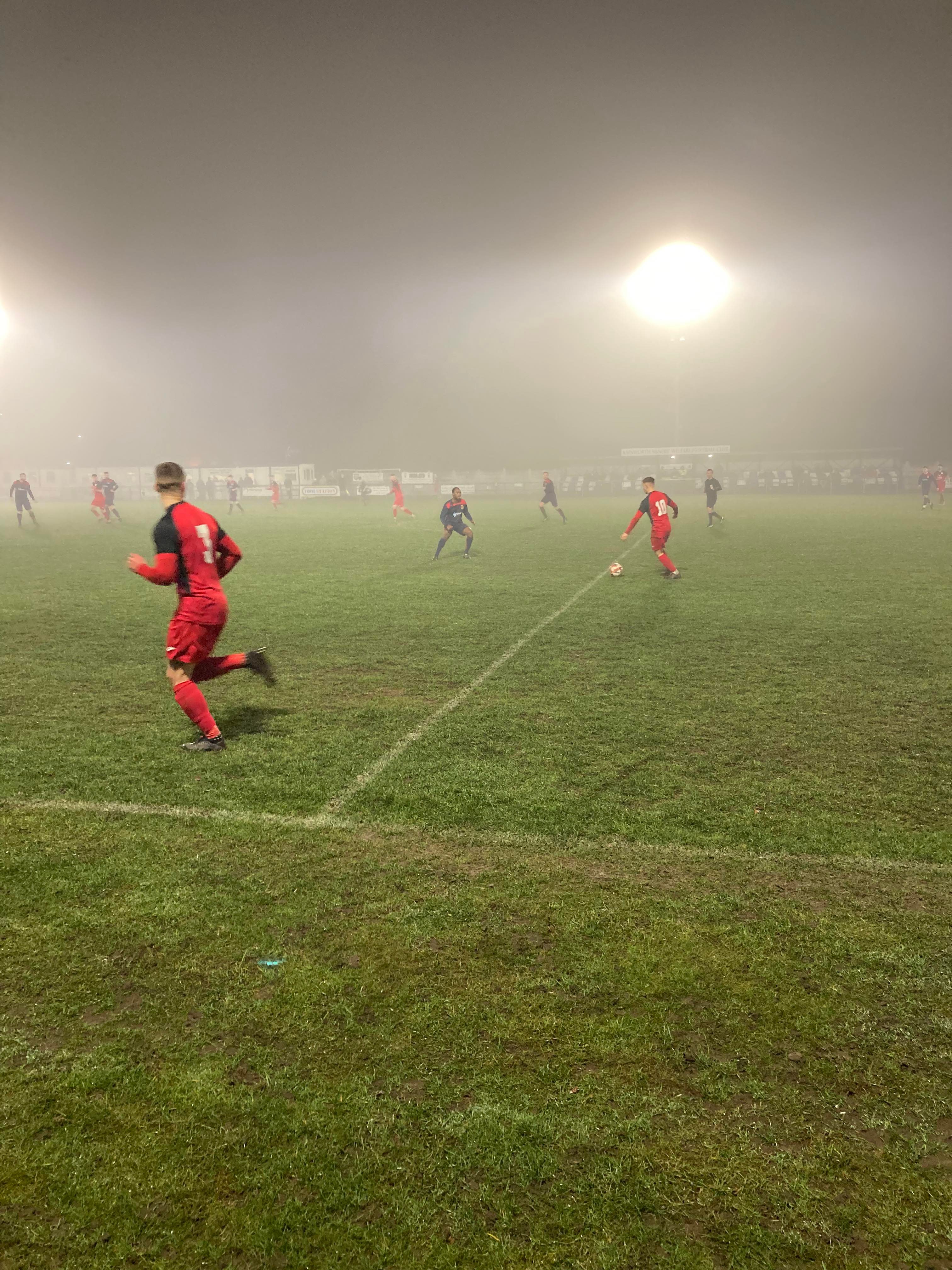 Second half, the fog is starting to show… Let’s hope it doesn’t get any worse! 50 minutes on the clock and Armthorpe win a free kick in the Rainworth half on the left side… The Rainworth manager is not happy!! He’s been shown a Yellow Card along with his assistant for their protests… Don’t think the assistant needed to be booked… The free kick is lumped into the box, it’s flicked on to Rhys Plater who gets a sight of goal, the shot!! Brilliant save by Warren Squires! Corner for Armthorpe, in it comes… Cleared by Rainworth.