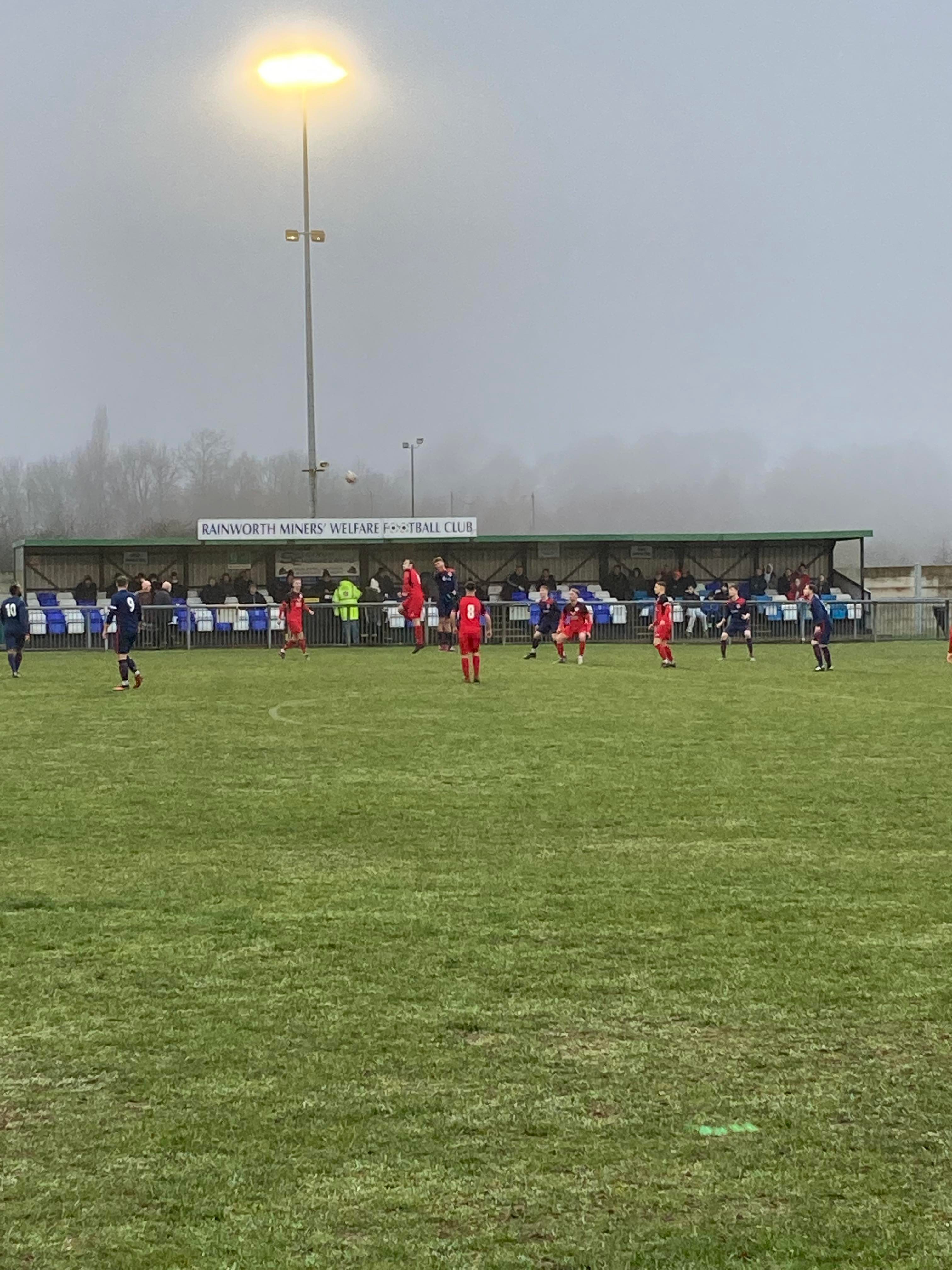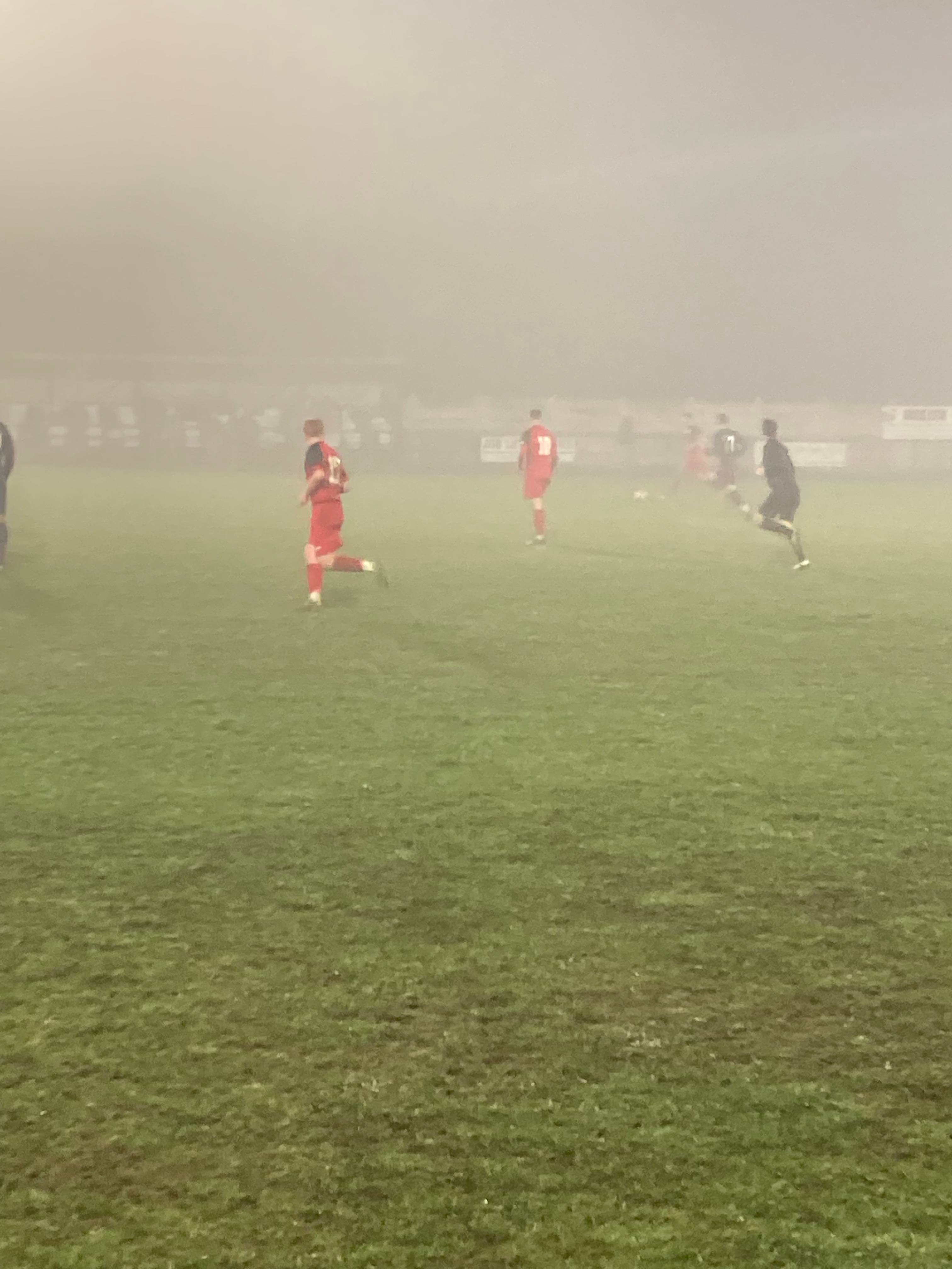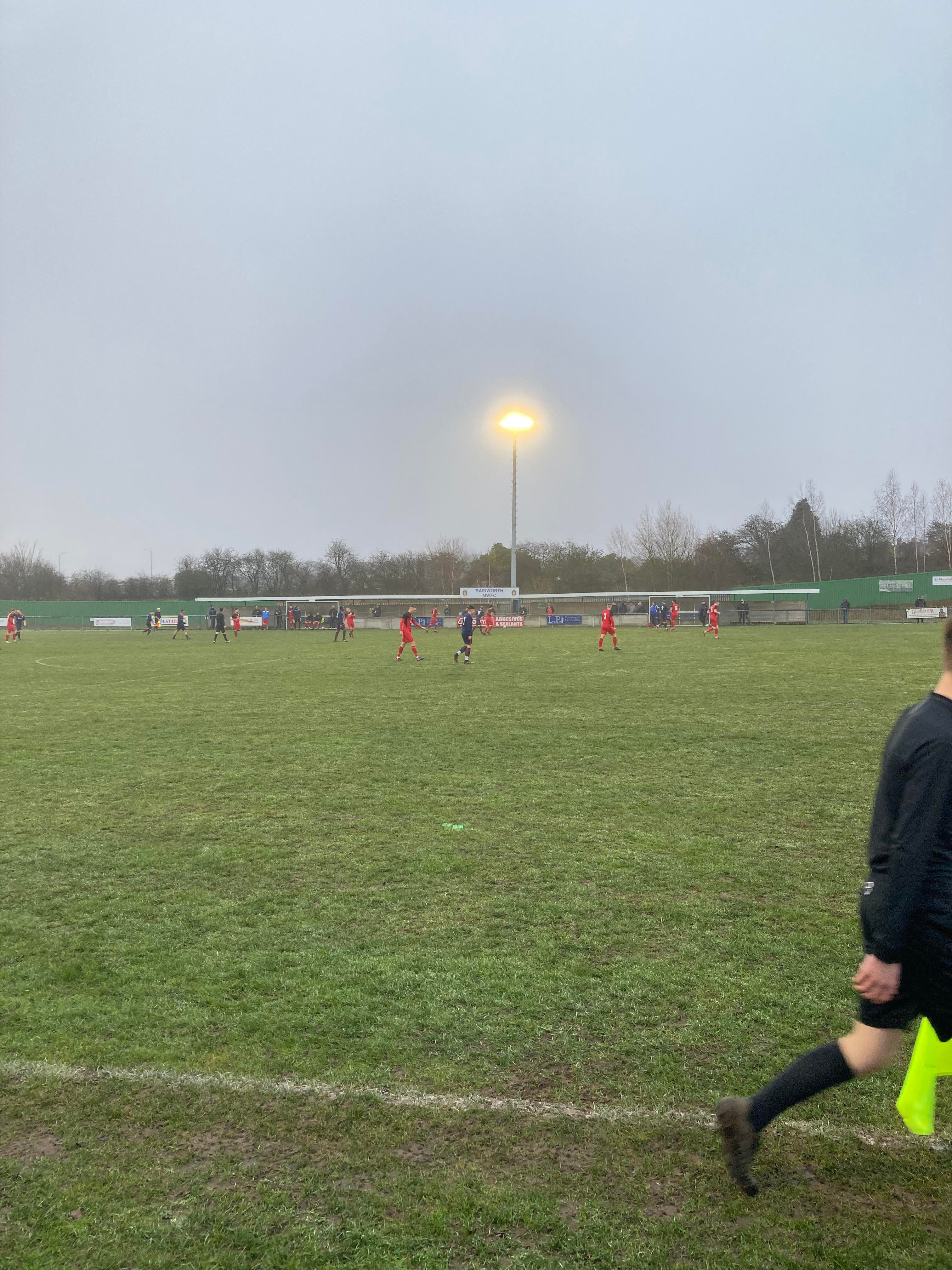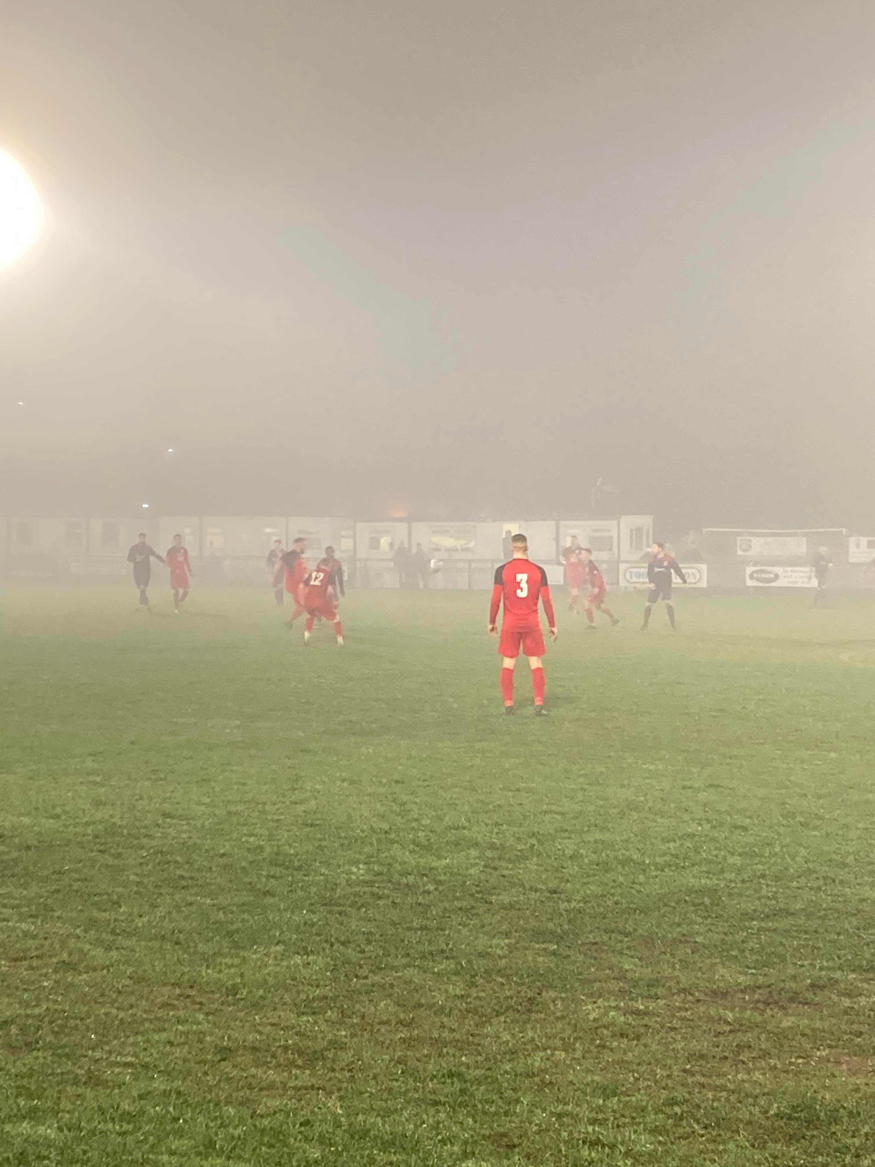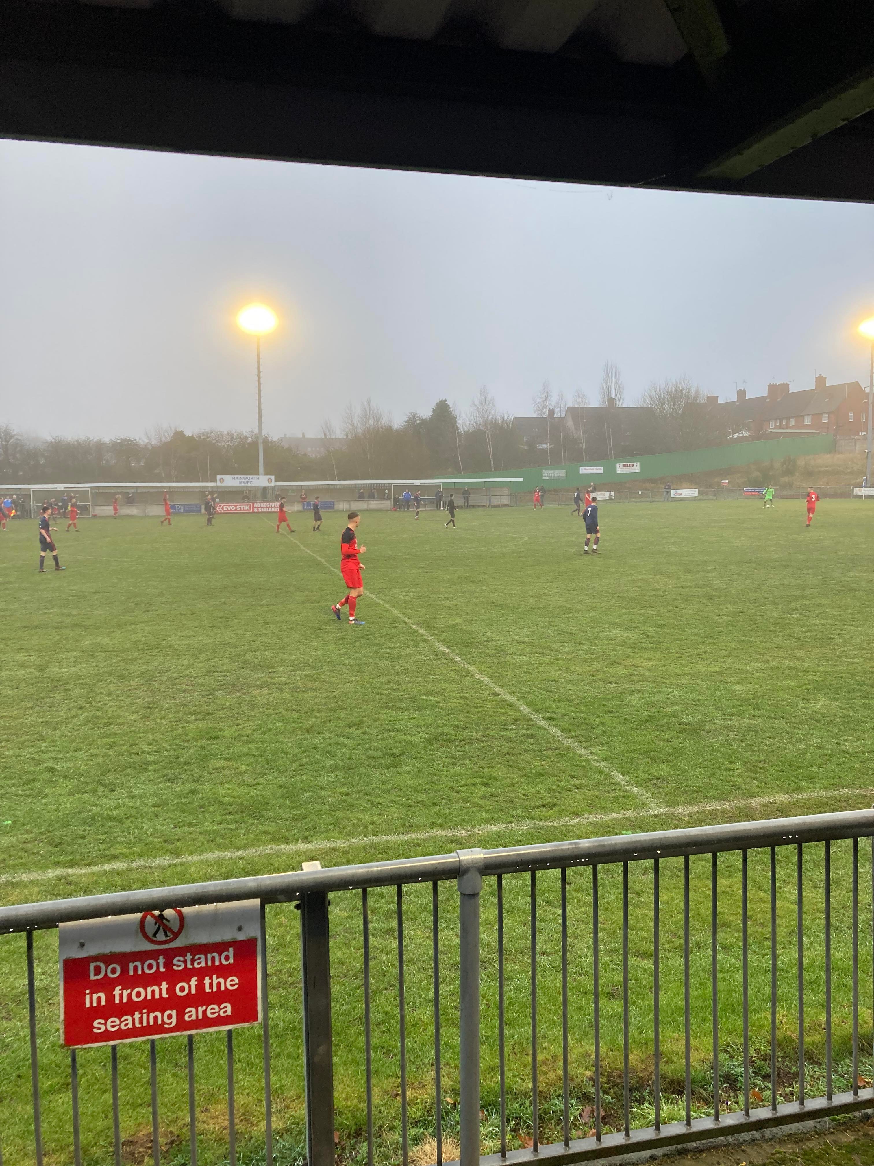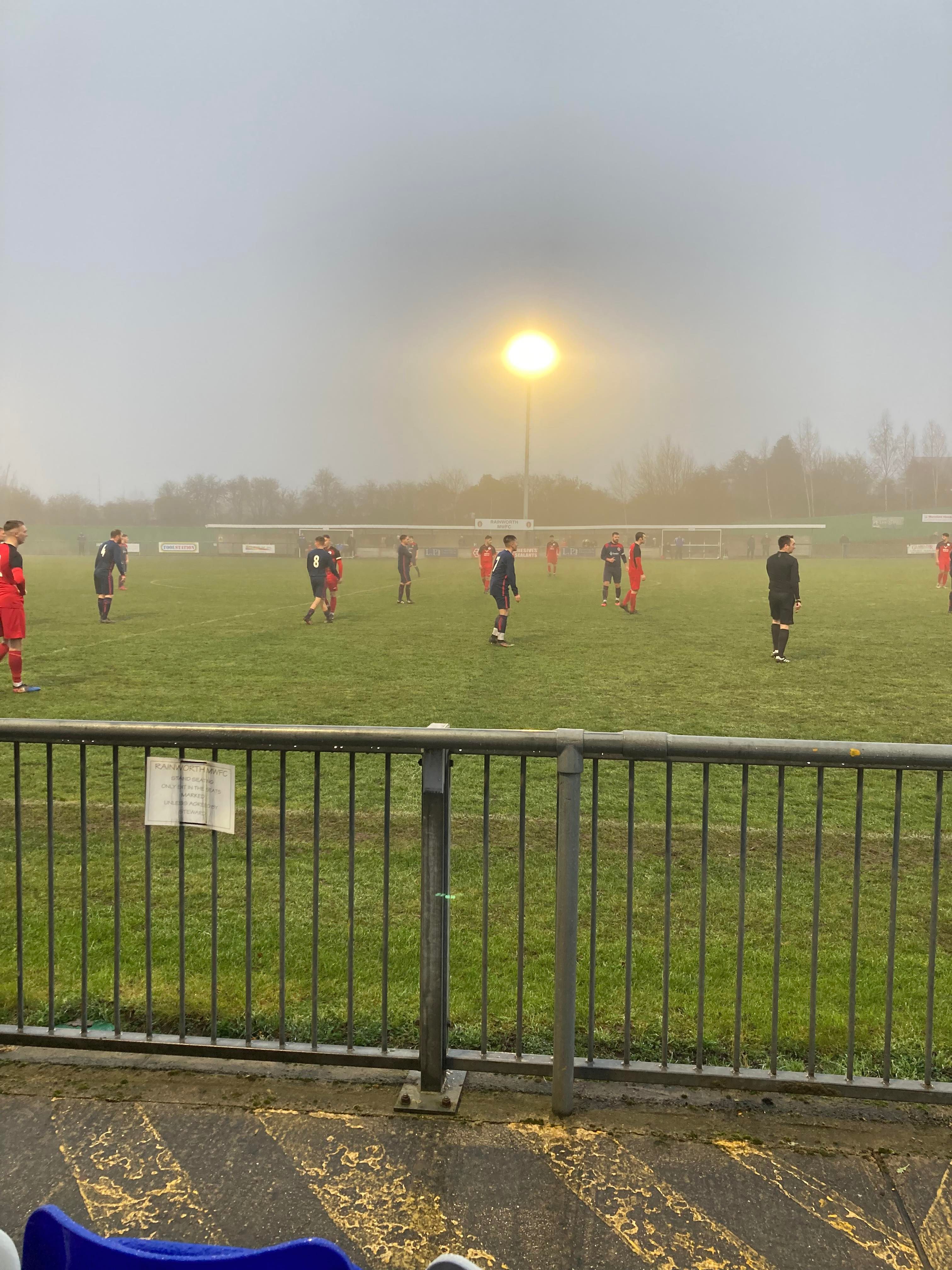 Second half, the fog is starting to show… Let’s hope it doesn’t get any worse! 50 minutes on the clock and Armthorpe win a free kick in the Rainworth half on the left side… The Rainworth manager is not happy!! He’s been shown a Yellow Card along with his assistant for their protests… Don’t think the assistant needed to be booked… The free kick is lumped into the box, it’s flicked on to Rhys Plater who gets a sight of goal, the shot!! Brilliant save by Warren Squires! Corner for Armthorpe, in it comes… Cleared by Rainworth.