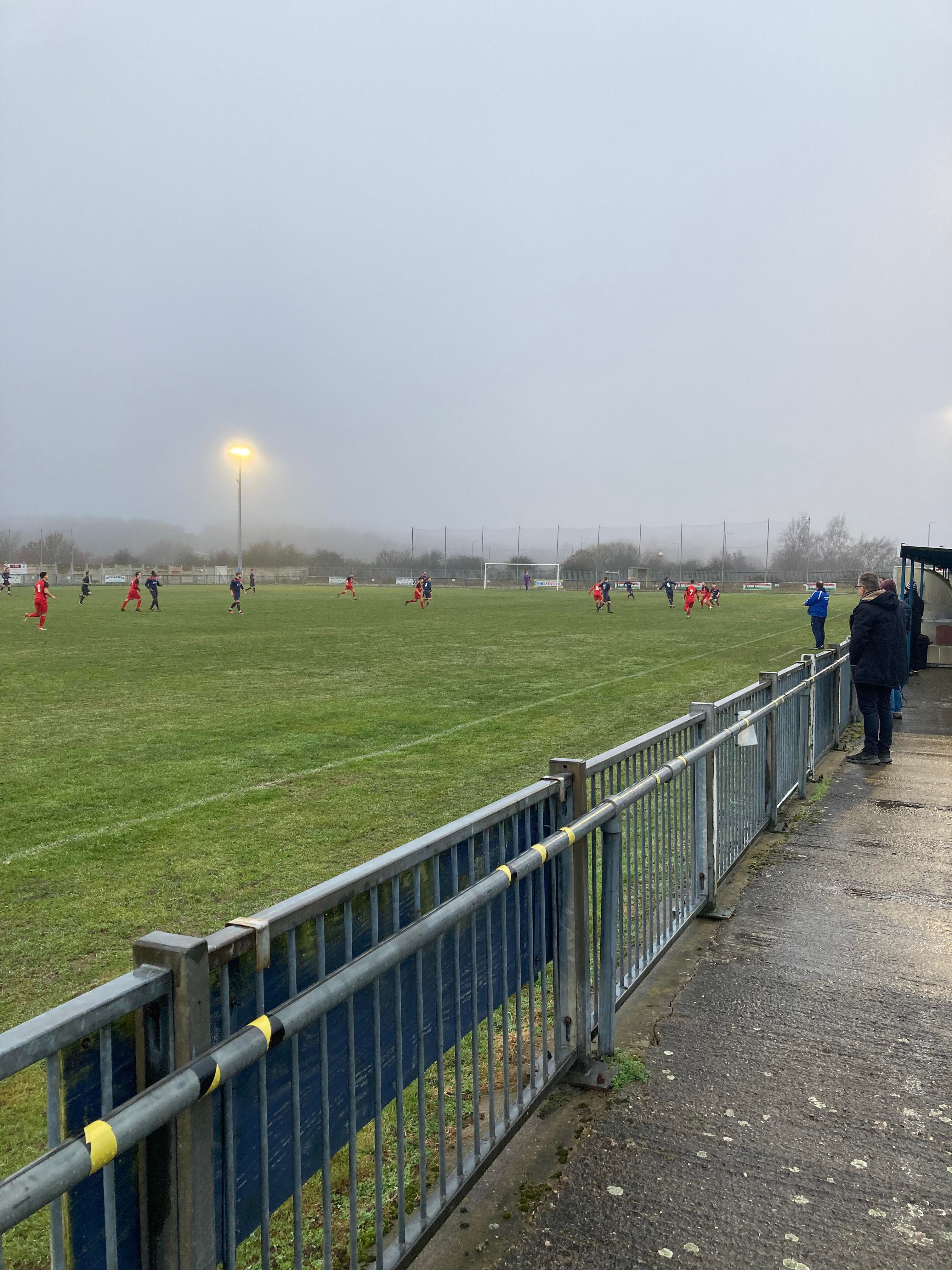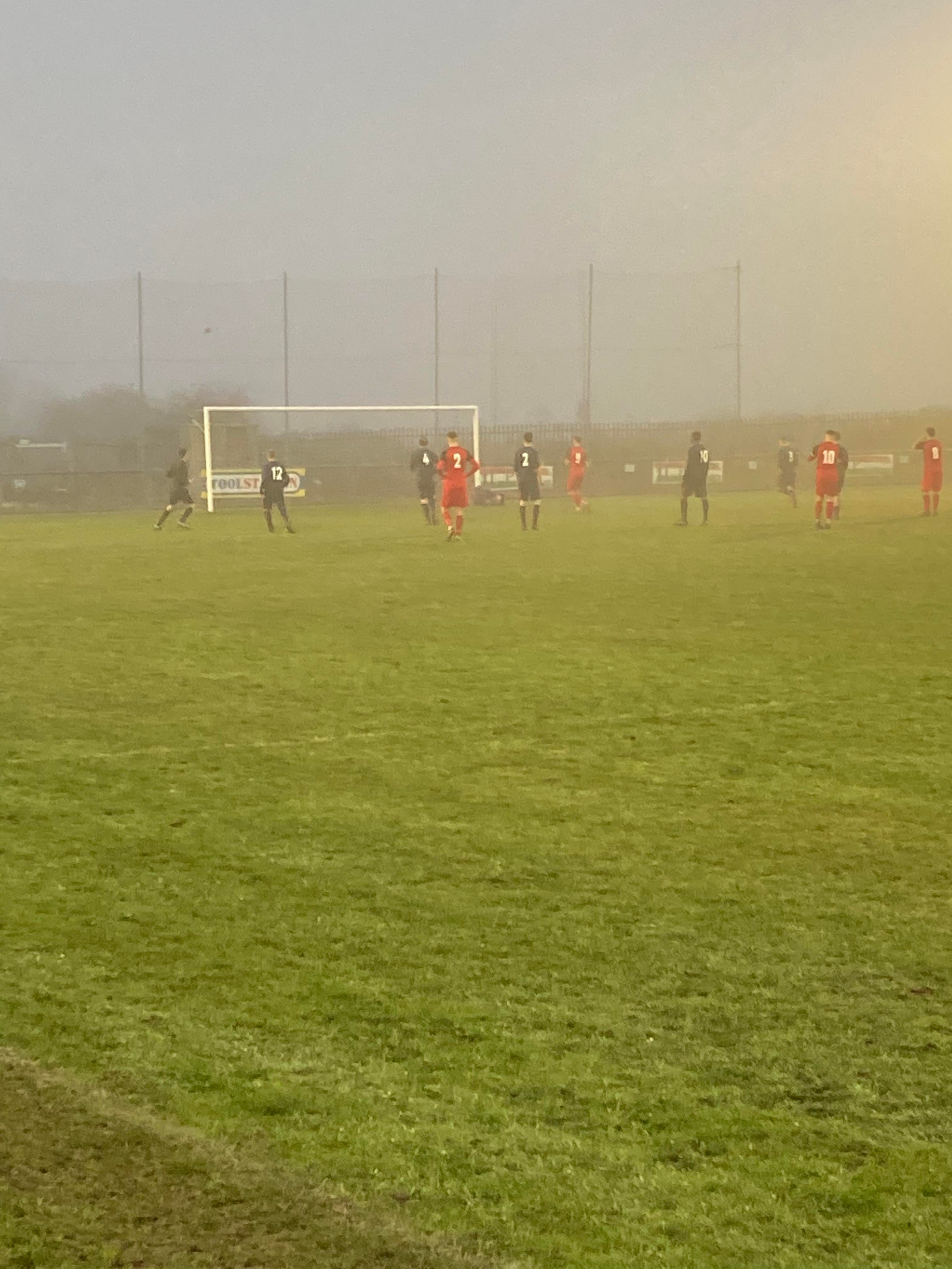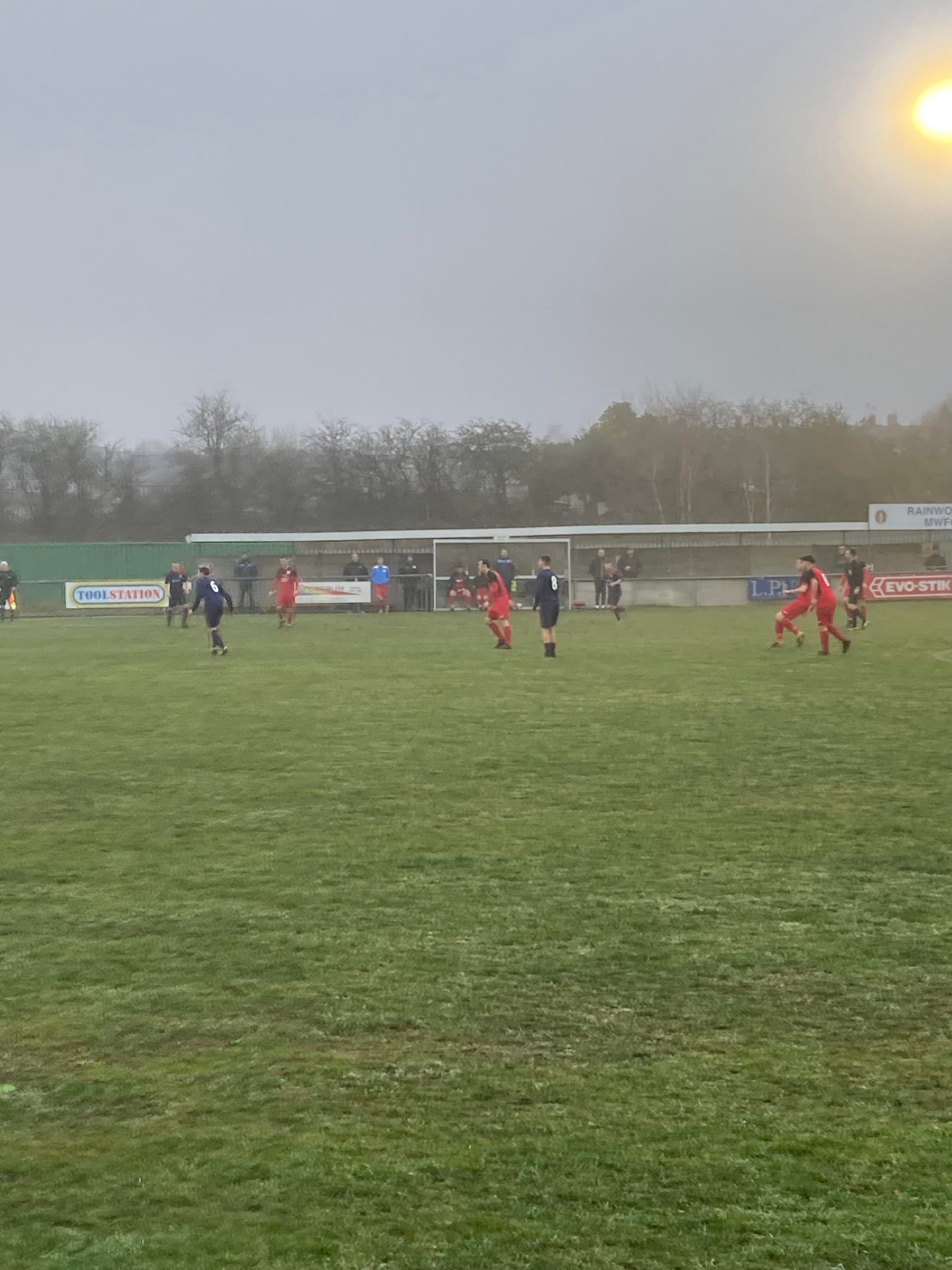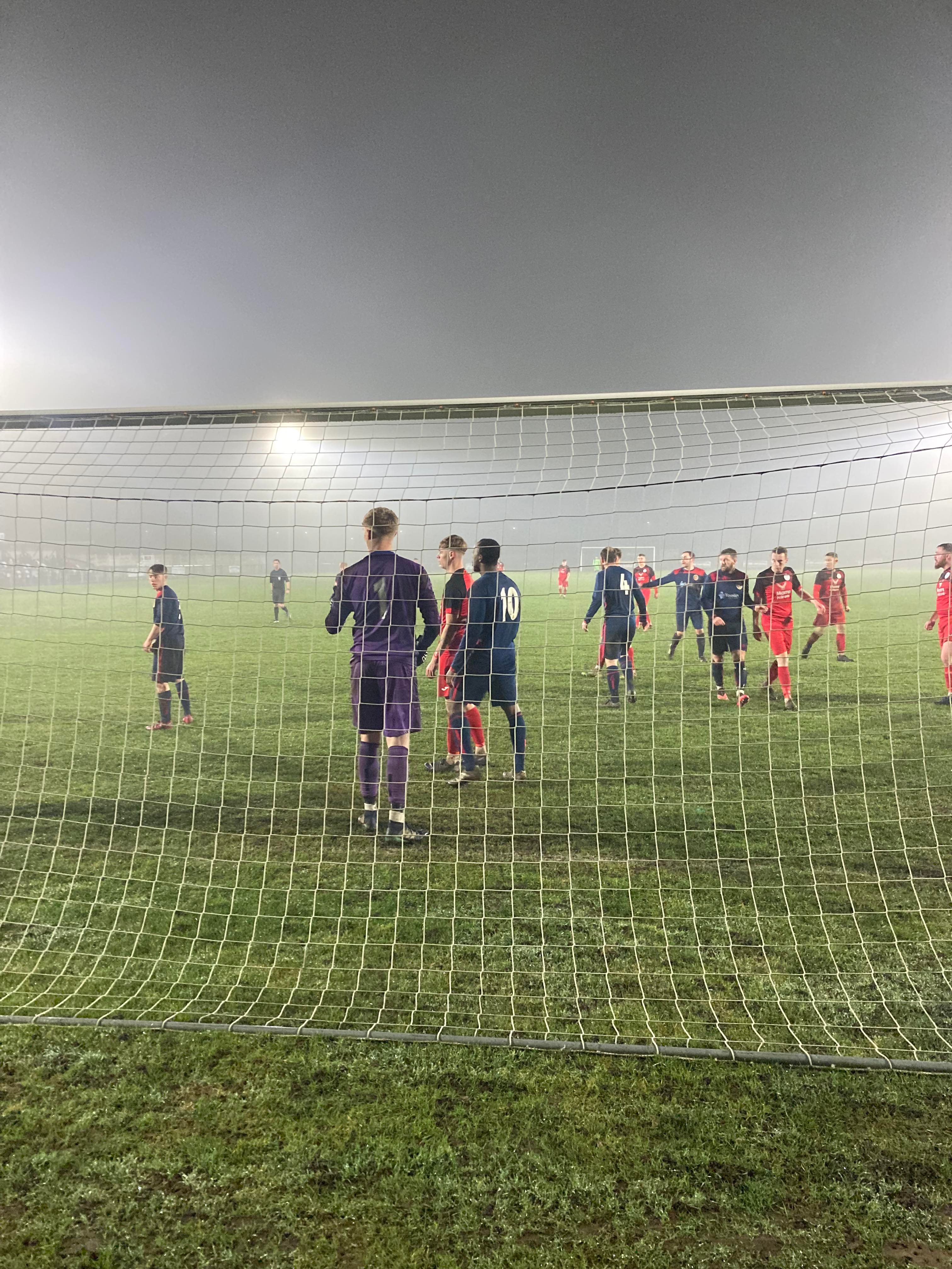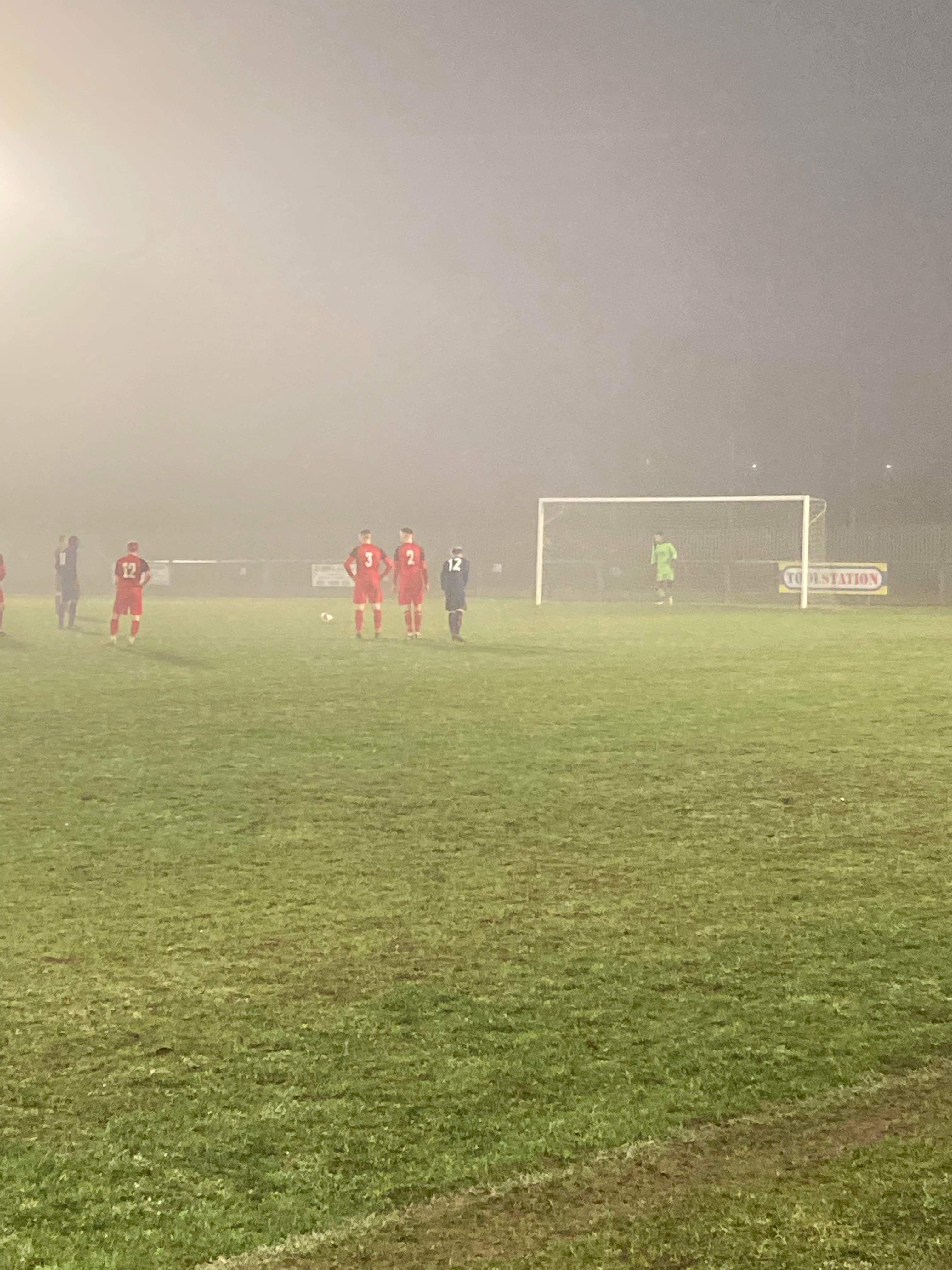 Second half, the fog is starting to show… Let’s hope it doesn’t get any worse! 50 minutes on the clock and Armthorpe win a free kick in the Rainworth half on the left side… The Rainworth manager is not happy!! He’s been shown a Yellow Card along with his assistant for their protests… Don’t think the assistant needed to be booked… The free kick is lumped into the box, it’s flicked on to Rhys Plater who gets a sight of goal, the shot!! Brilliant save by Warren Squires! Corner for Armthorpe, in it comes… Cleared by Rainworth.