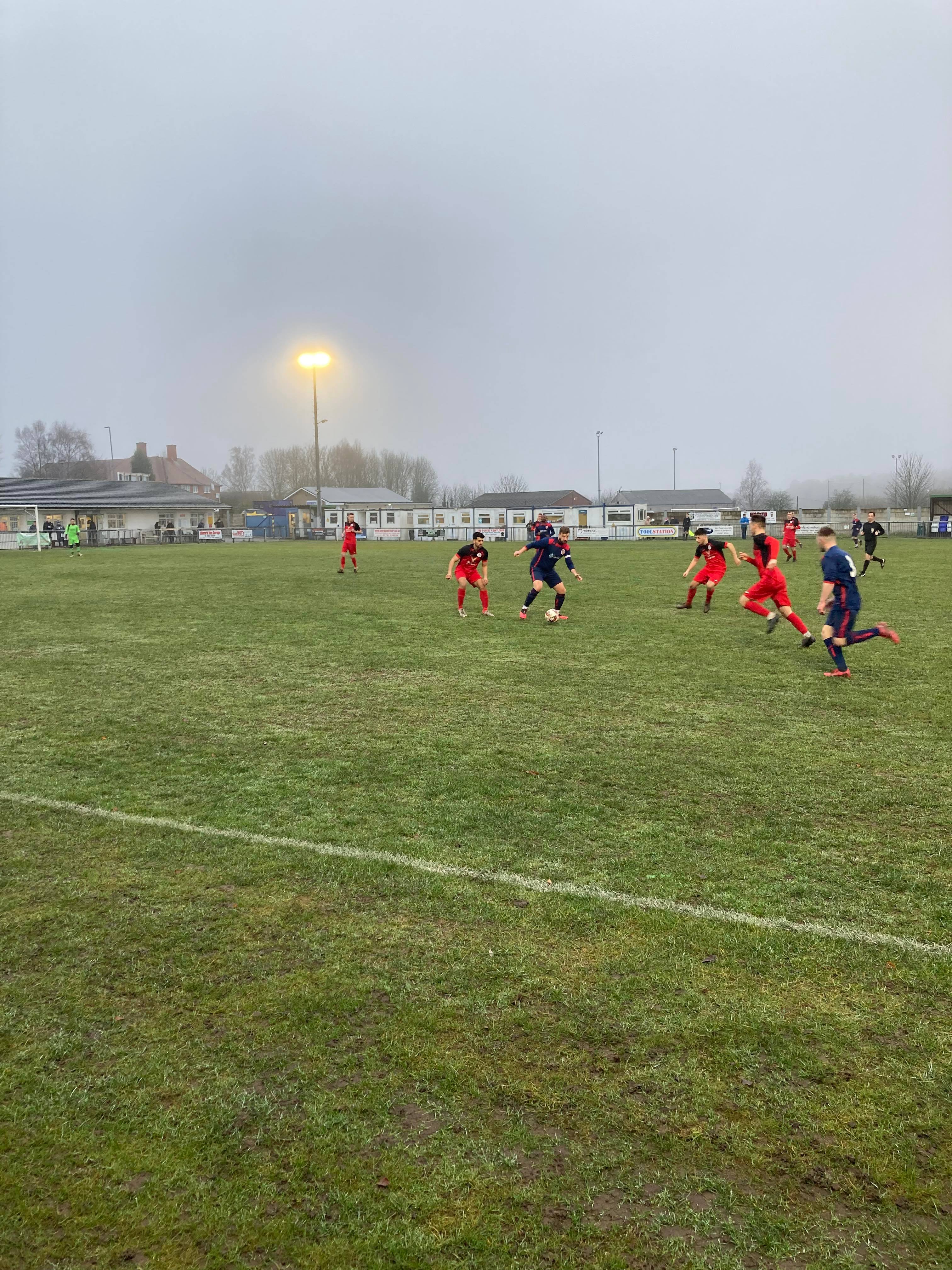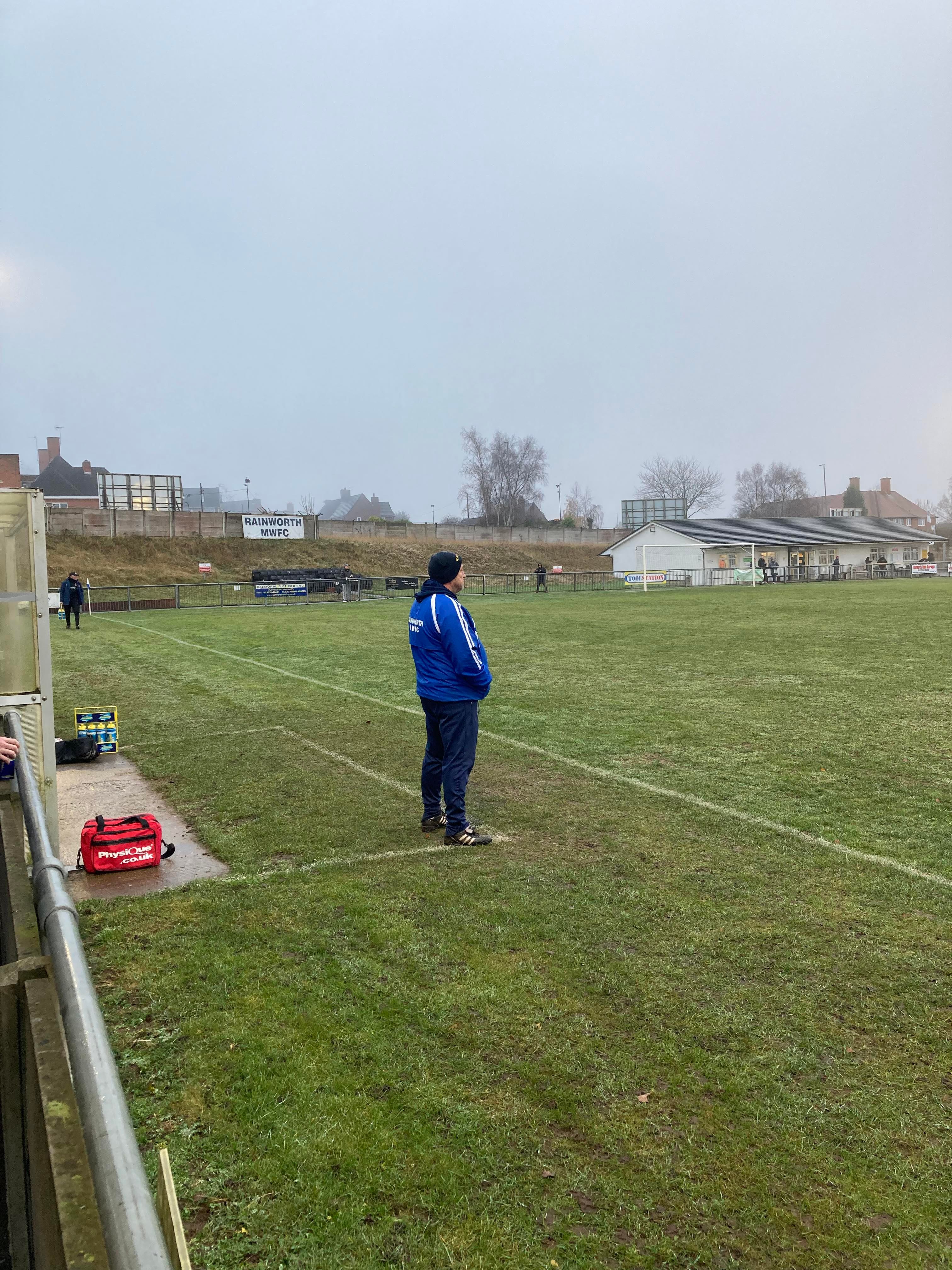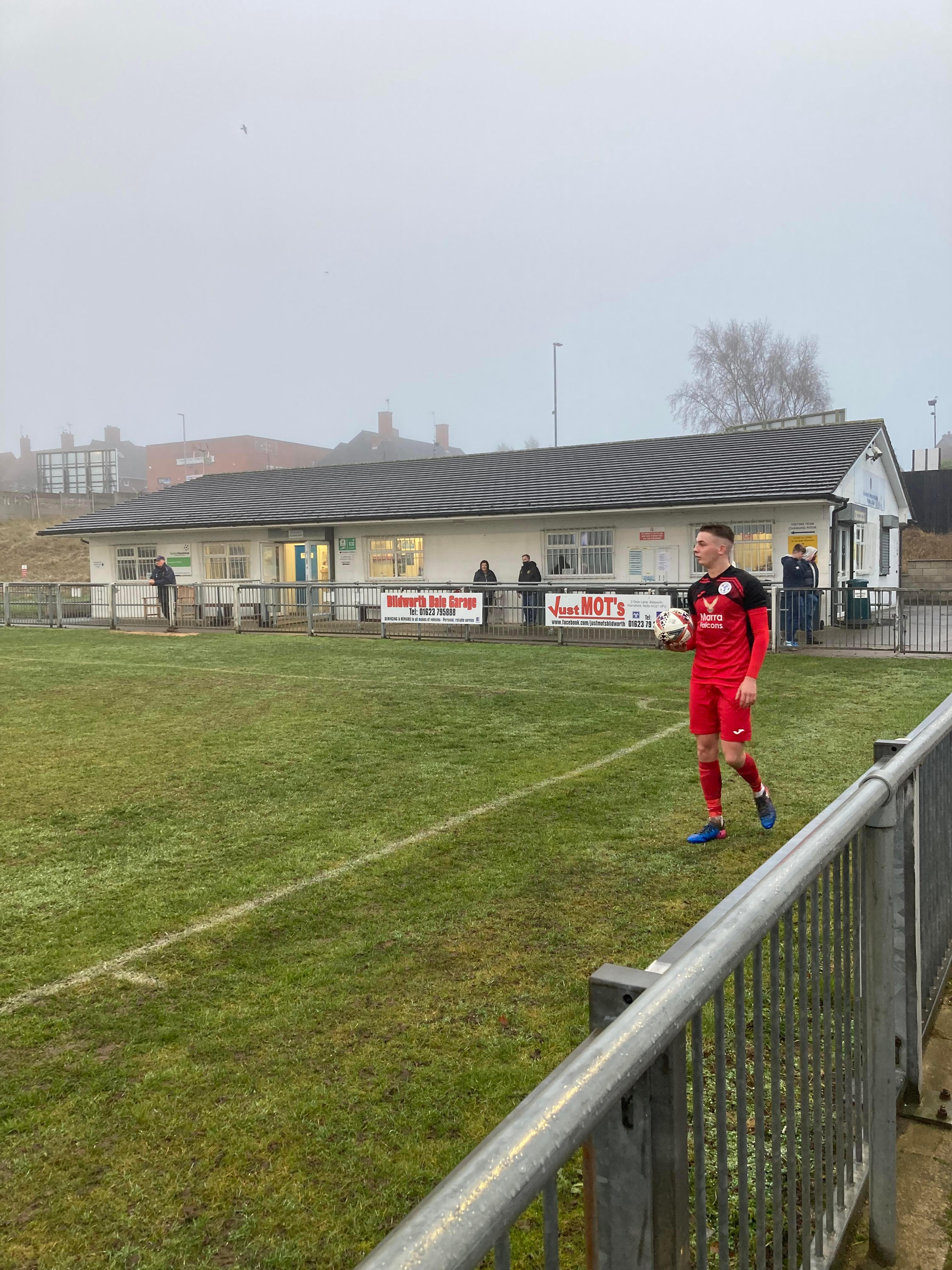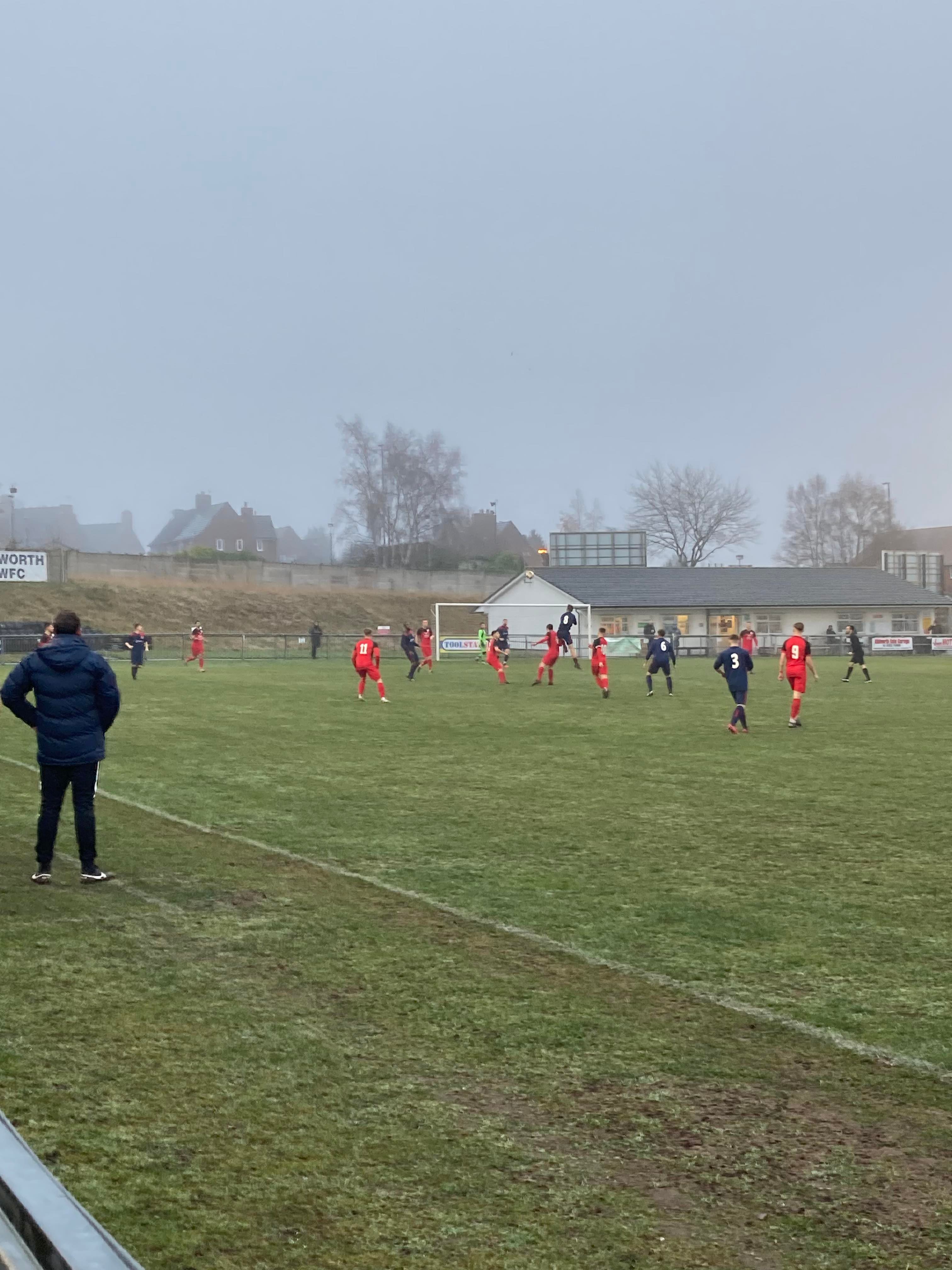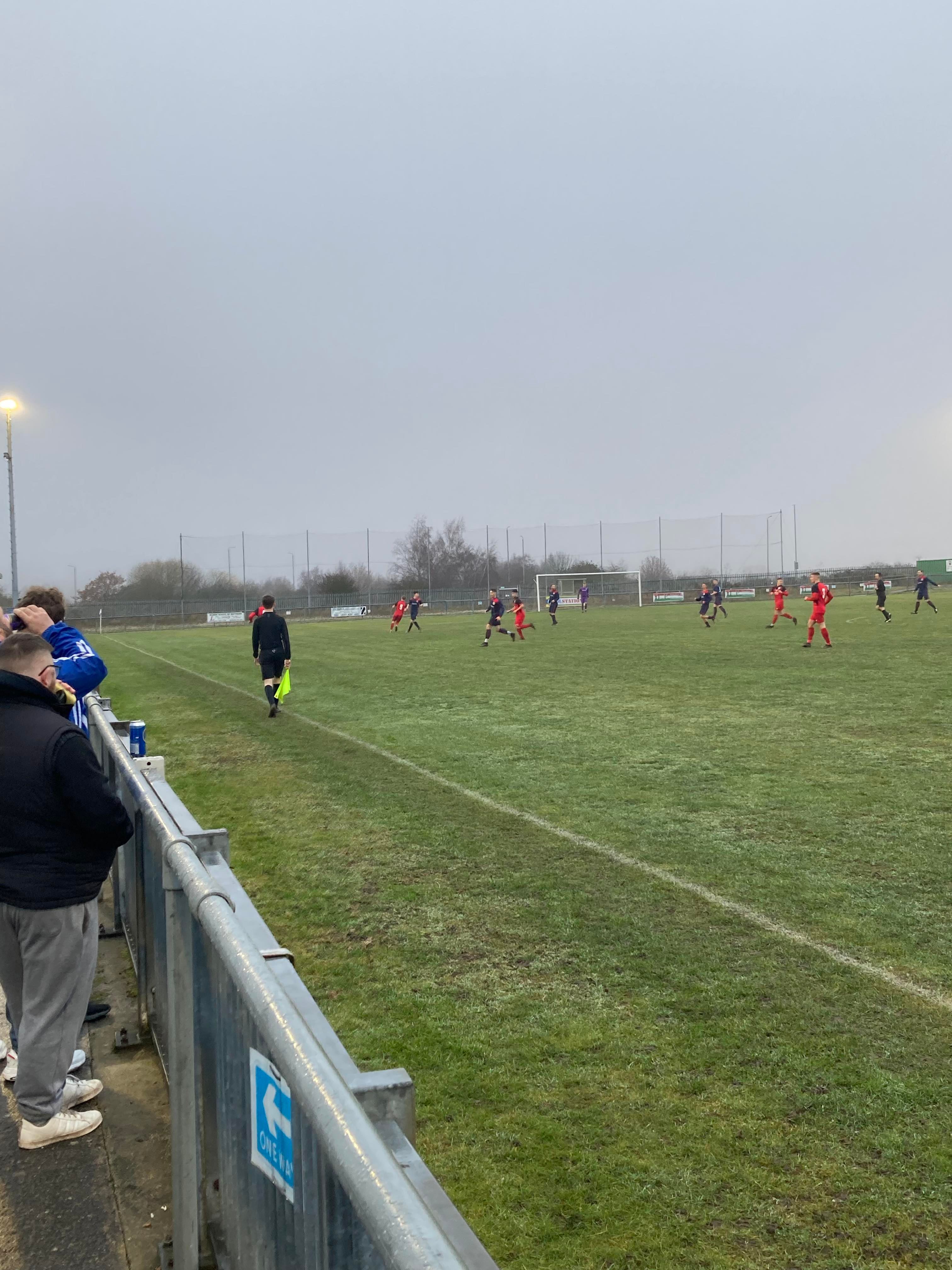 Second half, the fog is starting to show… Let’s hope it doesn’t get any worse! 50 minutes on the clock and Armthorpe win a free kick in the Rainworth half on the left side… The Rainworth manager is not happy!! He’s been shown a Yellow Card along with his assistant for their protests… Don’t think the assistant needed to be booked… The free kick is lumped into the box, it’s flicked on to Rhys Plater who gets a sight of goal, the shot!! Brilliant save by Warren Squires! Corner for Armthorpe, in it comes… Cleared by Rainworth.