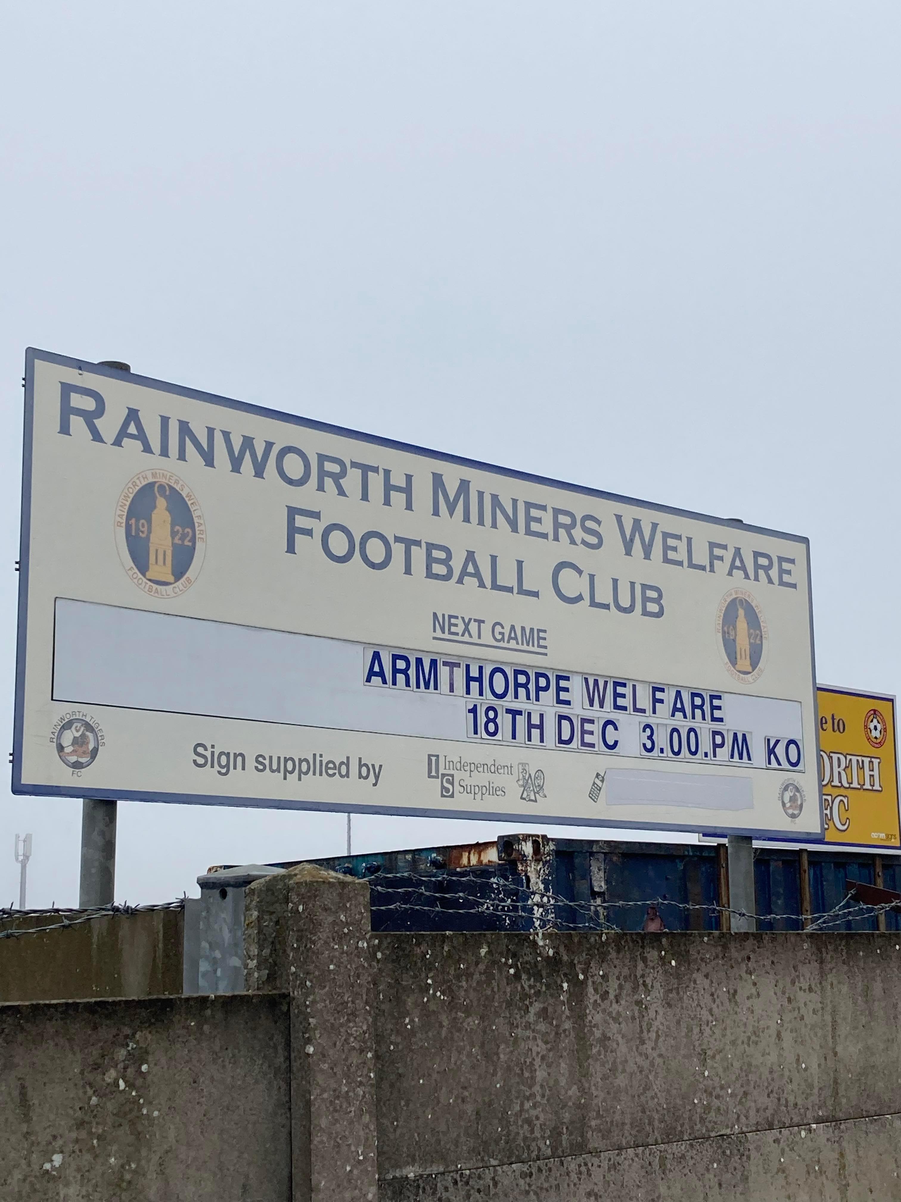 The Welfare Ground, Kirklington Road, home of Rainworth Miners Welfare based in Nottinghamshire and play their trade in Step 6 of the non league pyramid in the Northern Counties East League Division One. How many grounds have the name “Welfare Ground” in this country I wonder?? Better known as “Ren’erth” by locals. Once a club playing at Step 4 level! But not any more unfortunately for them… Today they face Armthorpe Welfare in their last home game of 2021, will it be a happy one?