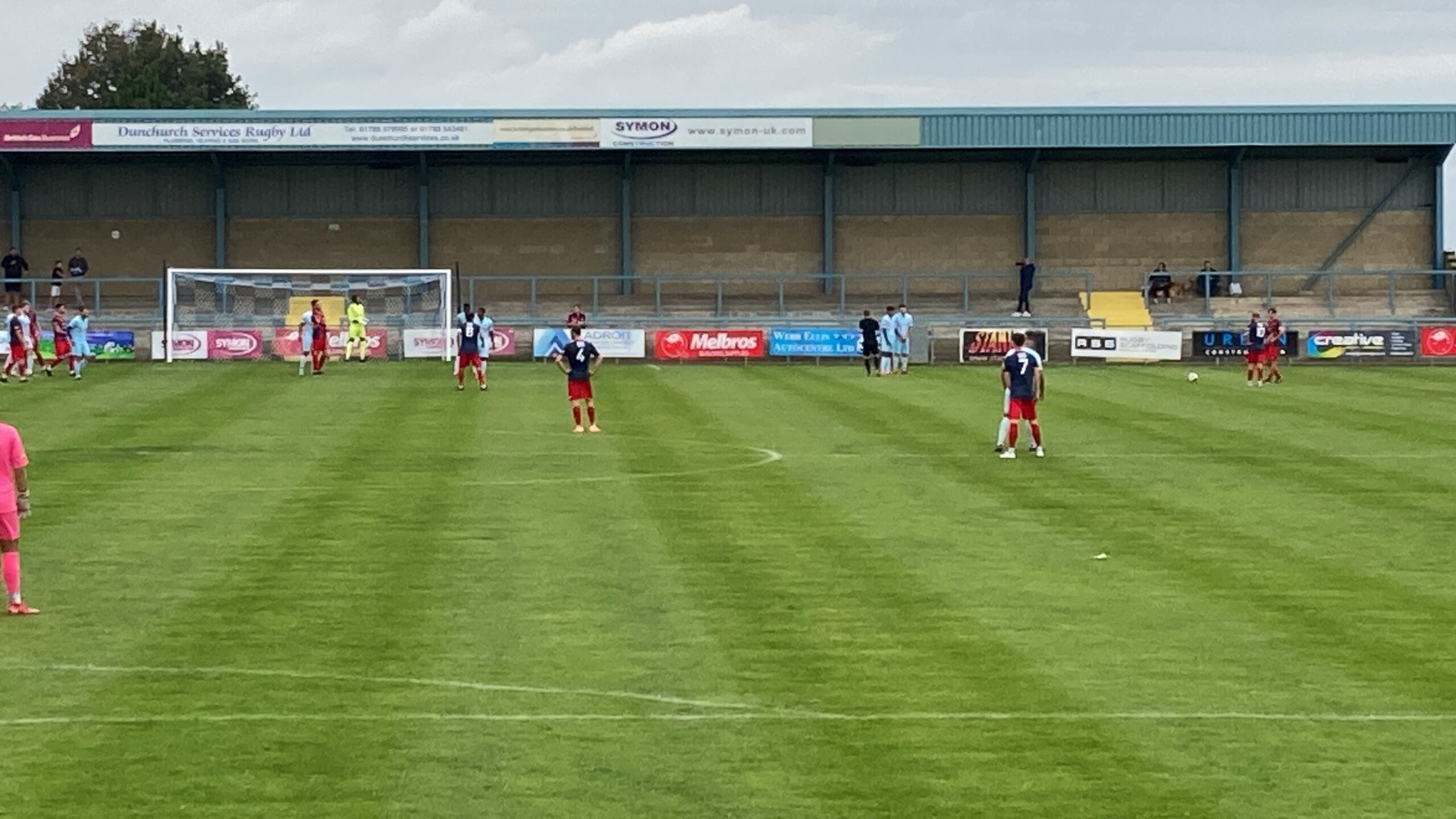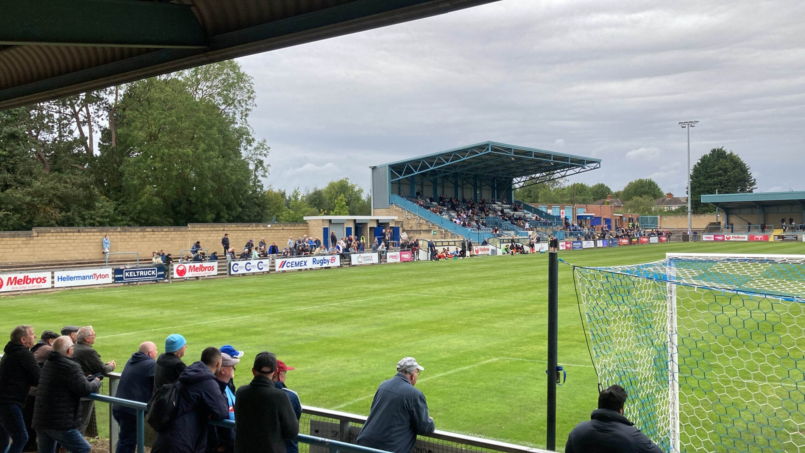 1:45pm and my car is fully repaired and Rugby Town in Warwickshire is 1 hour 15 minutes away. This will be close but let’s go for it! Another County down on the challenge after all this will be fabulous! So it’s onto the M1 and off at the A426 and into the ground just as kick off takes place. £10 to get in here! Ok then!