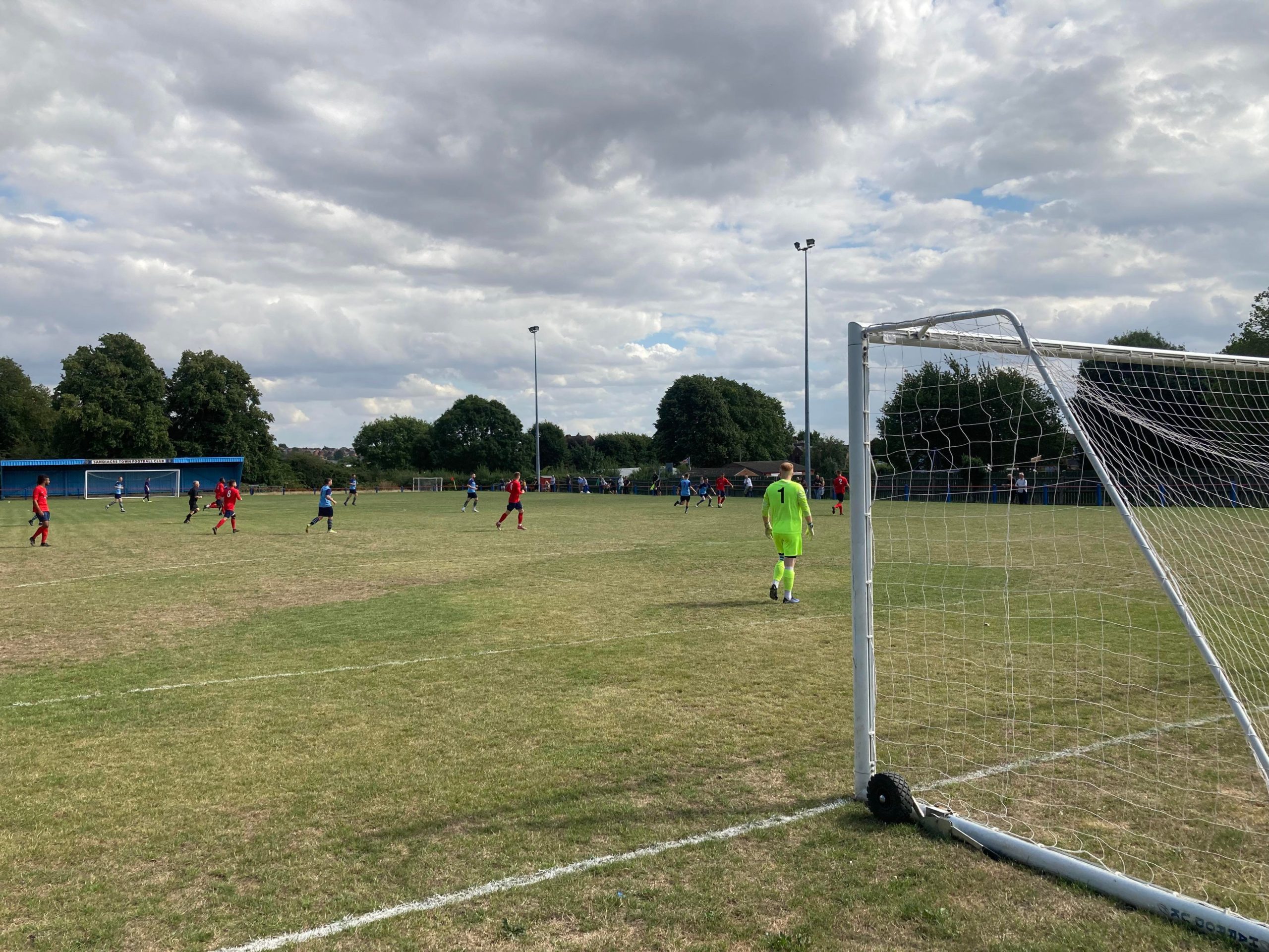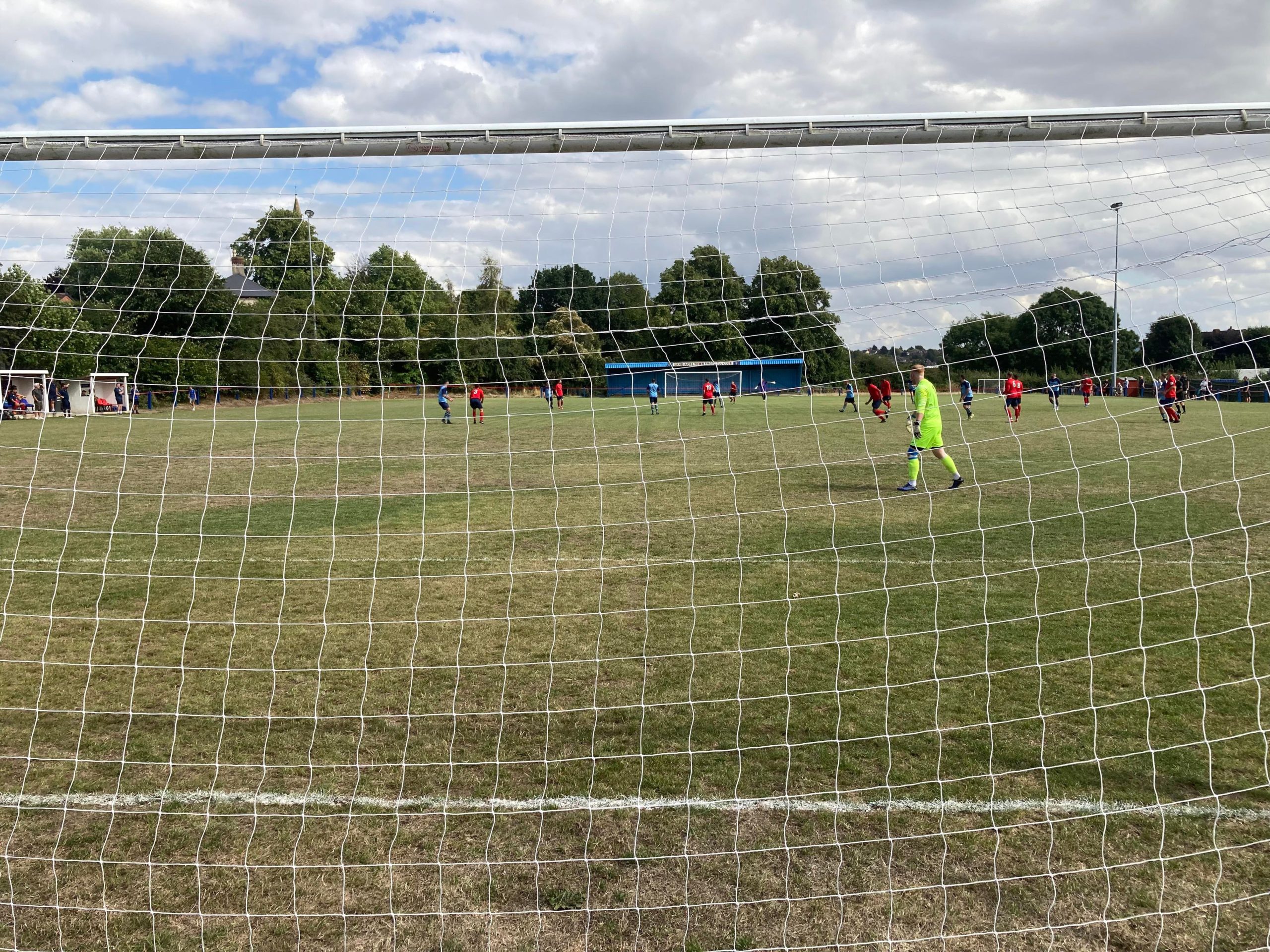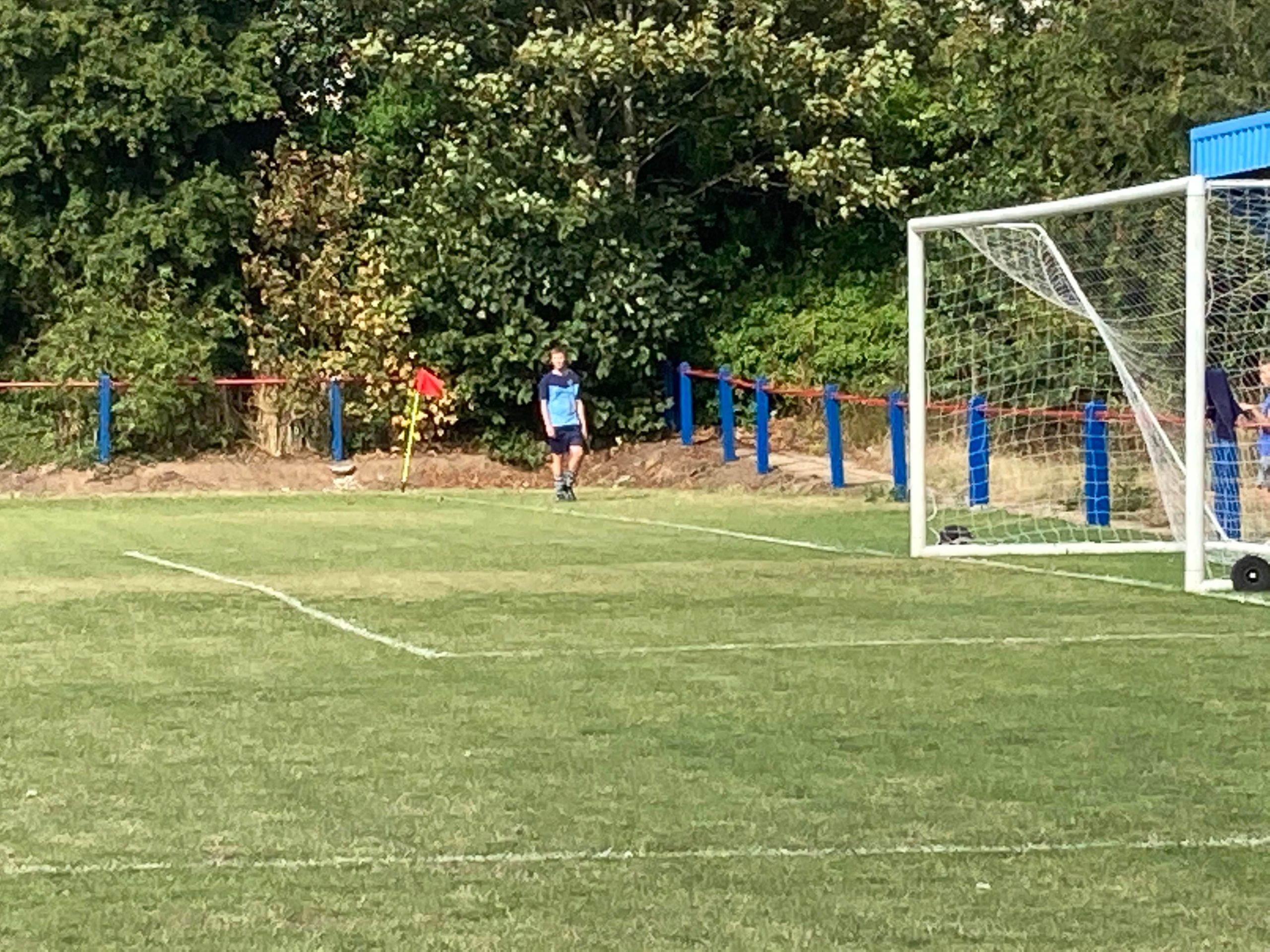 1 minute after that and Wollaton come forward, they play down the right wing and it’s played forward, it comes to number 7 in the box on the left, keeper charges out and he shoots… Side netting! Close! Sandiacre lead 3-0 at the break.