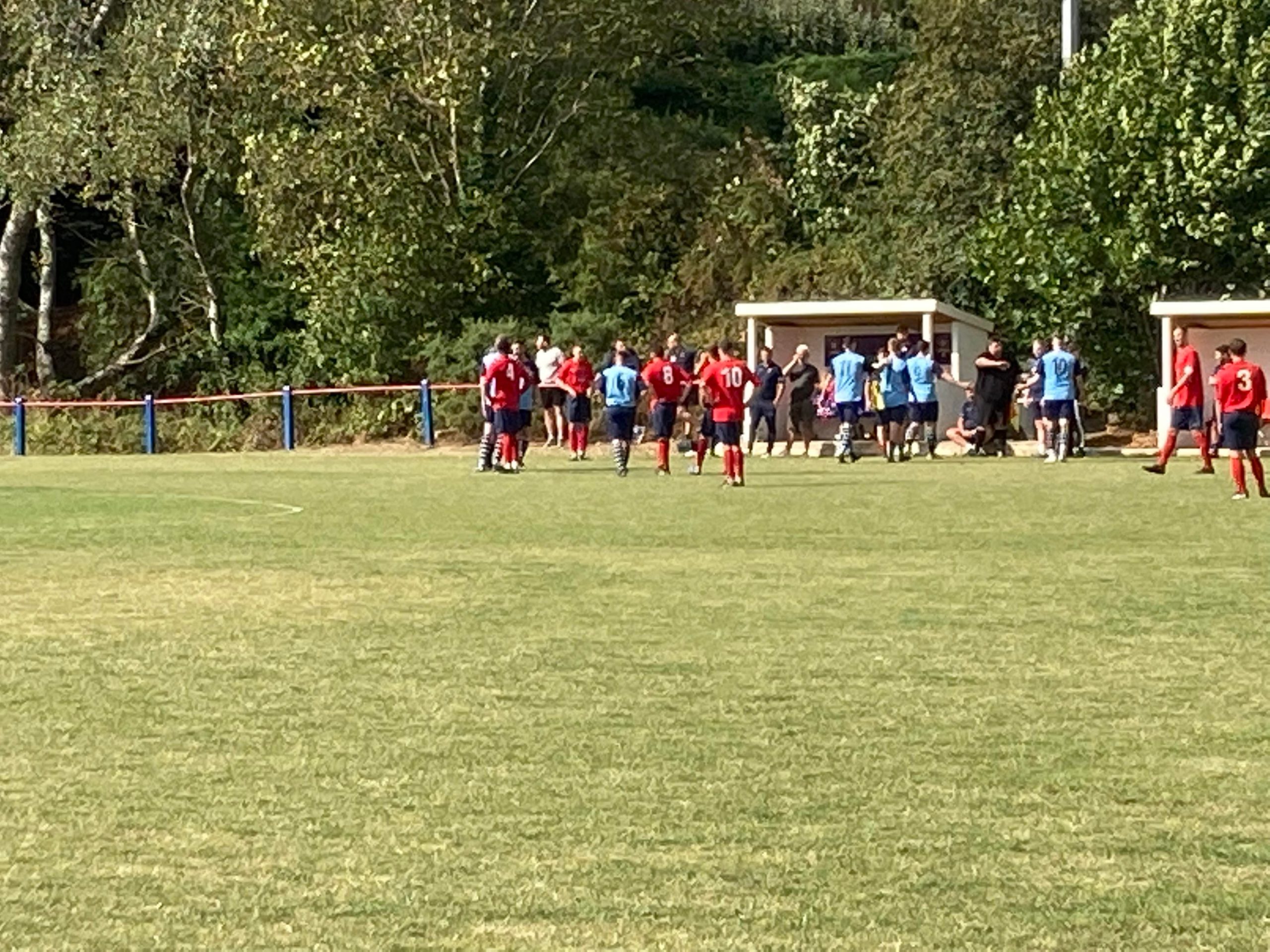 51 minutes on the clock and we have a stoppage in play here as the Referee goes over to his assistant on the far side… Time rolls on… He’s done and he calls over Wollaton’s number 7… He’s off! Red card for Wollaton 7… What for? Has he said something to the linesman? He walks off the pitch, let’s find out. Alleged violent conduct? I didn’t see it personally but apparently as he went to hold off a Sandiacre player, the linesman felt that he slapped him… Hopefully not true! Wollaton down to 10 men.