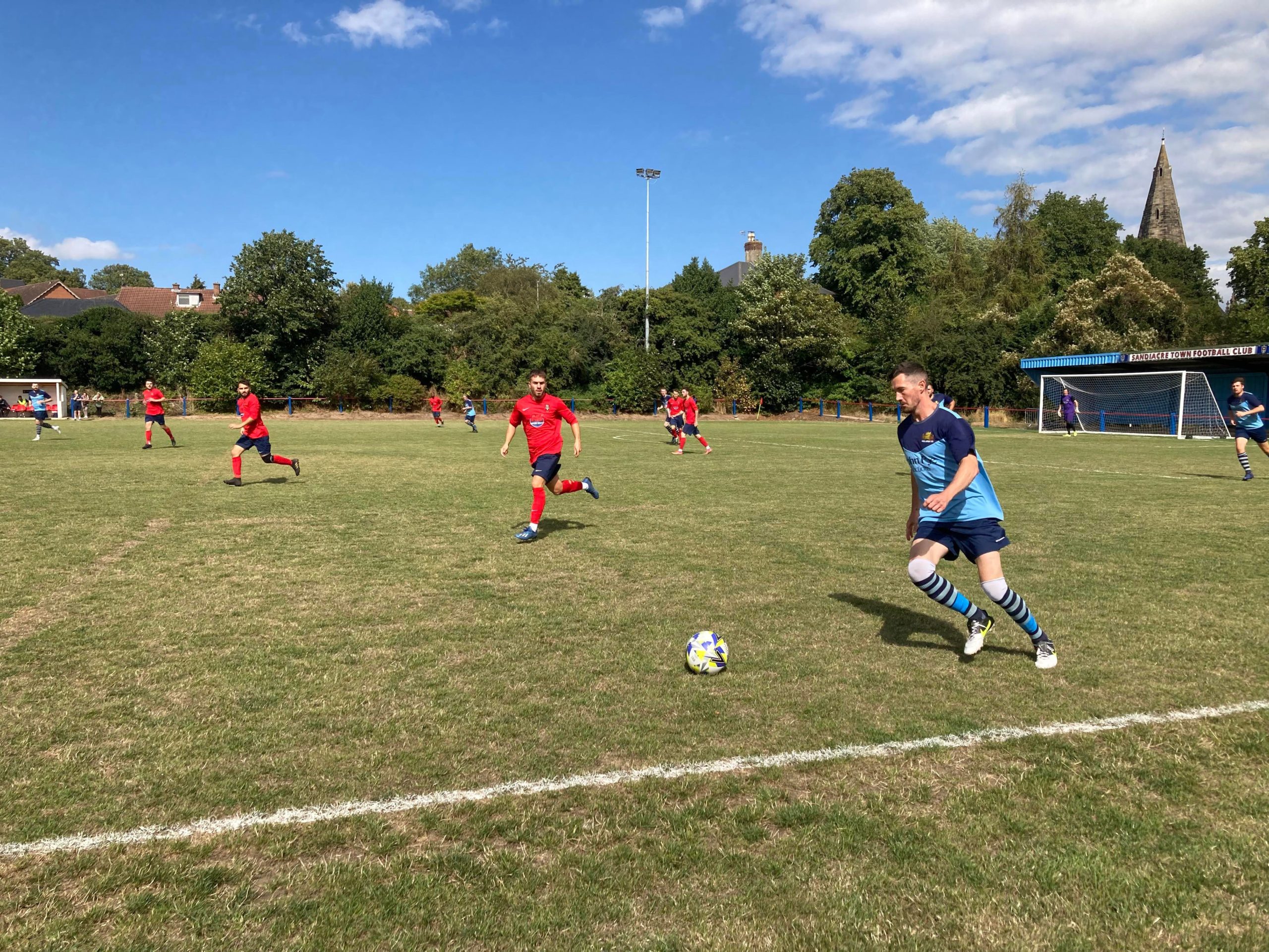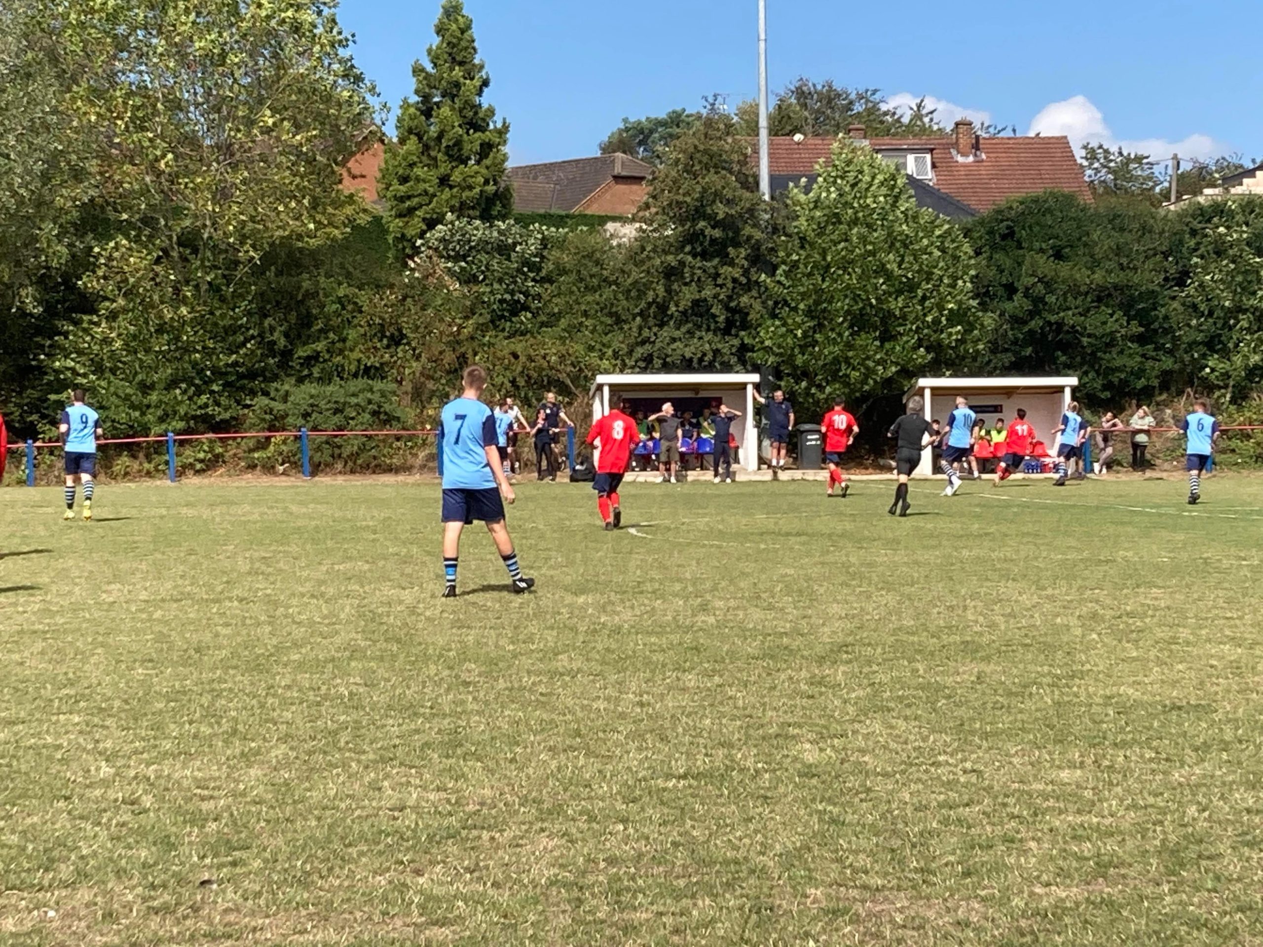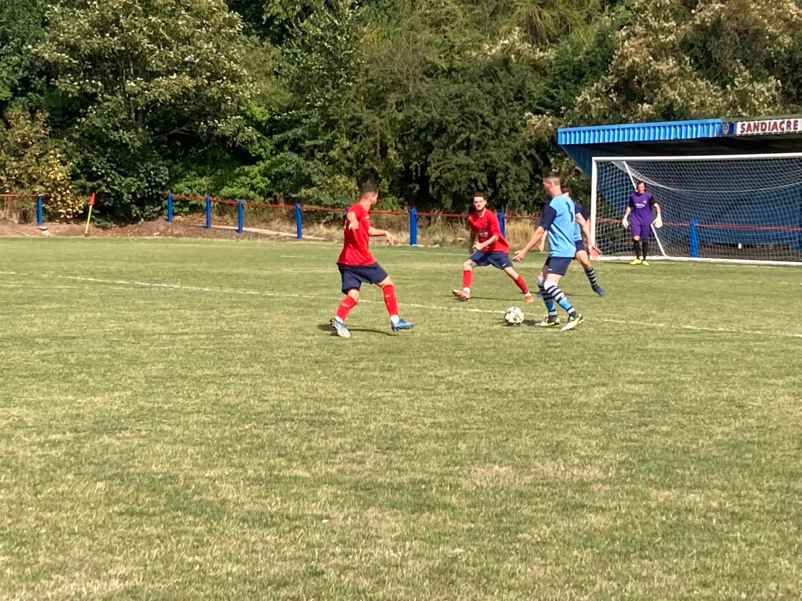 1 minute later and Sandiacre play forward, a through ball is played to number 7… He’s Offside but number 4 isn’t and he runs onto it, he’s through on goal… And he makes it 3!!! Good finish! Sandiacre have daylight! 3-0!