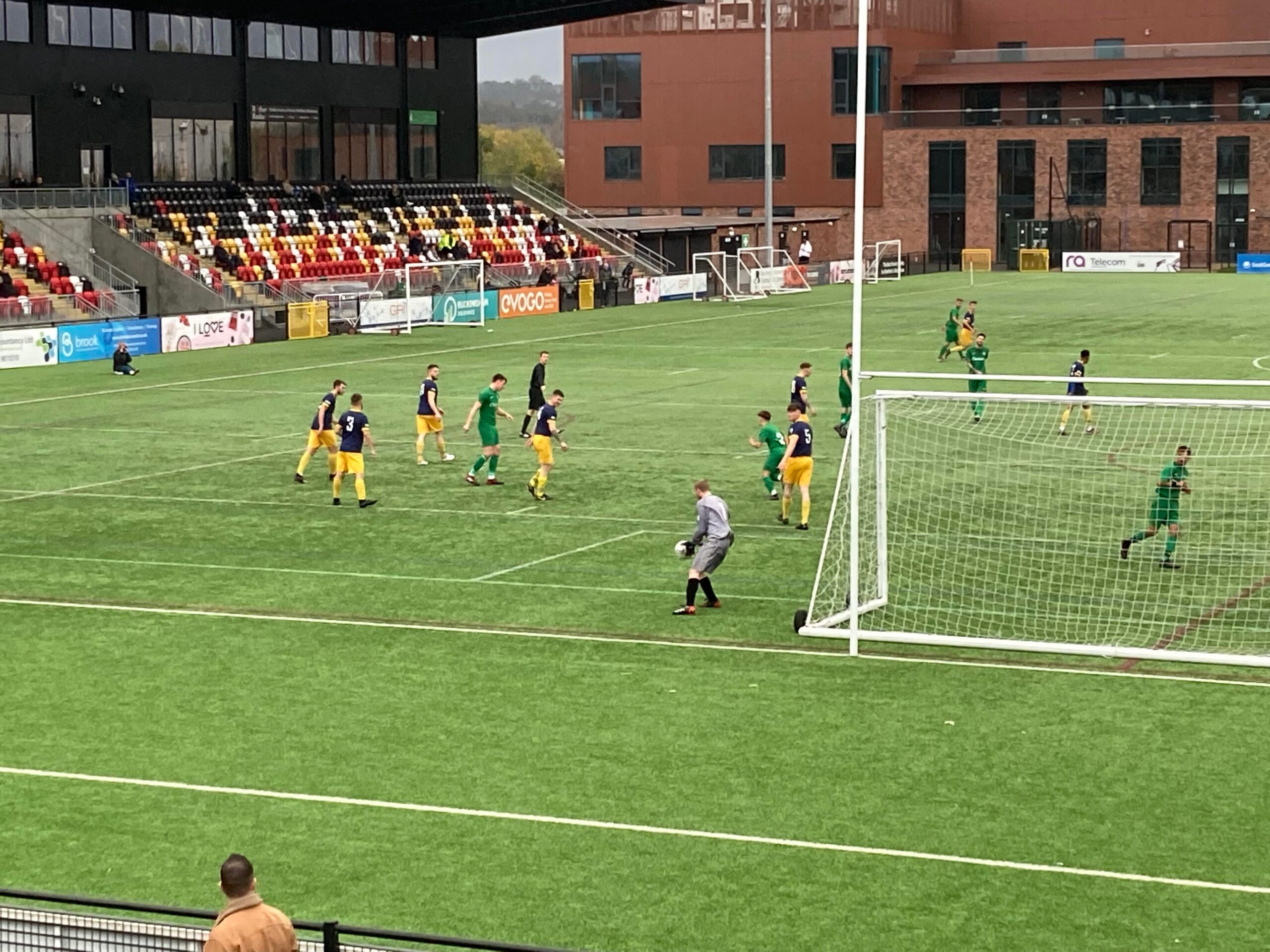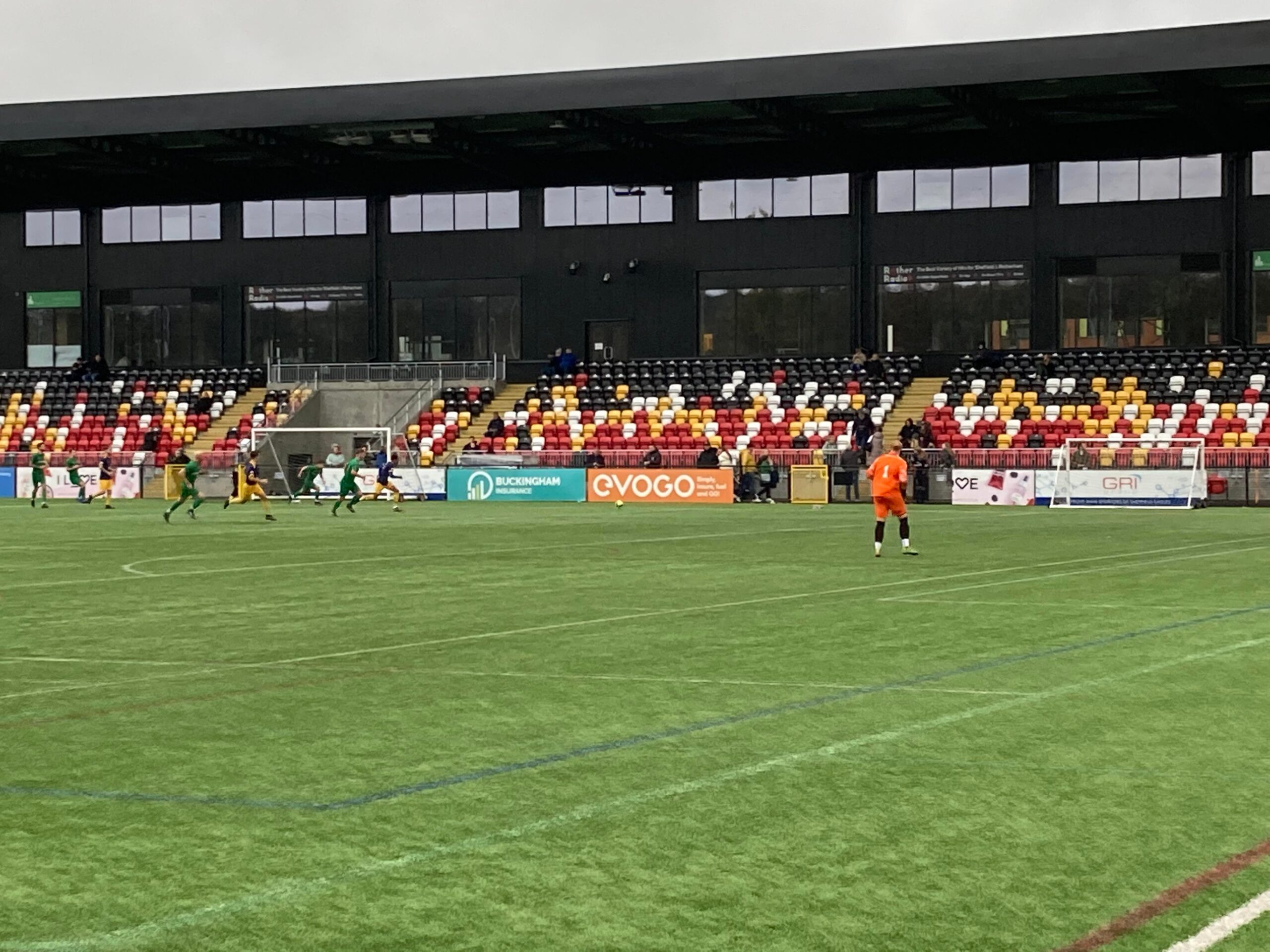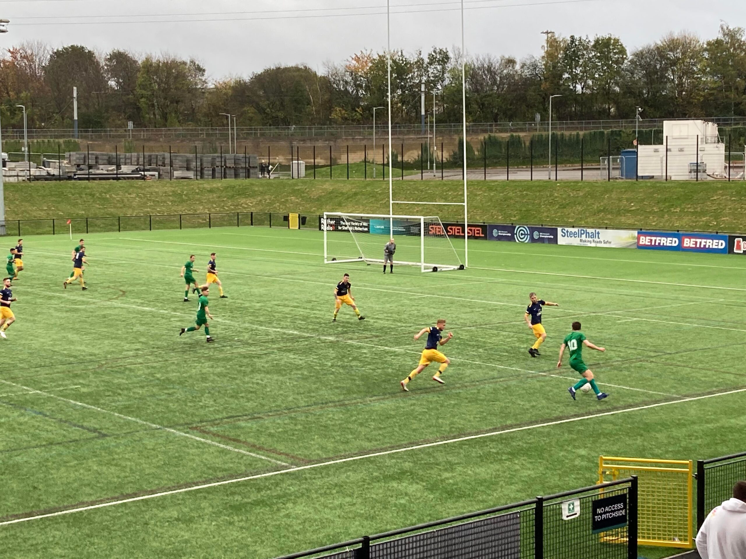 1 minute later and Wombwell play it long, number 9 finds himself through and he shoots… Keeper gets a hand to it… But it’s forced in! Wombwell have the lead against the run of play it has to be said despite their good start. 0-1!