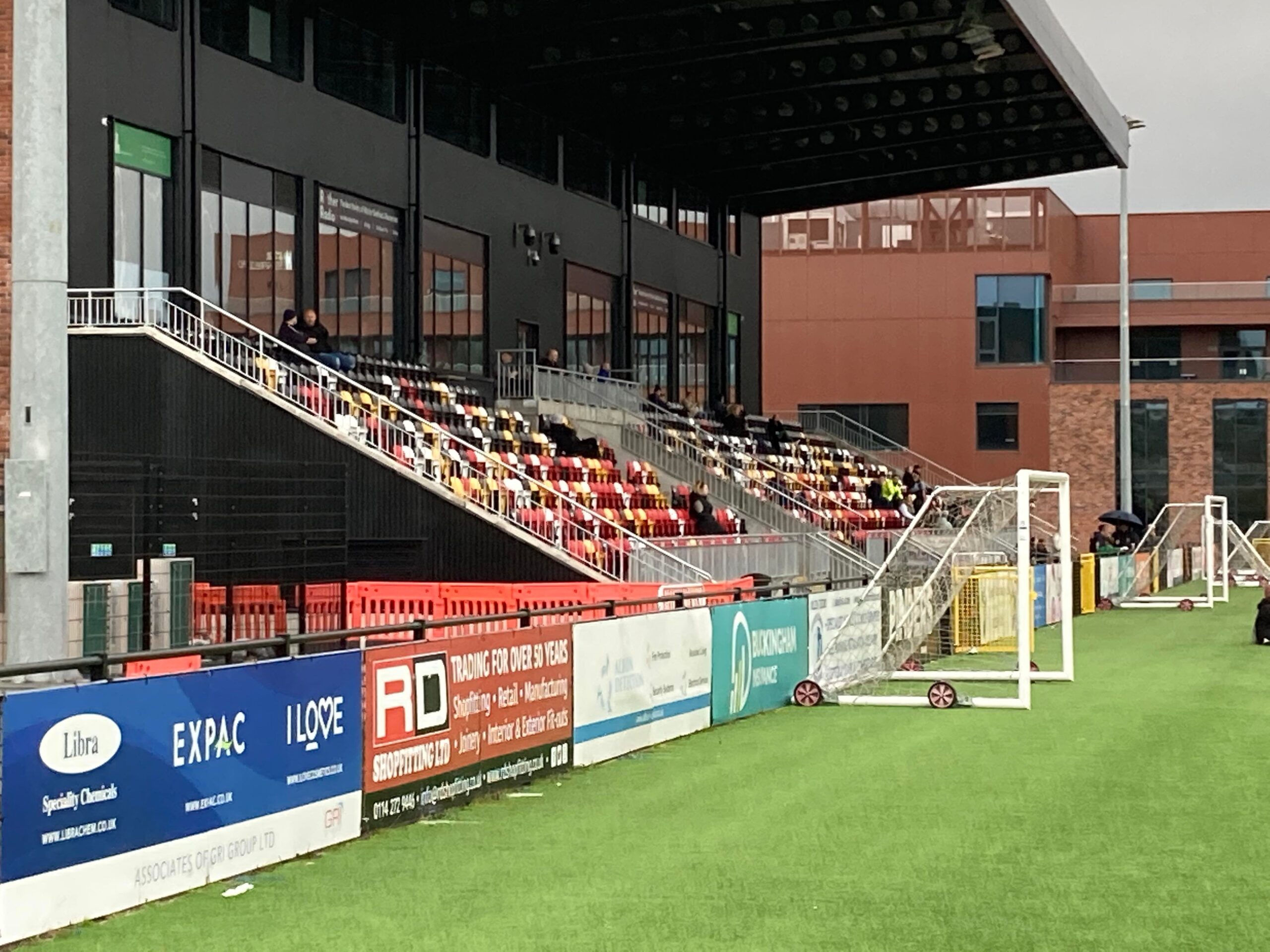 Onto the yellow route Tram service for Attercliffe now and here we are in good time. A quick glimpse of the new stand and I have to say it looks impressive! Free entry for this County Senior tie! Tremendous! Great to meet Ash here today as well!