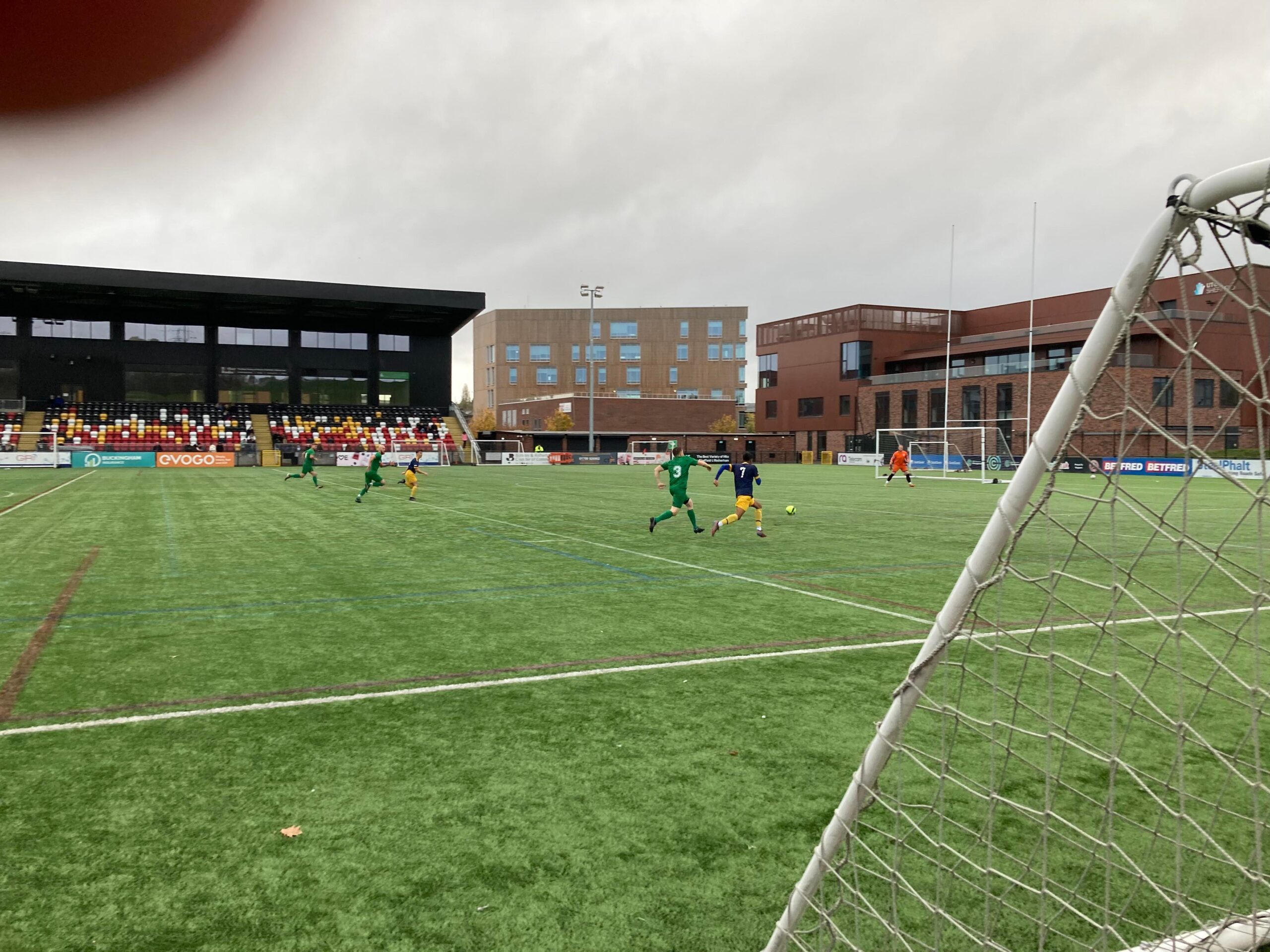 1 minute later and Wombwell play forward, the long ball into the box headed away to number 9 on the edge of the box who chests and shoots on the volley… YES! It nestles in the bottom corner!! What a goal!! What a game!! 3-3! That is how it remains at half time. Great to meet Danny at long last!