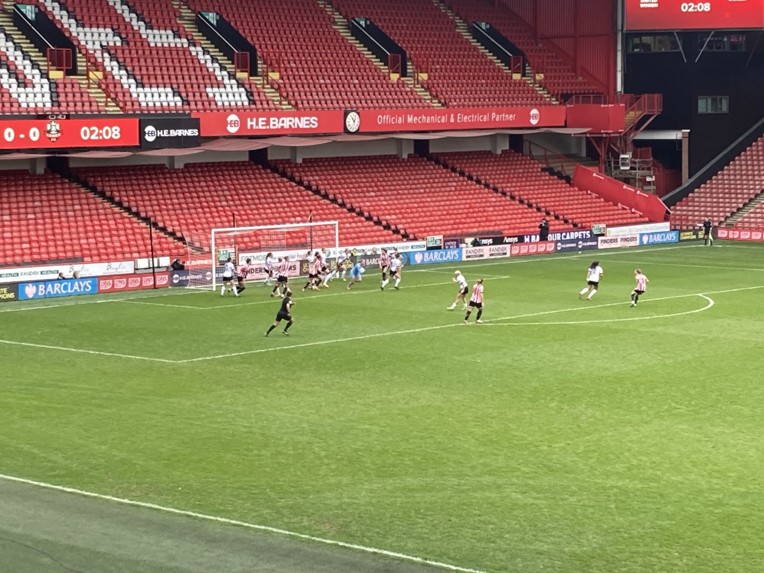 24th minute and Sheffield United have a corner, it’s played into the middle… Courtney Sweetman-Kirk with the header… And it’s in!! Sheffield United have the lead! 1-0! Against the run of play it has to be said!