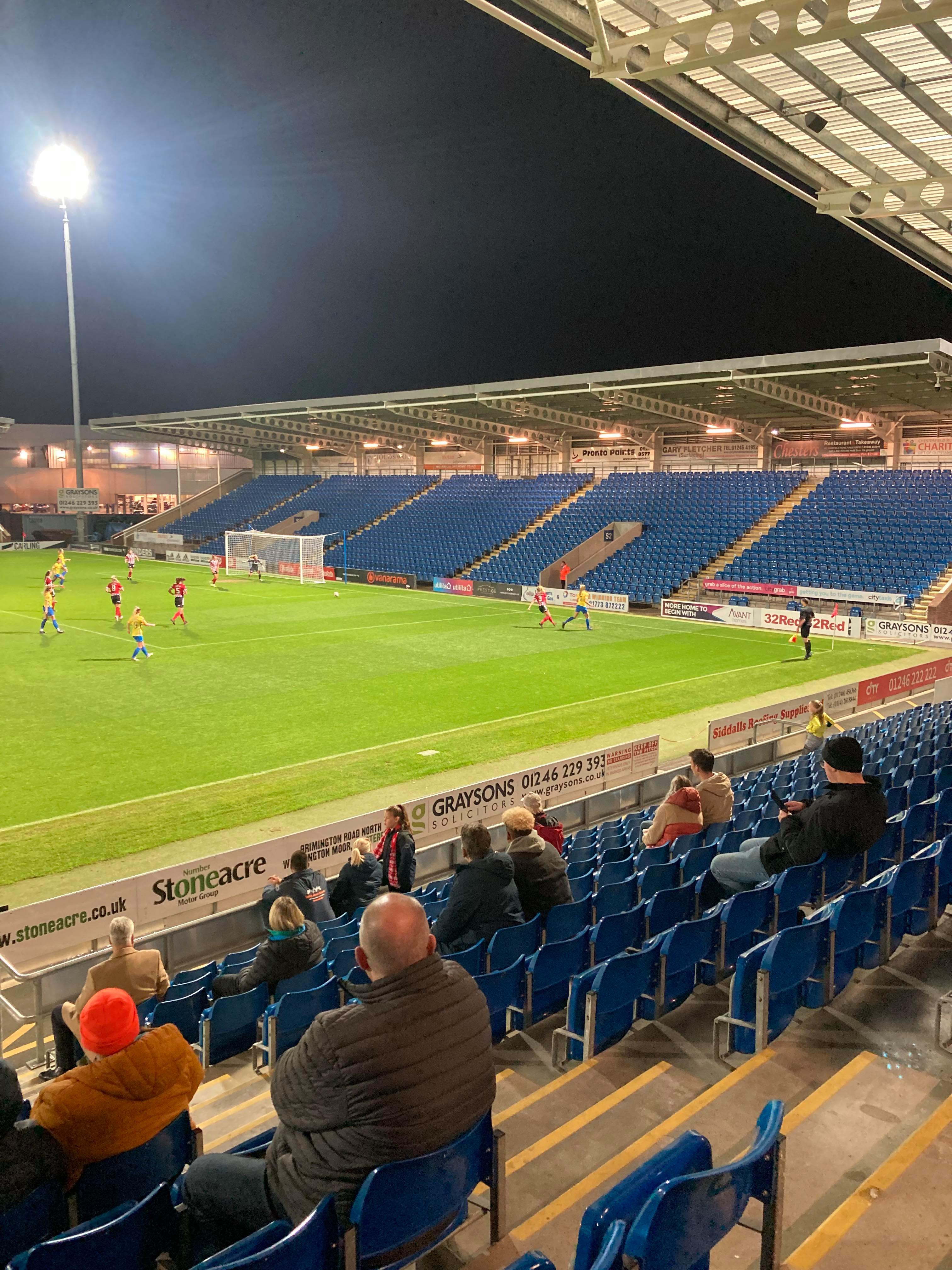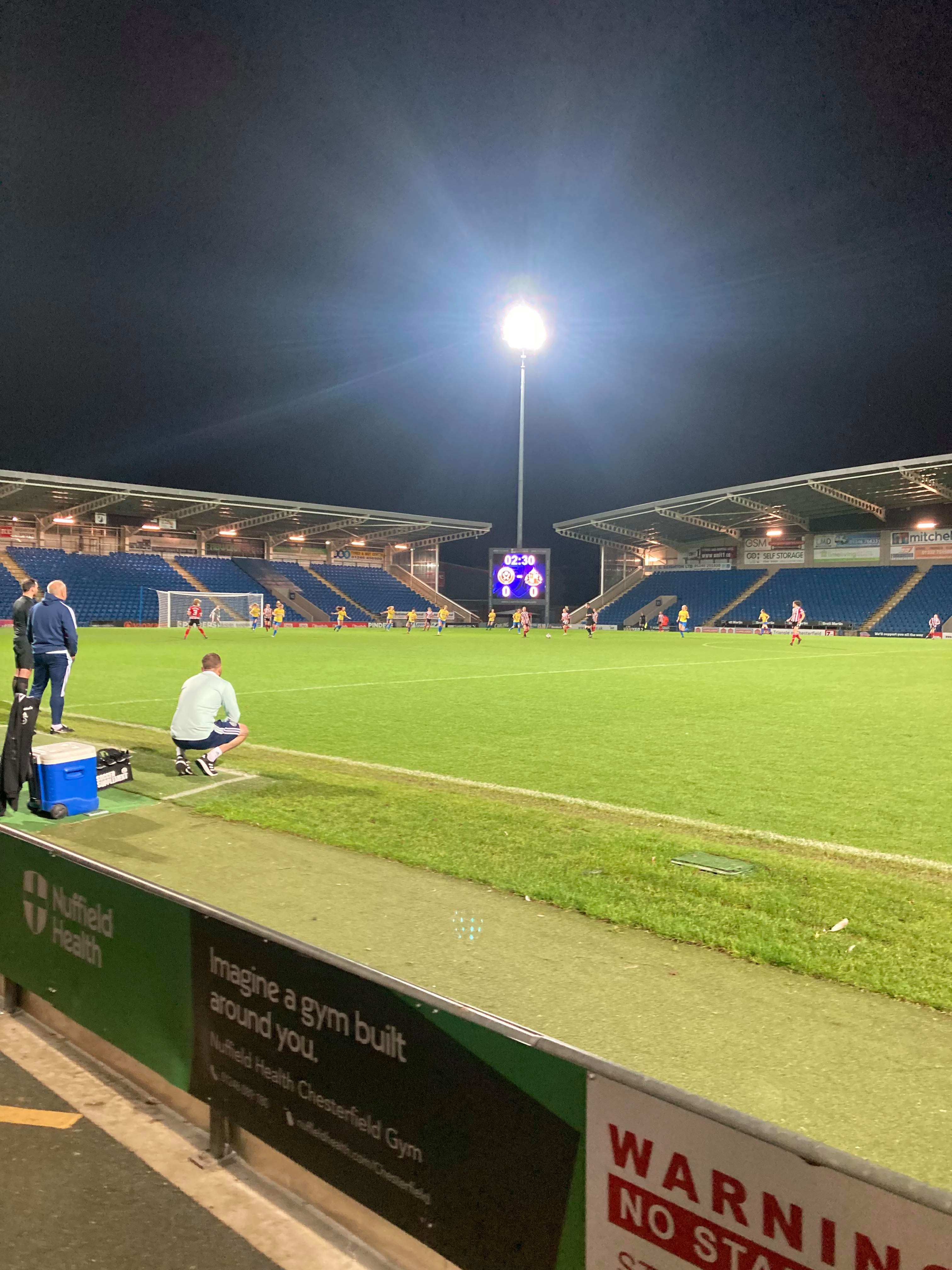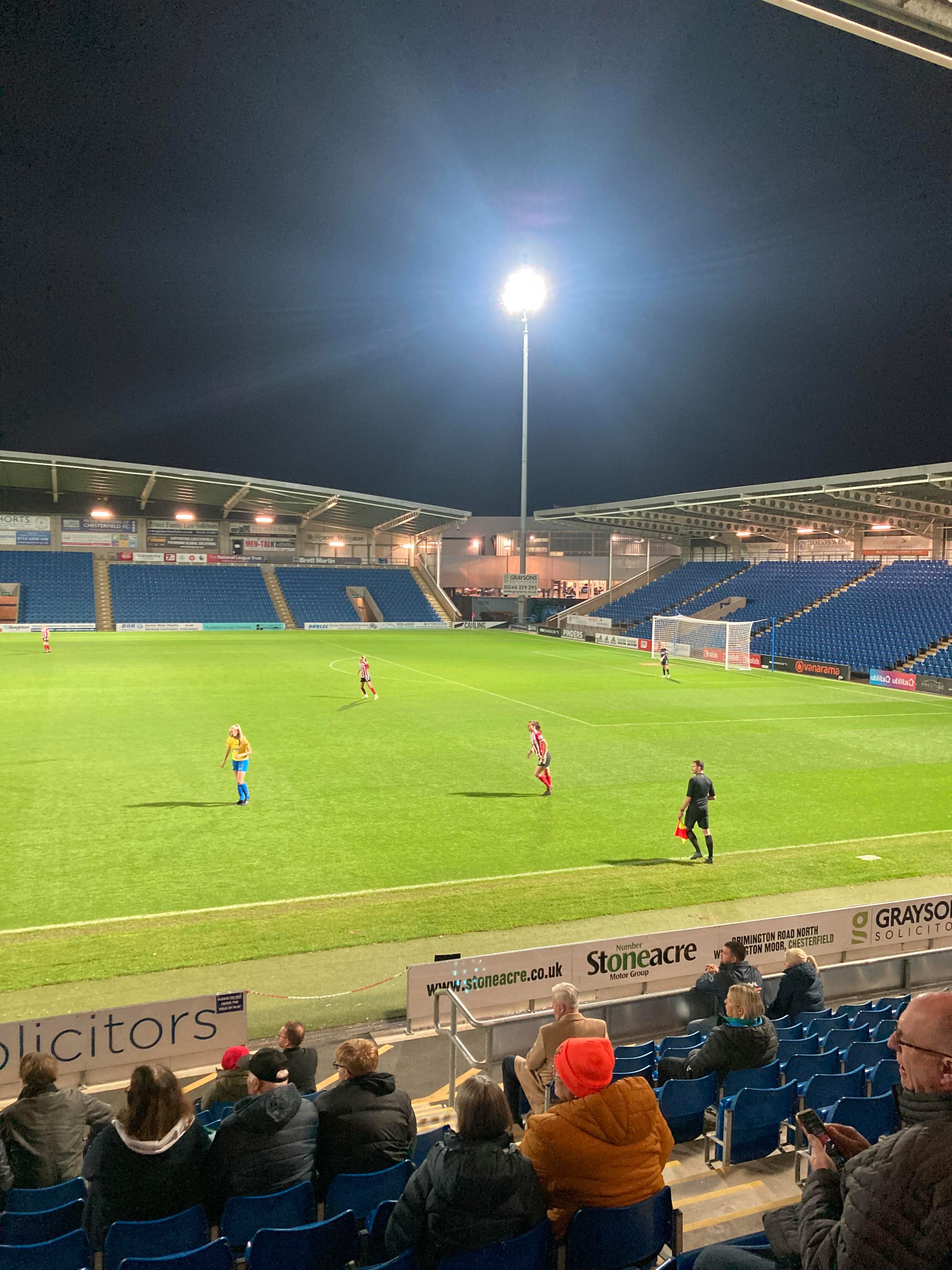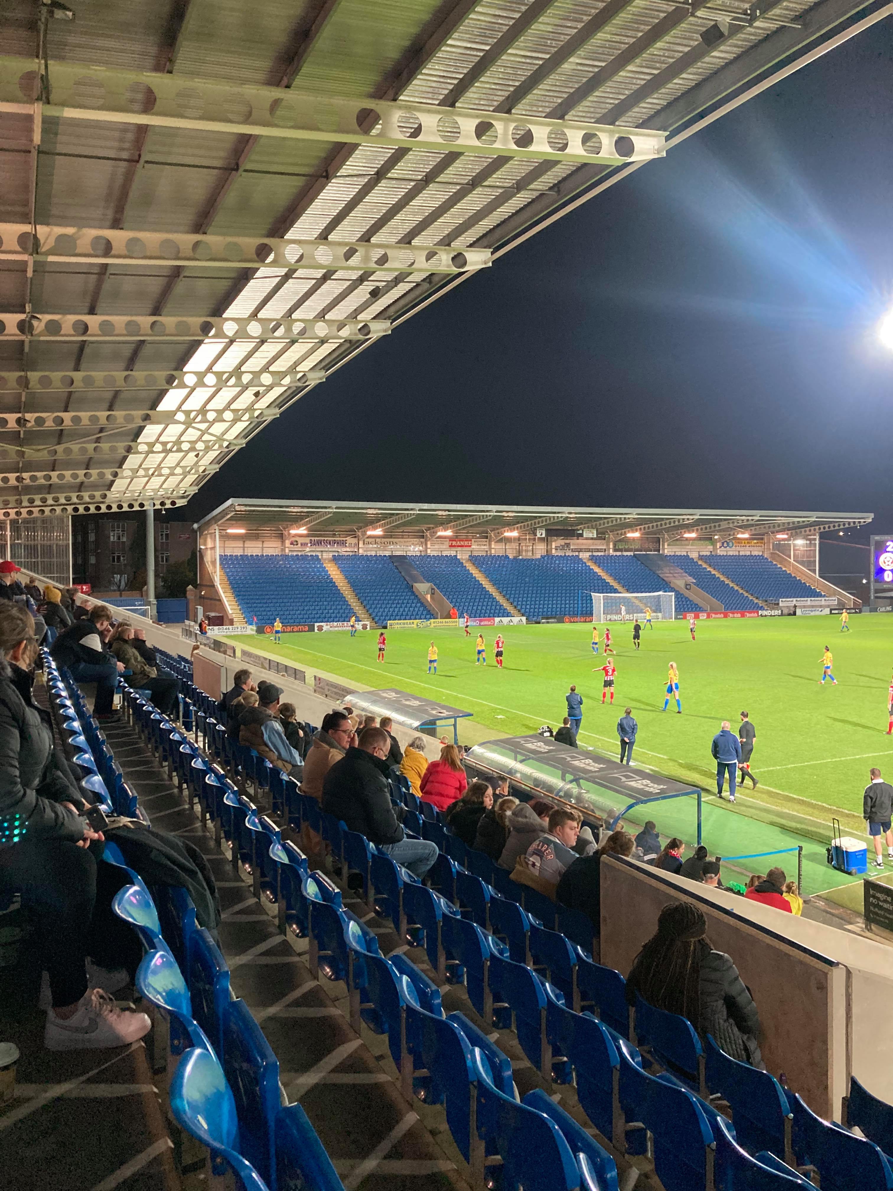 The Technique Stadium, home of Chesterfield FC and Sheffield United Women based in Derbyshire. They play in the FA Women’s Championship but tonight face Sunderland Ladies in the first group game of the Continental Cup! 149 grounds down… But the big 150 will have to wait for the weekend as this is my third visit to this ground. The first one being an England U16s match back in 2011 and the last one was a famous Mansfield win against the Spireites!!! Let’s hope for another cracker of a game here tonight!