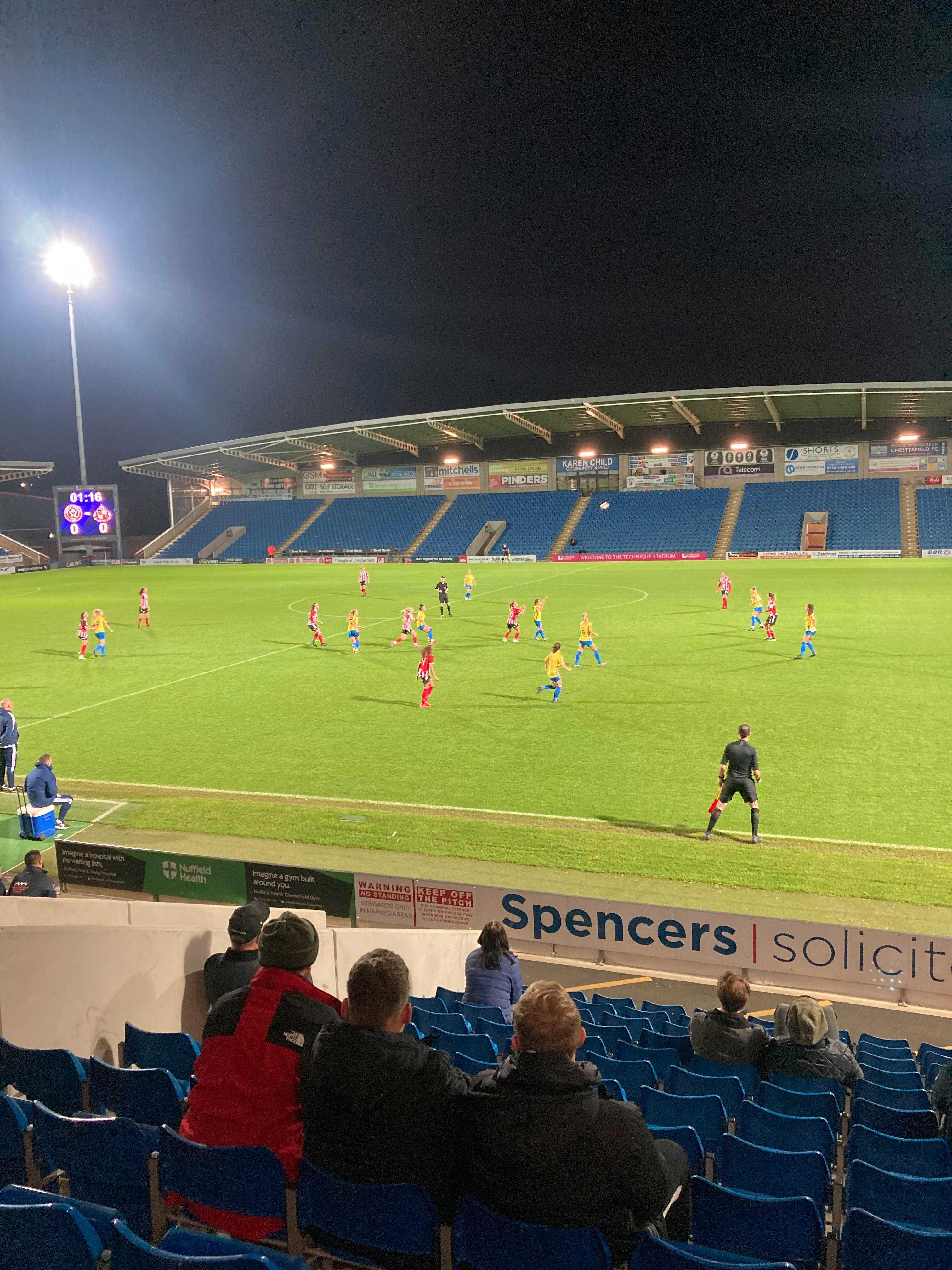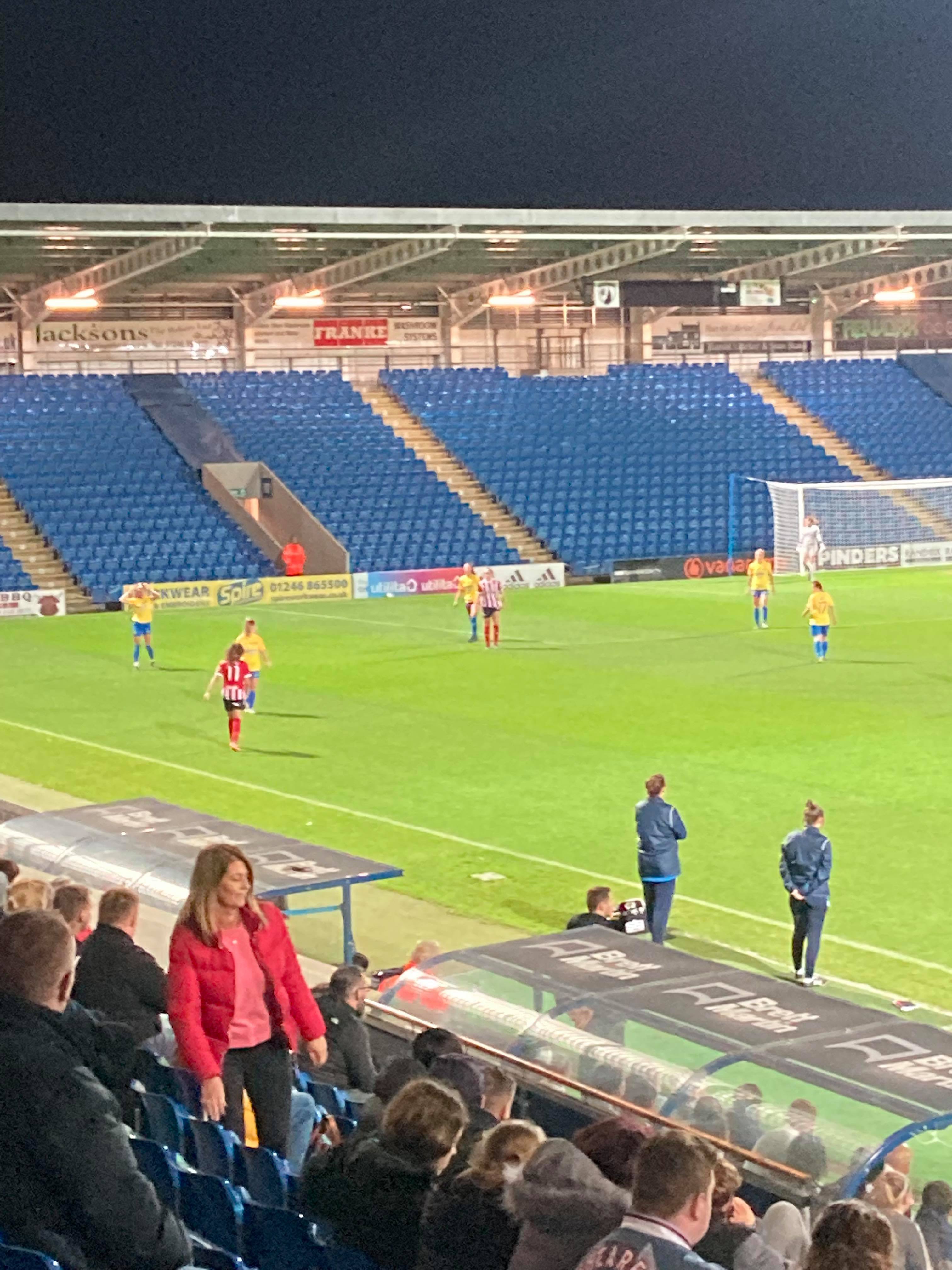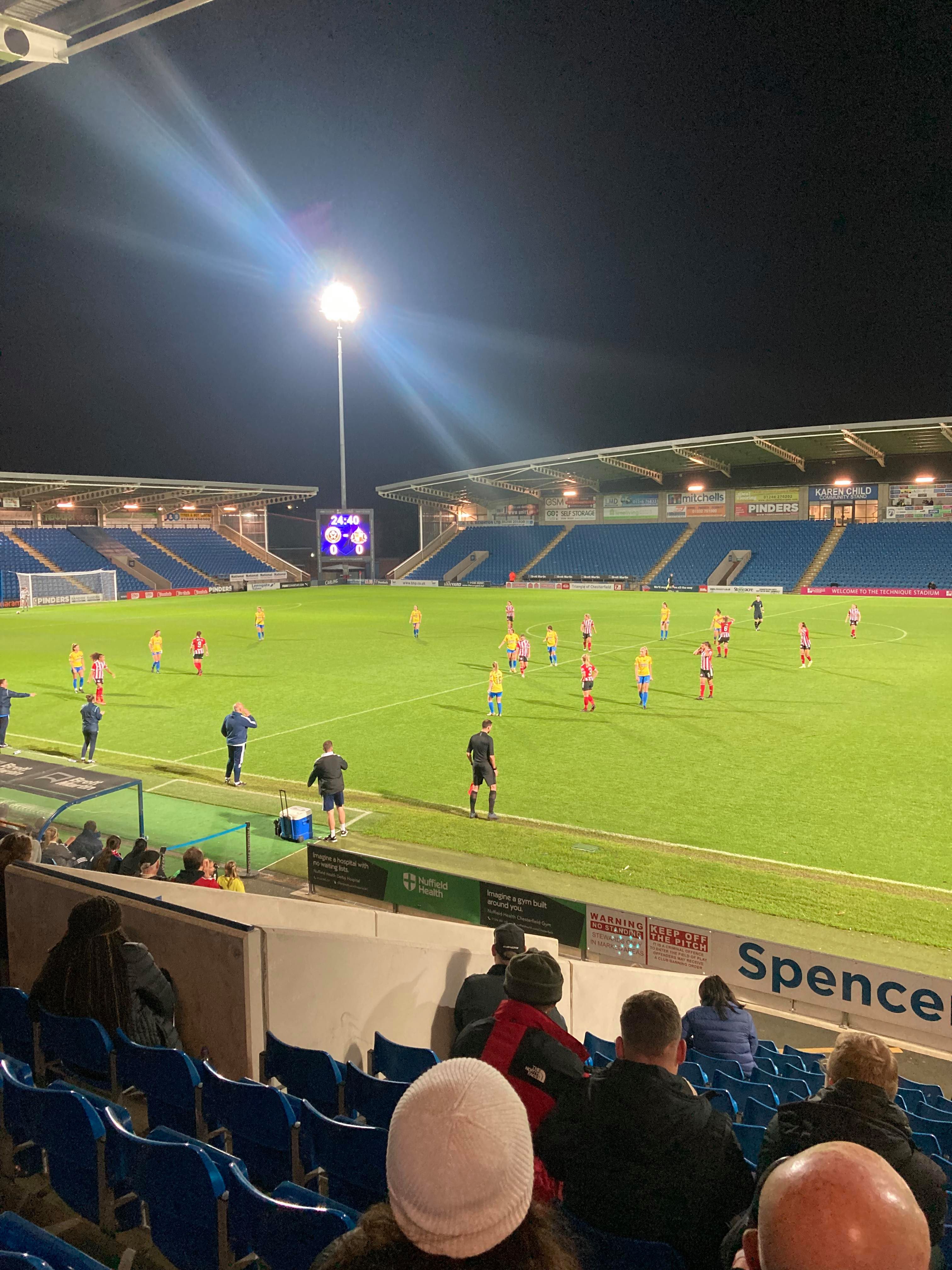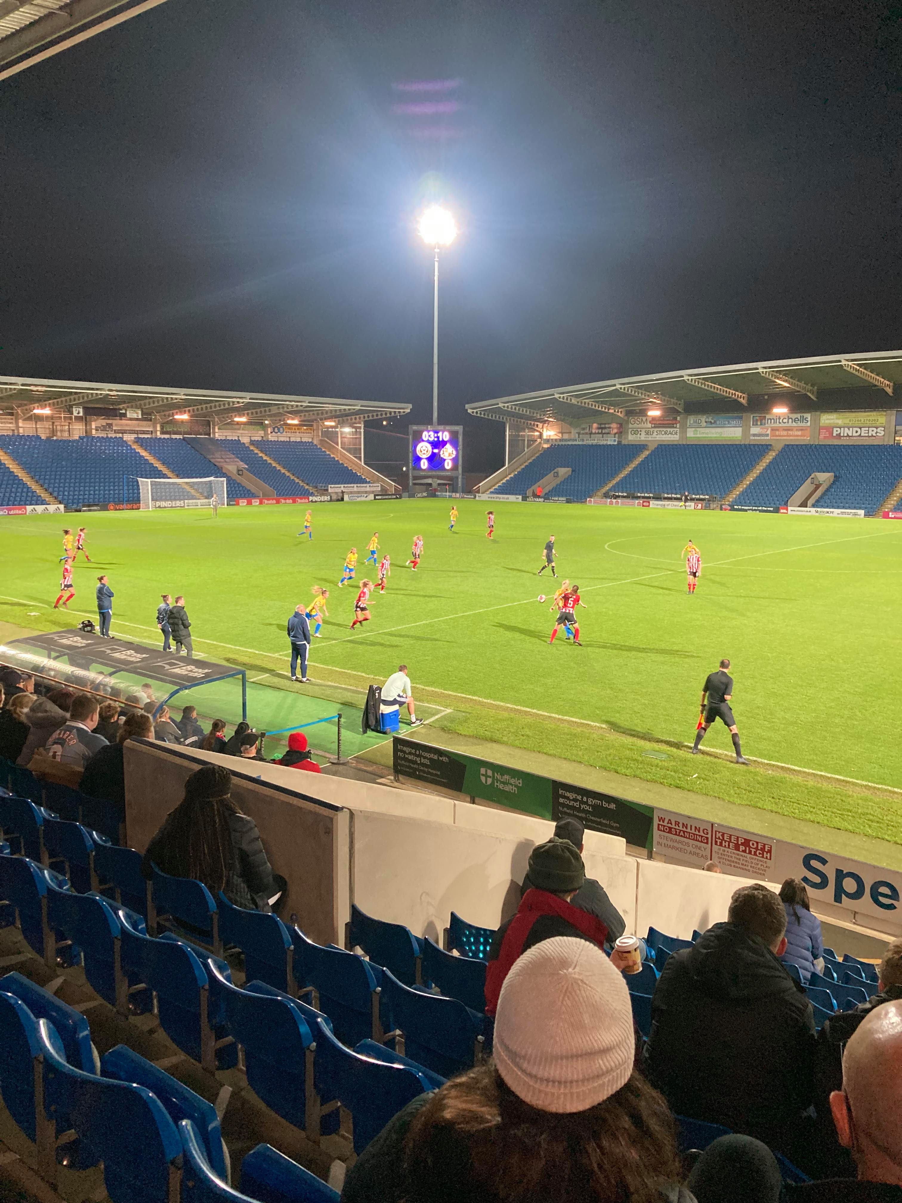 The Technique Stadium, home of Chesterfield FC and Sheffield United Women based in Derbyshire. They play in the FA Women’s Championship but tonight face Sunderland Ladies in the first group game of the Continental Cup! 149 grounds down… But the big 150 will have to wait for the weekend as this is my third visit to this ground. The first one being an England U16s match back in 2011 and the last one was a famous Mansfield win against the Spireites!!! Let’s hope for another cracker of a game here tonight!
