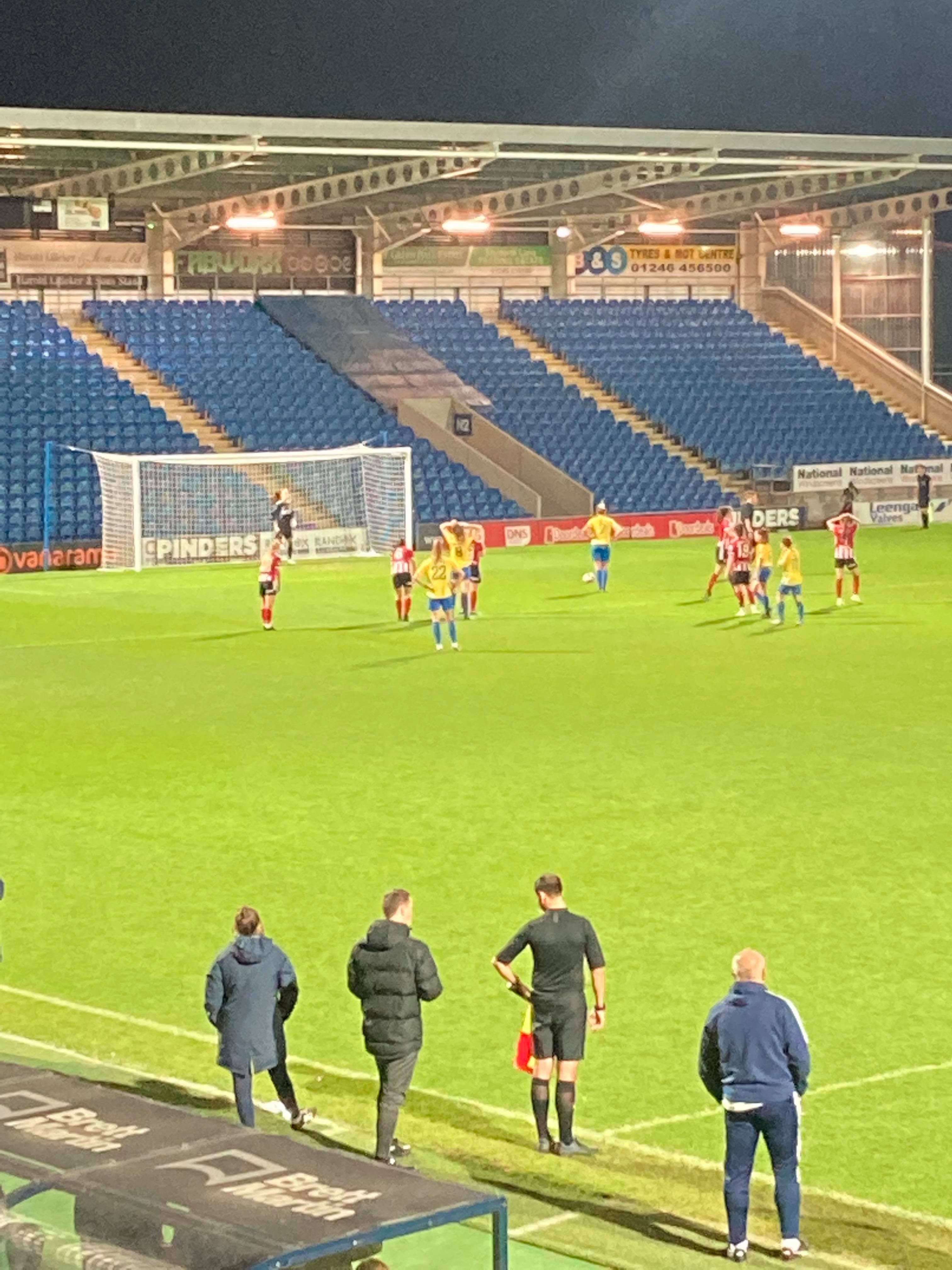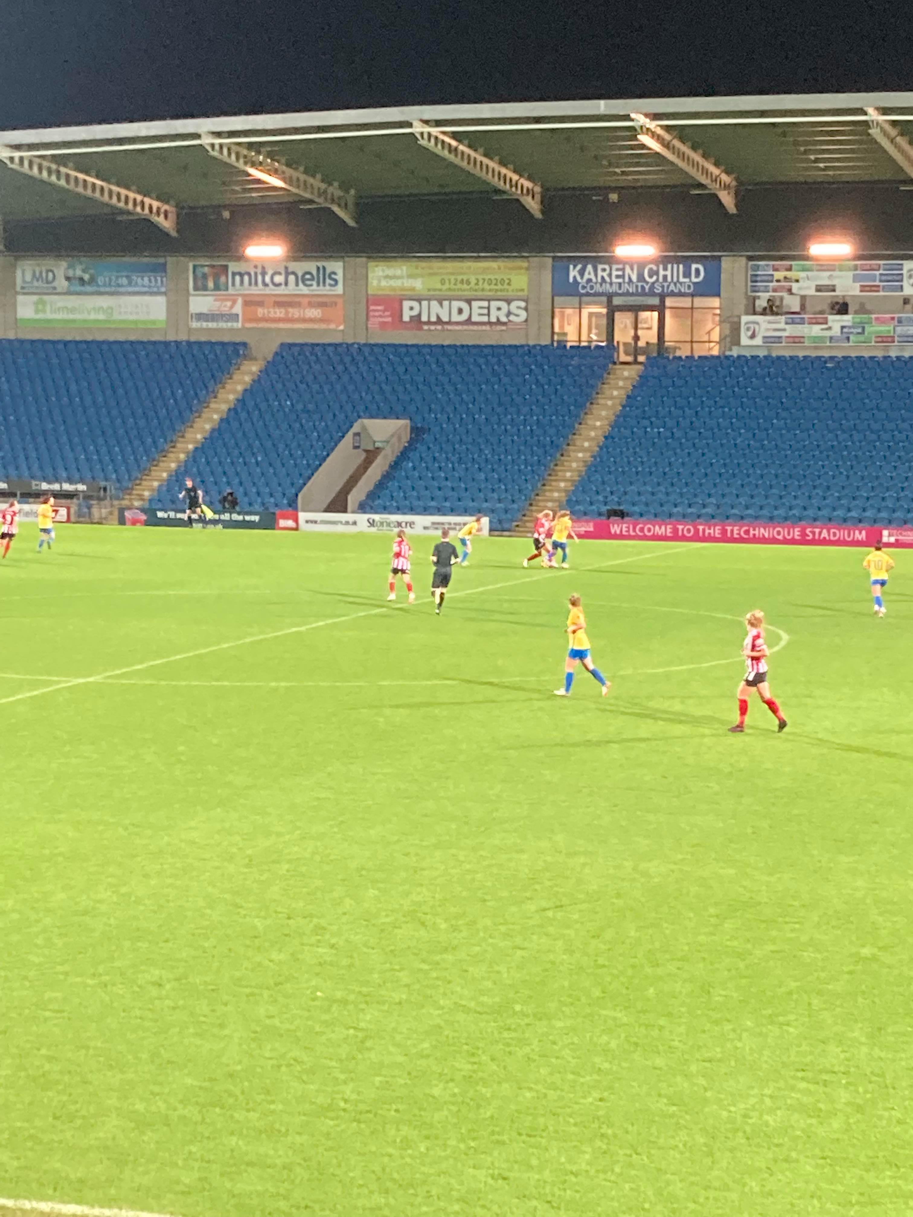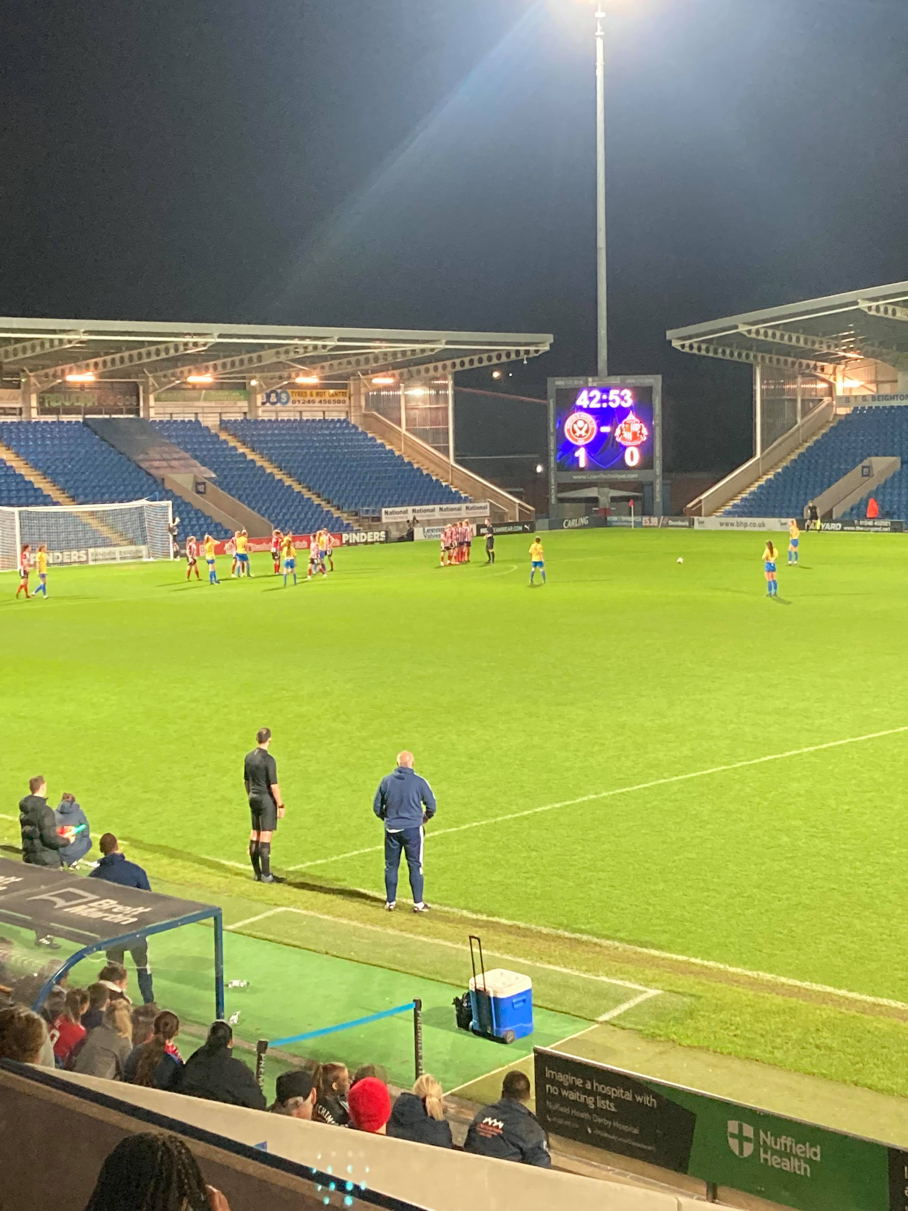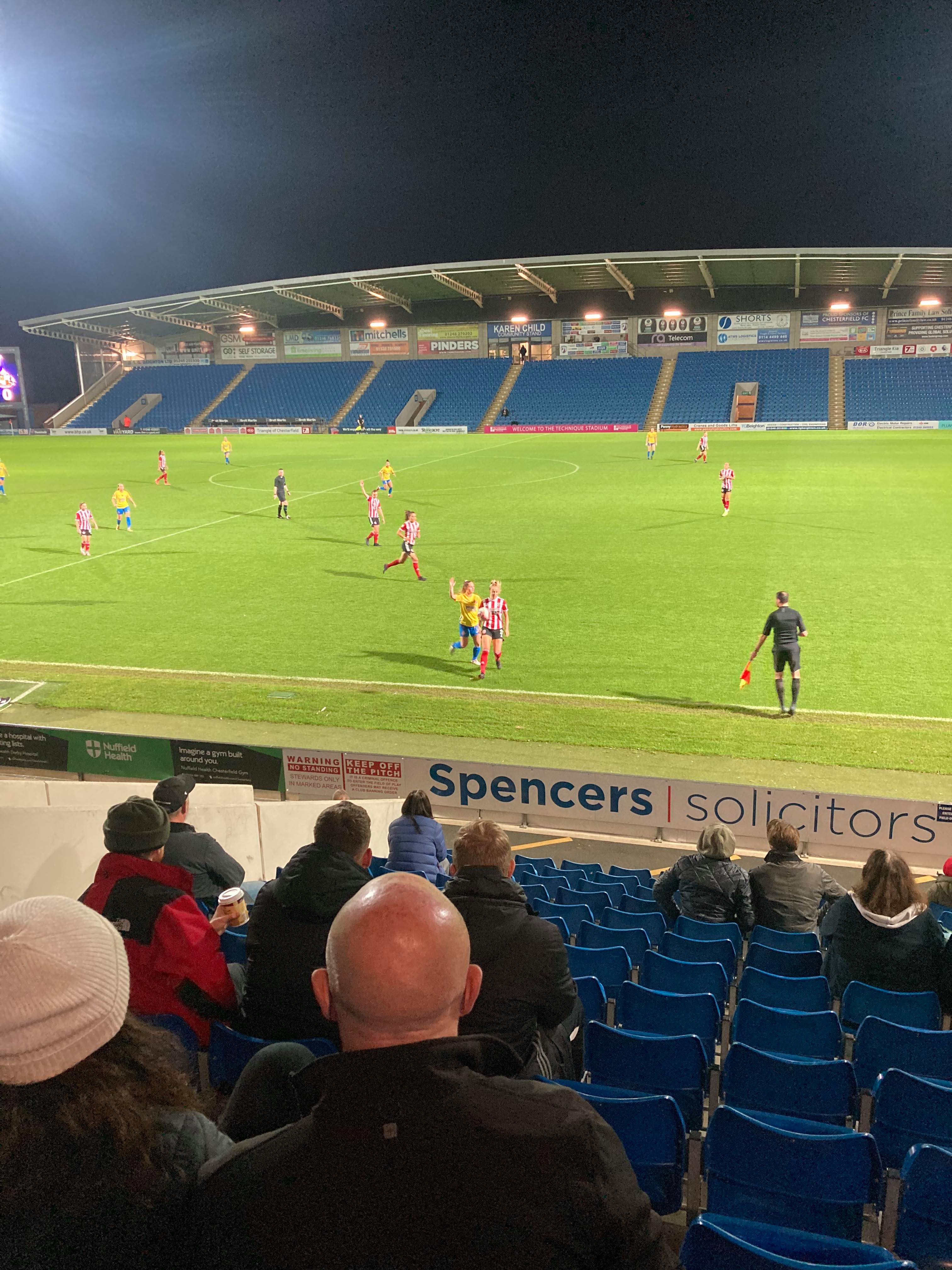 The Technique Stadium, home of Chesterfield FC and Sheffield United Women based in Derbyshire. They play in the FA Women’s Championship but tonight face Sunderland Ladies in the first group game of the Continental Cup! 149 grounds down… But the big 150 will have to wait for the weekend as this is my third visit to this ground. The first one being an England U16s match back in 2011 and the last one was a famous Mansfield win against the Spireites!!! Let’s hope for another cracker of a game here tonight!