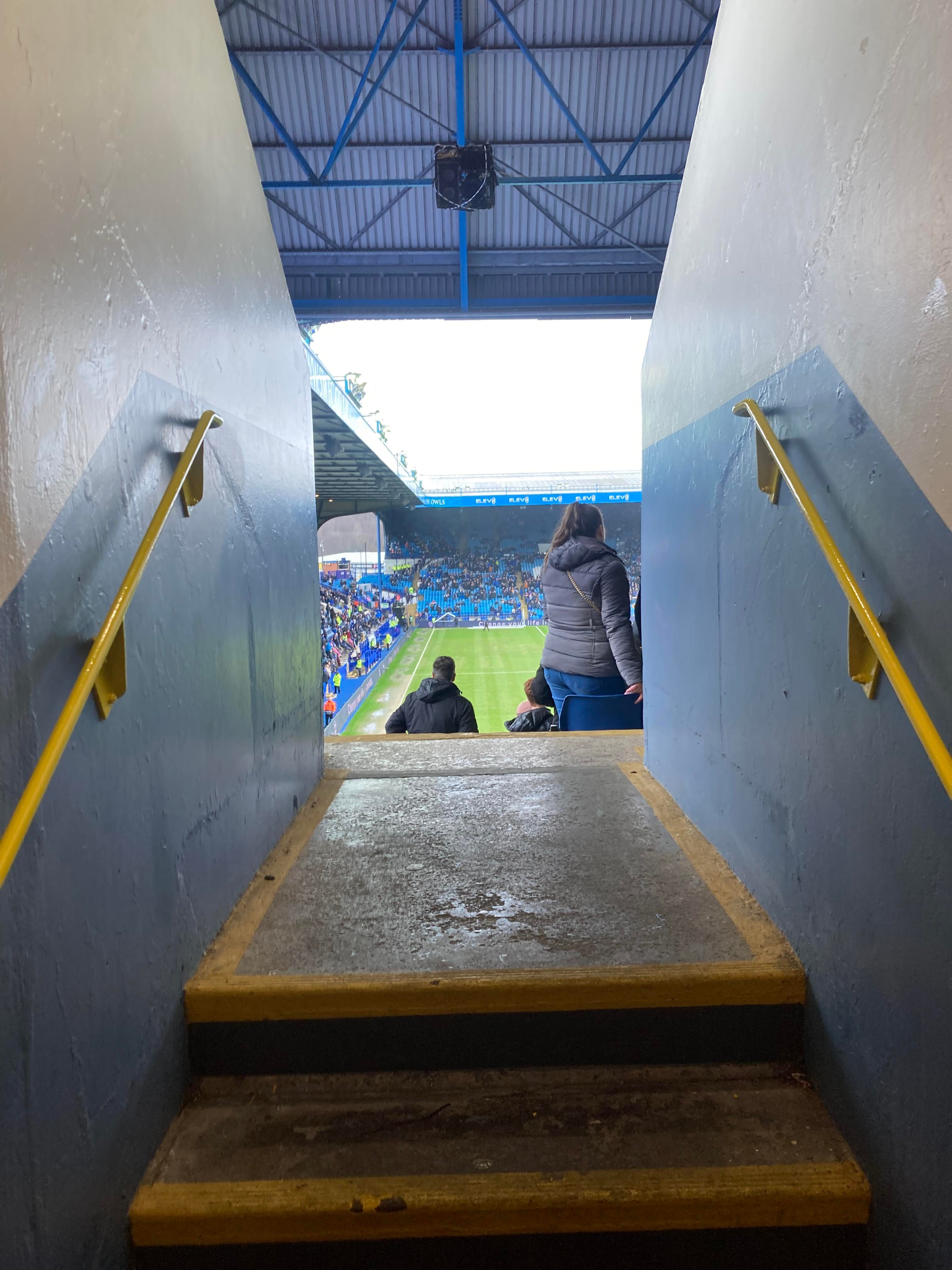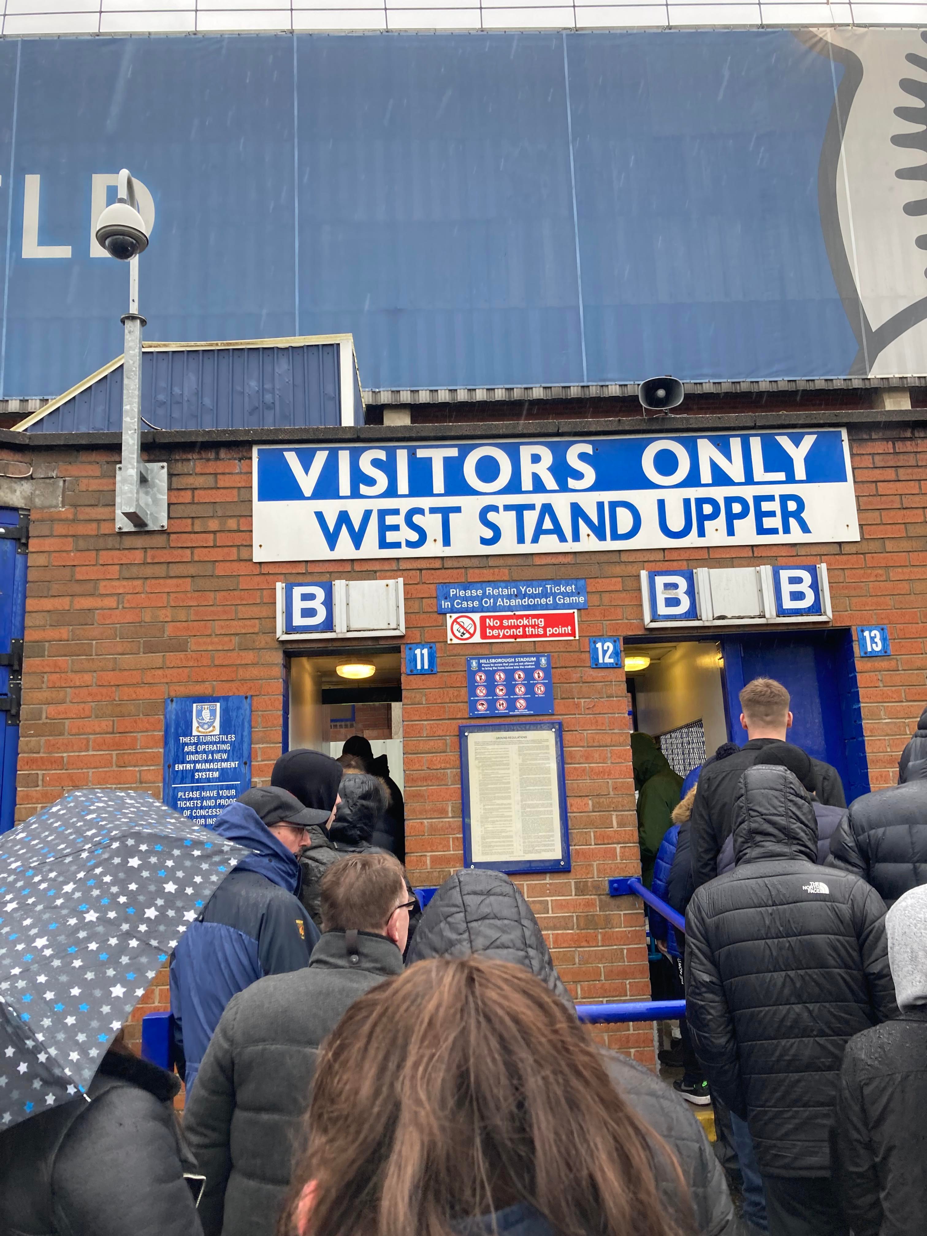 He’s finally here and we can go in now!! “We’re going to lose today!” The Merry Miller surprisingly not confident about today’s result… £26 for this South Yorkshire Derby! Boooo! This gangway is pretty cramped… Rotherham fans in fine spirits so far!! “We’re Rotherham United! We’re top of the league!” And the Wednesday fans respond with: “Hark now here! The Wednesday sing! United run away!” Rotherham: “Deedar Deedar!” Out come the players and here comes Silver Lining!