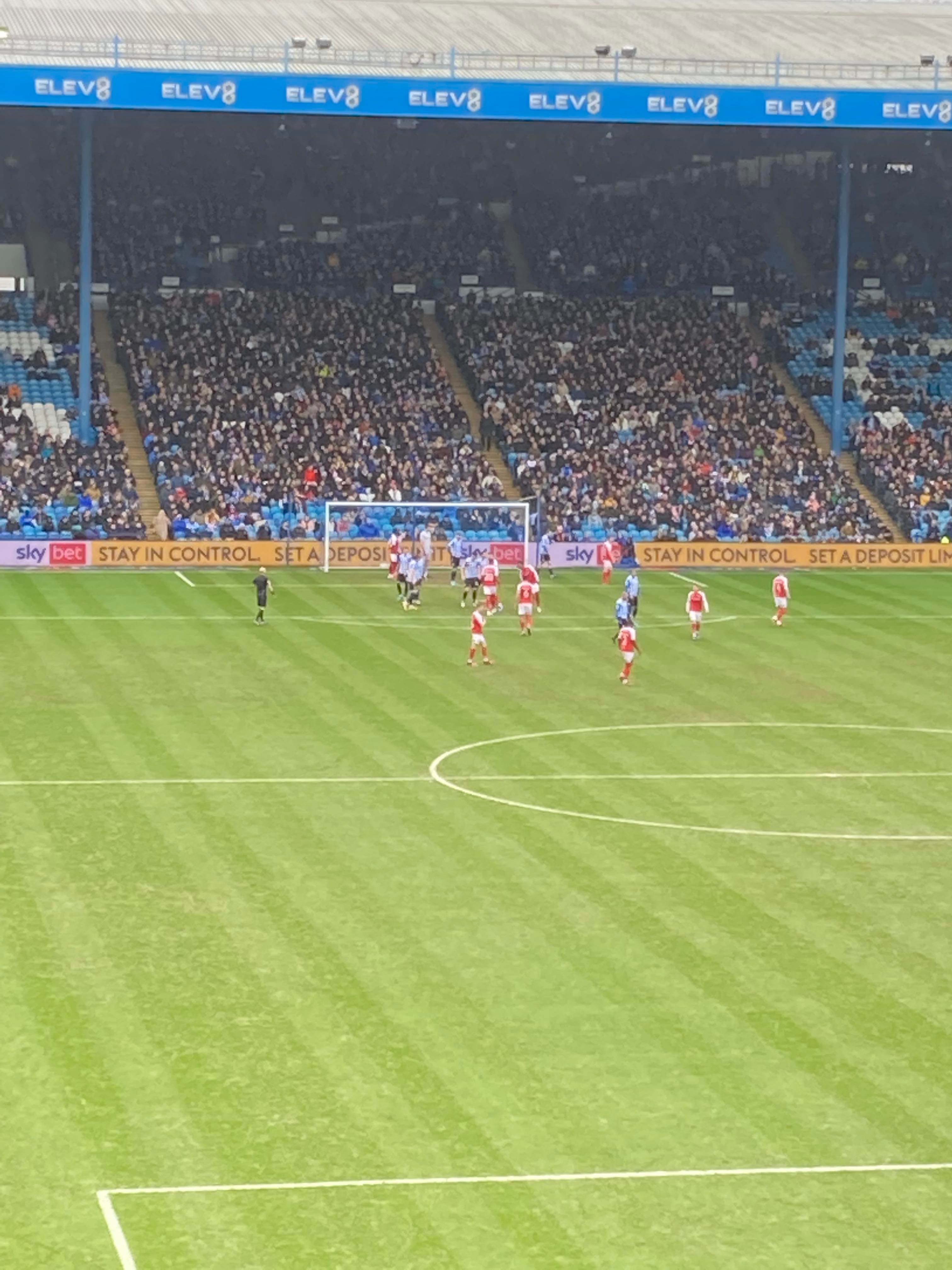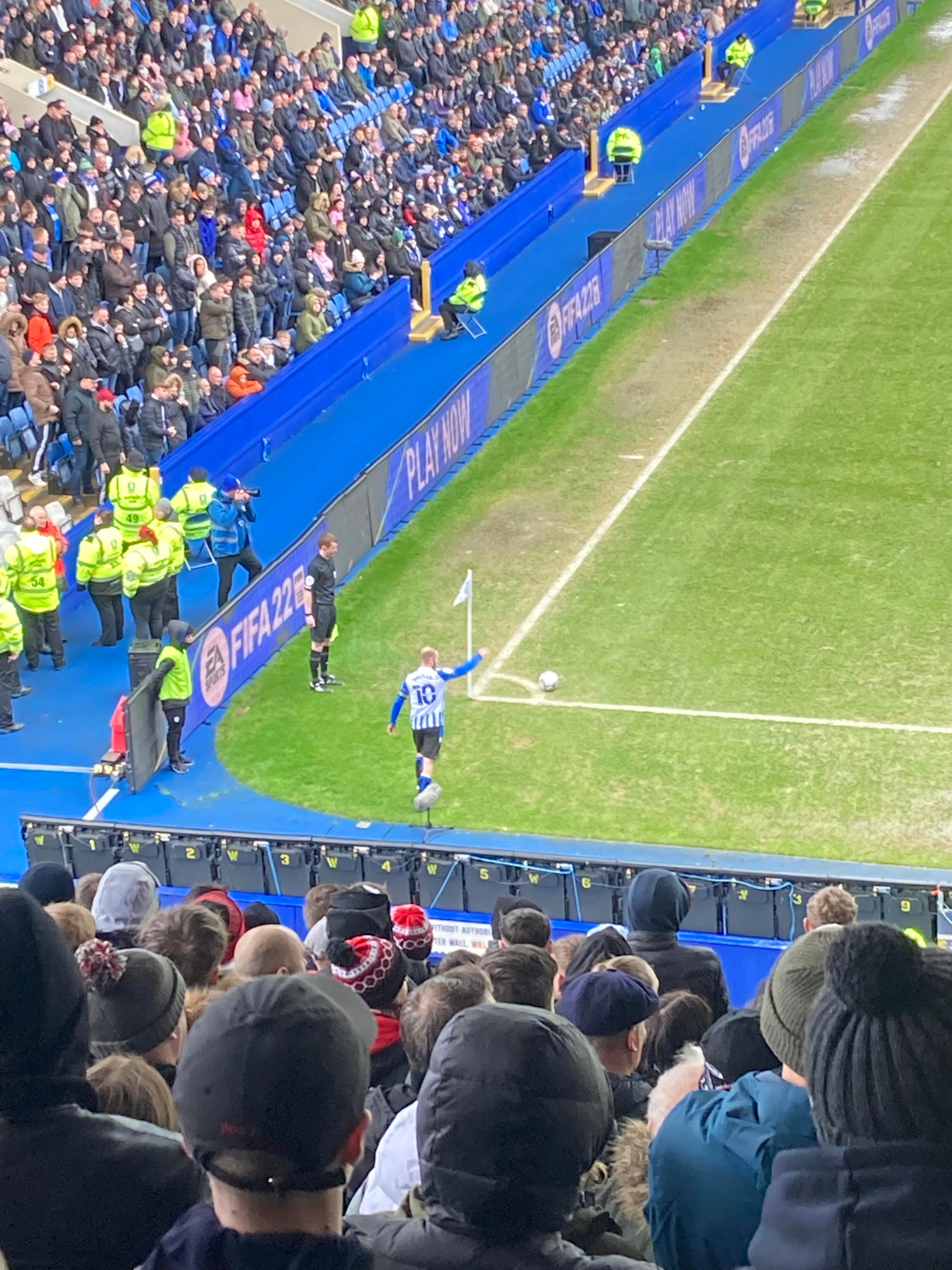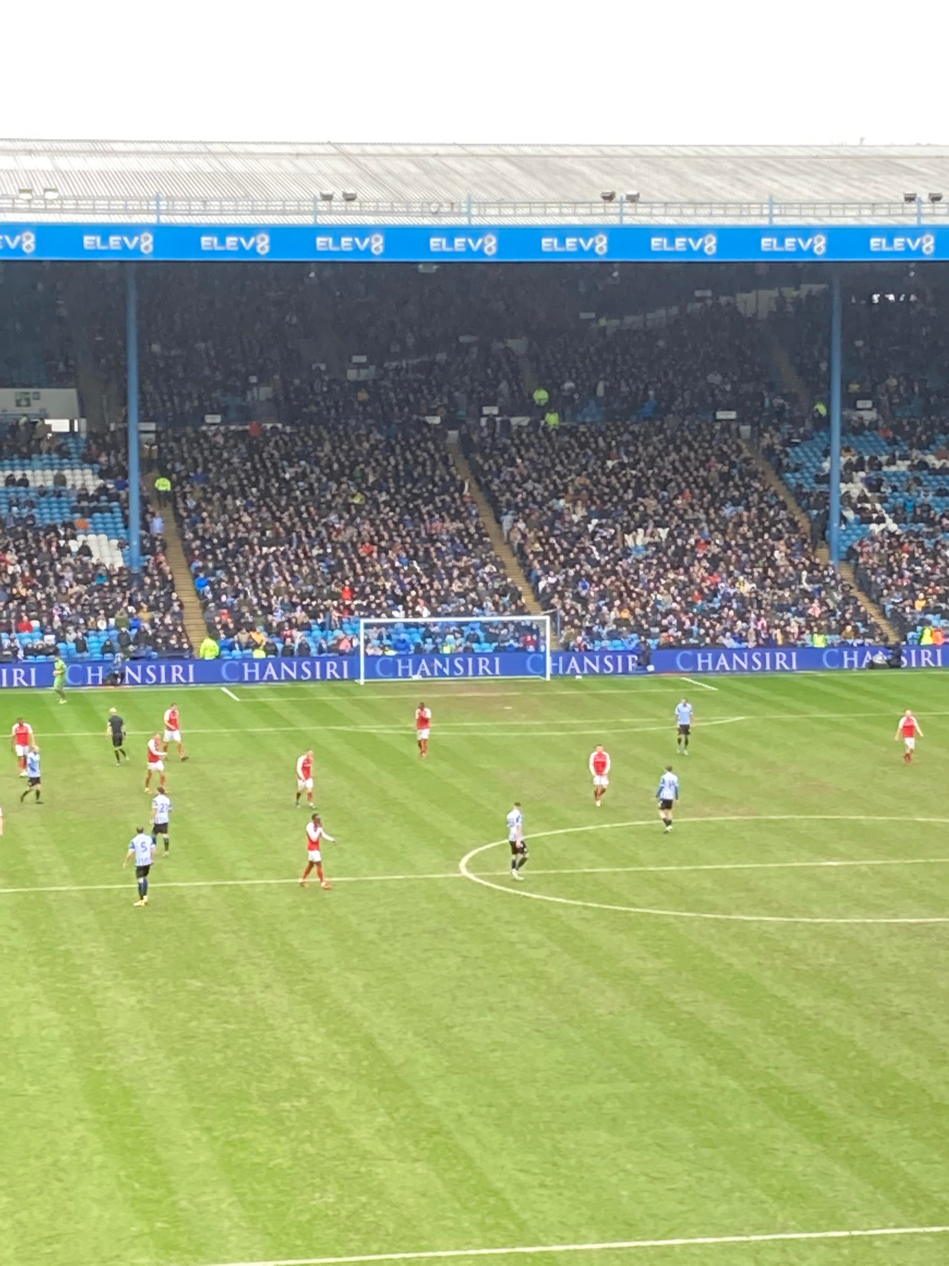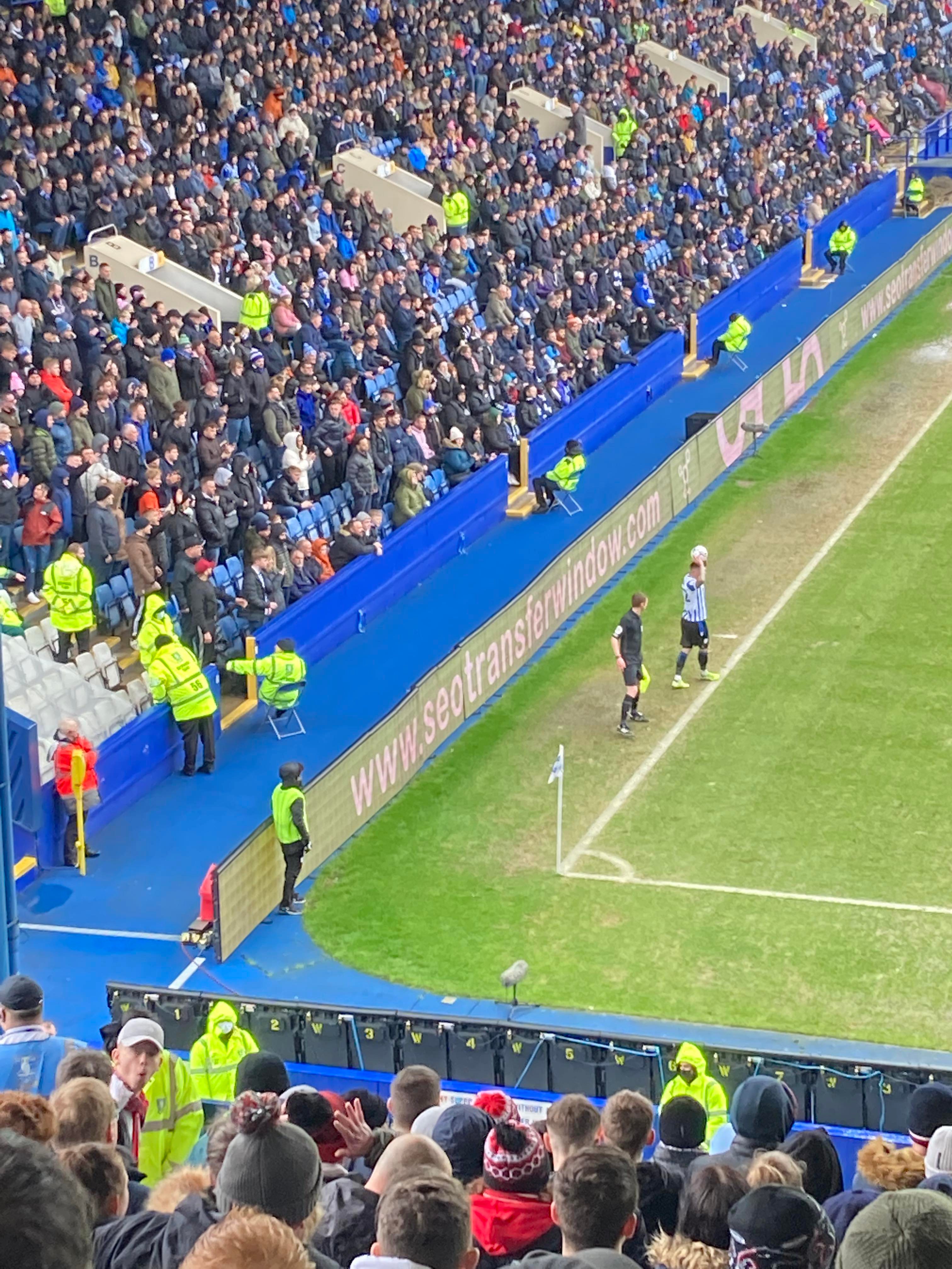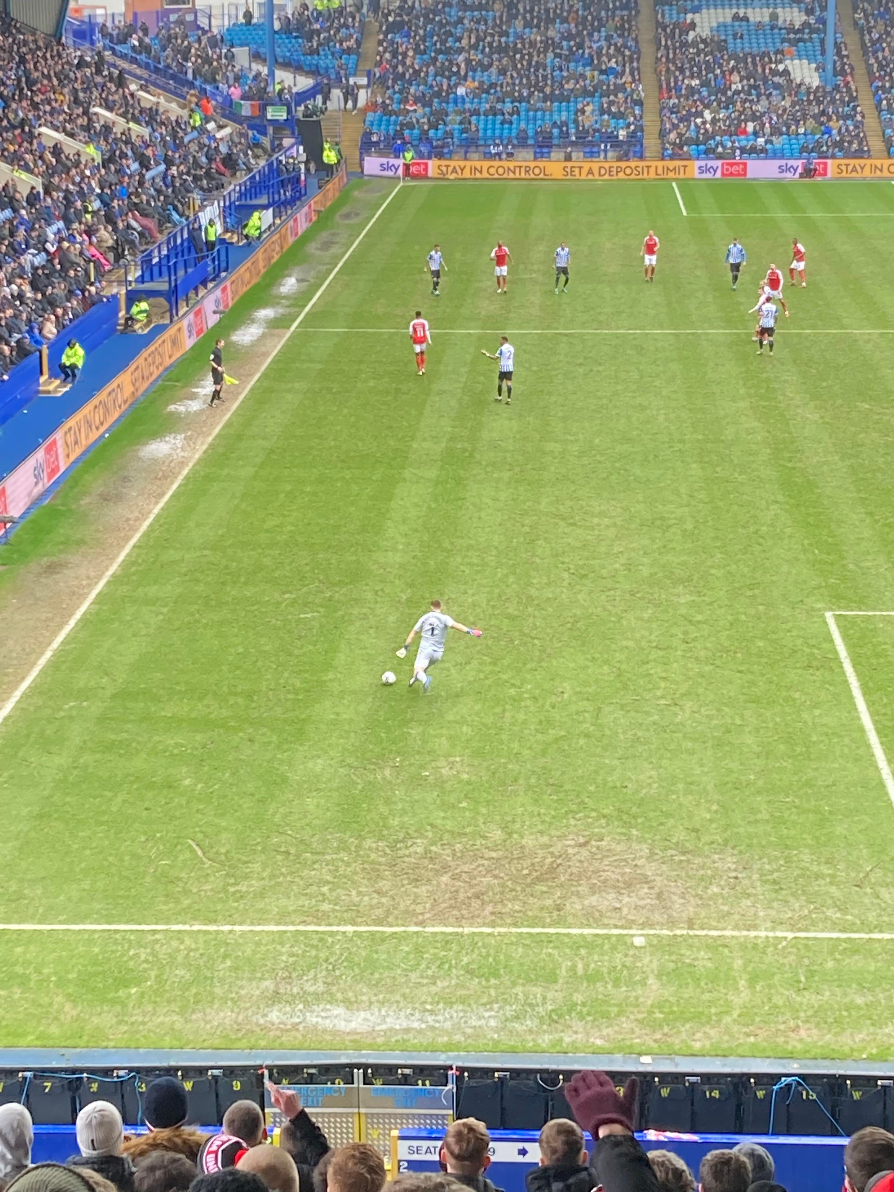 Kick Off! “Ladapooooo! Scoring all the goals Freddie! Make the Millers sing Freddie! Bouncing everywhere we go!” 4 minutes in and Rotherham play forward, it’s worked through to Chiedozie Ogbene, he shoots… Straight at the keeper! He’s Offside so it wouldn’t have counted anyway. “Da da dadada dadadada Wednesday!” The Wednesday drum is banging loud!! Can’t hear the trumpet though…