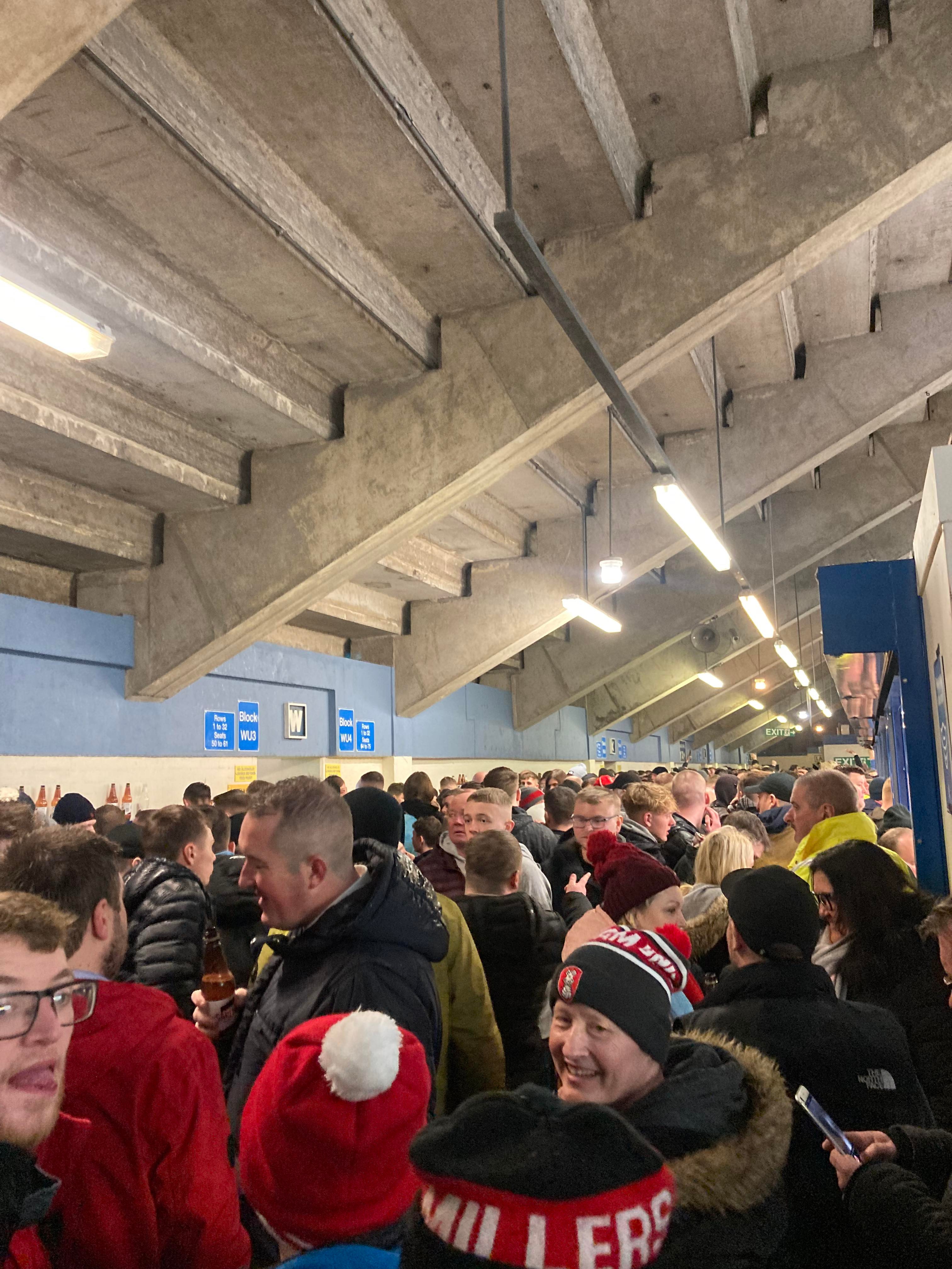 Hillsborough is starting to empty… “Is there a fire drill? Is there a fire drill?” Wednesday look finished sadly for them… Into stoppage time and Rotherham play it to Ogbene, he goes for goal from 25 yards out… Just over! Wednesday come forward again, Rotherham clear… The Referee blows for full time!!! A massive win for Rotherham!!! The ground has emptied pretty quickly in the home end as if it was leaking fans… Out we go and off we go to the New Inn in Rotherham for the Celtic vs Raith Rovers game! Oh hello Millmoor!