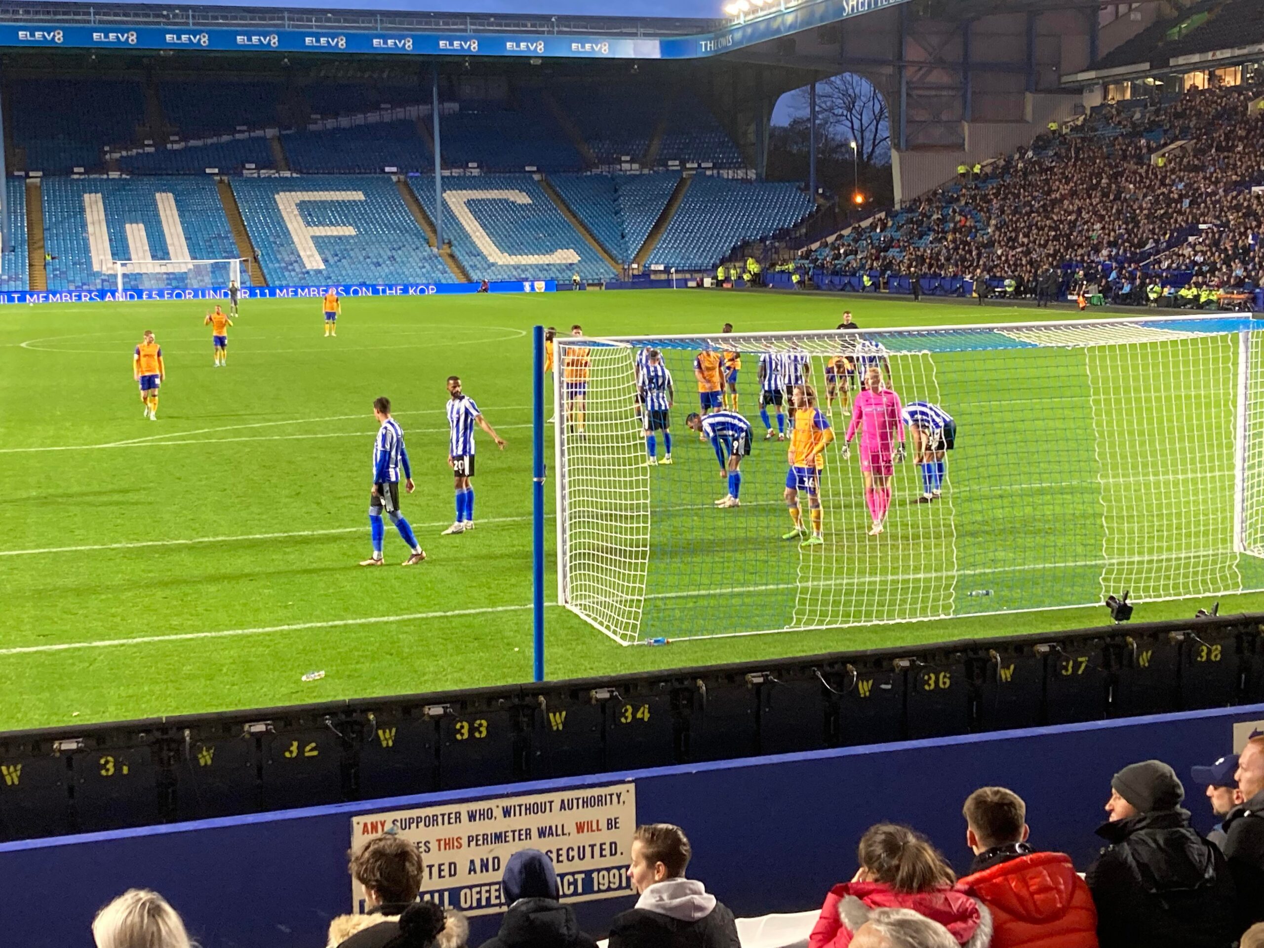 “Yellow & Blue Army!” Some big noise in the away end so far! The Kop stand is closed funnily enough and an early pyro in the top tier at Leppings Lane so far! 5 minutes now and Boateng receives the ball upfield and he goes for goal from 20 yards… Wide! Should be hitting the target from there but a great start by Mansfield!