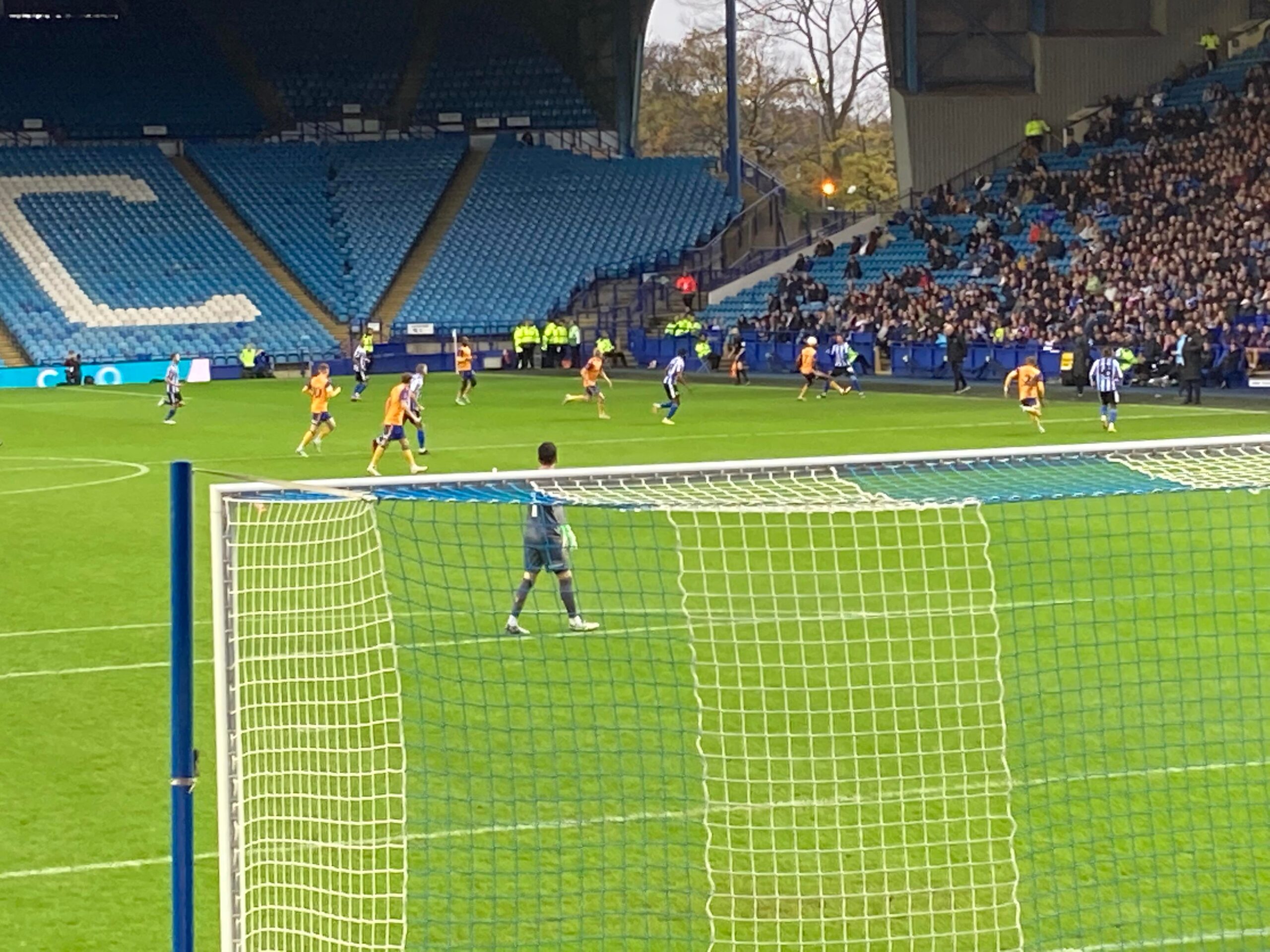 “And it’s all gone quiet over there!” Wednesday fans paying the travelling Stags a very nice compliment there! 86th minute and Wednesday down the left again, it’s fizzed across… Pym gets there but it falls to a Wednesday man… Shot blocked! So close!
