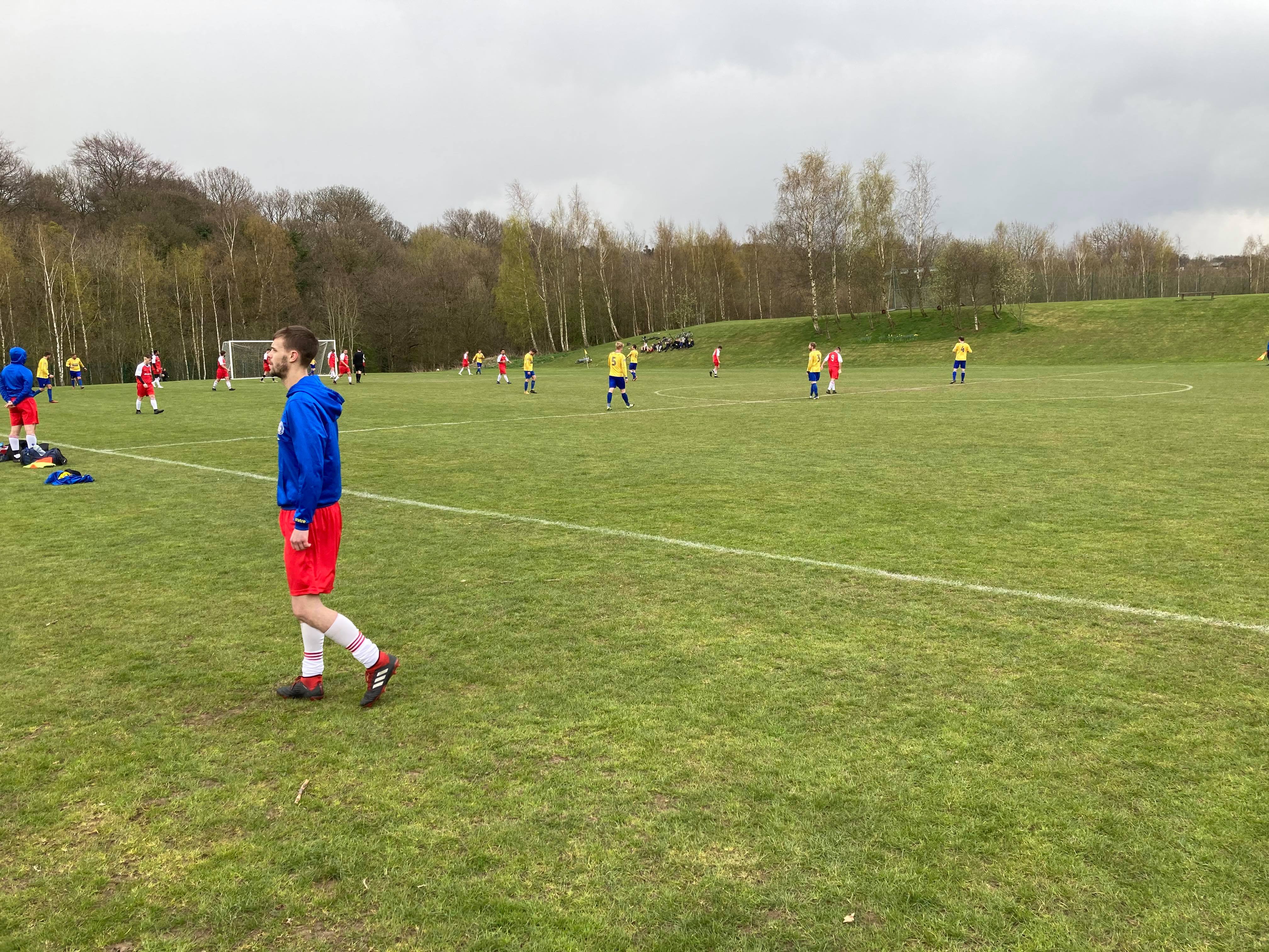 A lovely walk from Silkstone Common train station to the ground unfortunately ruined by the stench of cow dung… Disgusting! A short trip through the woods and here we are!! Free entry for this one! Boo Yeah!! Kick Off… But first we remember the honourable hero that was Prince Phillip. A one minute silence from all before the start.