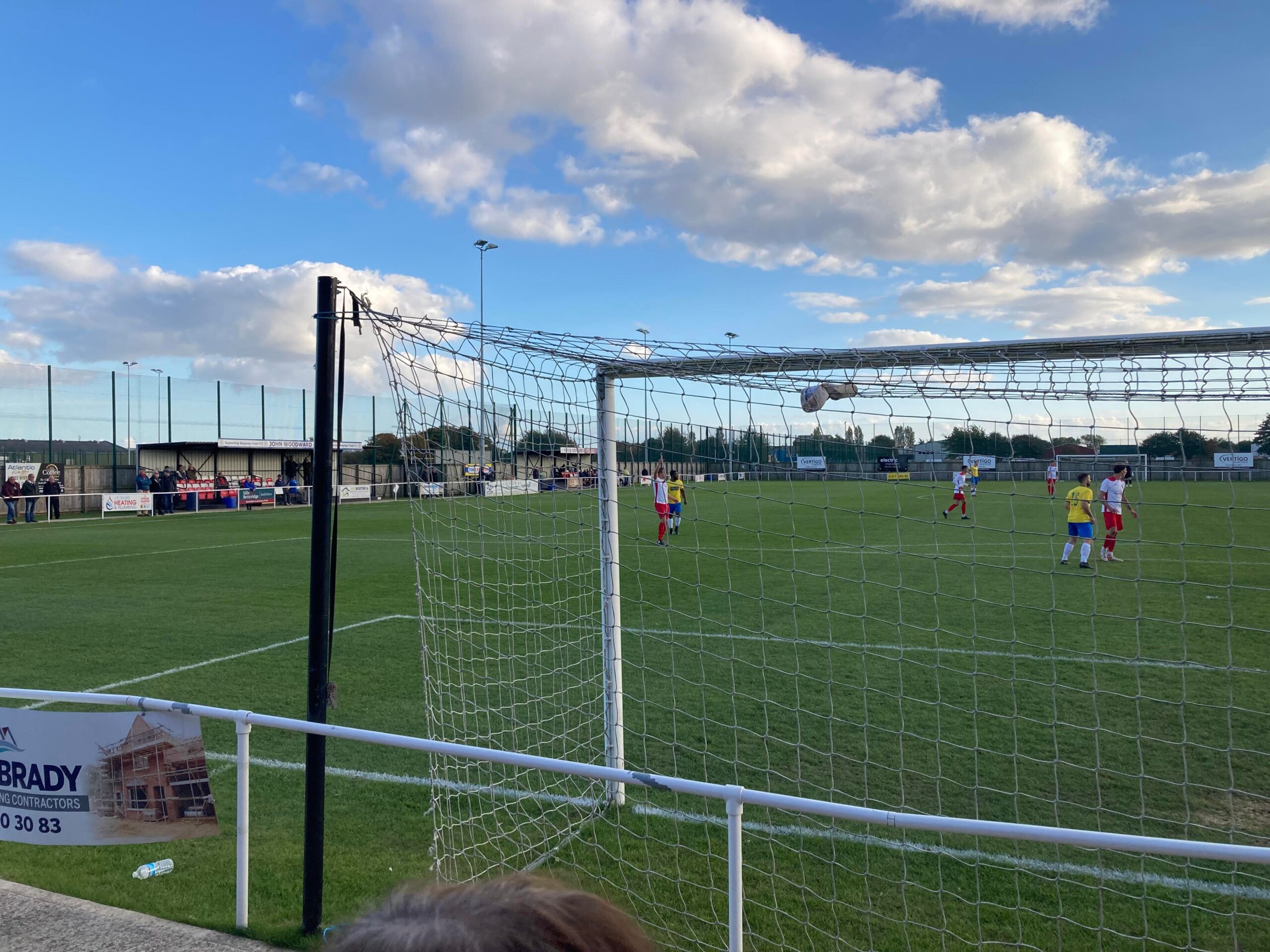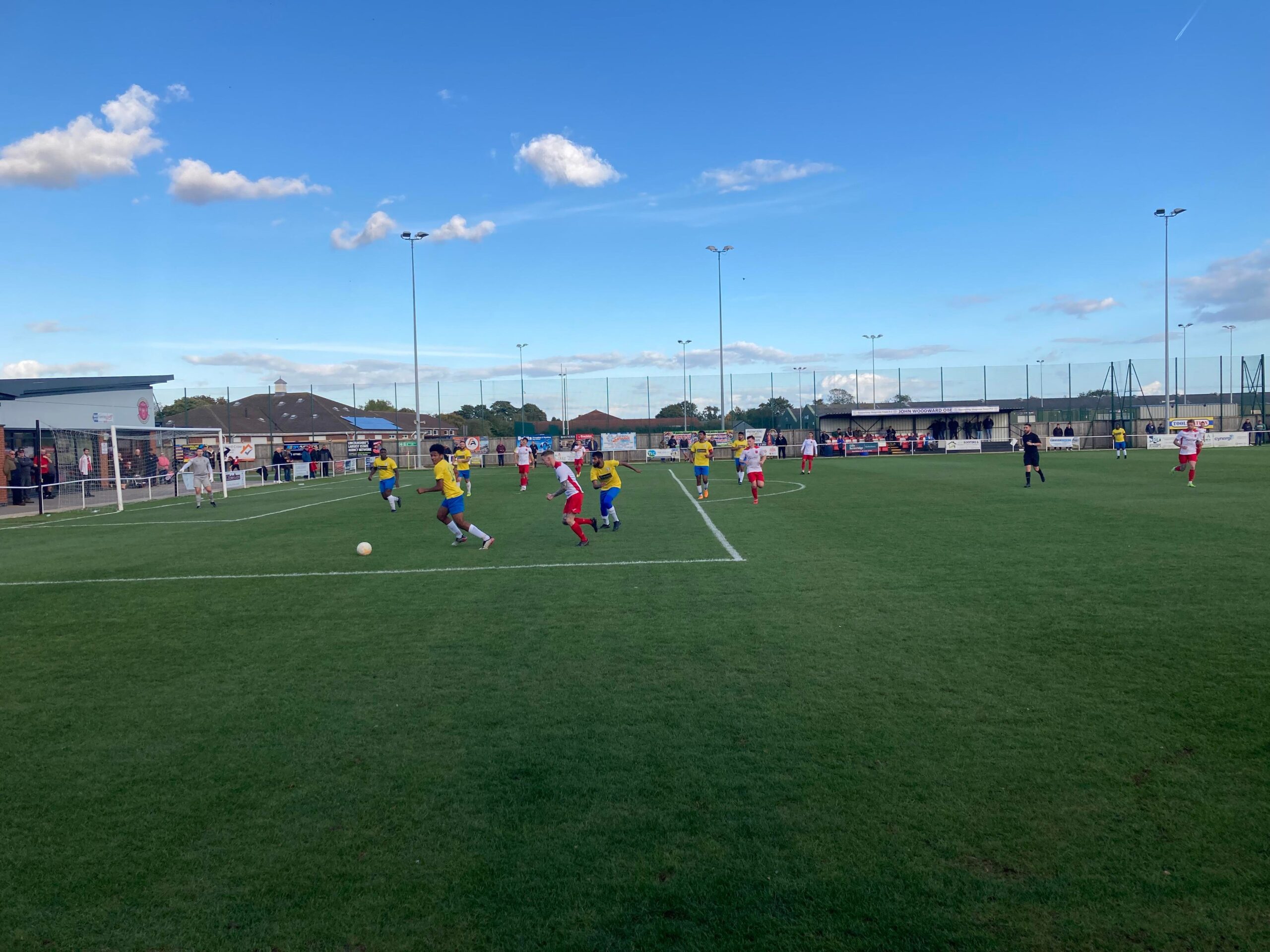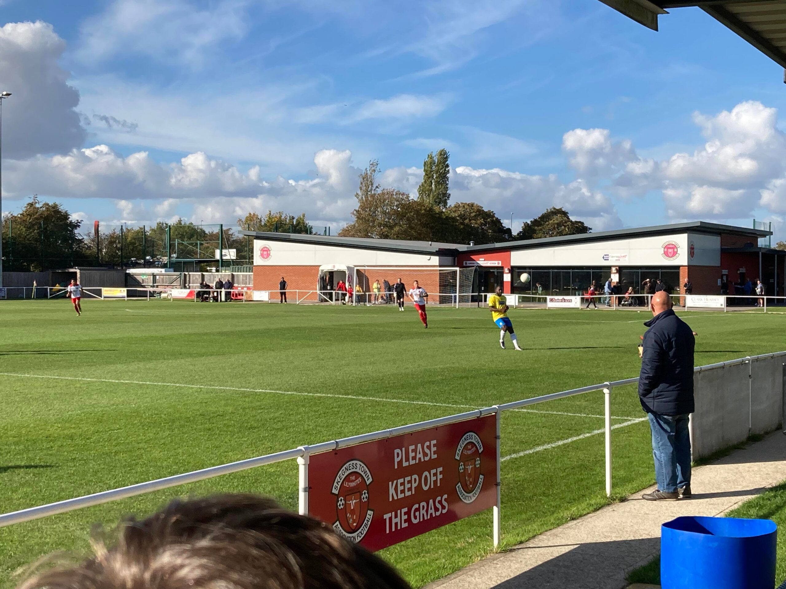 A competitive game here so far. Skegness have responded well to going a goal down but seem to be lacking in the final third whereas Oadby look more efficient when going forward. Skegness RUFC are playing on the pitch to the side of this ground and there is a lot of noise coming from the crowd in that game! A few lads behind the goal next to the clubhouse are having a good time here but it certainly sounds like fun in that Rugby game!