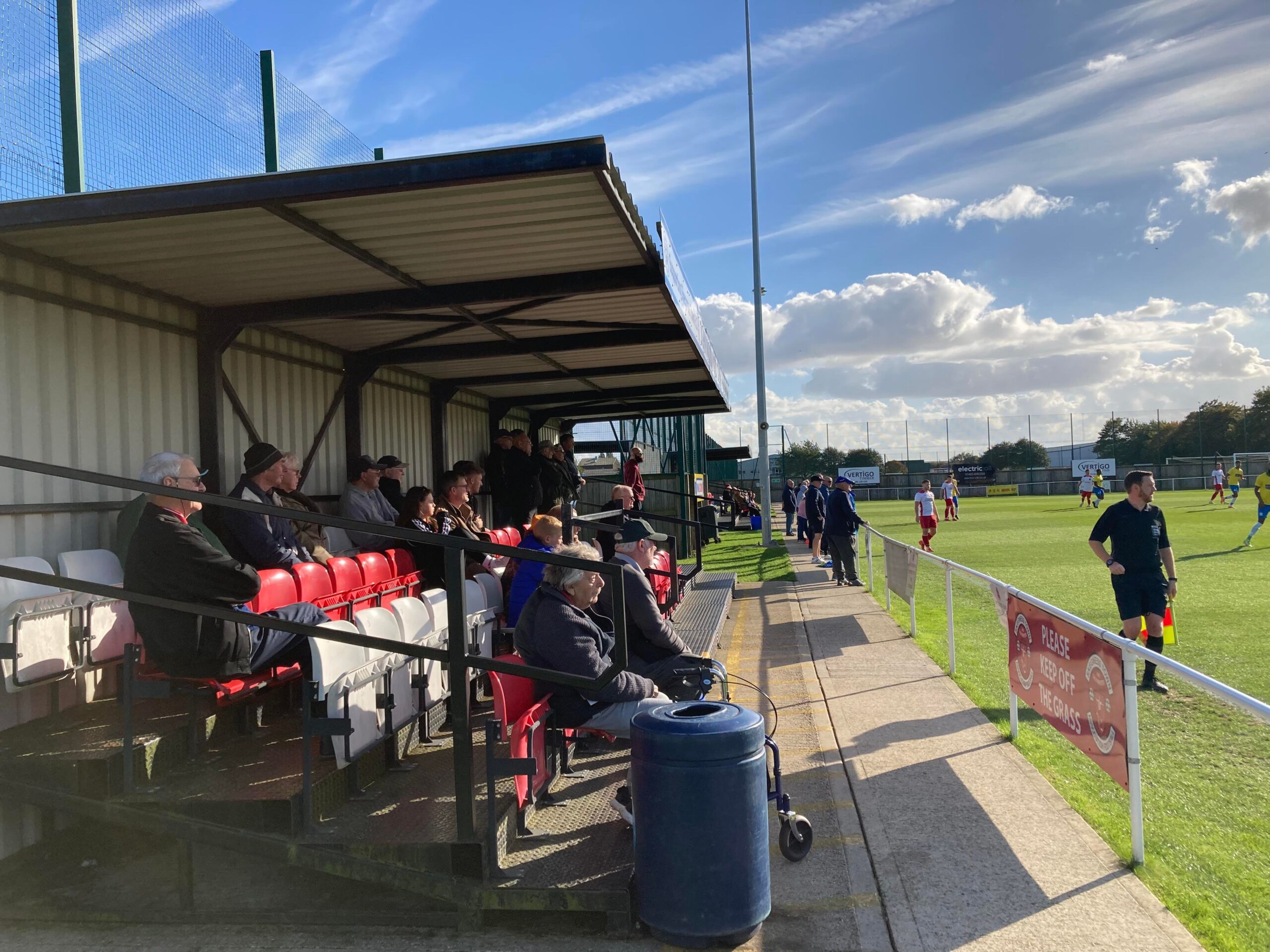 - Atmosphere: 4/10 – Those lads behind the goal were having a good time! I loved how the Oadby keeper bantered on in good spirits with them! There was a really nice community feel at the club between fans and club committee which I especially liked as well!