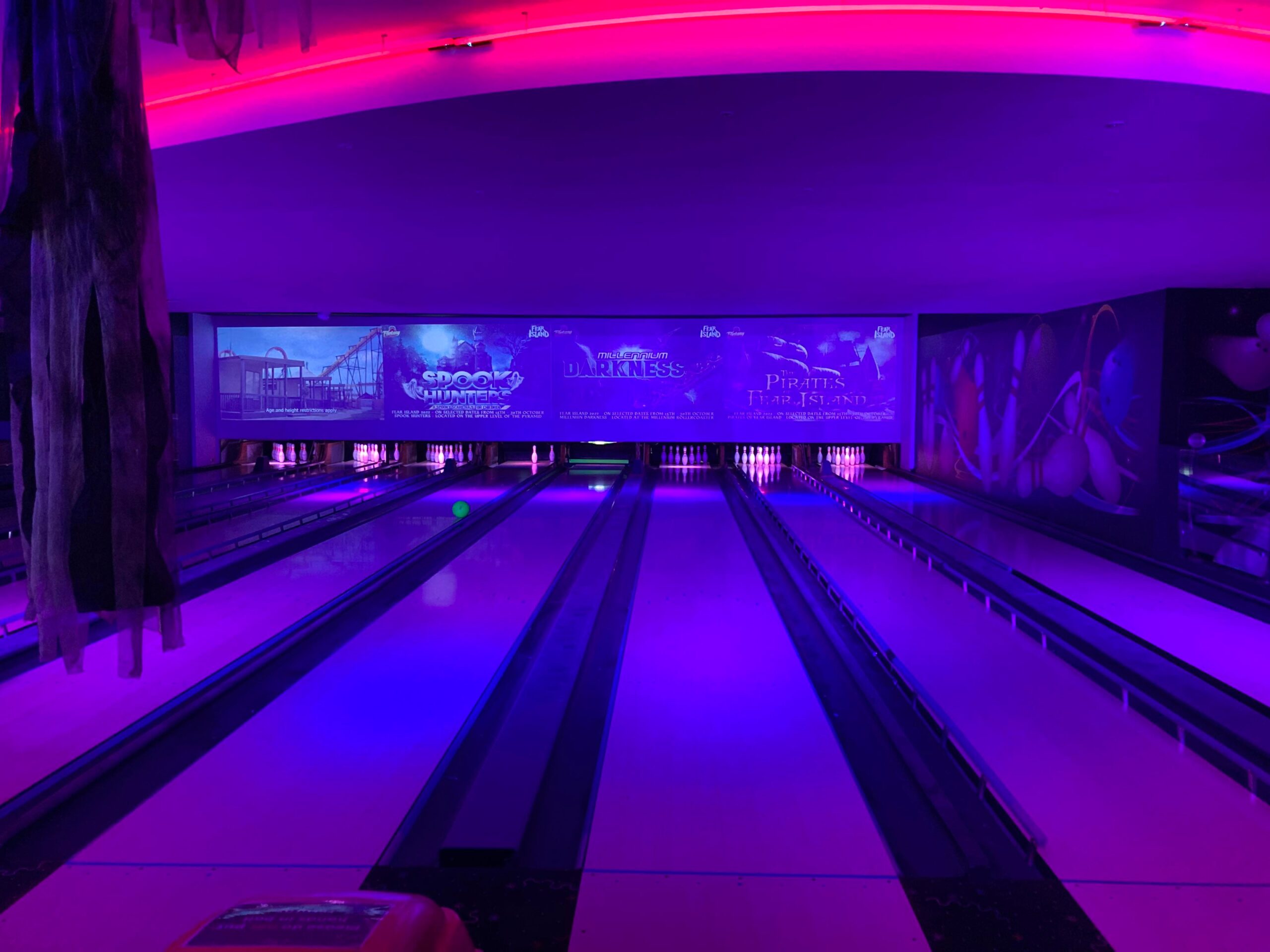 Now for one of my favourite fairground rides, the Waltzer! Sam and Sketz aren’t so sure… We’re doing it! I just hope they don’t throw up on me… Here we are… It’s closed… A fault in the system but should be back open later… Sadly we haven’t got a later today… DAMN!! So now what…? Oh look a bowling alley! Let’s play!
