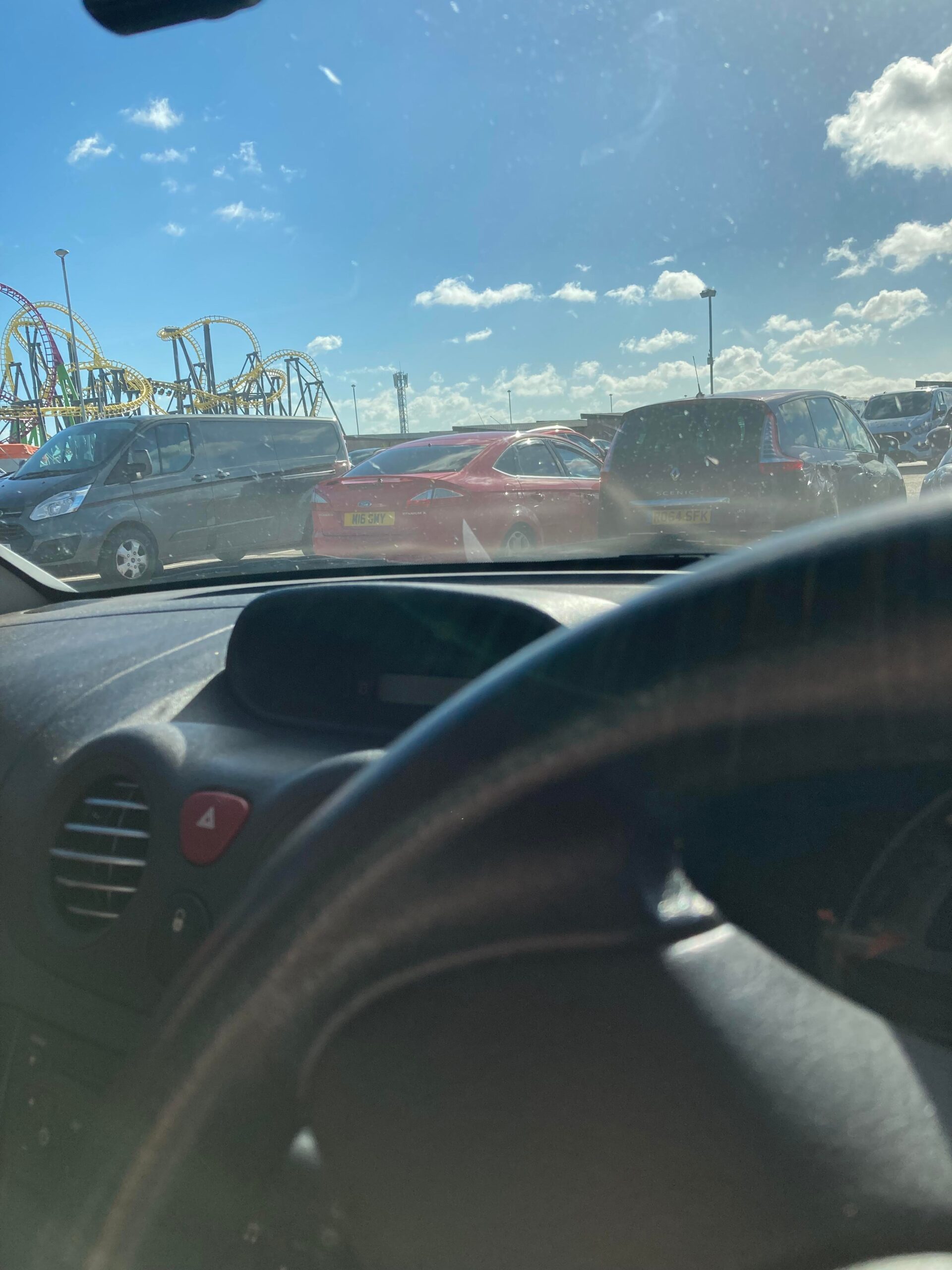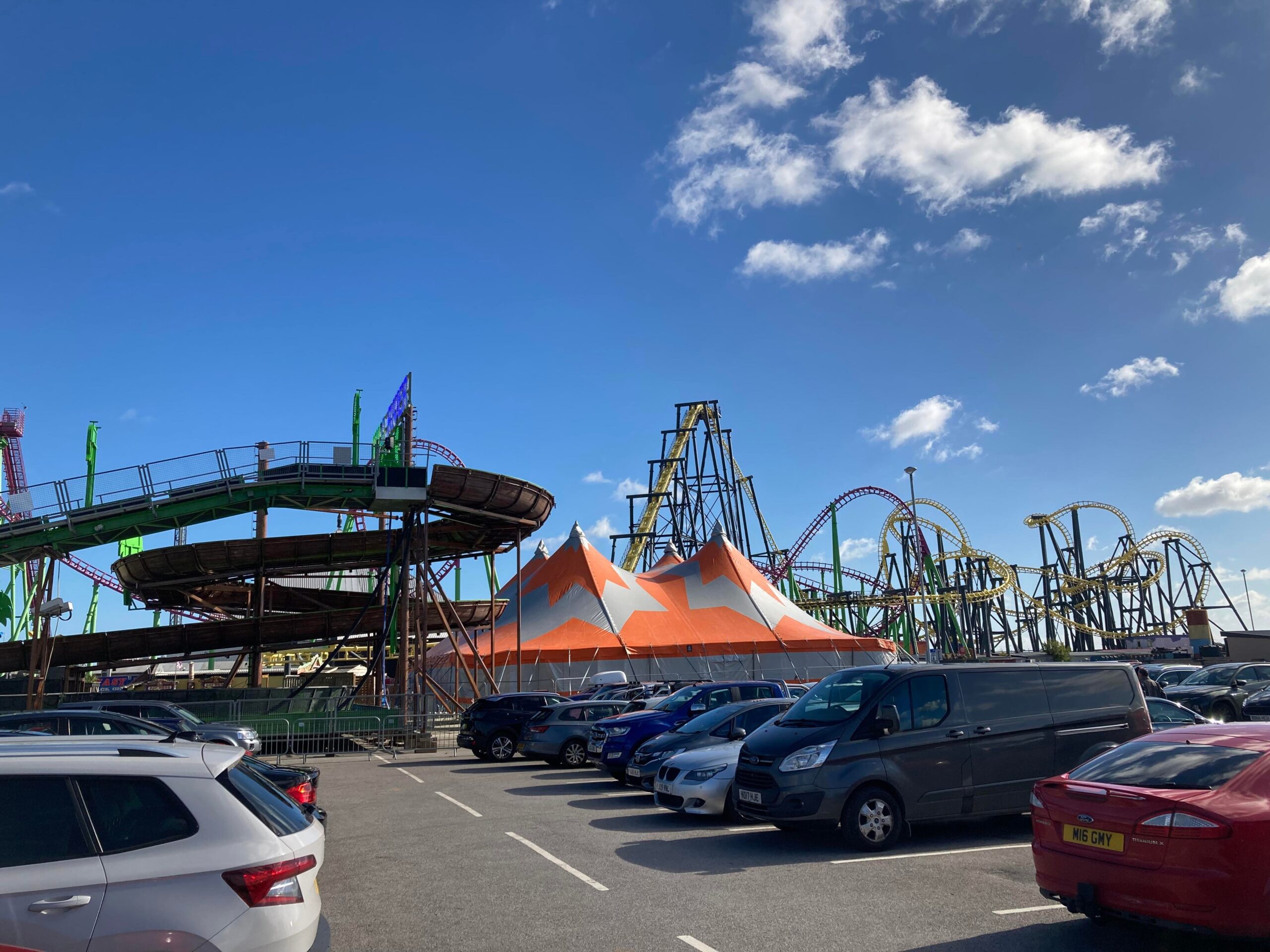 We’re past the Skegness Raceway Stadium and all parked up next to Fantasy Island with the time at 12:40pm. I have never been on the Odyssey roller coaster before. As a child, I used to stare at the Odyssey from a distance back when it was painted in red looking forward to being old enough and tall enough to ride it. Today is the day! In the newly painted yellow. £4 for parking and £5 later we’re going in!