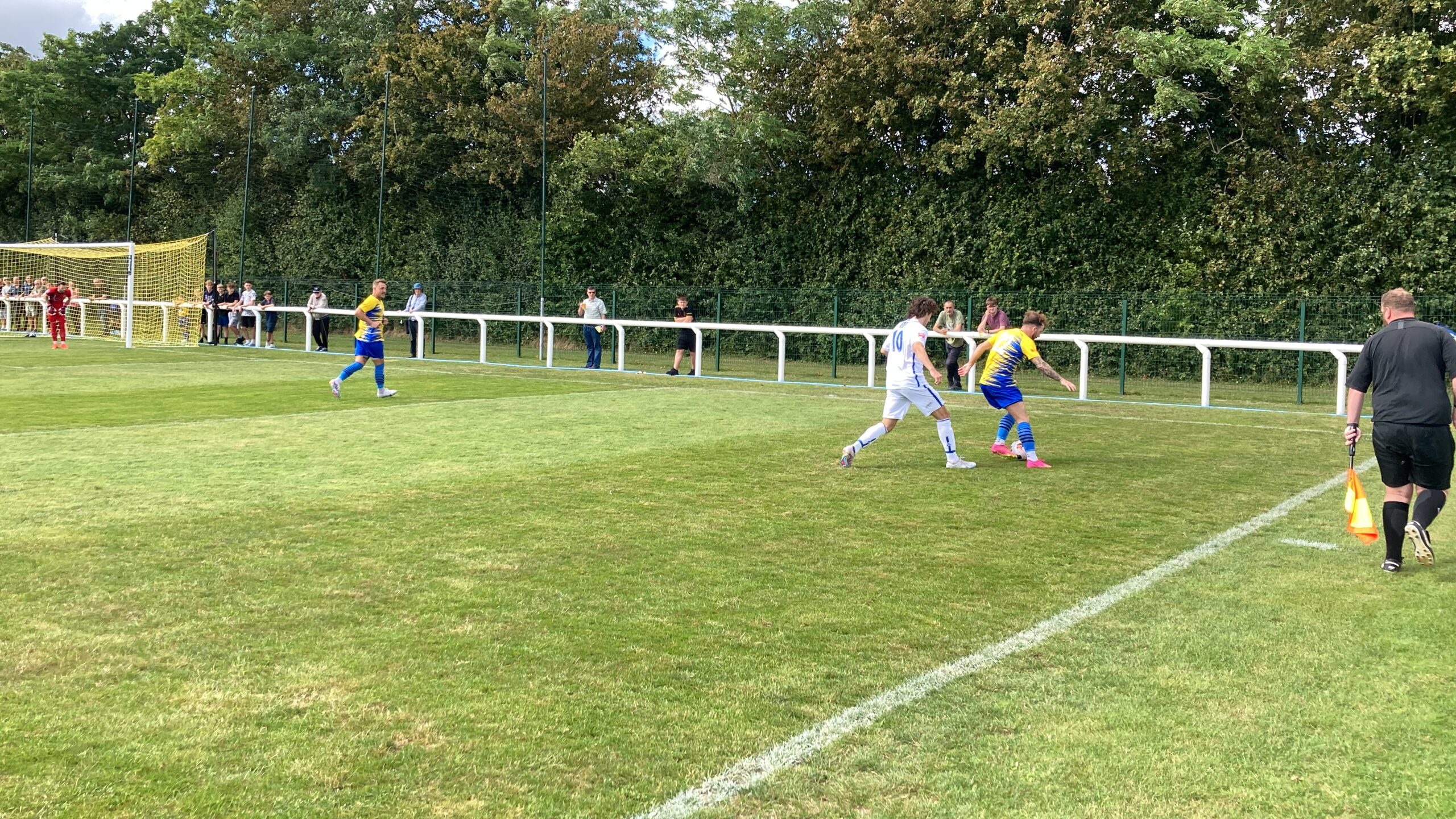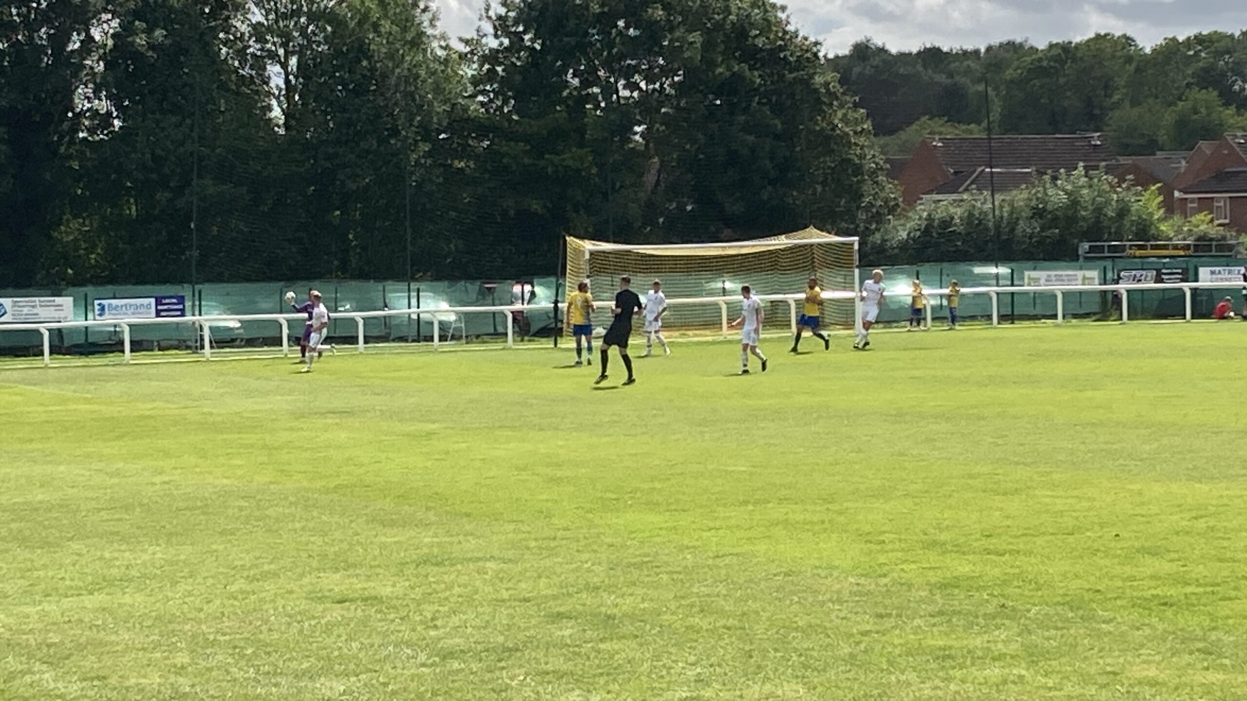 30th minute and Chertsey have a corner, in it comes… It’s dangerous… It’s headed in!! Louie Bouwers with the header! The Snodland keeper is furious! Nothing in it for me! 1-2!