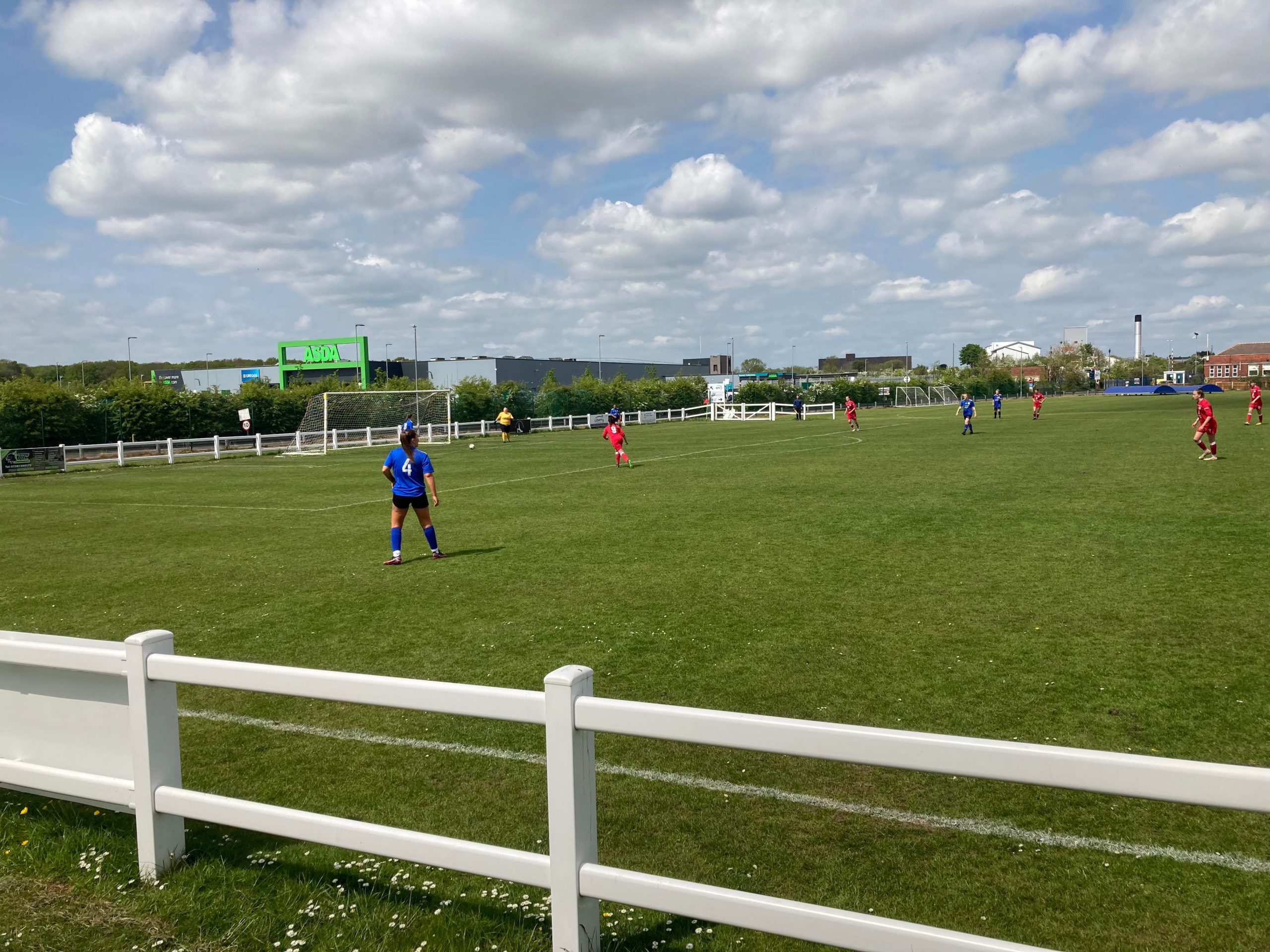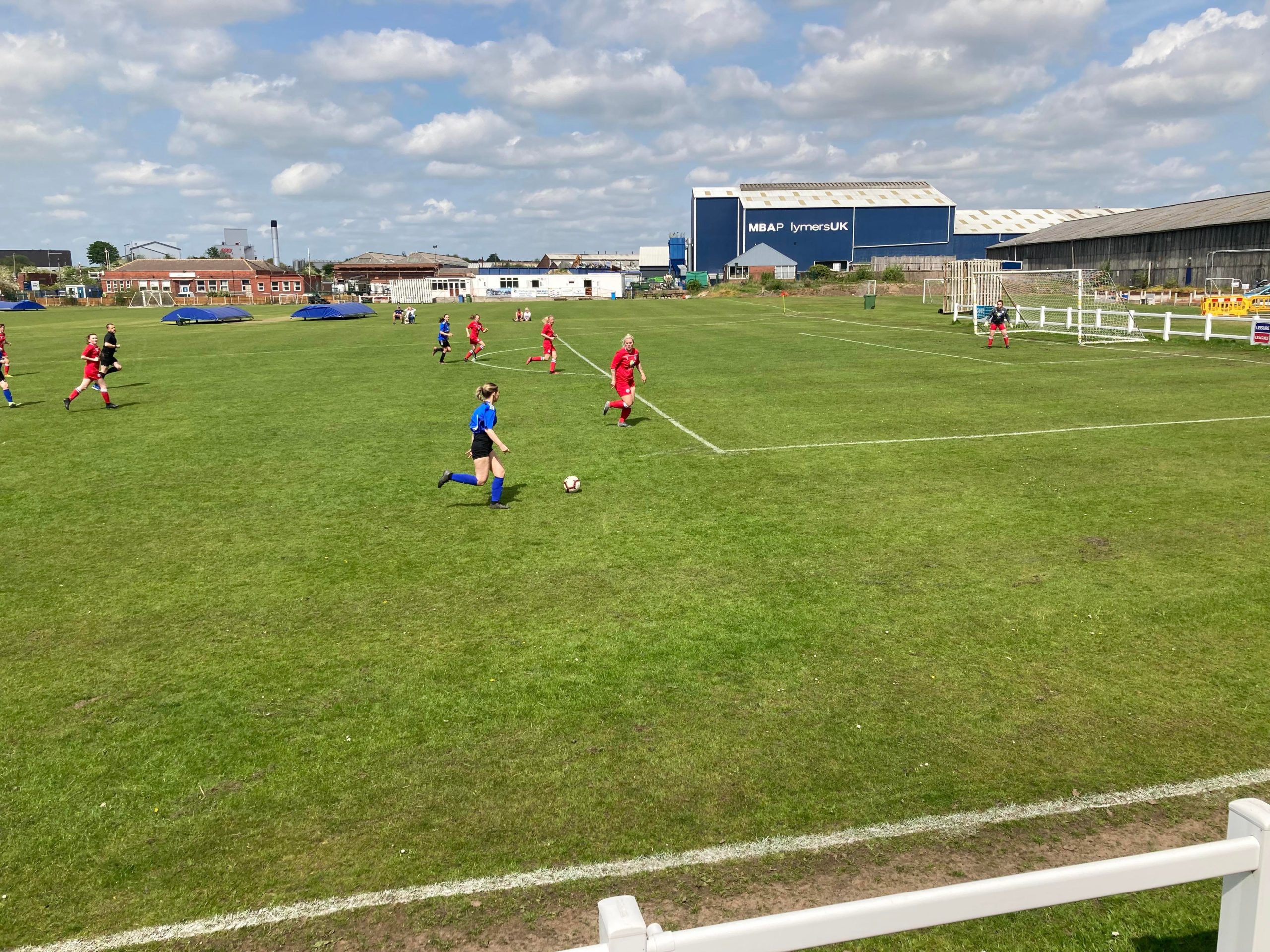 37th minute and Grimsby come forward, a through ball to number 21 in the box and she gets to it with the keeper committed, she shoots… Good save by the Worksop keeper! 44 minutes now and Grimsby have a corner, in it comes… Worksop header away but Grimsby get it back into the box, it falls to number 15 who shoots… Blocked! It falls to number 20 to shoot… Worksop block again and they clear. At half time, Worksop lead 1-0.