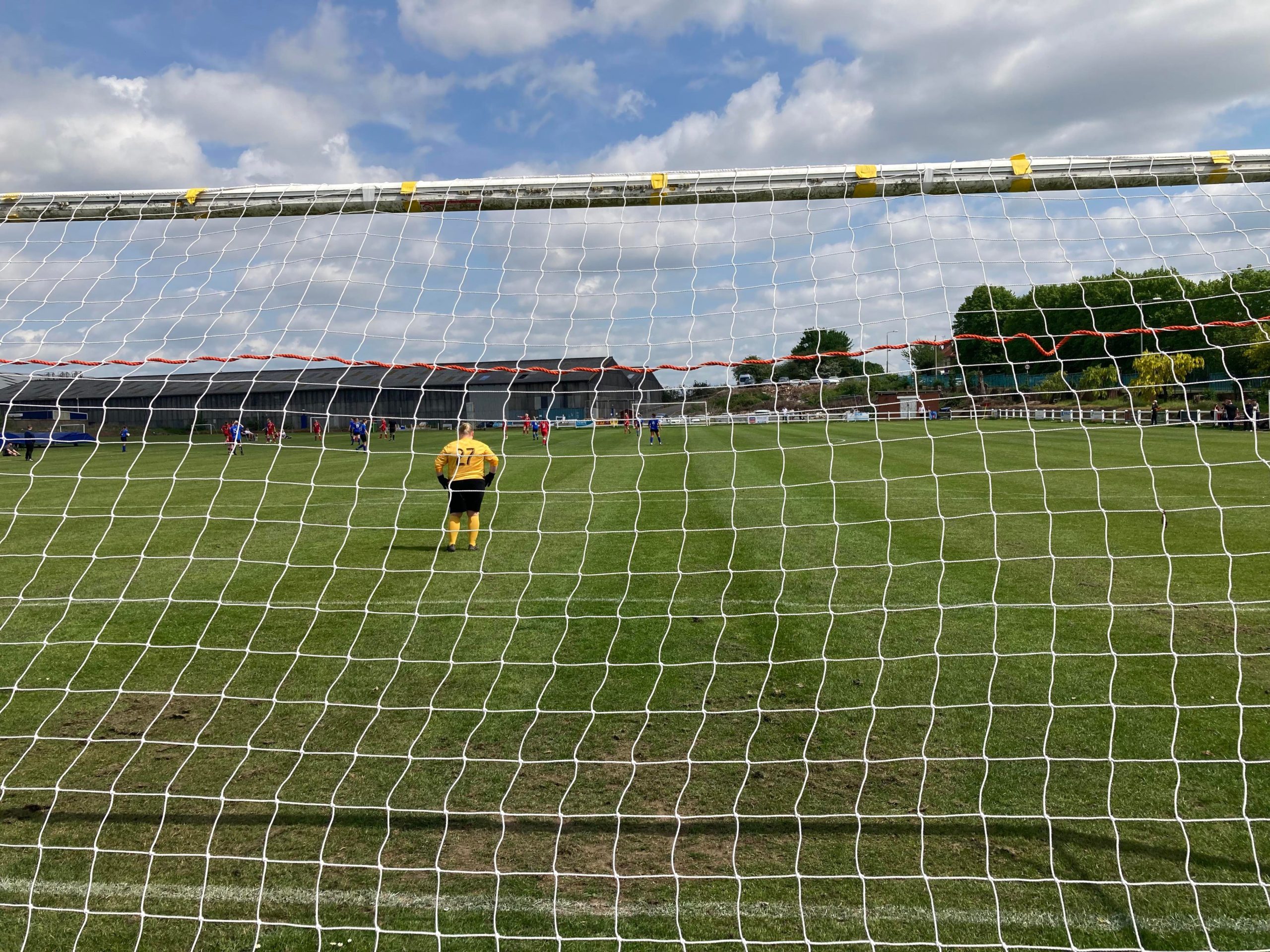 74th minute and Worksop play forward, a ball over the top to number 13 in the box on the right like the first goal, the keeper comes… Number 13 gets there first… But shoots wide. 2 minutes later and Worksop win a free kick on the edge of the box, number 10 steps up… And it’s a brilliant free kick!!! Right into the top corner!!! 2-0!!