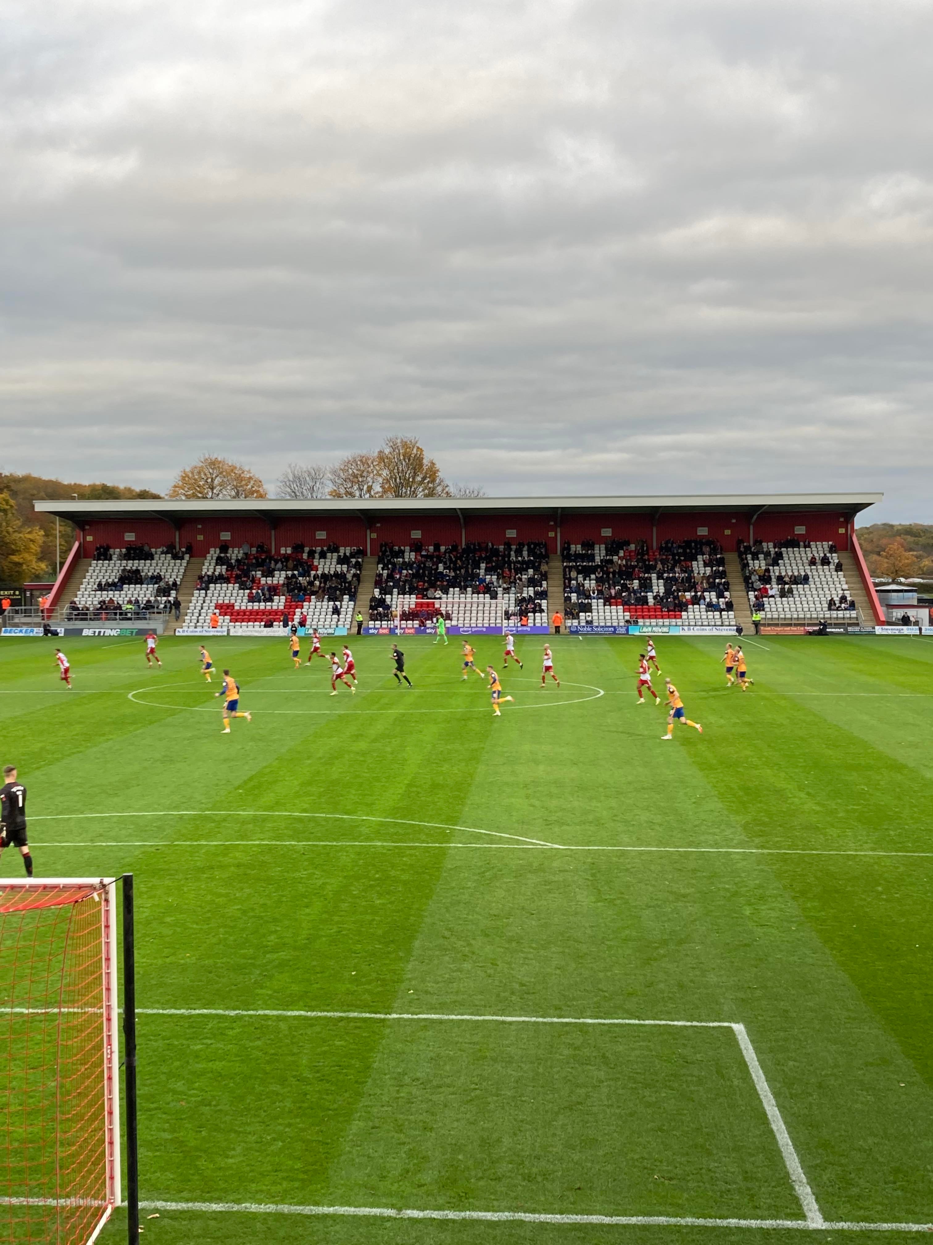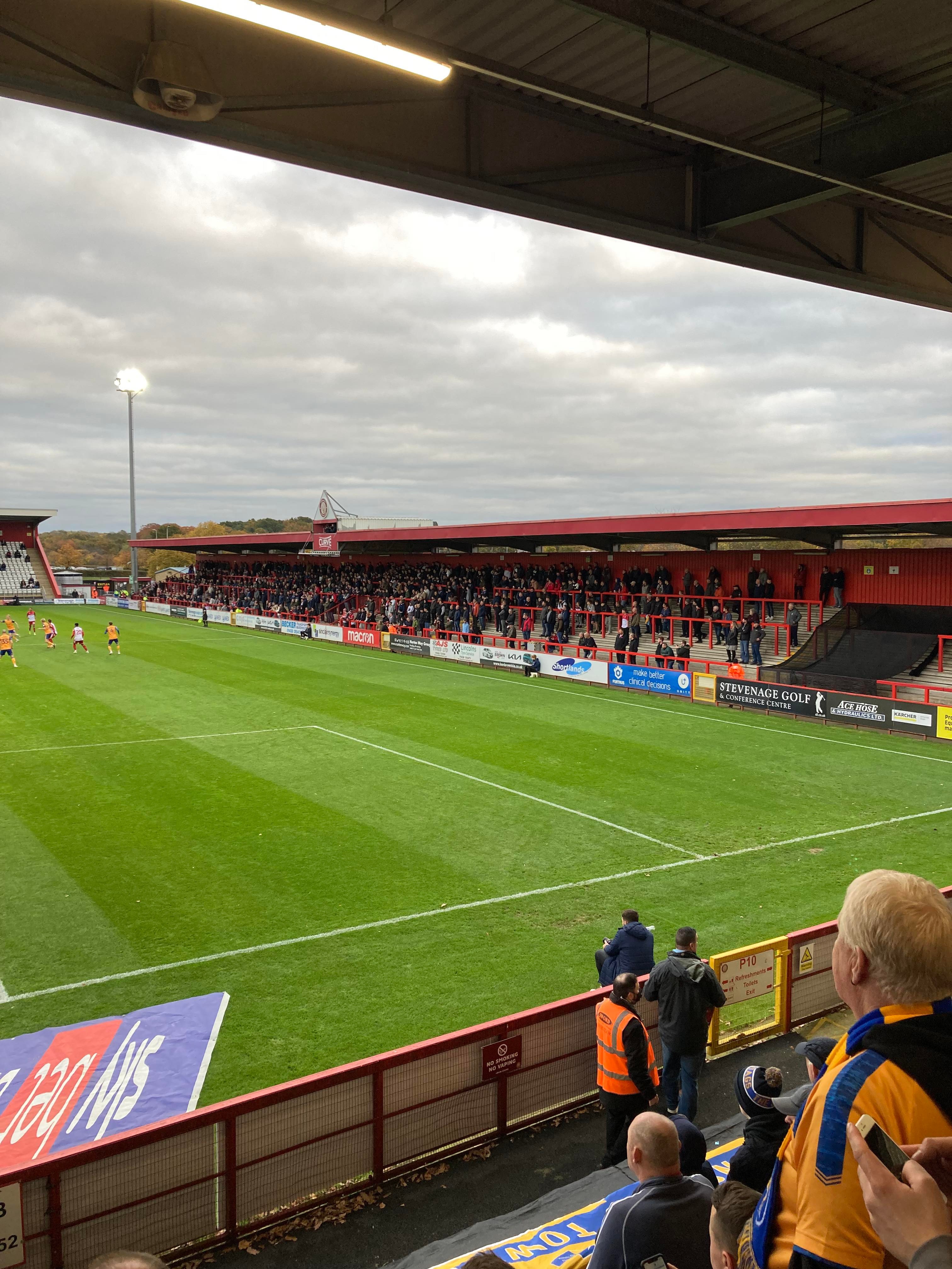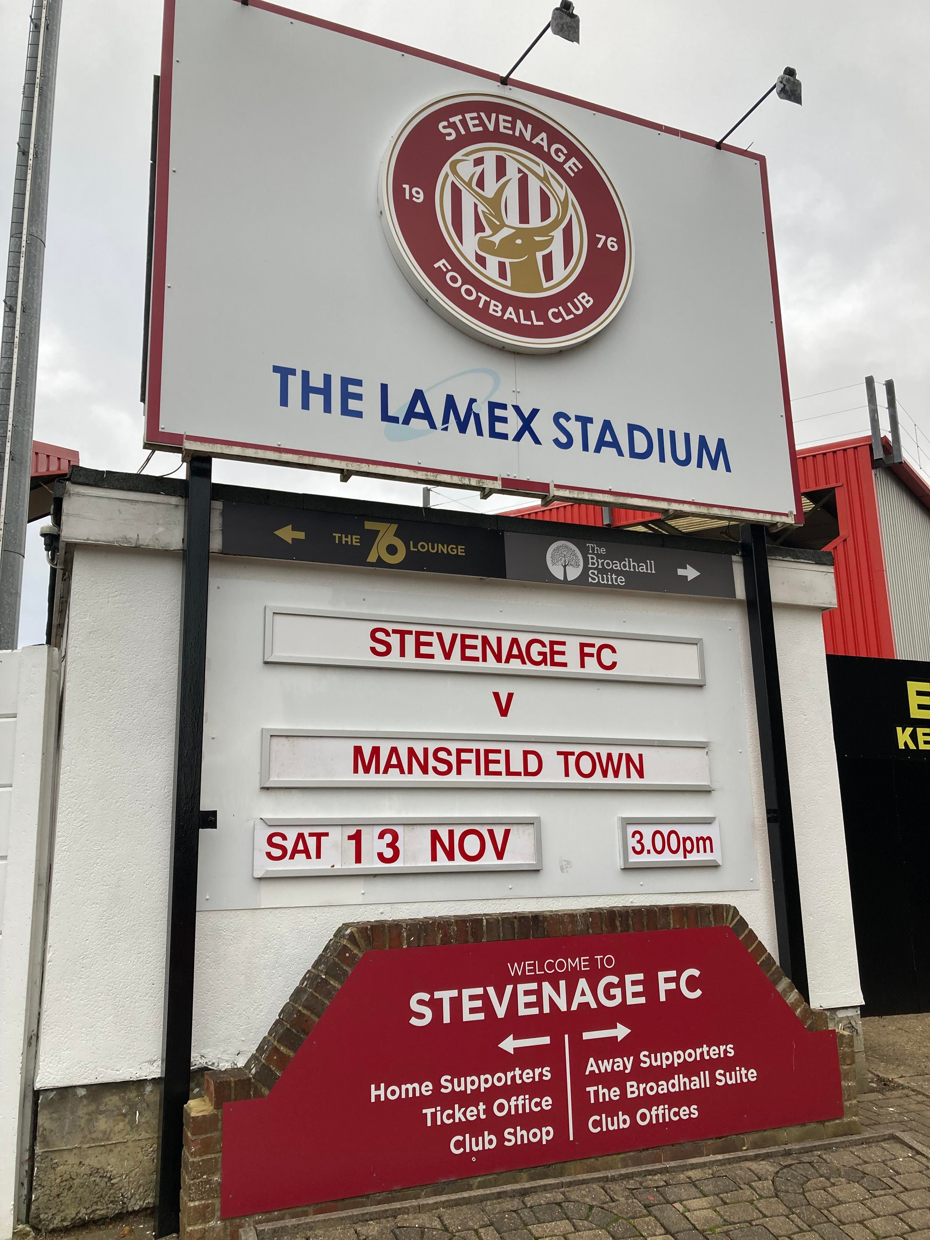 The Lamex Stadium, home of Stevenage FC based in Hertfordshire and play their trade in League 2. Nicknamed the “Boro” as the club was formerly known as Stevenage Borough but after getting into the Football League in 2010, the club was renamed as Stevenage FC. My beloved Mansfield Town are the visitors today and the Super Stag, Broseph, Tom, Curtis, Chris, Jack and Fez are making the trip and it would be very rude of me not to join them!!