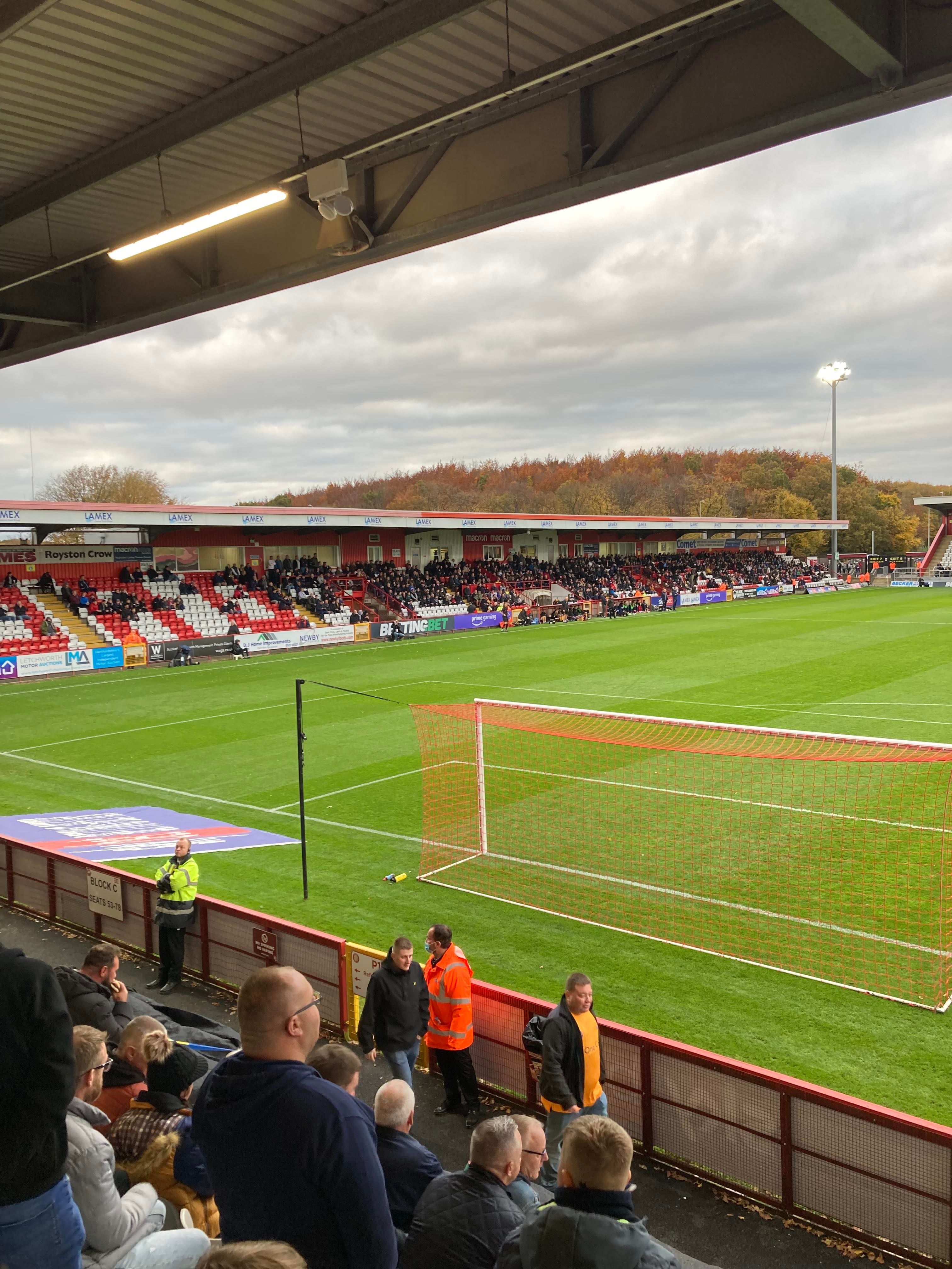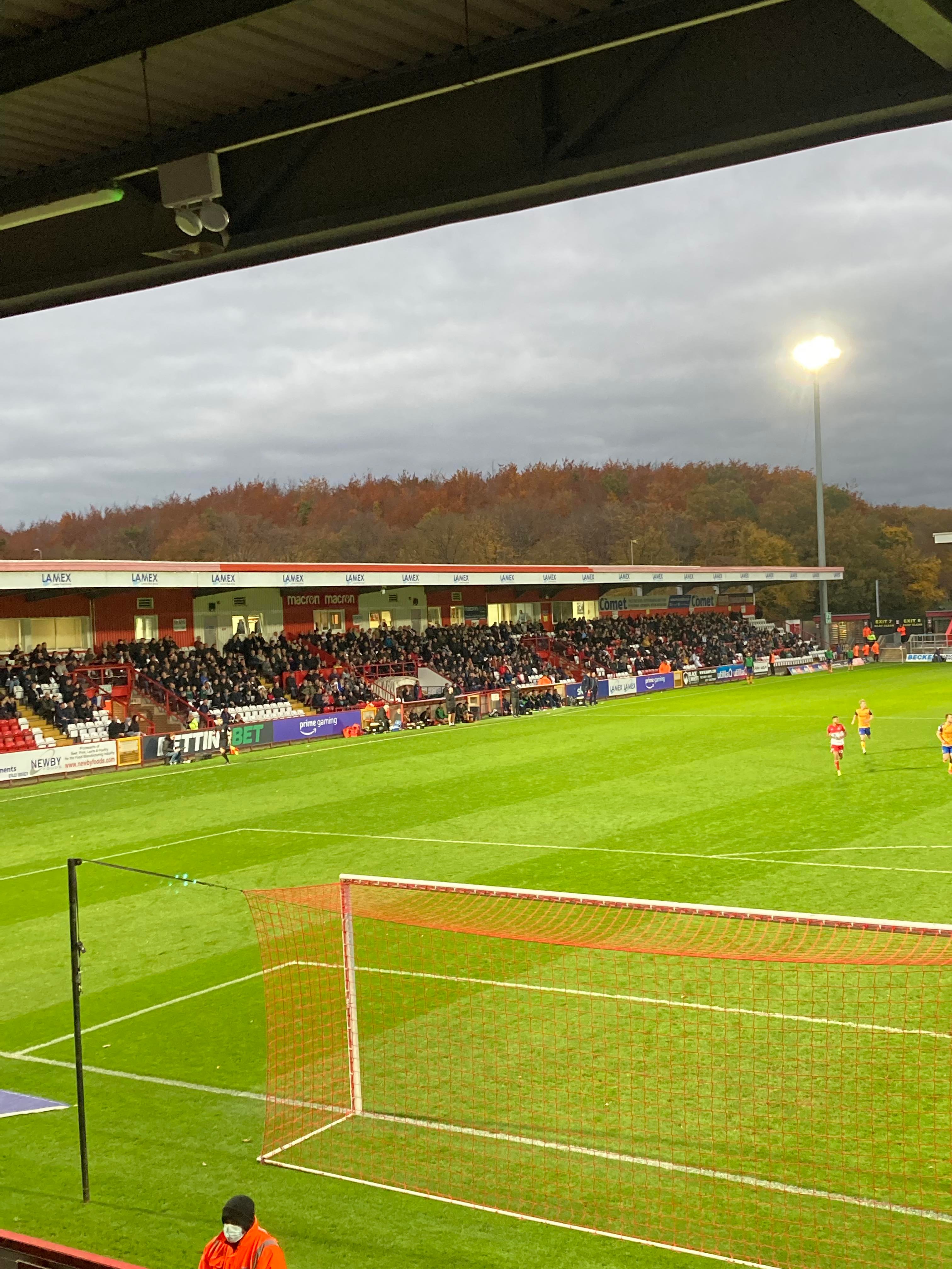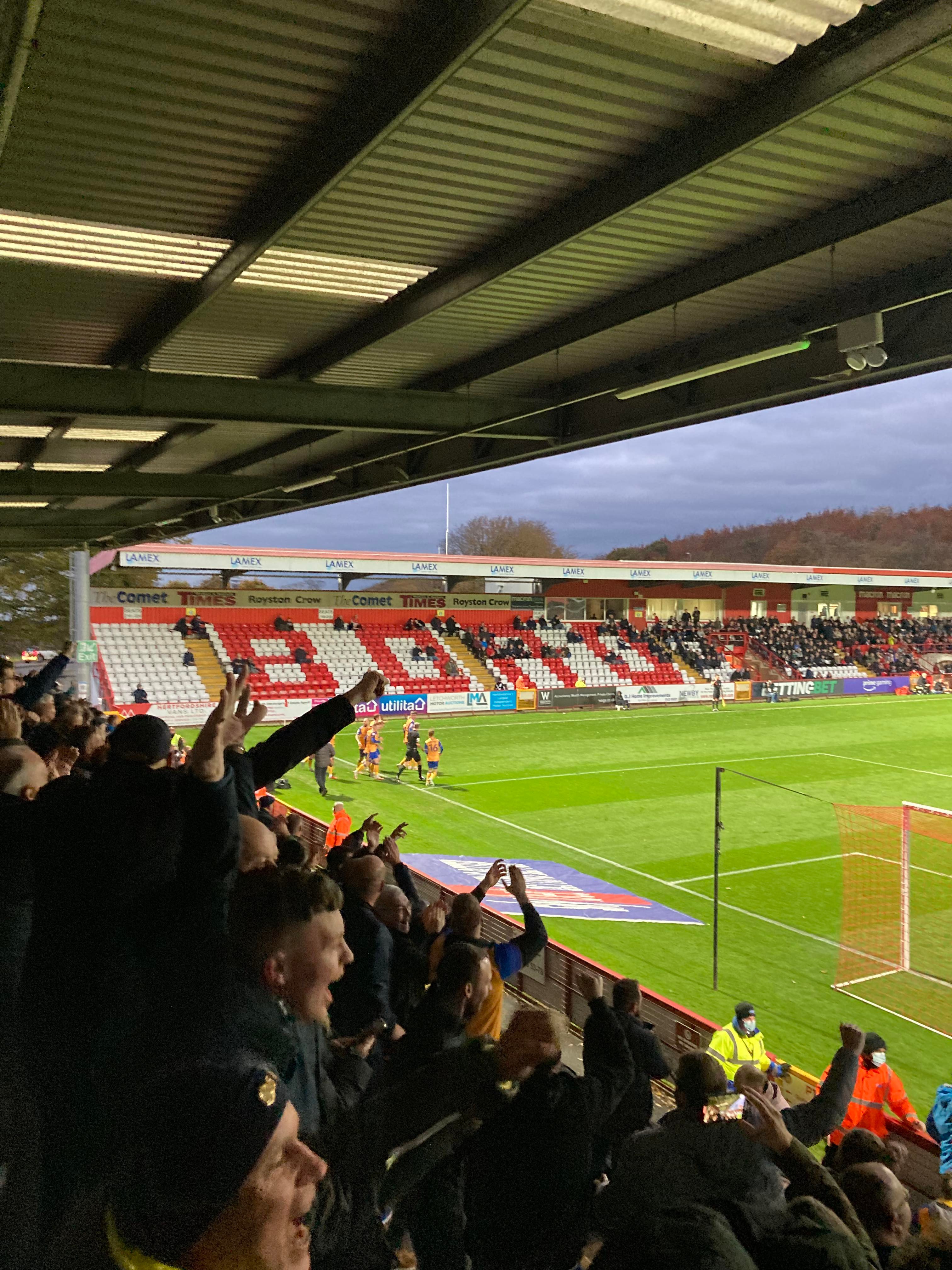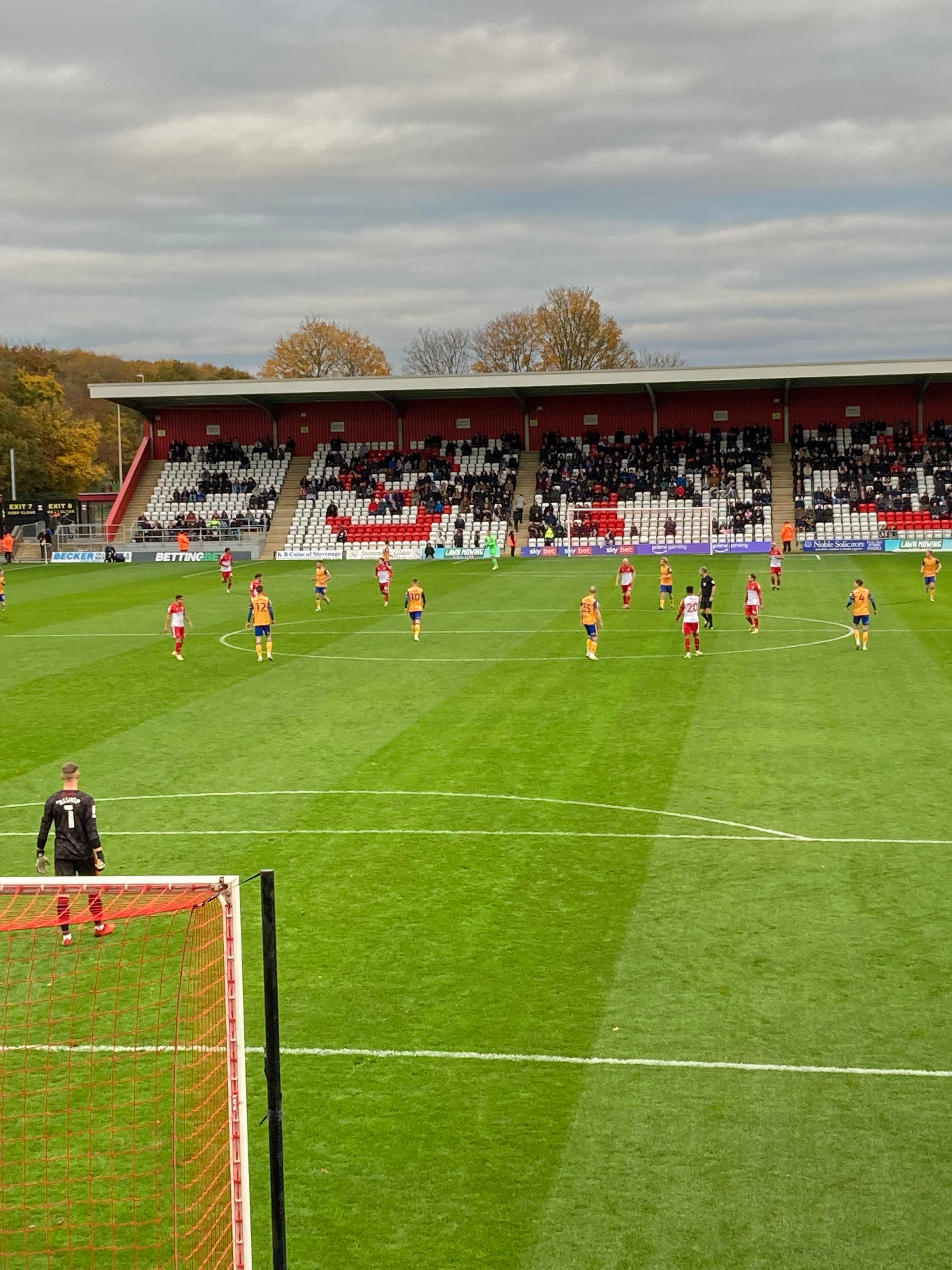 The Lamex Stadium, home of Stevenage FC based in Hertfordshire and play their trade in League 2. Nicknamed the “Boro” as the club was formerly known as Stevenage Borough but after getting into the Football League in 2010, the club was renamed as Stevenage FC. My beloved Mansfield Town are the visitors today and the Super Stag, Broseph, Tom, Curtis, Chris, Jack and Fez are making the trip and it would be very rude of me not to join them!!