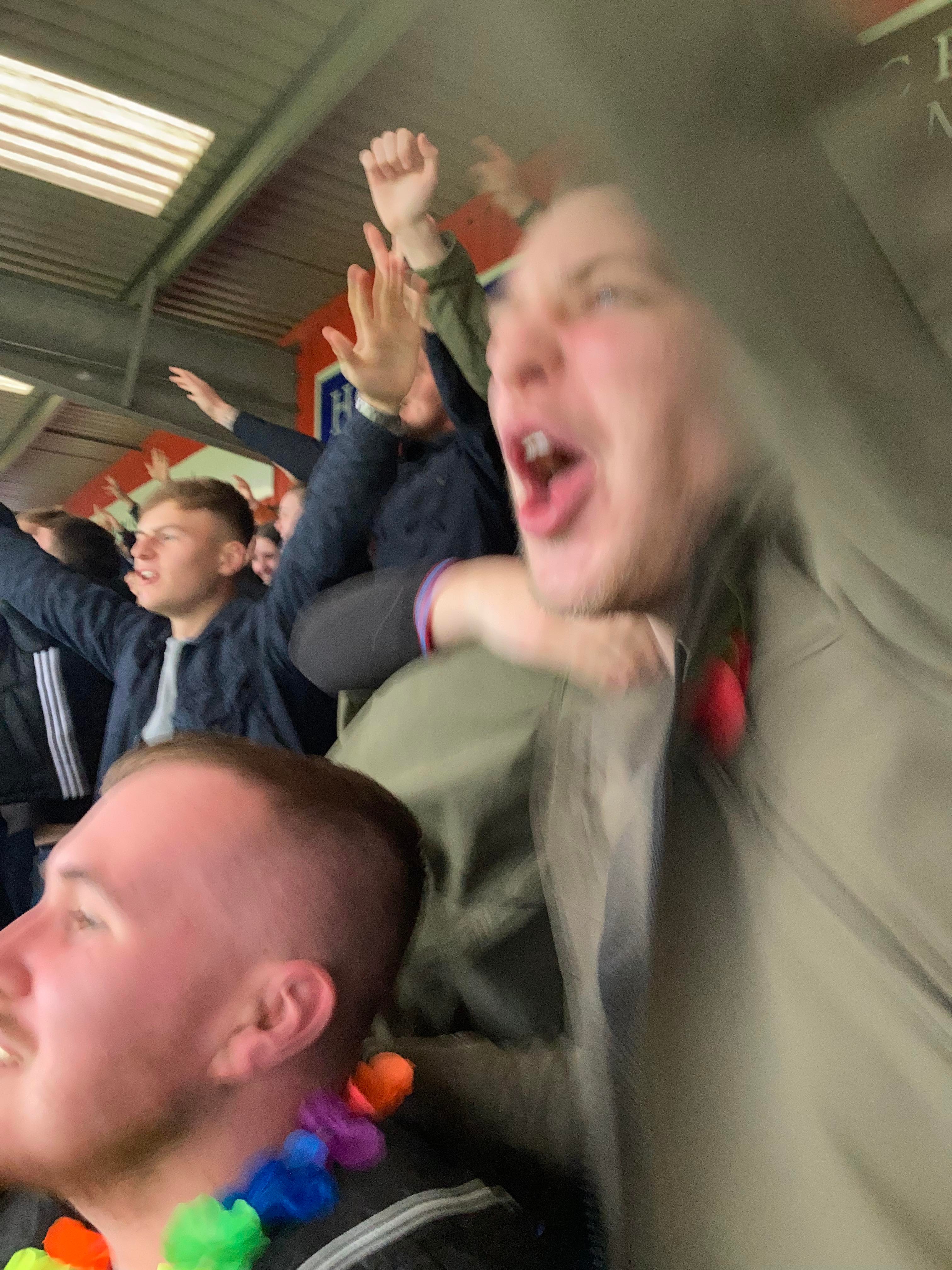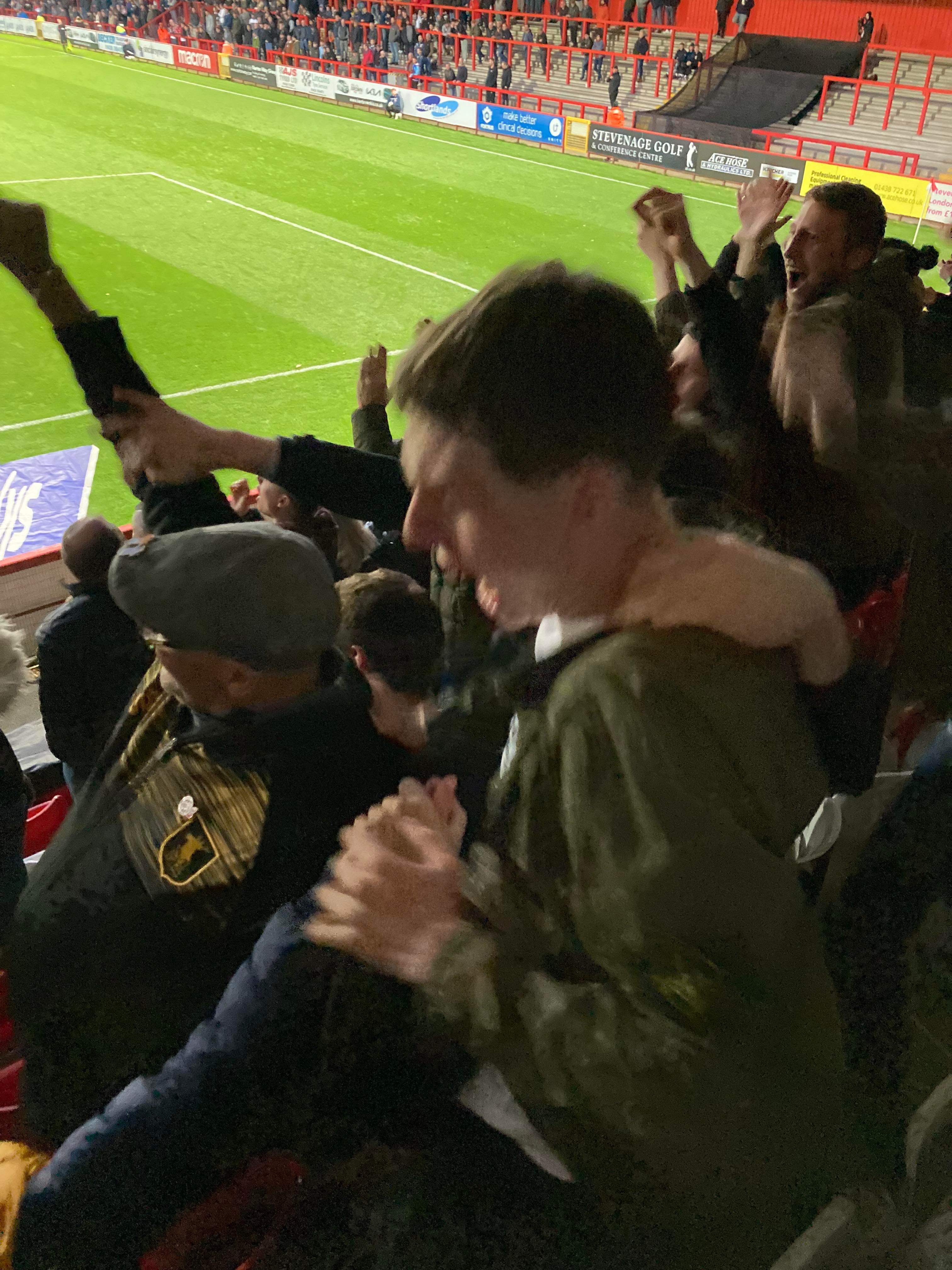“You’re not singing! You’re not singing! You’re not singing anymore!! You’re not singing anymore!” The Stevenage drum has stopped going for now. “We love you we love you we love you! And when we do we follow we follow we follow! Cause we support the Mansfield the Mansfield the Mansfield and that’s the way we like it we like it we like it!”