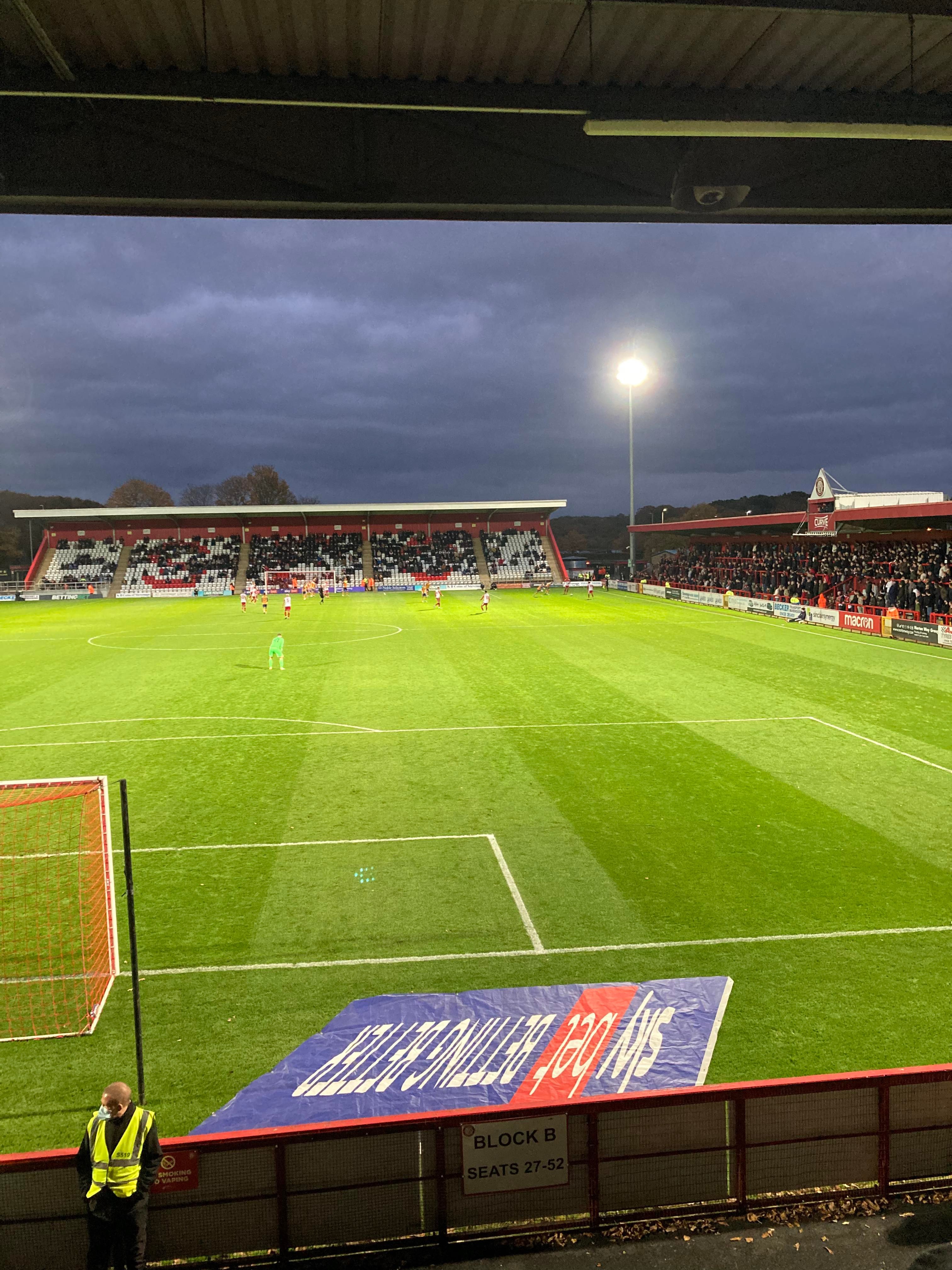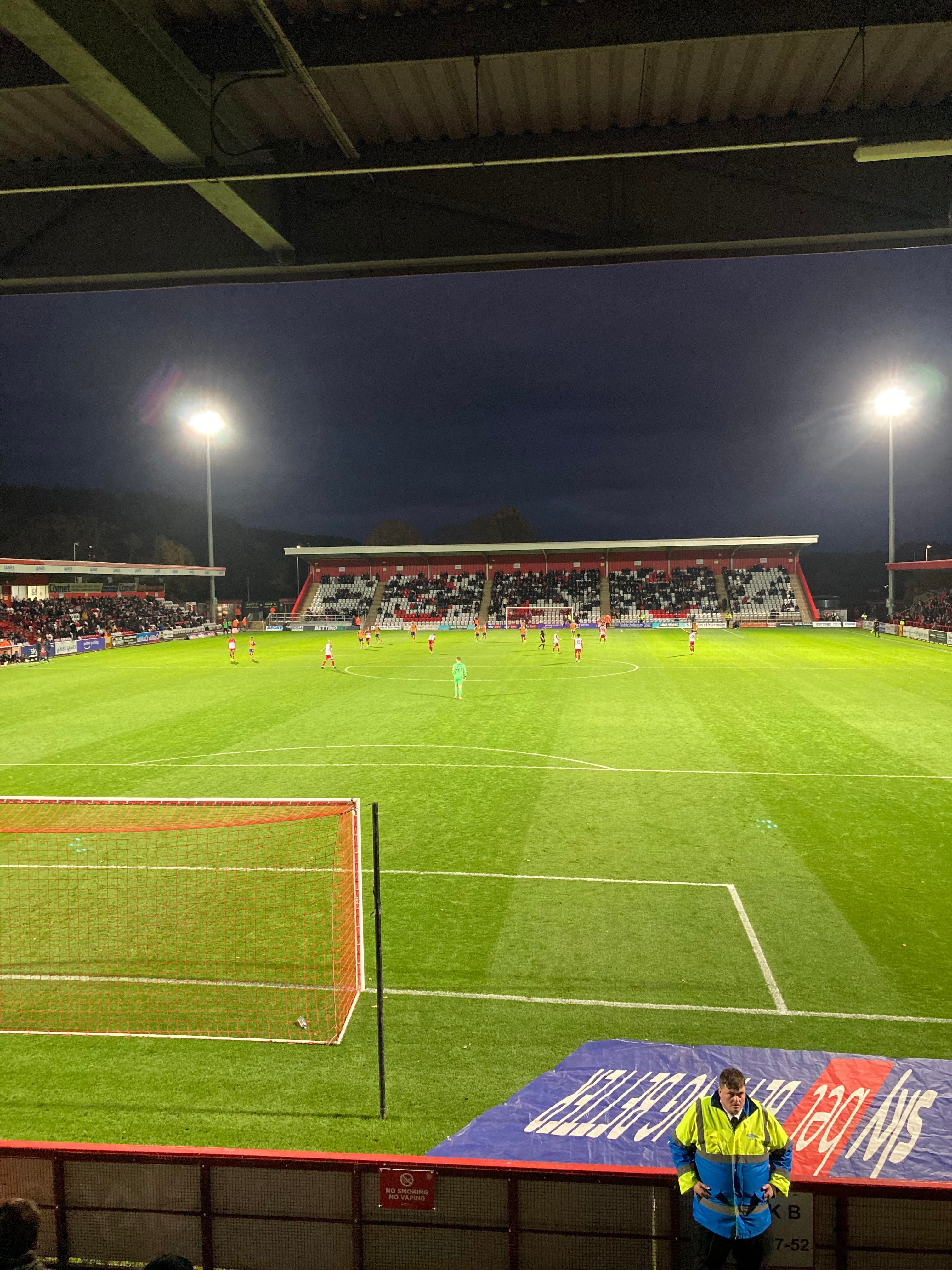 - The Ground: 5.5/10 – It’s a decent little ground! I’m a big fan of the standing terrace along the side and the new stand is good! It does fit the level that they play at as well!