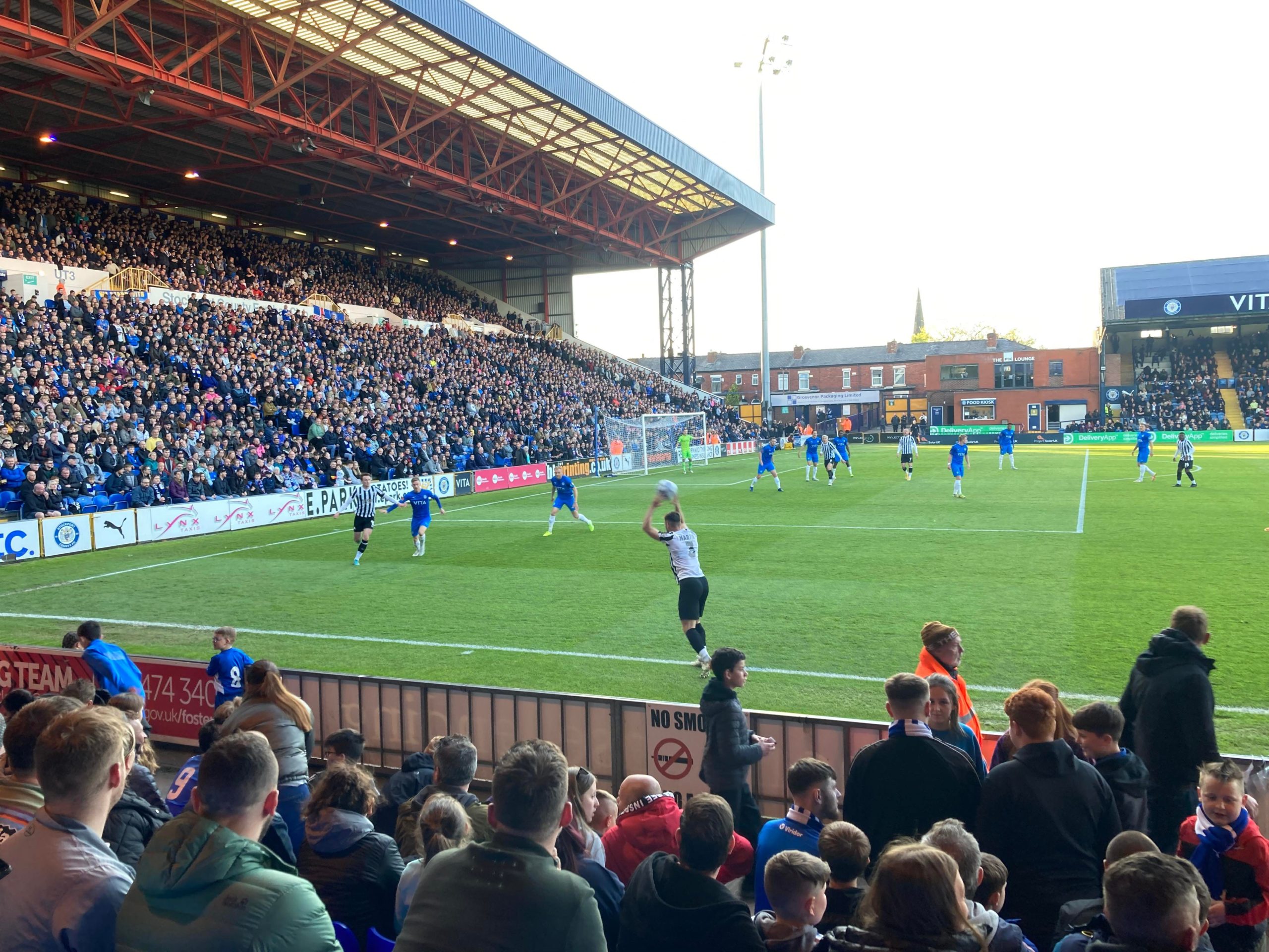 • The Ground: 9/10 – A lovely traditional ground!! 100% League One standard! Borderline Championship in my opinion!! Love the Cheadle End stand! A great ground all in all!