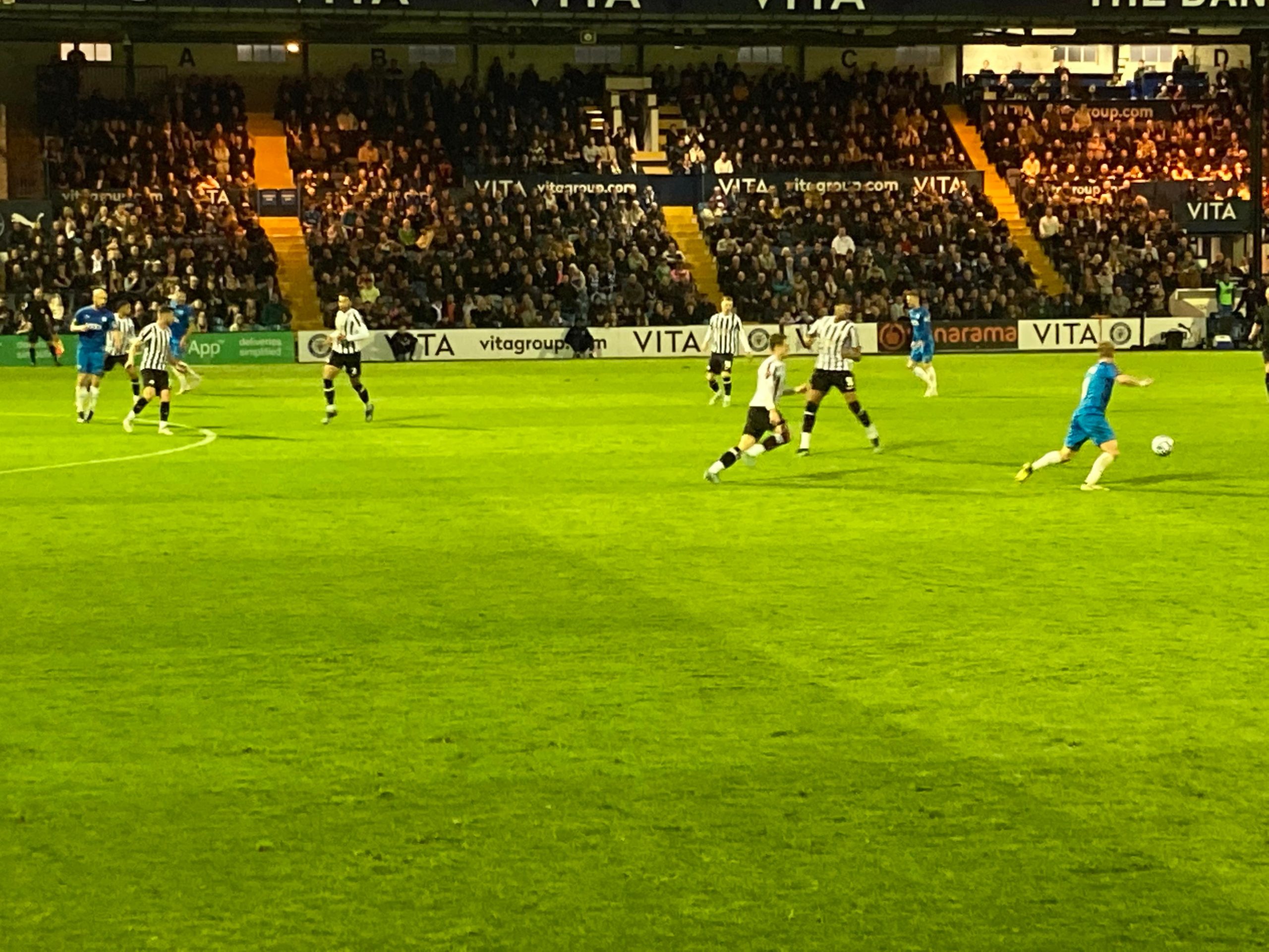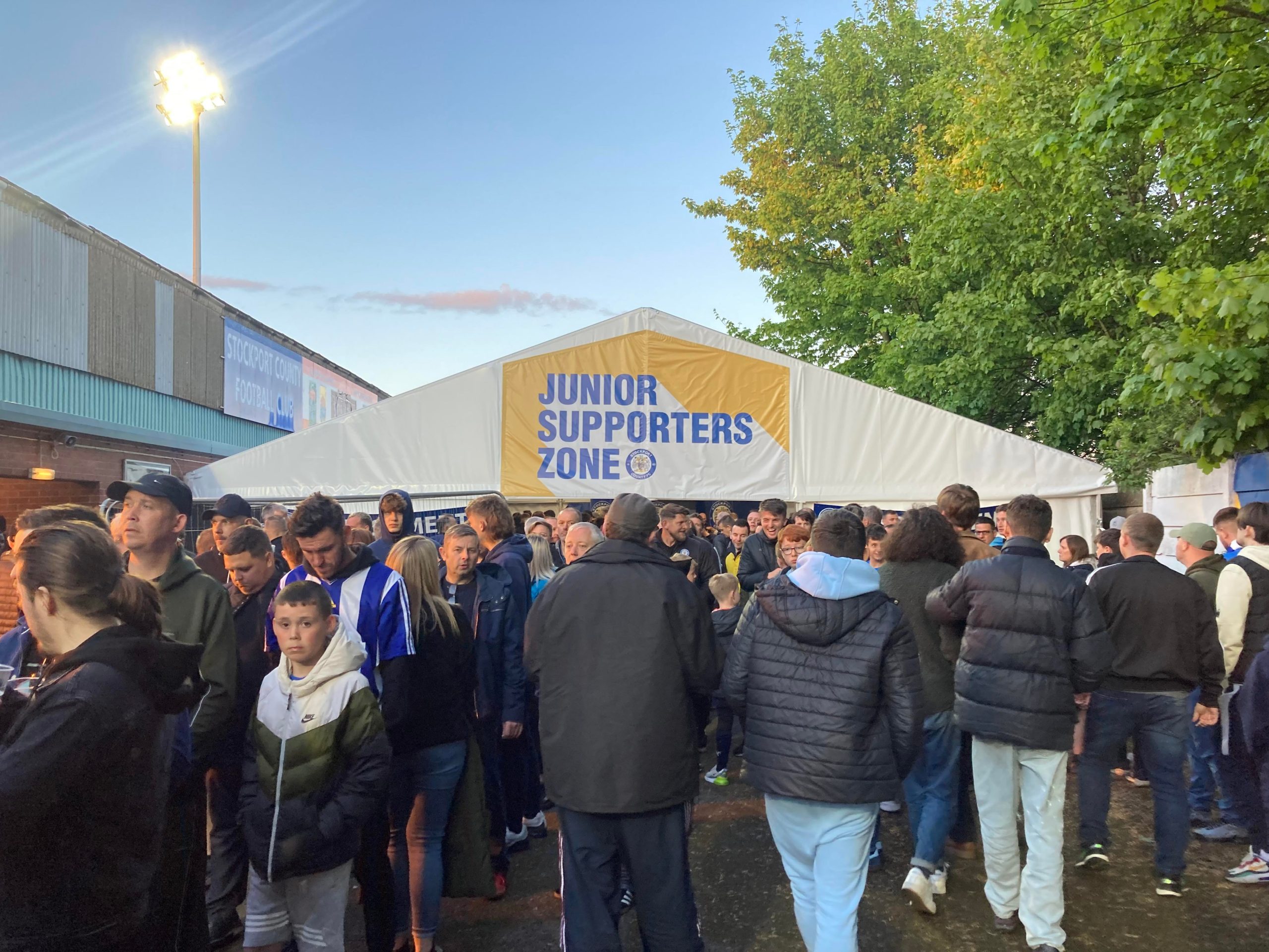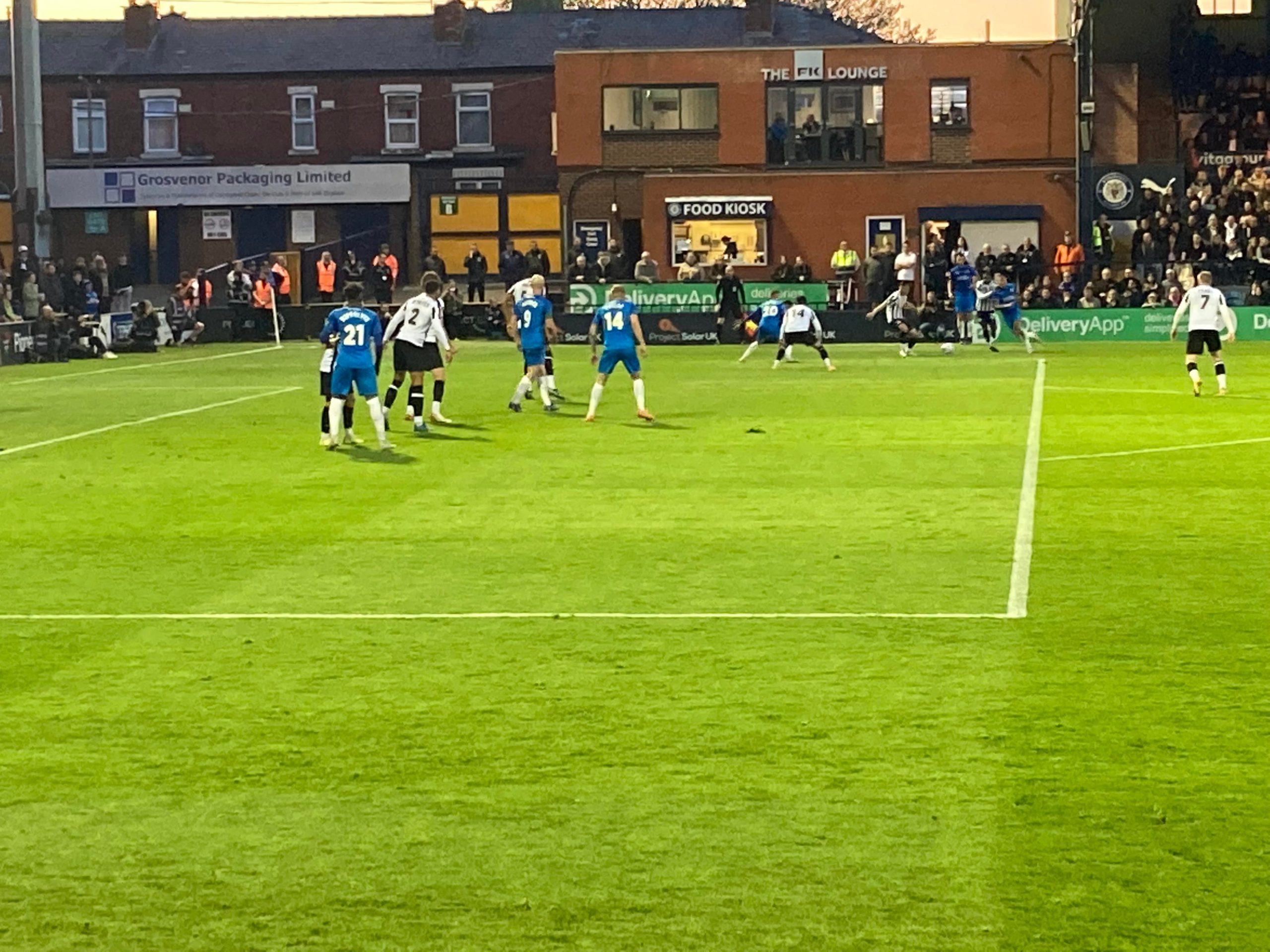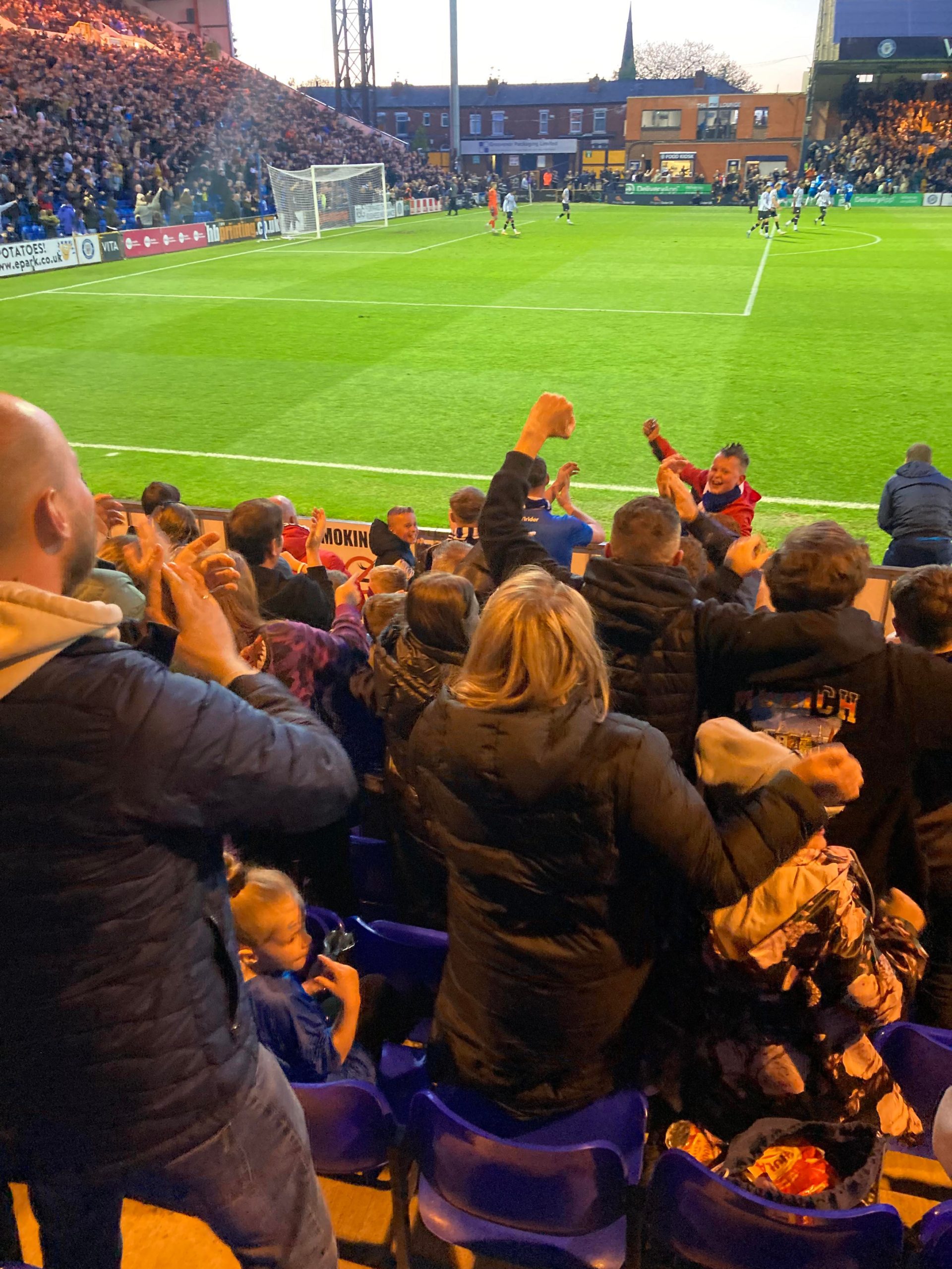 The atmosphere certainly is building alright!! The Super Stag is here and in we go! The Cheadle End sold out tonight unfortunately for us so we’re in the Together Stand. £18 for this National League tie! Astounding! The atmosphere is building fast!! “We’re the boys in Blue & White and we come from Edgeley!”