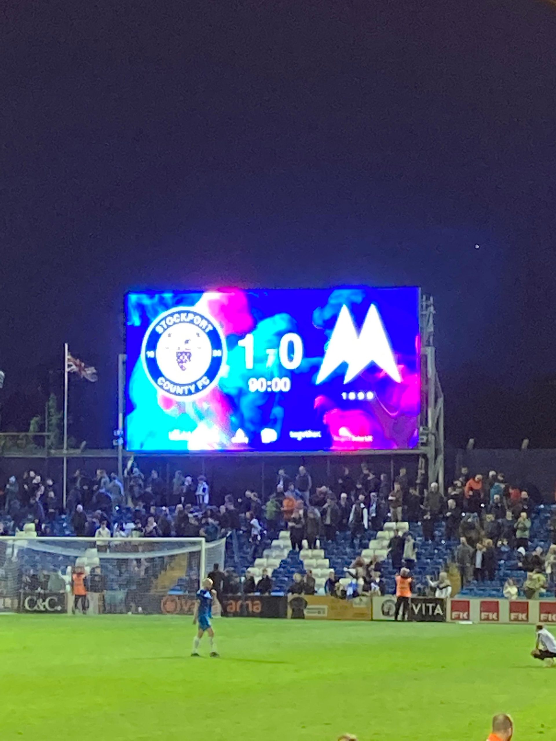 • Atmosphere: 10/10 – What a fanbase!!! Unbelievable support from the Stockport faithful! Relentless throughout! They’re like a European fanbase they’re that good!! Love the scarf chant! Stockport fall into the category of making the hair on your arms stand up! The Super Stag agrees on that one! Simply sensational support! No wonder the Merry Miller has a soft spot for them!