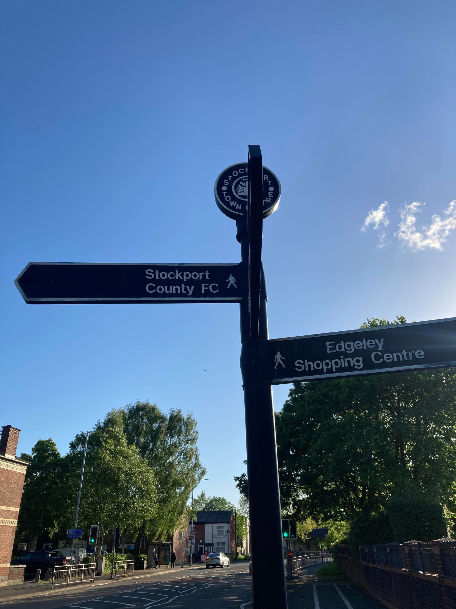 The drive now from Shirebrook through Chesterfield and through the High Peak District and into Stockport with an hour to spare before kick off!