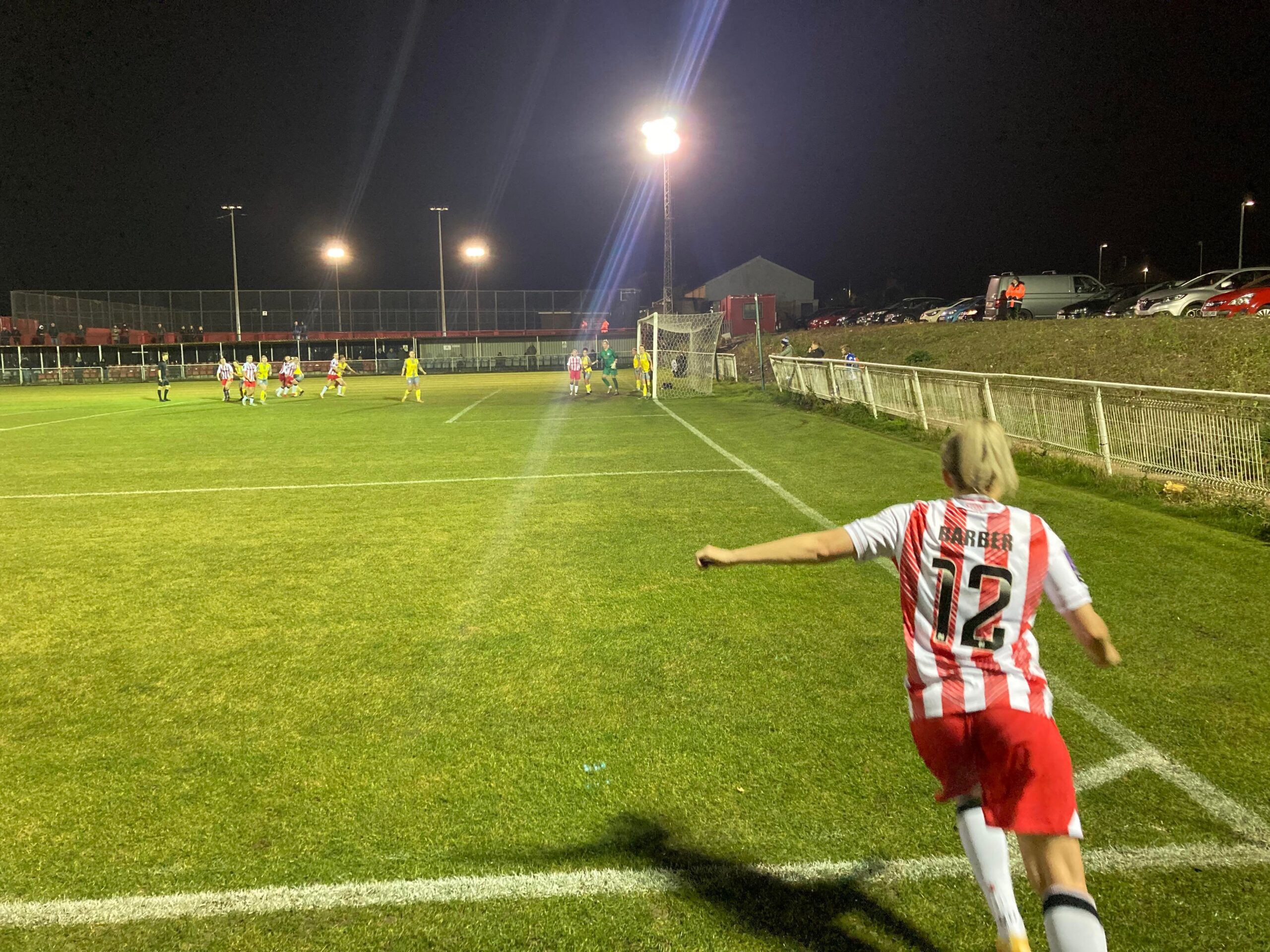 Right on half time and Stoke have a free kick on the left, it’s played into the middle… It’s there!! It’s headed in by Meg Bowyer for Stoke!!! It’s level! 1-1! The Referee blows for half time straight from kick off to really give the Boldmere manager something to think about for the half time team talk.