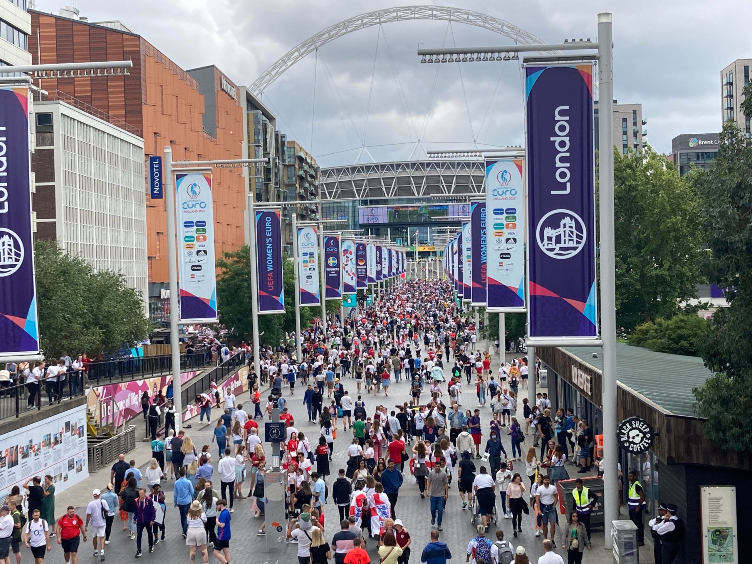 1 sausage sandwich later and we’re back on Wembley Way. We’re parked up next to the fanzone now to kill more time having a guess of what year was that England shirt from? I think I did ok at that game! The atmosphere on Wembley Way is very calm and relaxed which I think is brilliant compared to the nerves of a play-off final and certainly the Men’s euros final last year…