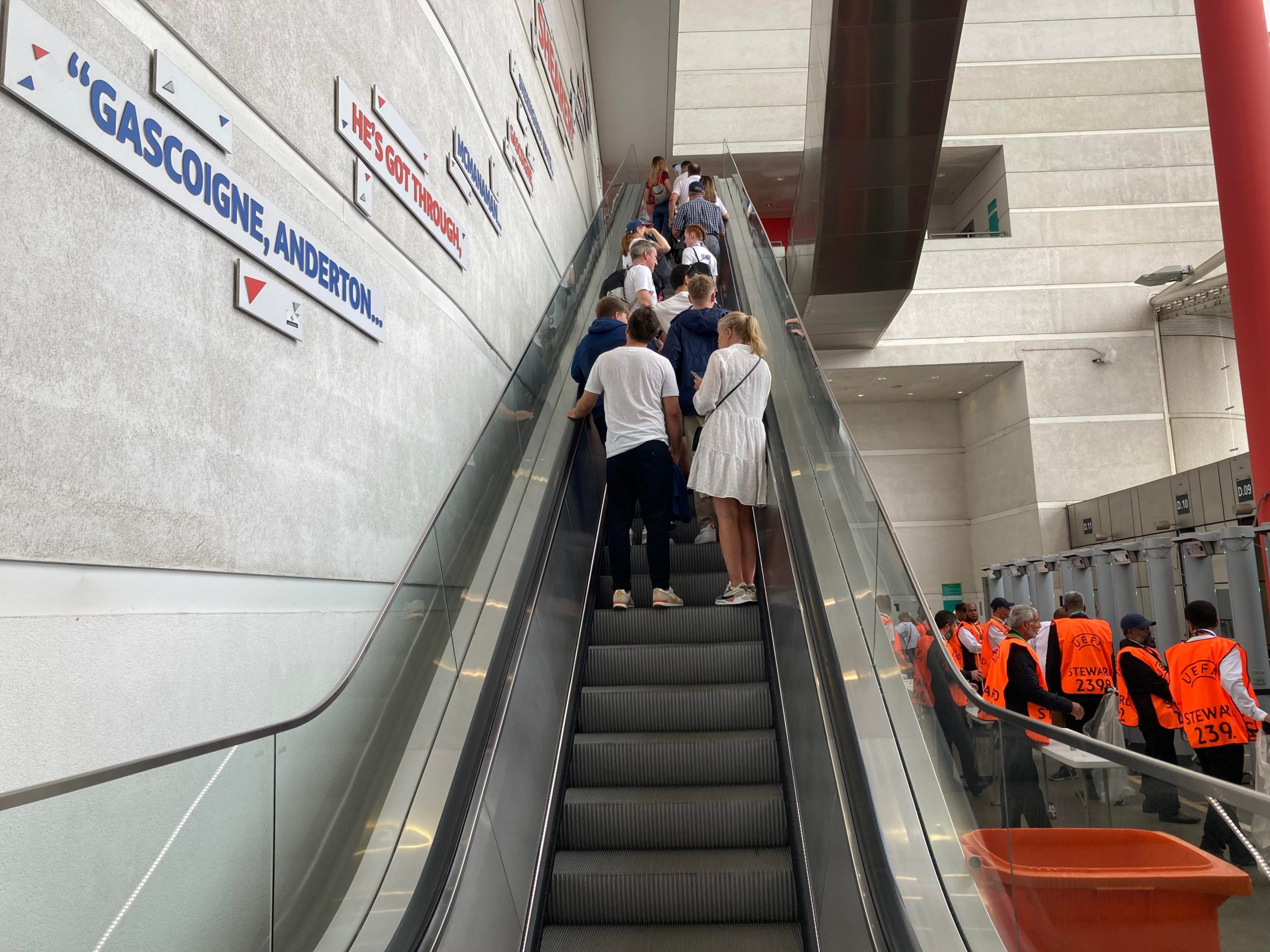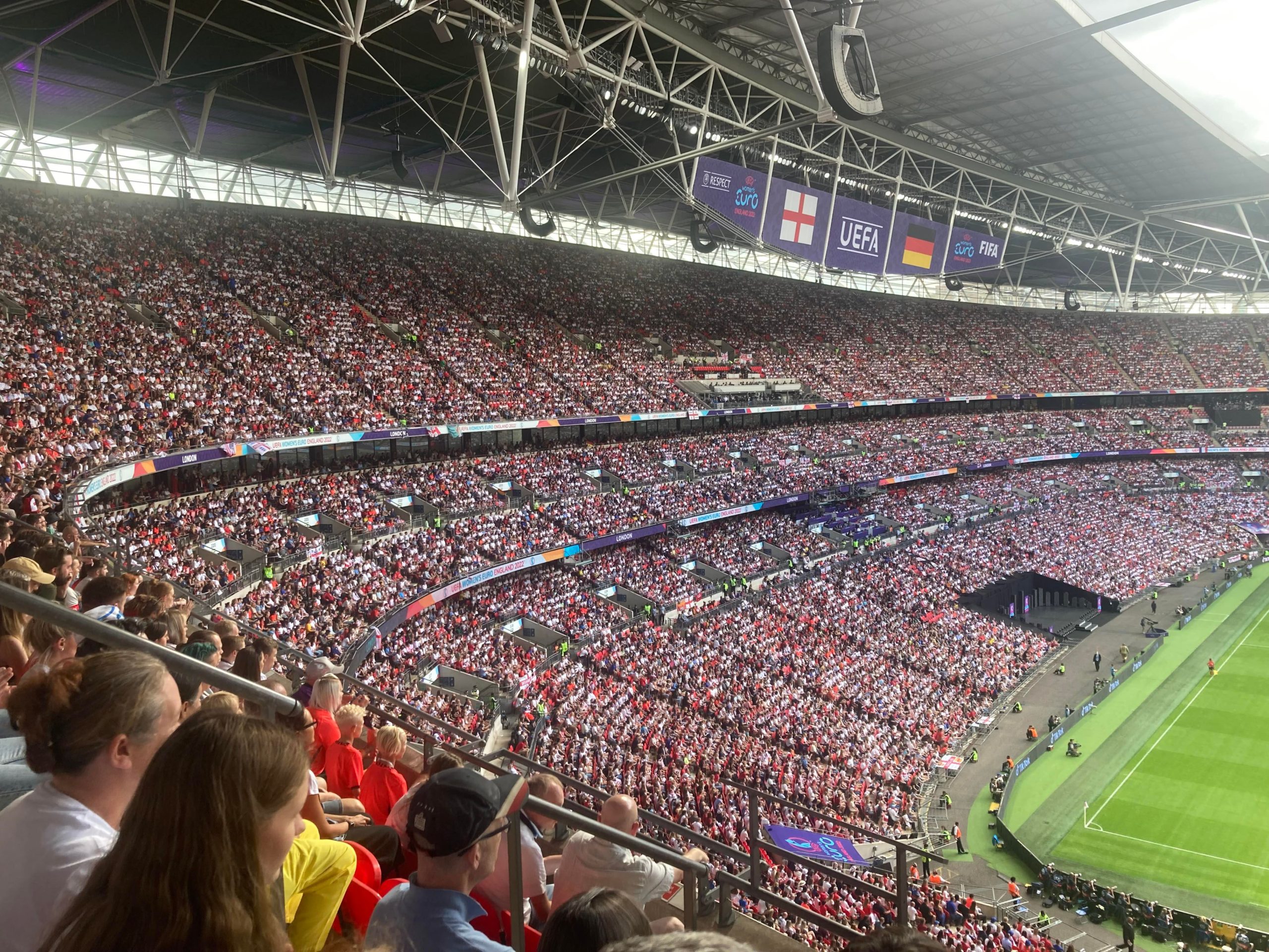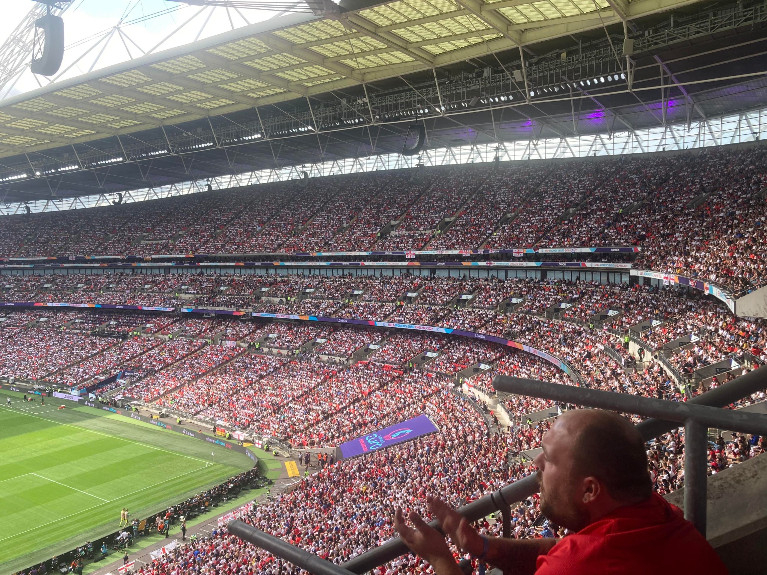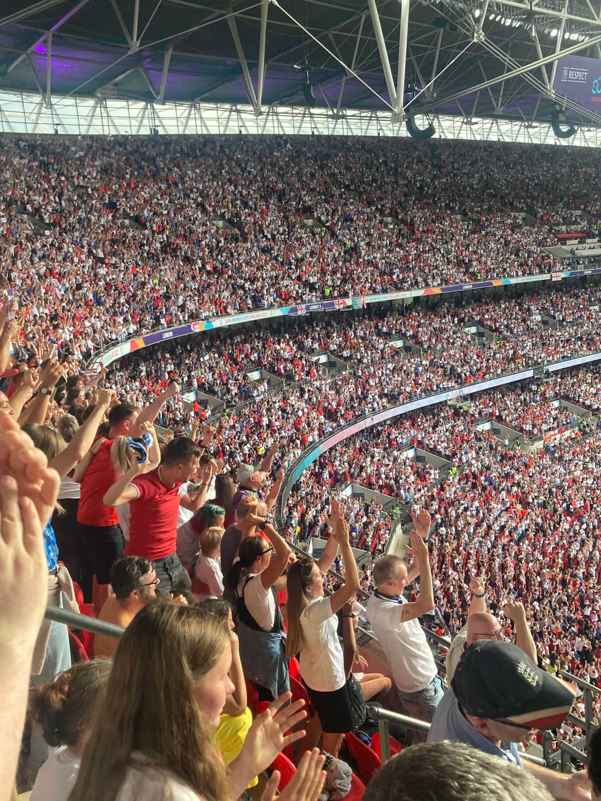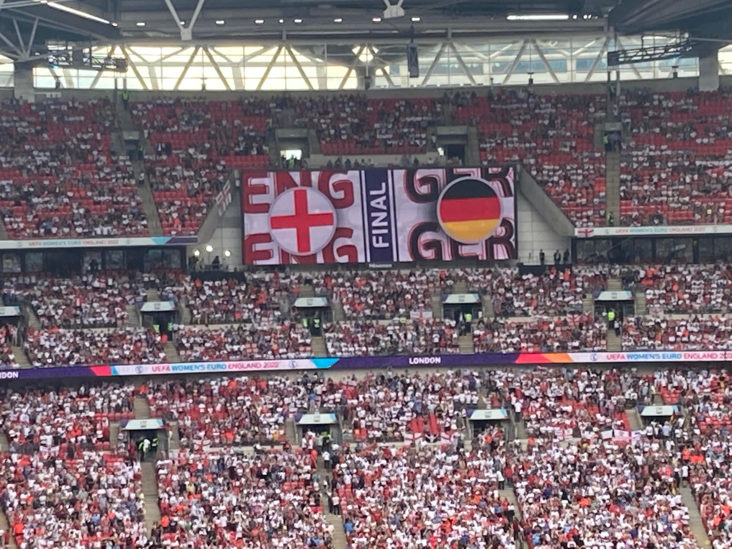 Up the Wembley steps we go as time rolls on. A quick look at the skyline of Central London and now we’re going in! £15 for this Women’s Euros Final ticket! WHAT!? I’m in! And now up the escalator… This is the first time I will be seeing Wembley full as my previous 3 visits have been bottom and middle tier at most… I wish Mansfield had more fans for days like this!