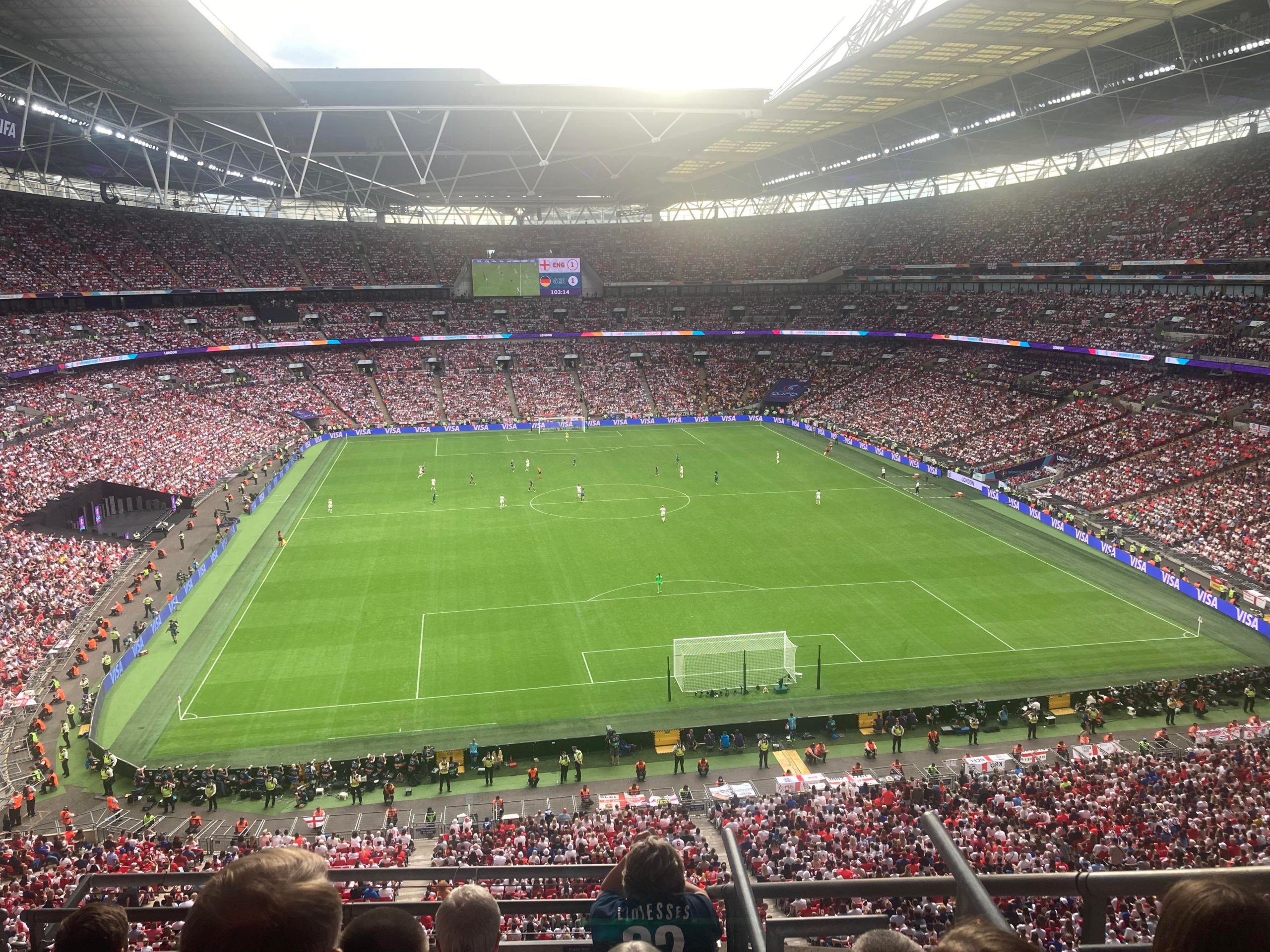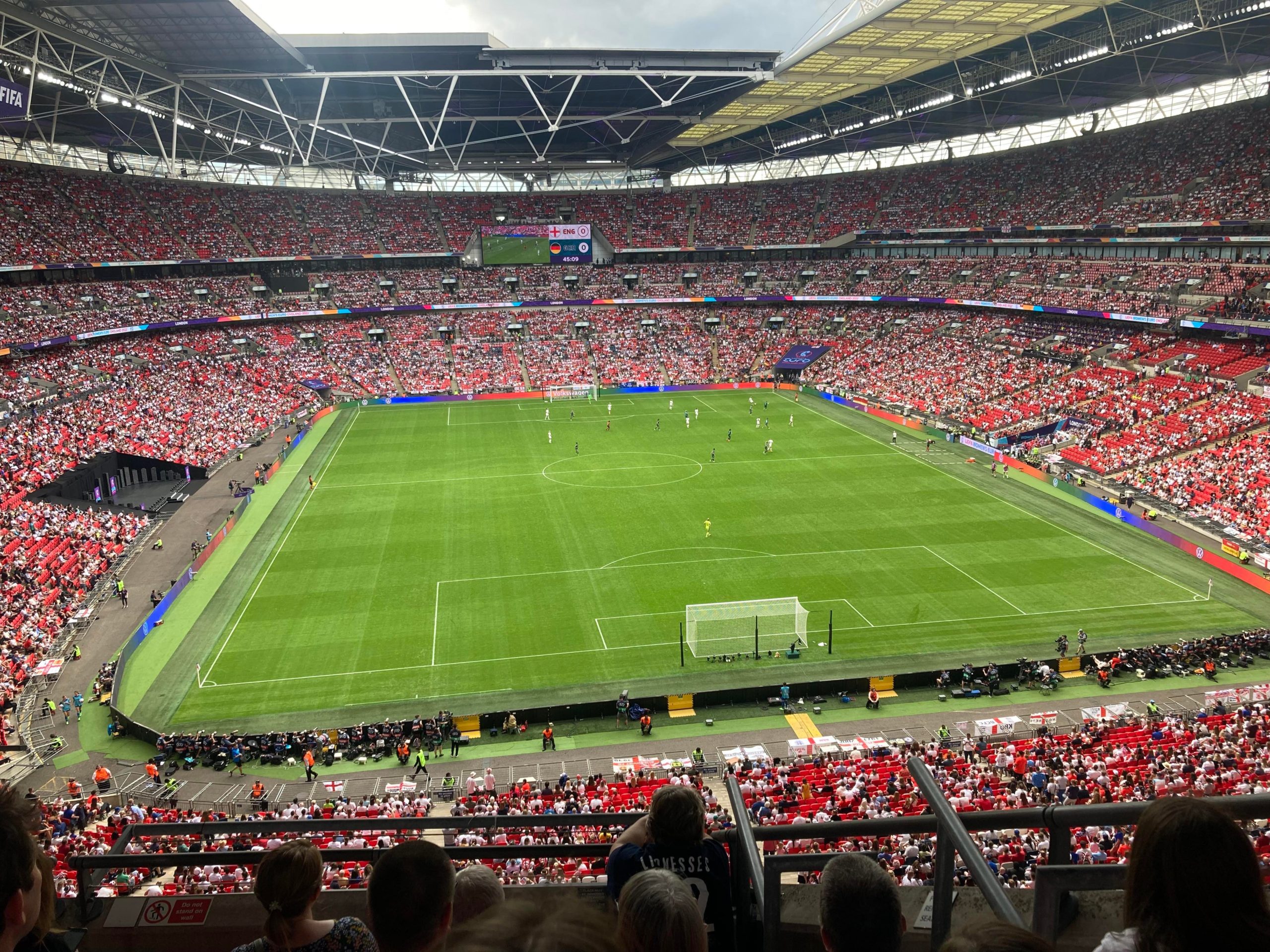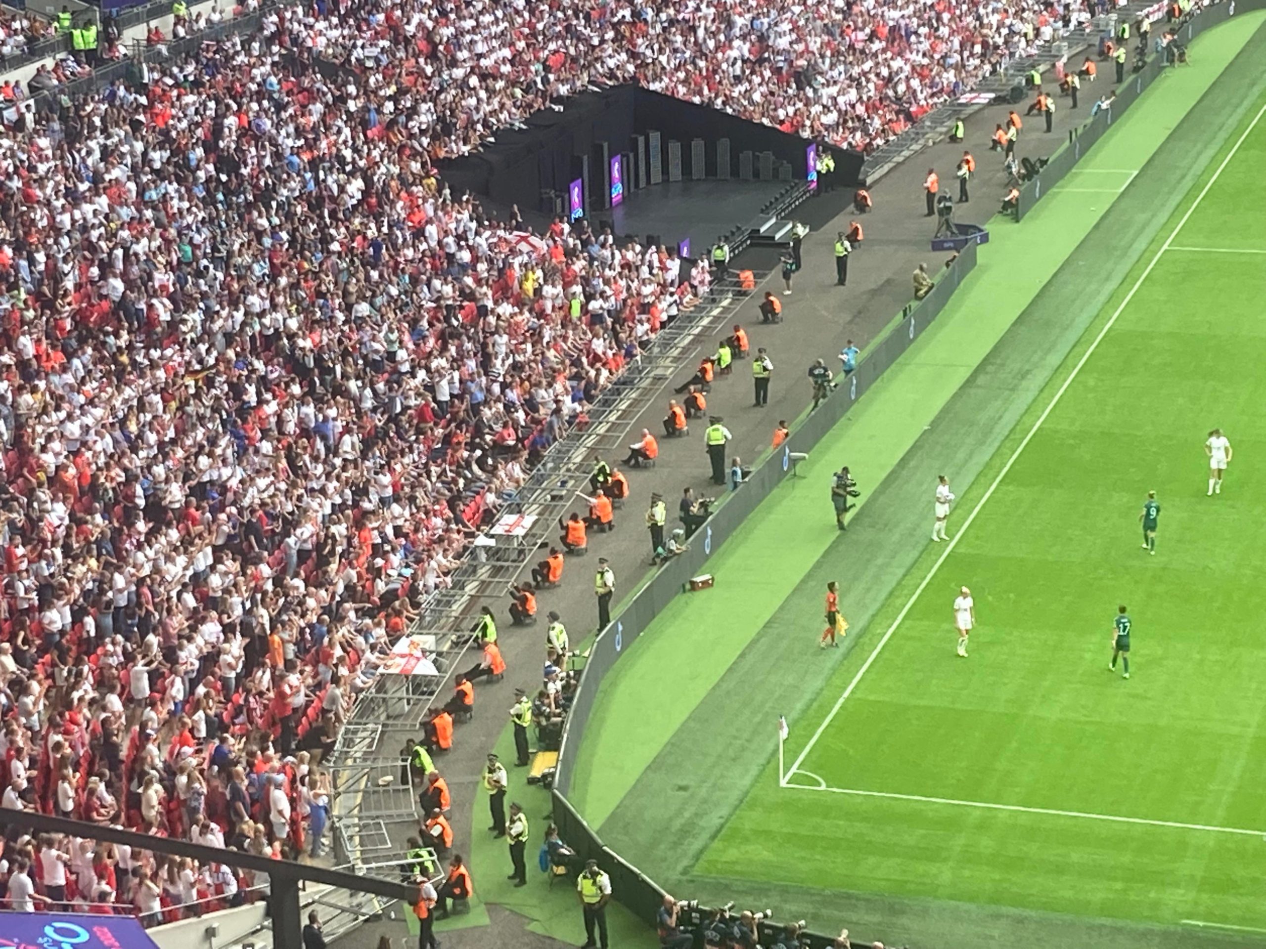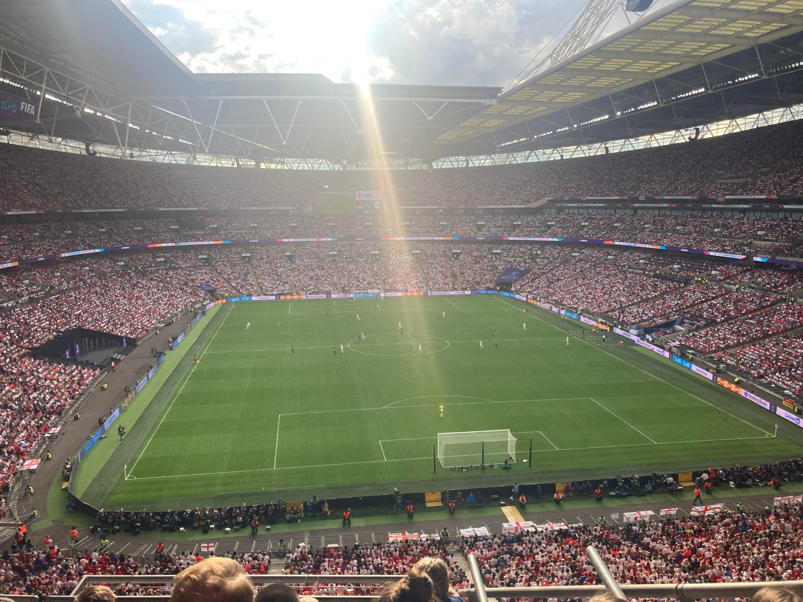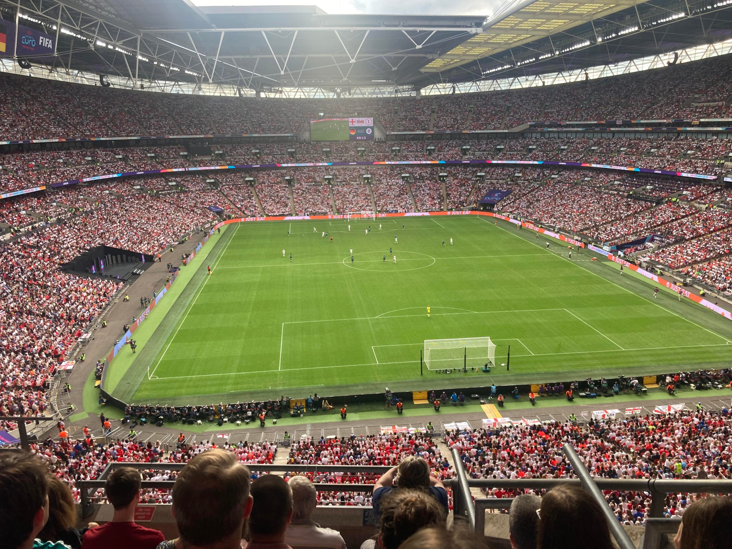 Up the Wembley steps we go as time rolls on. A quick look at the skyline of Central London and now we’re going in! £15 for this Women’s Euros Final ticket! WHAT!? I’m in! And now up the escalator… This is the first time I will be seeing Wembley full as my previous 3 visits have been bottom and middle tier at most… I wish Mansfield had more fans for days like this!