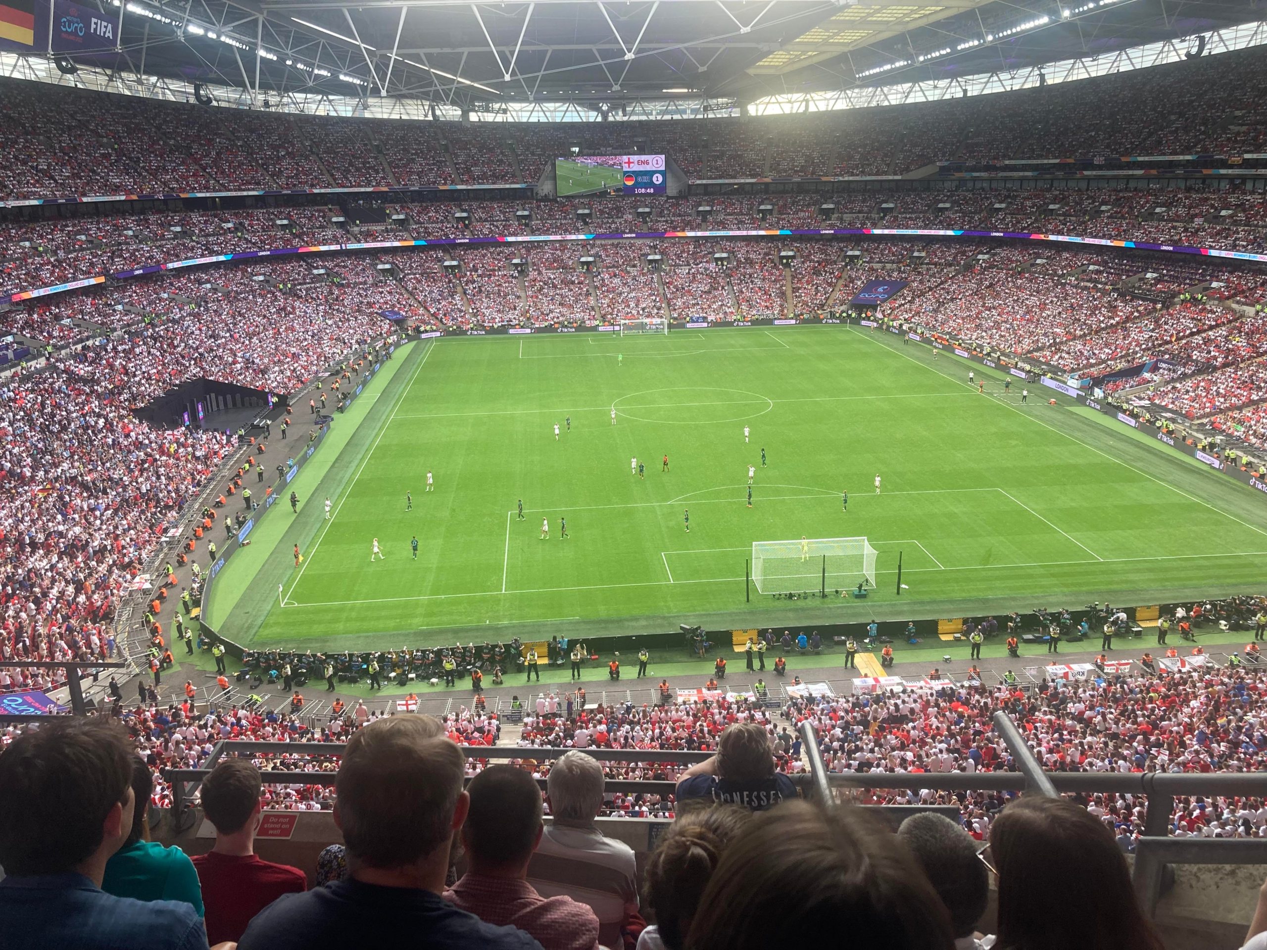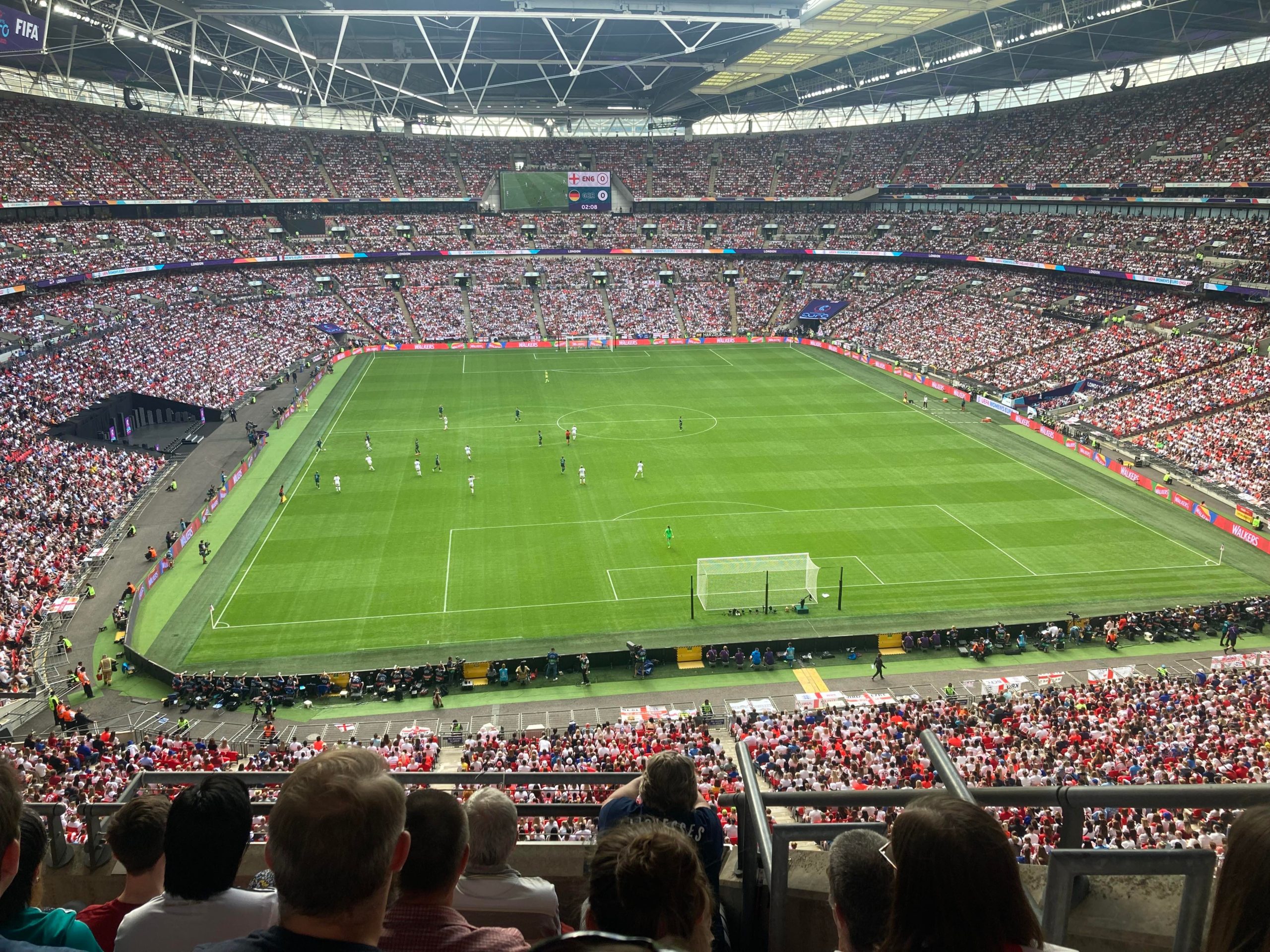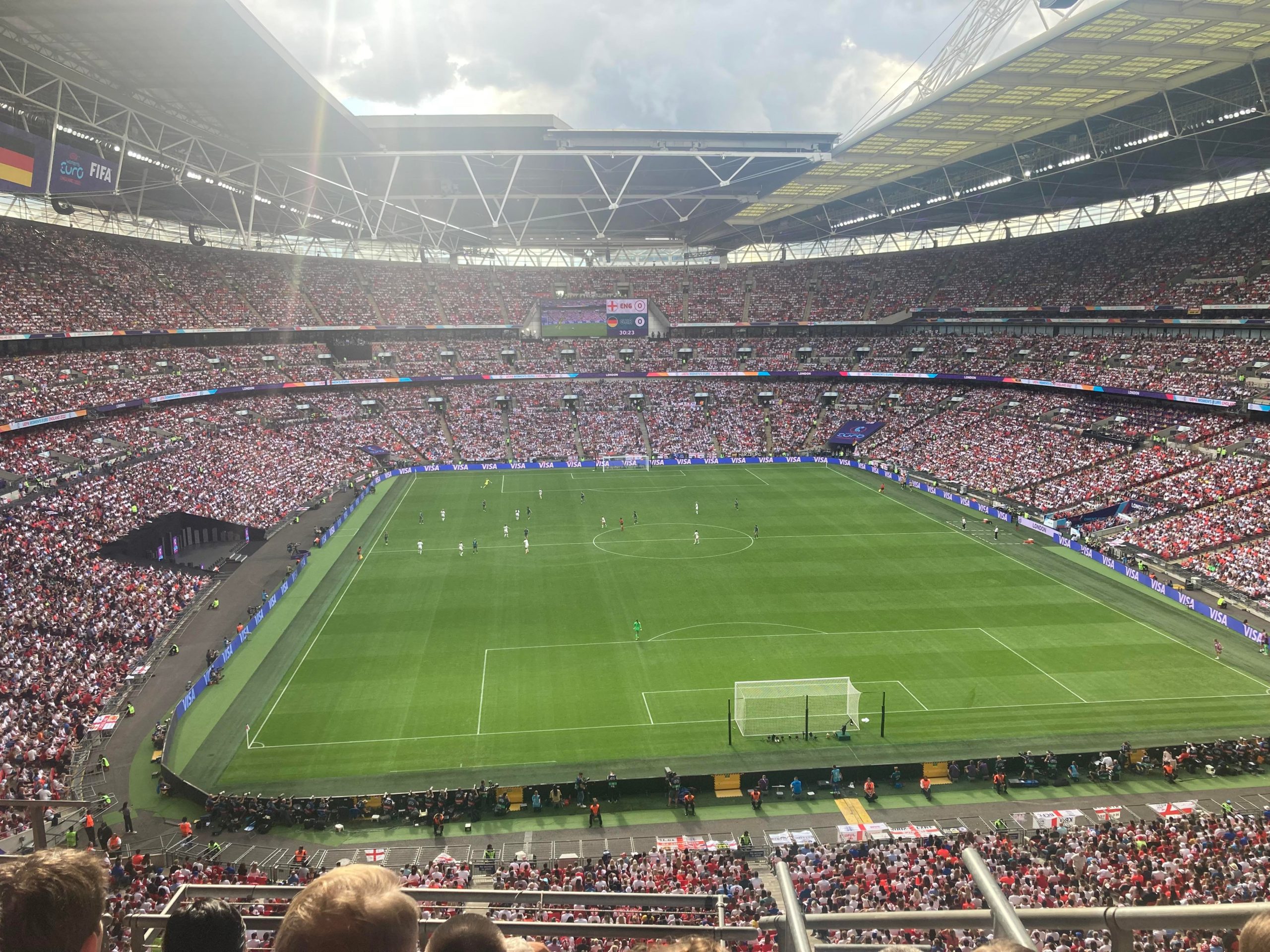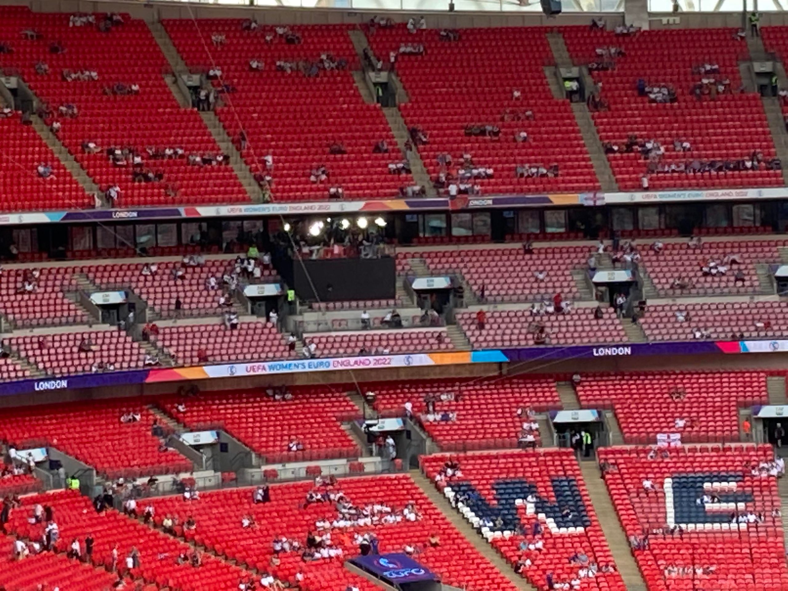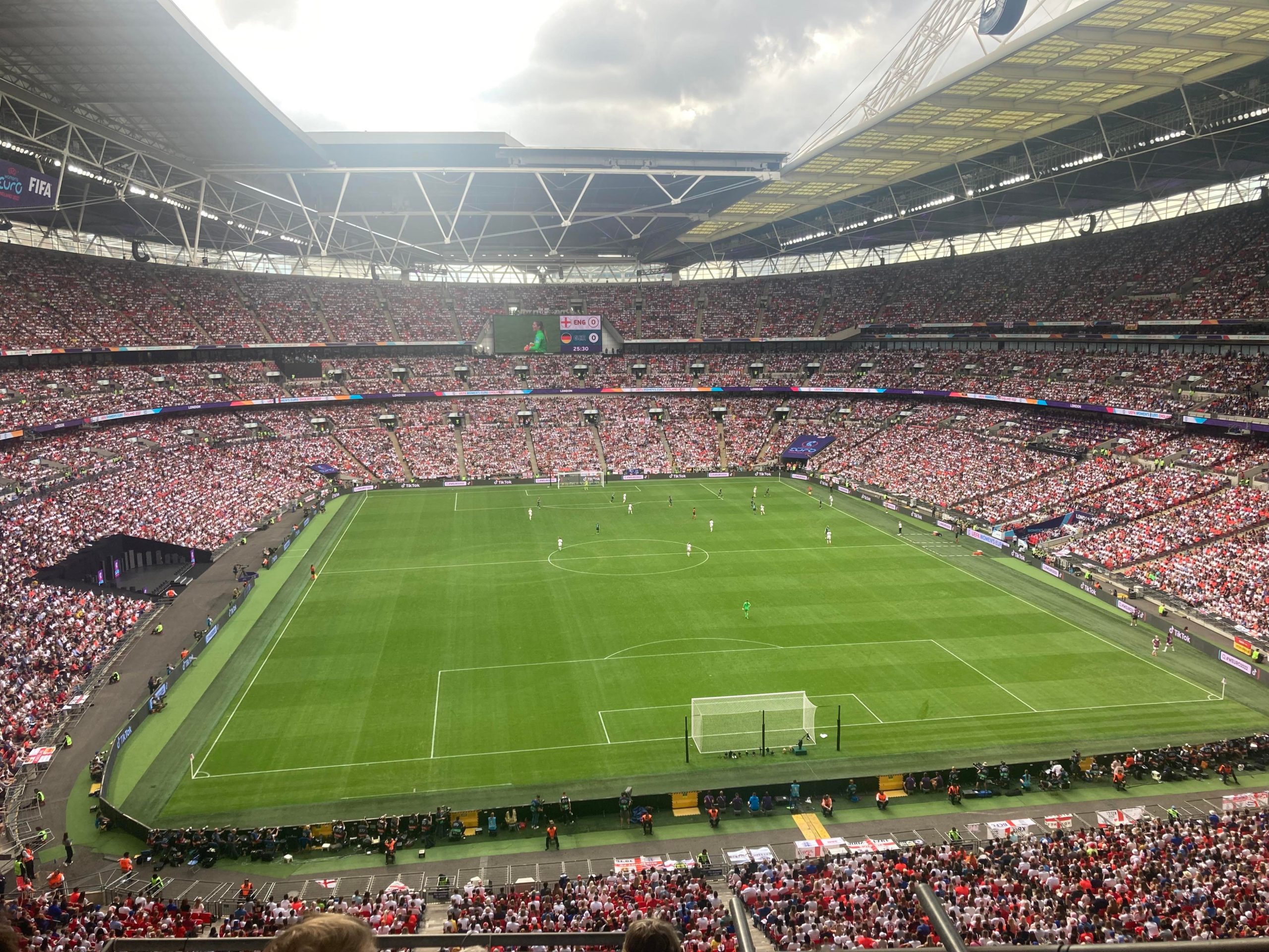 Up the Wembley steps we go as time rolls on. A quick look at the skyline of Central London and now we’re going in! £15 for this Women’s Euros Final ticket! WHAT!? I’m in! And now up the escalator… This is the first time I will be seeing Wembley full as my previous 3 visits have been bottom and middle tier at most… I wish Mansfield had more fans for days like this!