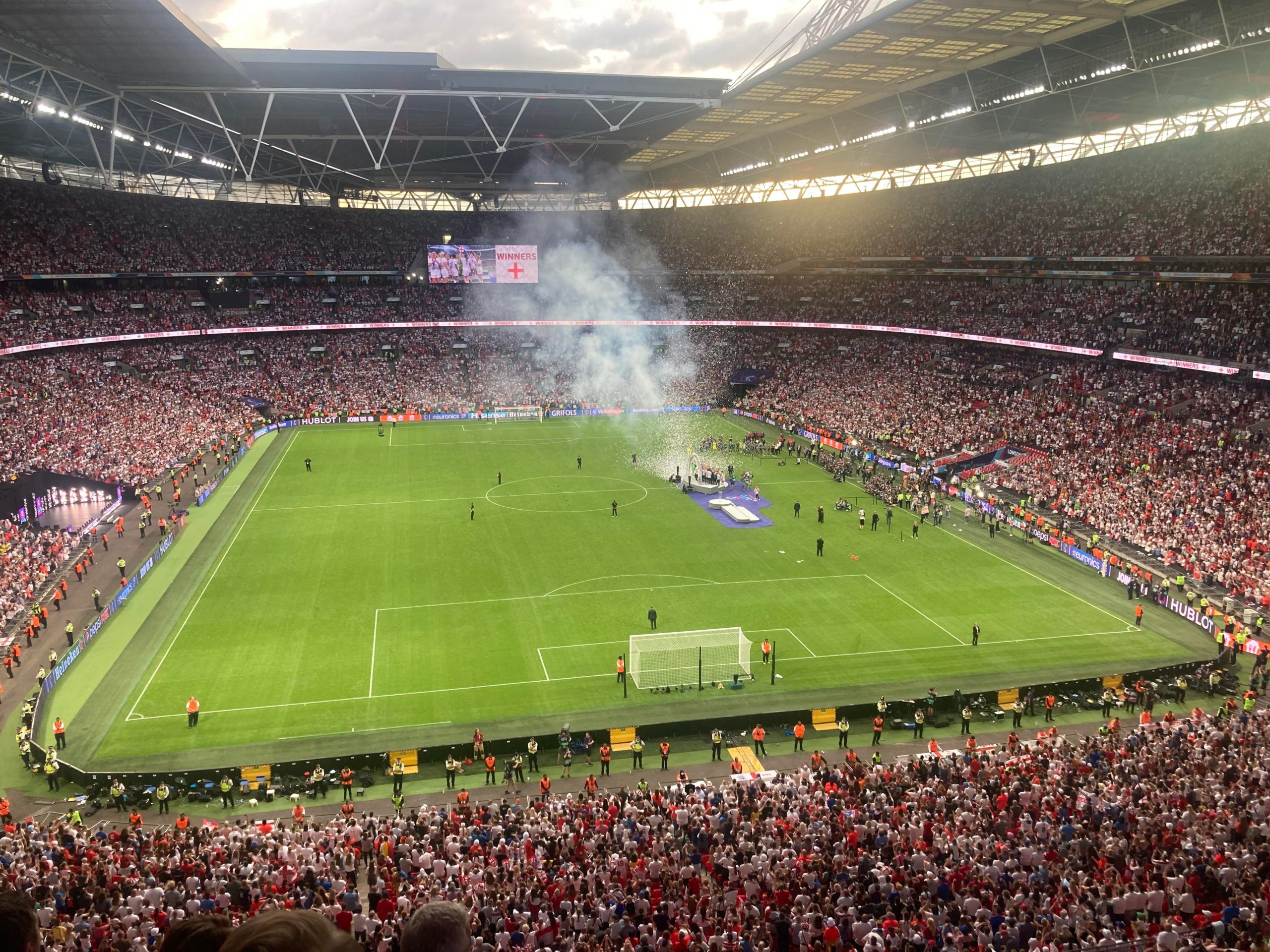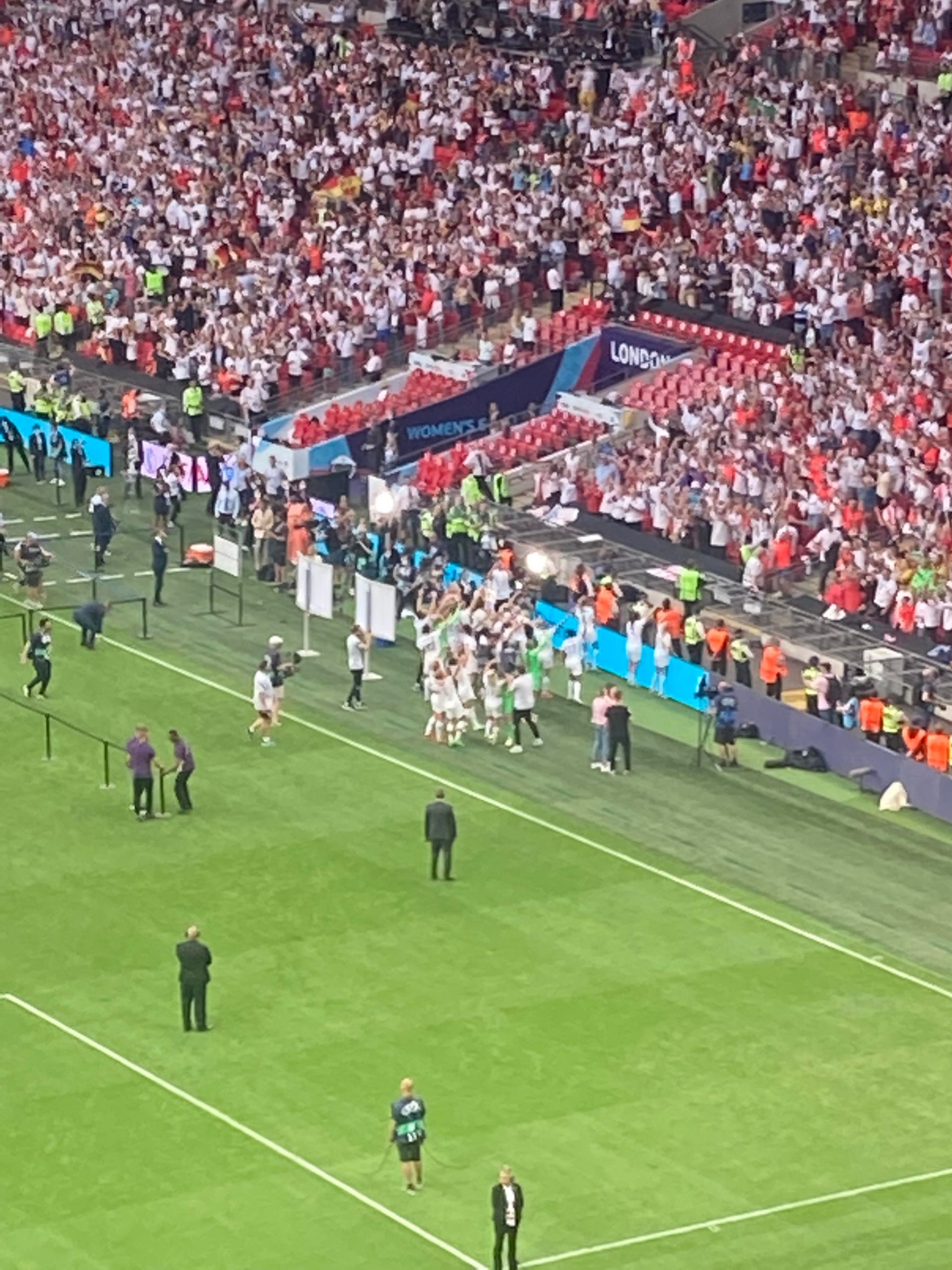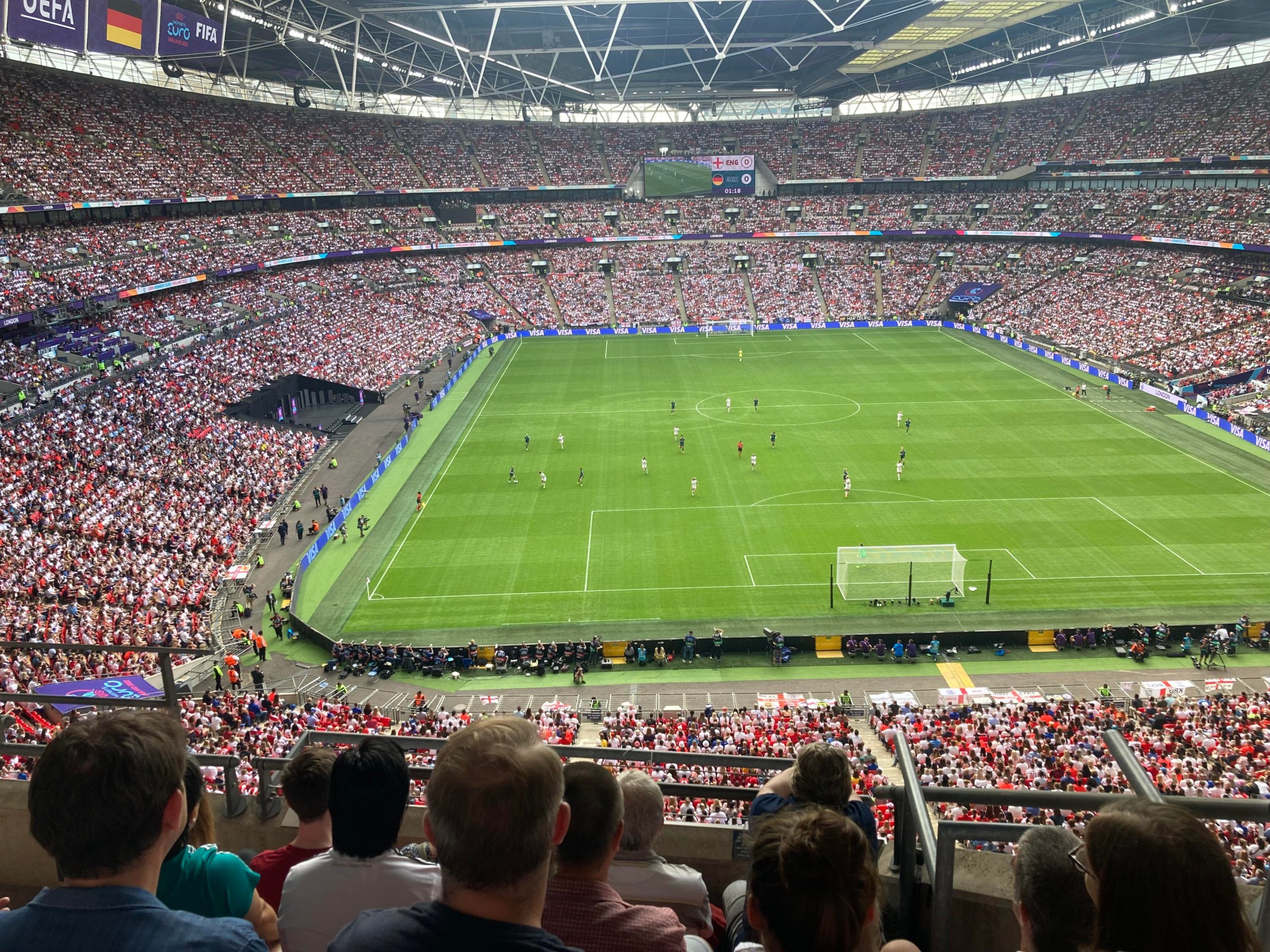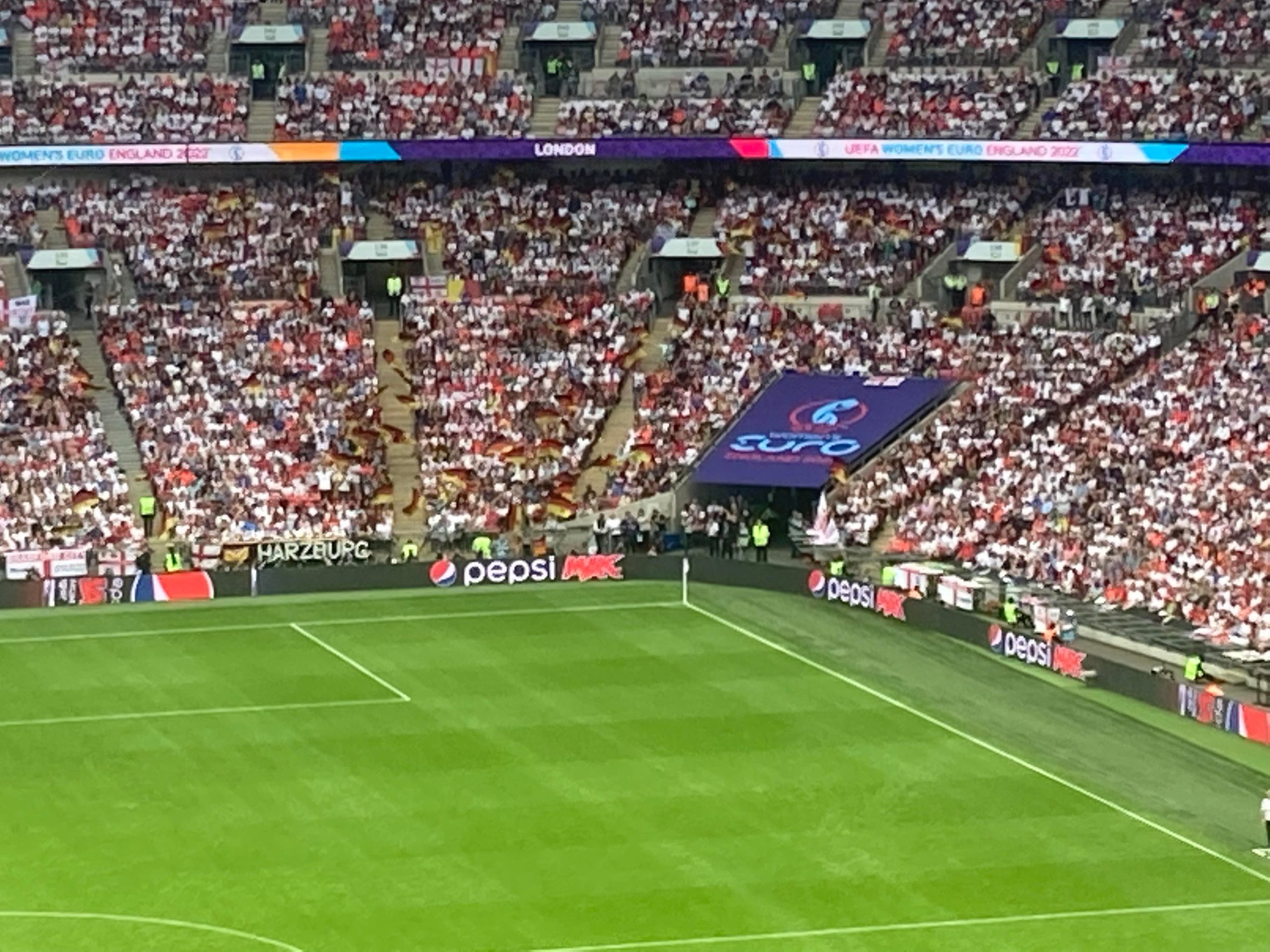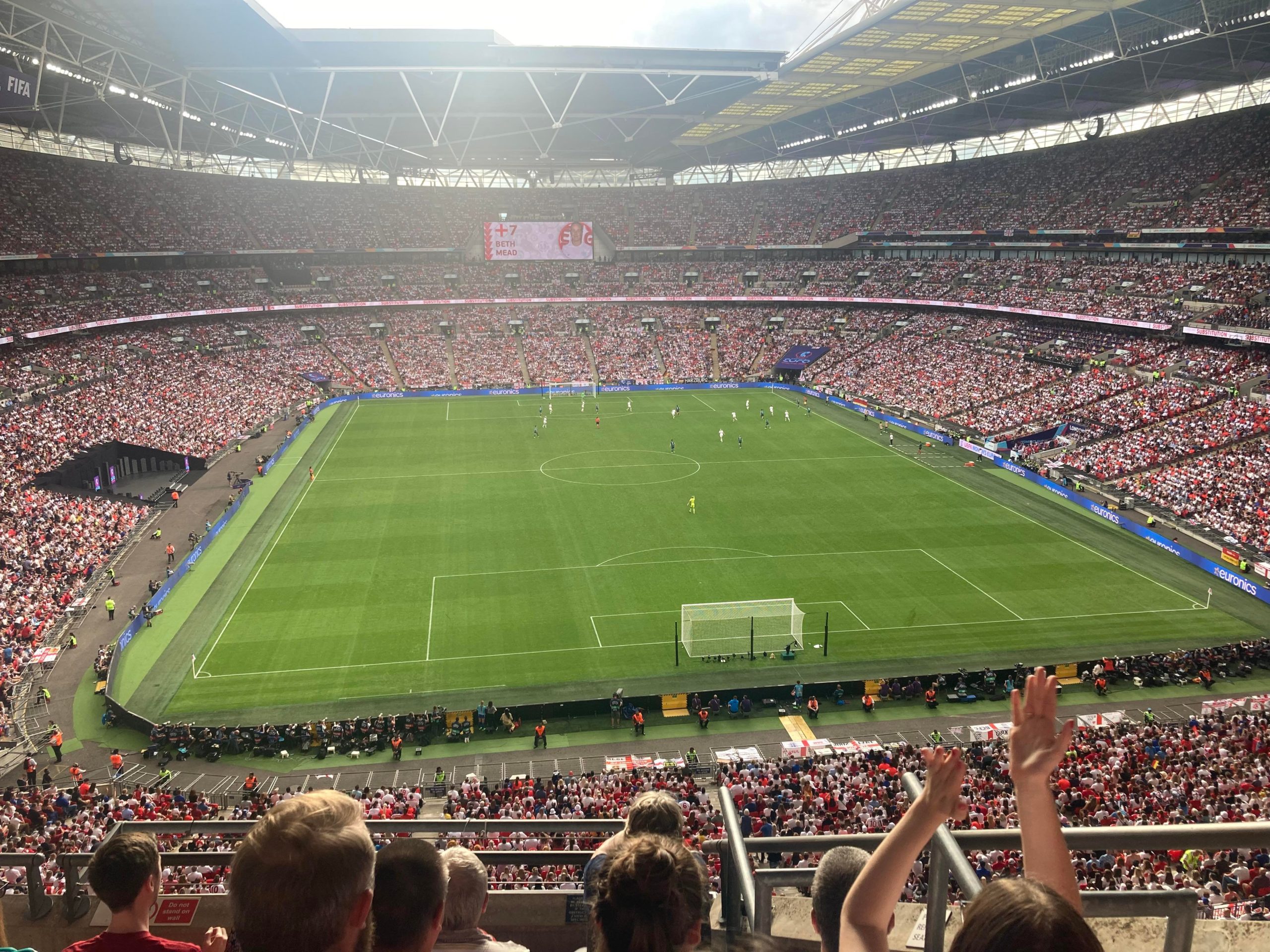 Up the Wembley steps we go as time rolls on. A quick look at the skyline of Central London and now we’re going in! £15 for this Women’s Euros Final ticket! WHAT!? I’m in! And now up the escalator… This is the first time I will be seeing Wembley full as my previous 3 visits have been bottom and middle tier at most… I wish Mansfield had more fans for days like this!