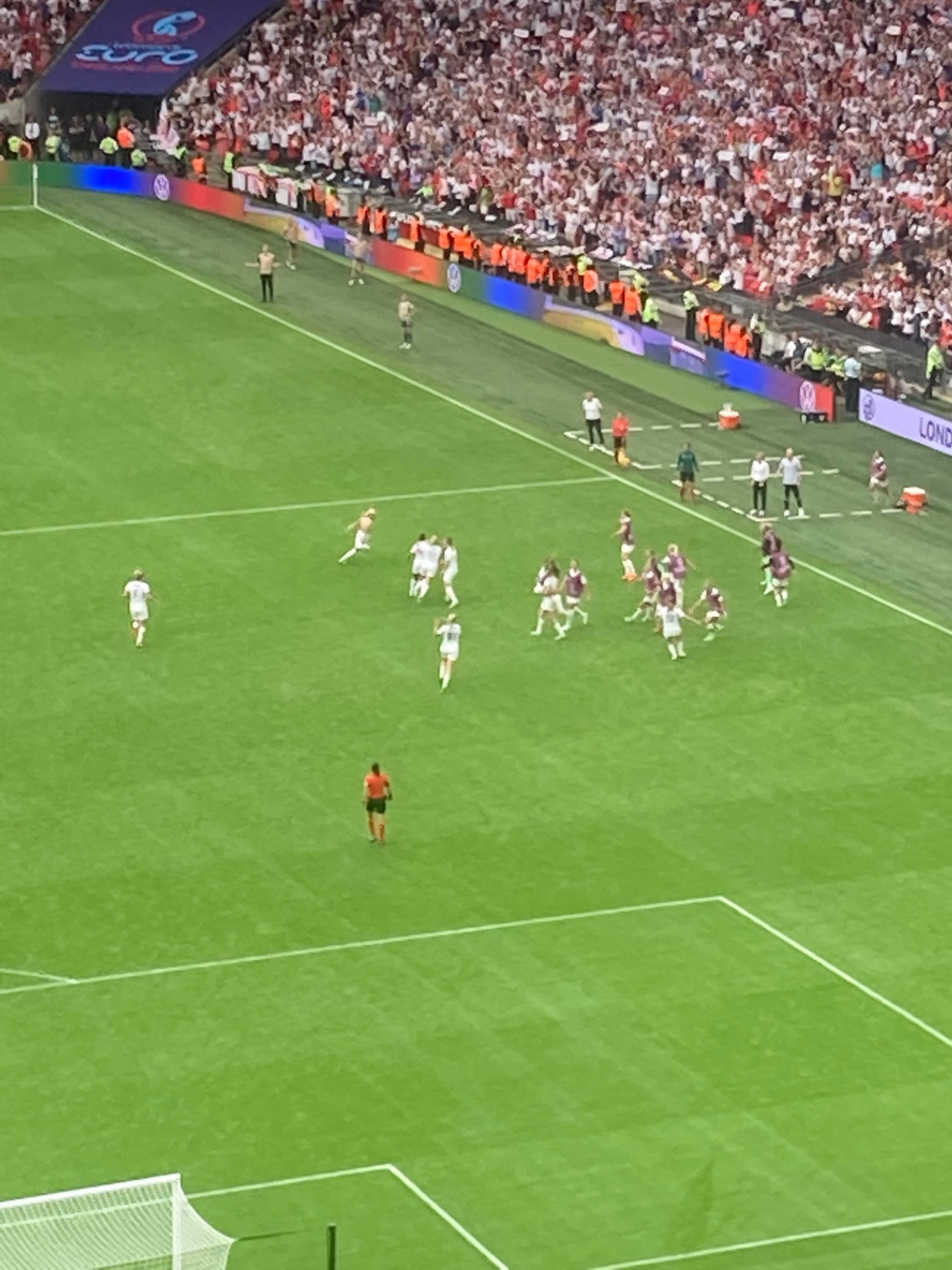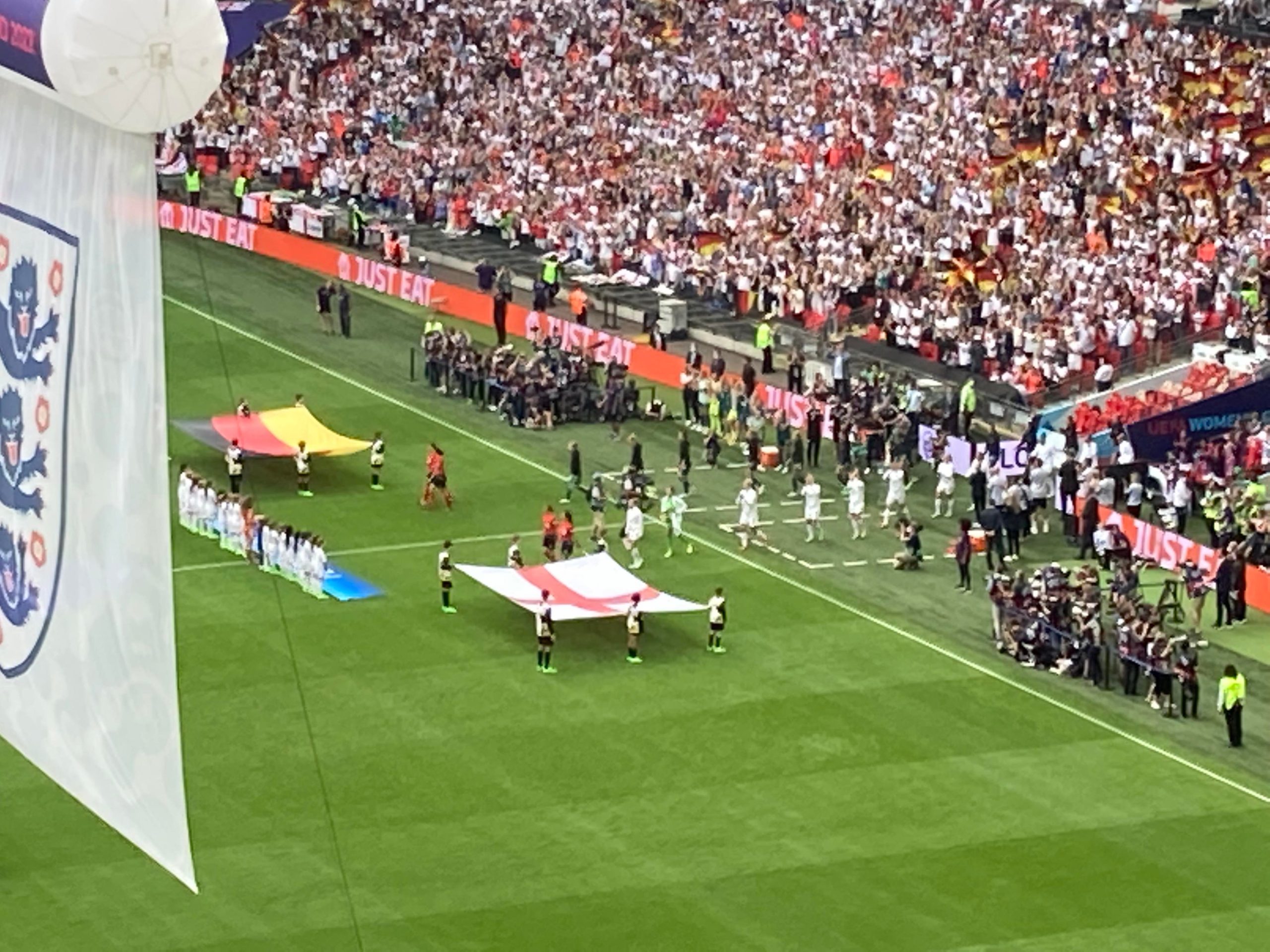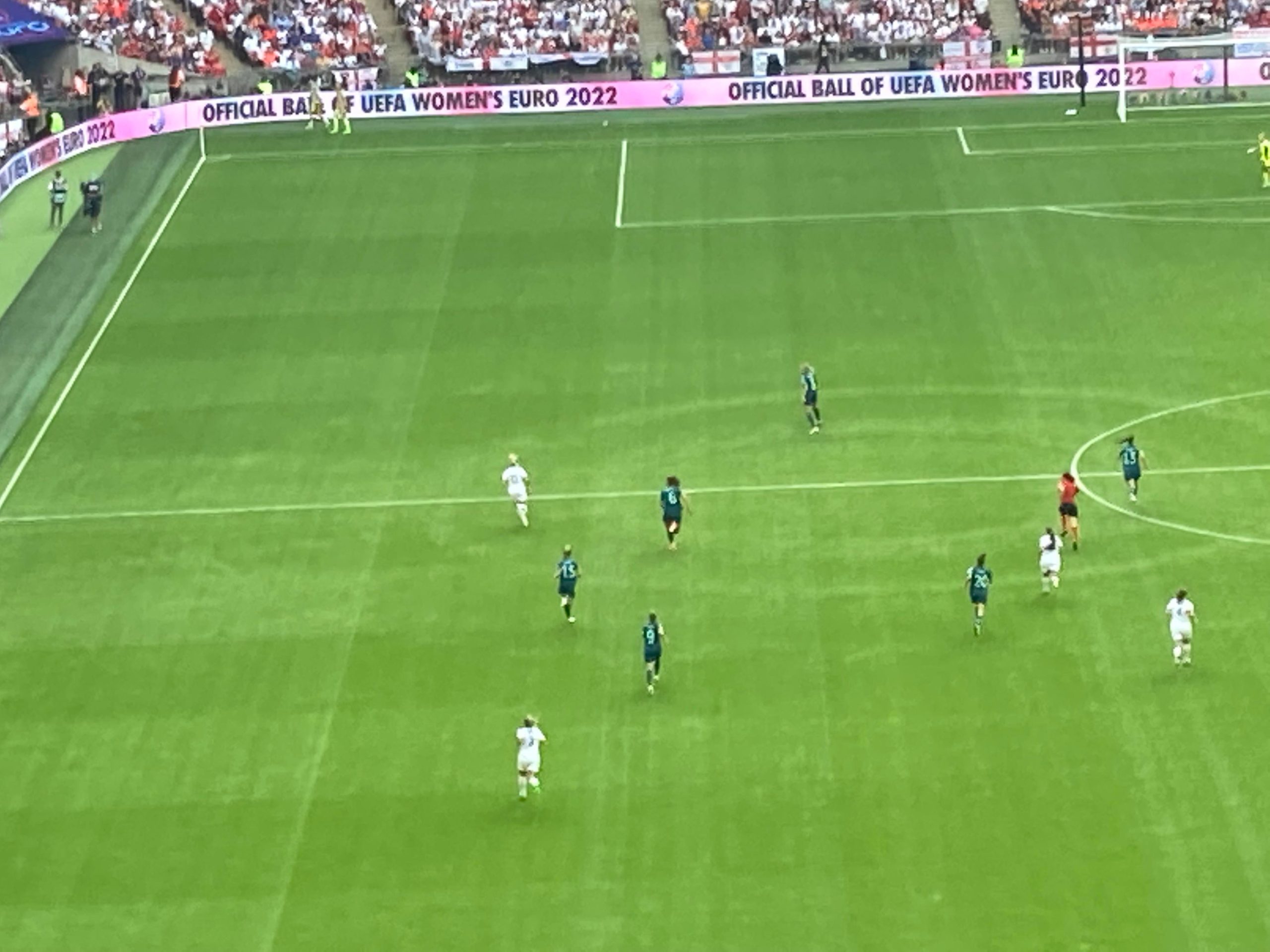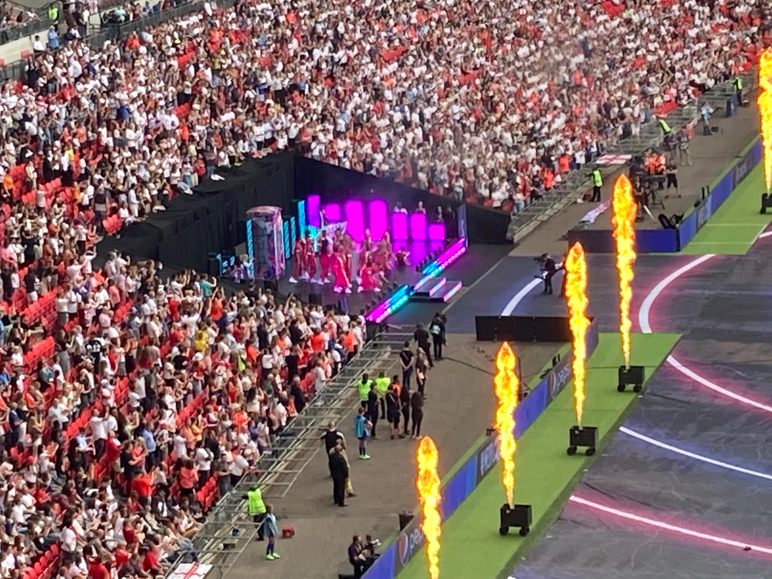 The warm-ups are done and now we are treated to a special show from Becky Hill before kick off! And now it’s time for the main event!! Out come the teams… I’ve said it a few times “to a wall of noise!” But today it’s a wall of noise on steroids! Now for the national anthems… “GOD SAVE OUR QUEEN!” COME ON ENGLAND!!