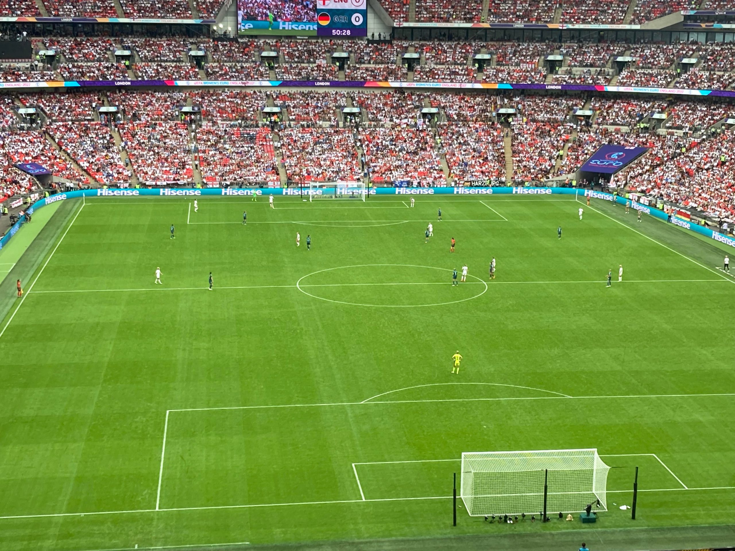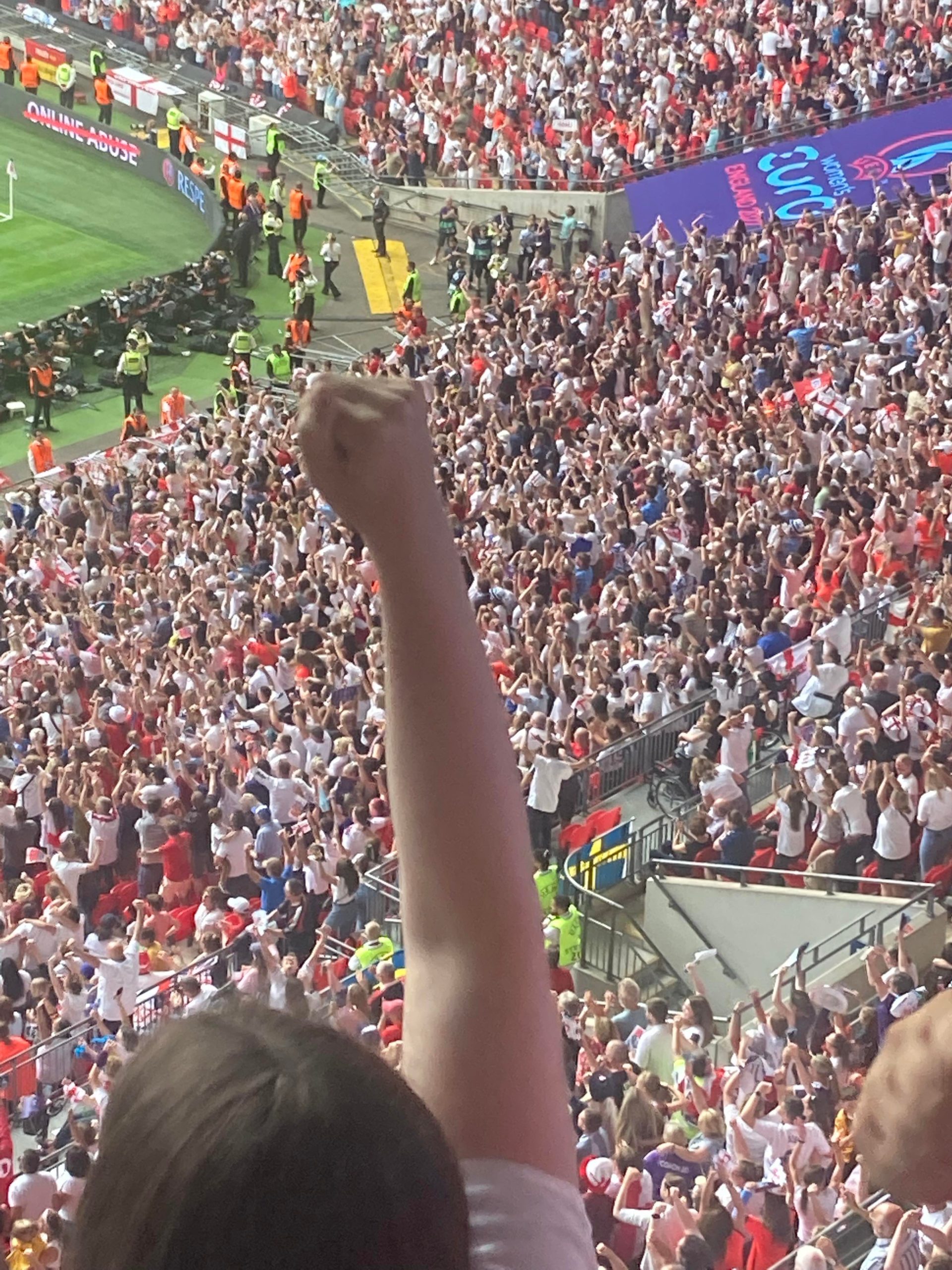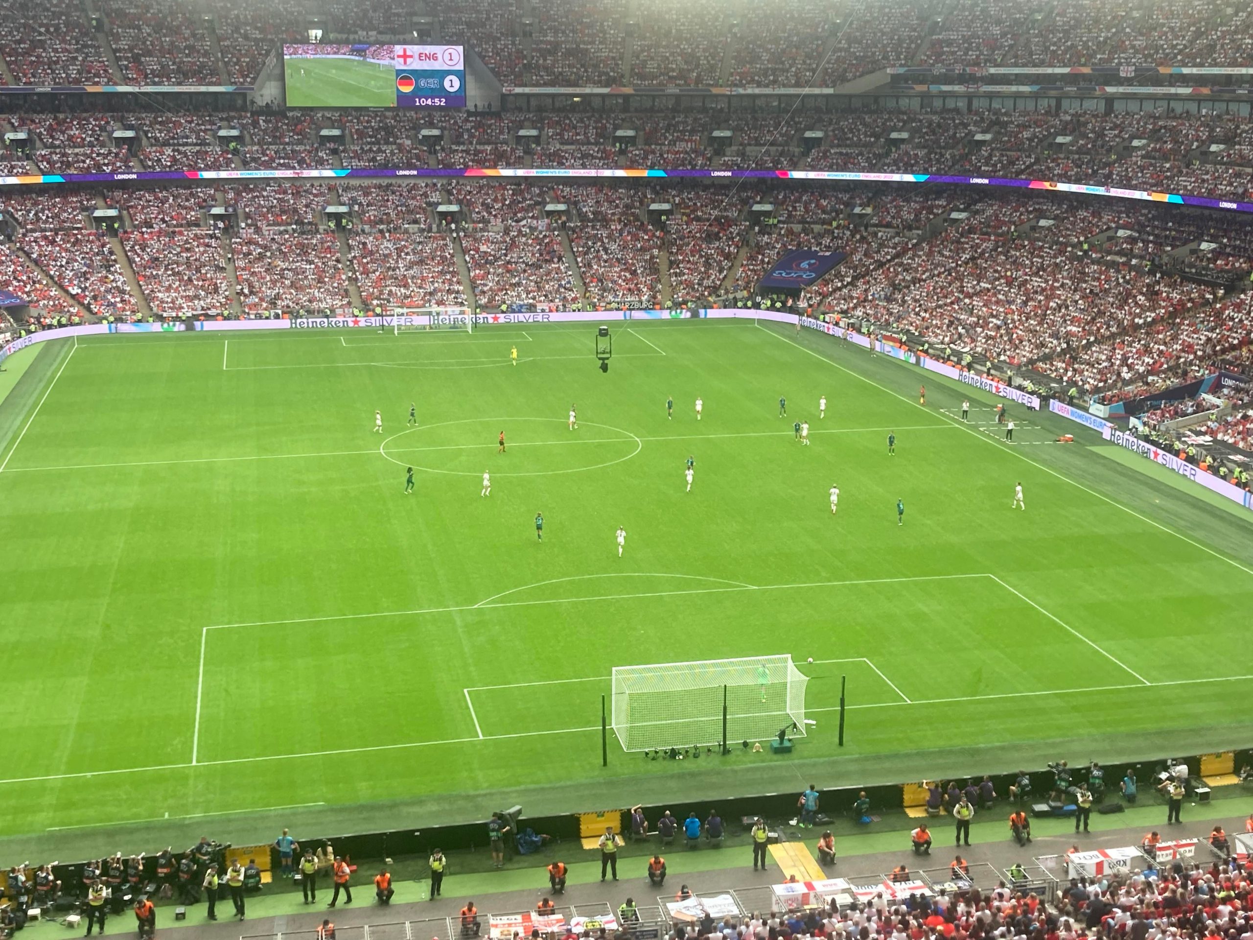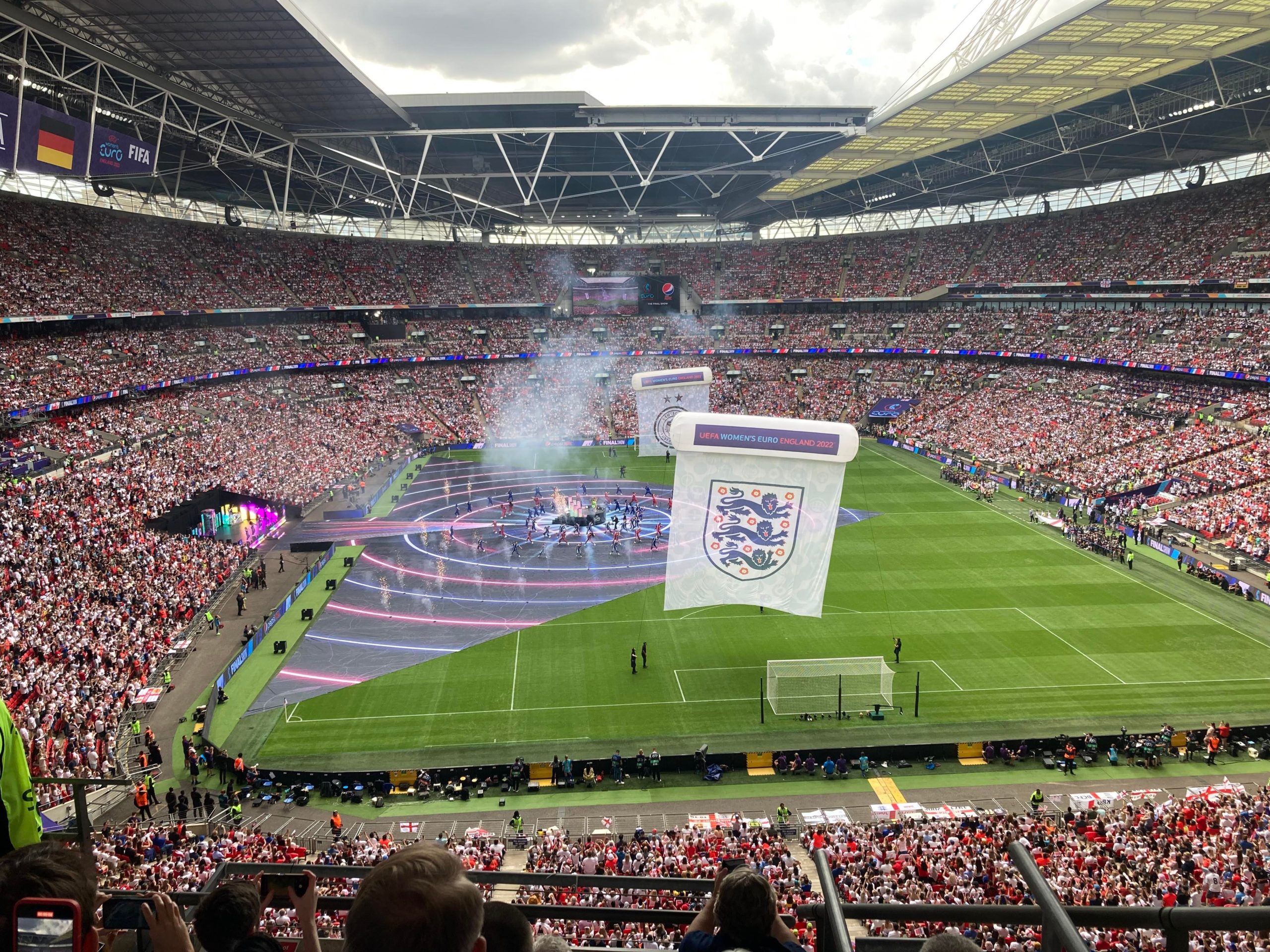 The warm-ups are done and now we are treated to a special show from Becky Hill before kick off! And now it’s time for the main event!! Out come the teams… I’ve said it a few times “to a wall of noise!” But today it’s a wall of noise on steroids! Now for the national anthems… “GOD SAVE OUR QUEEN!” COME ON ENGLAND!!